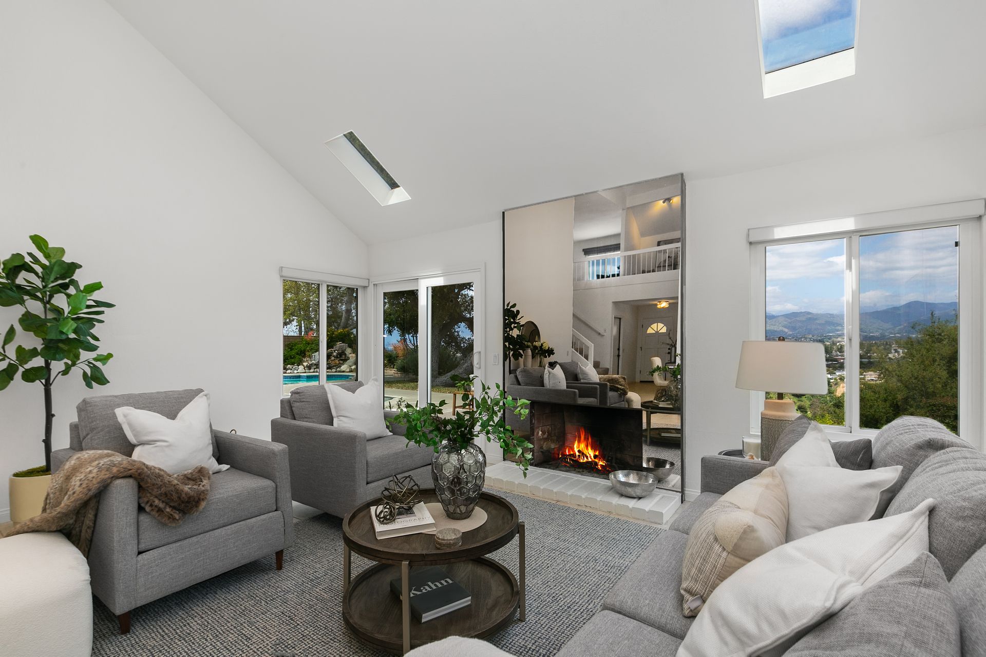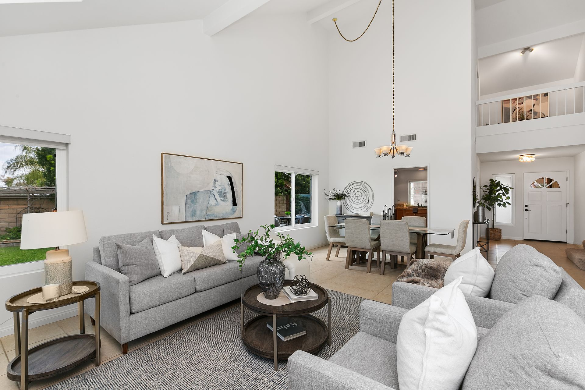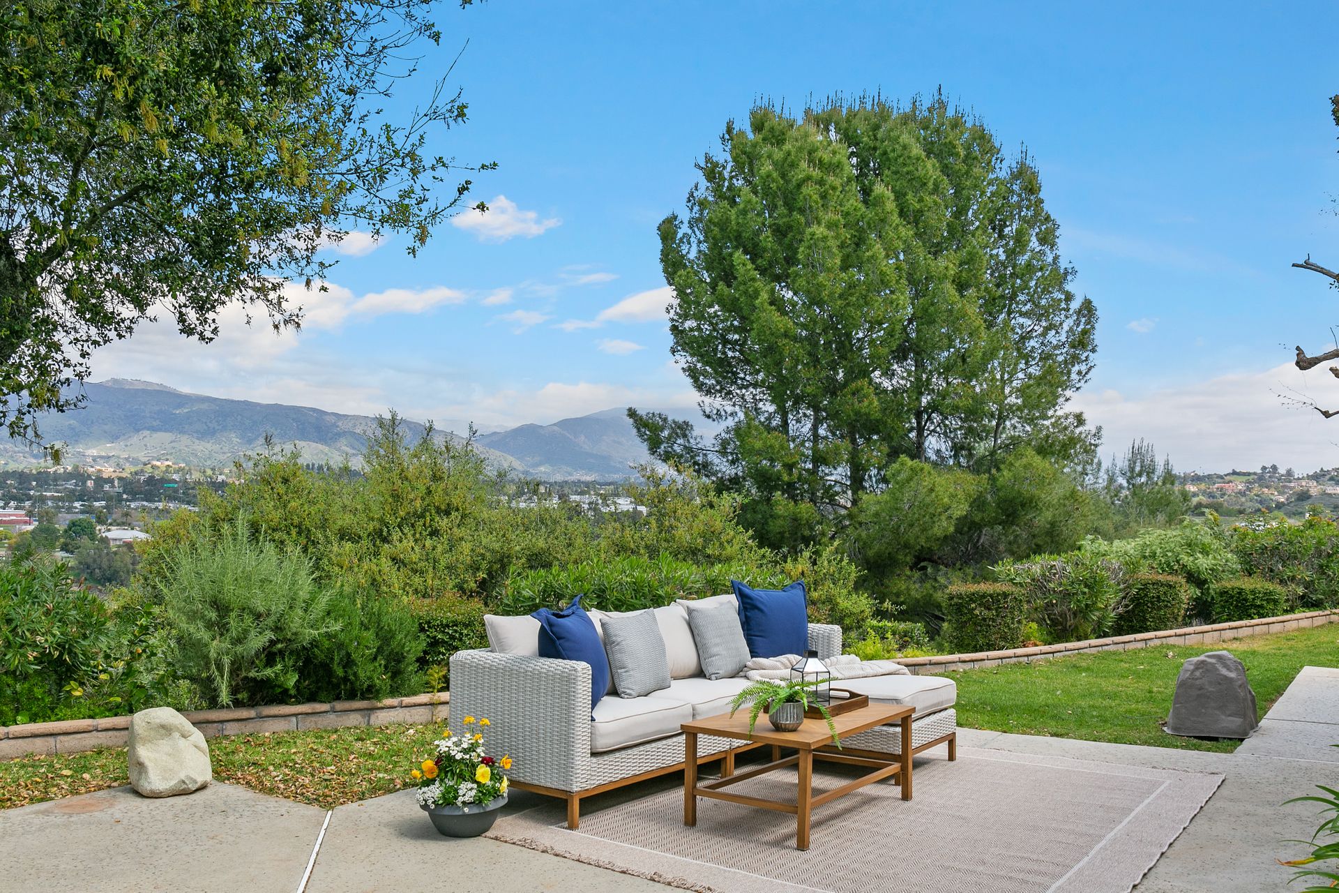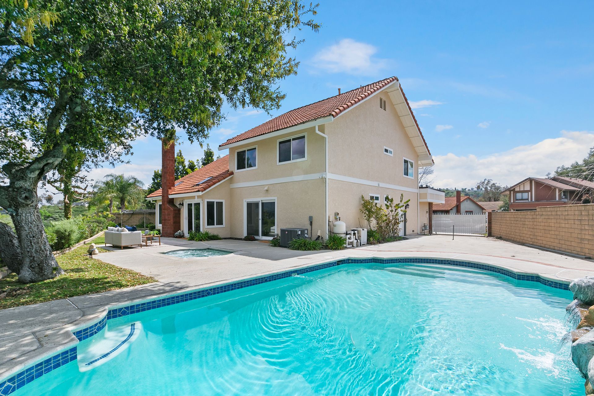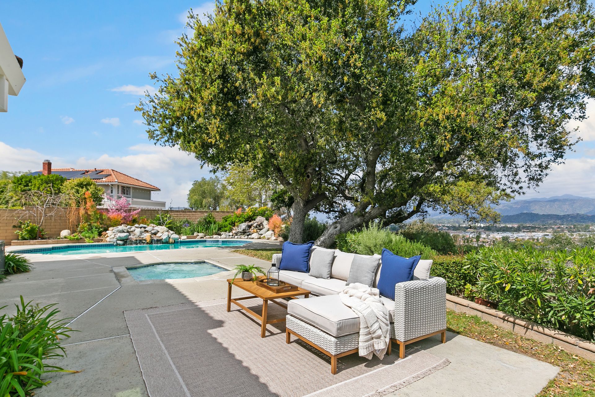 Extraordinary expansive views, bright open spaces, tasteful updates and a resort-like backyard are just a few of the highlights of this Via Verde home at the end of a cul-de-sac in the desirable Woodwalk community of San Dimas. The interior wraps around the two-story high spaces of the living, dining, entry and den, creating a light, bright, generous feel that must be experienced. The open living/dining room features an impressive decorative fireplace, skylights, multiple windows to capture views and direct sliding door access to the backyard. The large, updated eat-in kitchen has granite counters, stainless appliances, wood cabinetry, task lighting, large pantry, built-in desk, breakfast area and direct access to outside dining. Downstairs has a guest bath and a main suite bedroom that has extensive wall closets, double sink vanity area, separate stall shower/toilet room, king-size sleeping area and a glass door to the yard bringing the views inside! Upstairs revolves around the sumptuously sized den, large enough for both a work-from-home space and a TV lounge or more. An adjacent sitting nook leads right into one of the three bedrooms, two of which highlight the incredible views. The upstairs bathroom has been tastefully updated with stone, tile and granite for a luxury feel. The backyard features a saltwater pool with a waterfall, in-ground spa, multiple dining areas and a large koi pond with a waterfall. The side yard has room for an RV and currently has a built-in pull-out movie screen. An oversized two-car garage, central air and heat, dual-paned windows, with fresh paint inside and out, help to make it move-in ready! All this private luxury is less than a mile to Via Verde Country Club, while the 10 and 57 Freeways, Grocery and dining at Via Verde Plaza, Bonelli Regional Park, Raging Waters and Puddingstone Lake are within two miles. The stellar location and breathtaking views, make this home a rarely seen chance! (Co-lister: Bonny Hsu, DRE#01921017)
