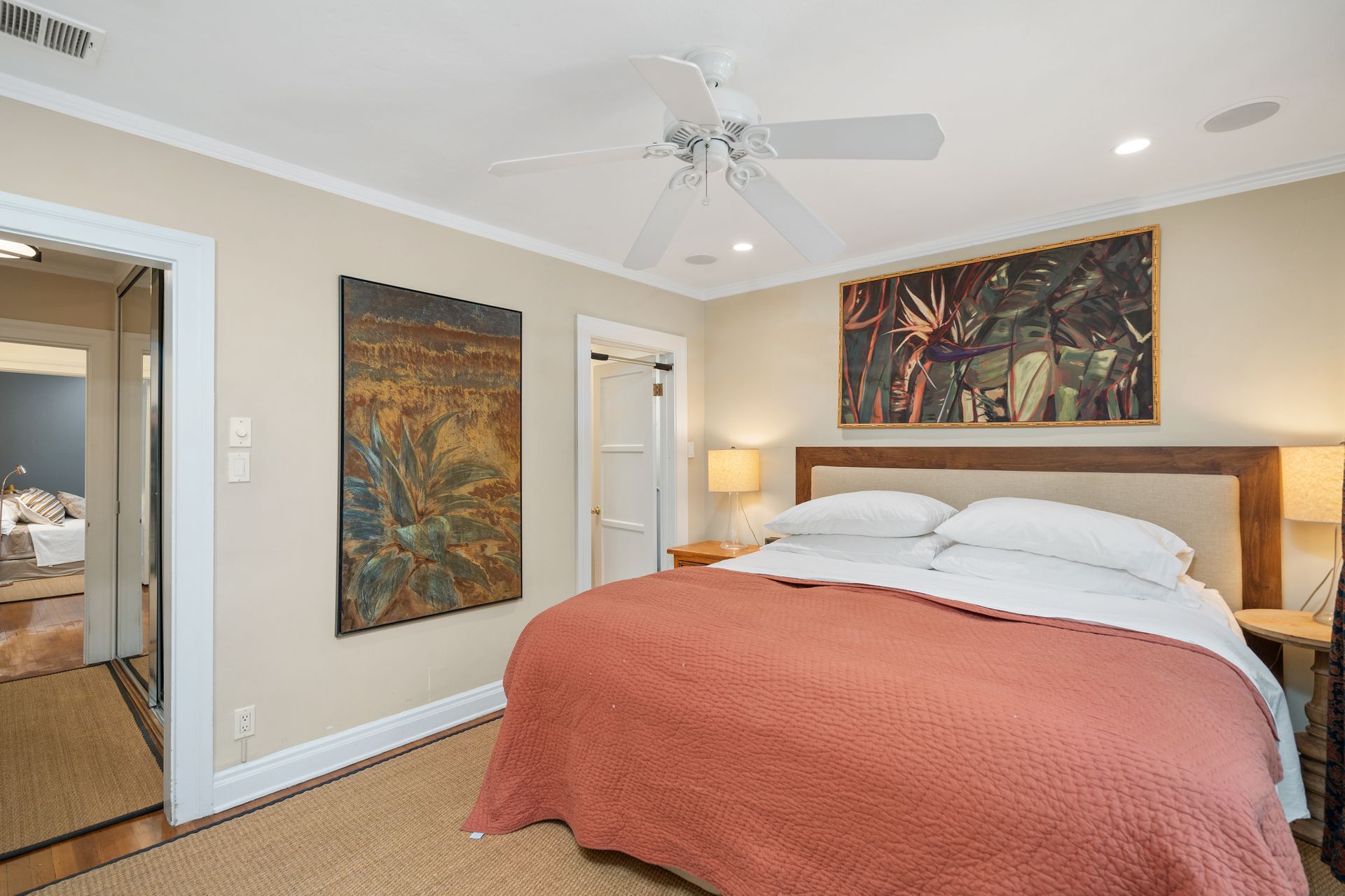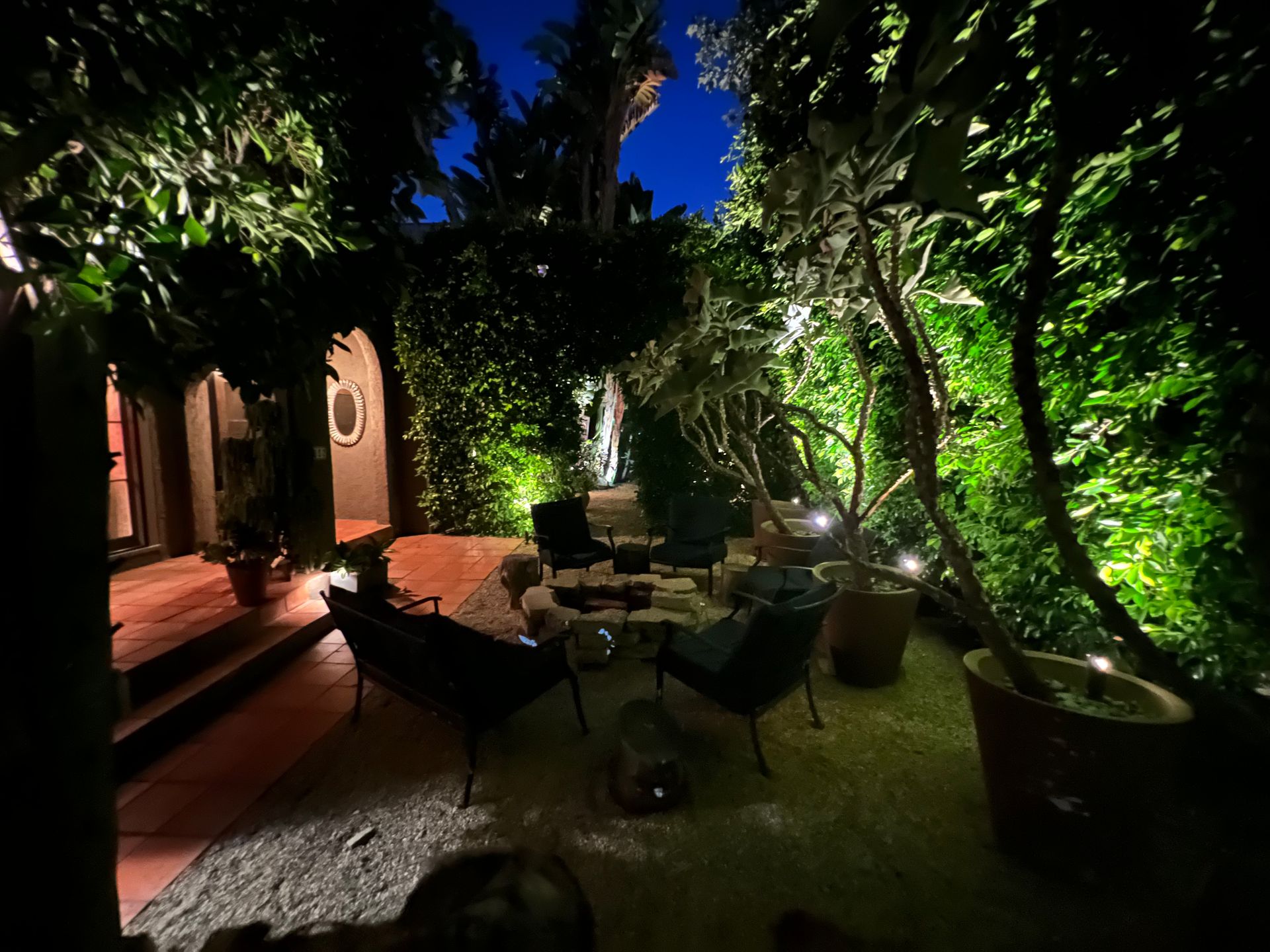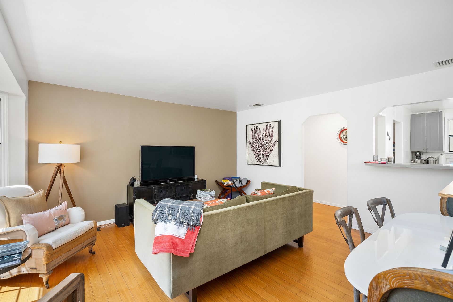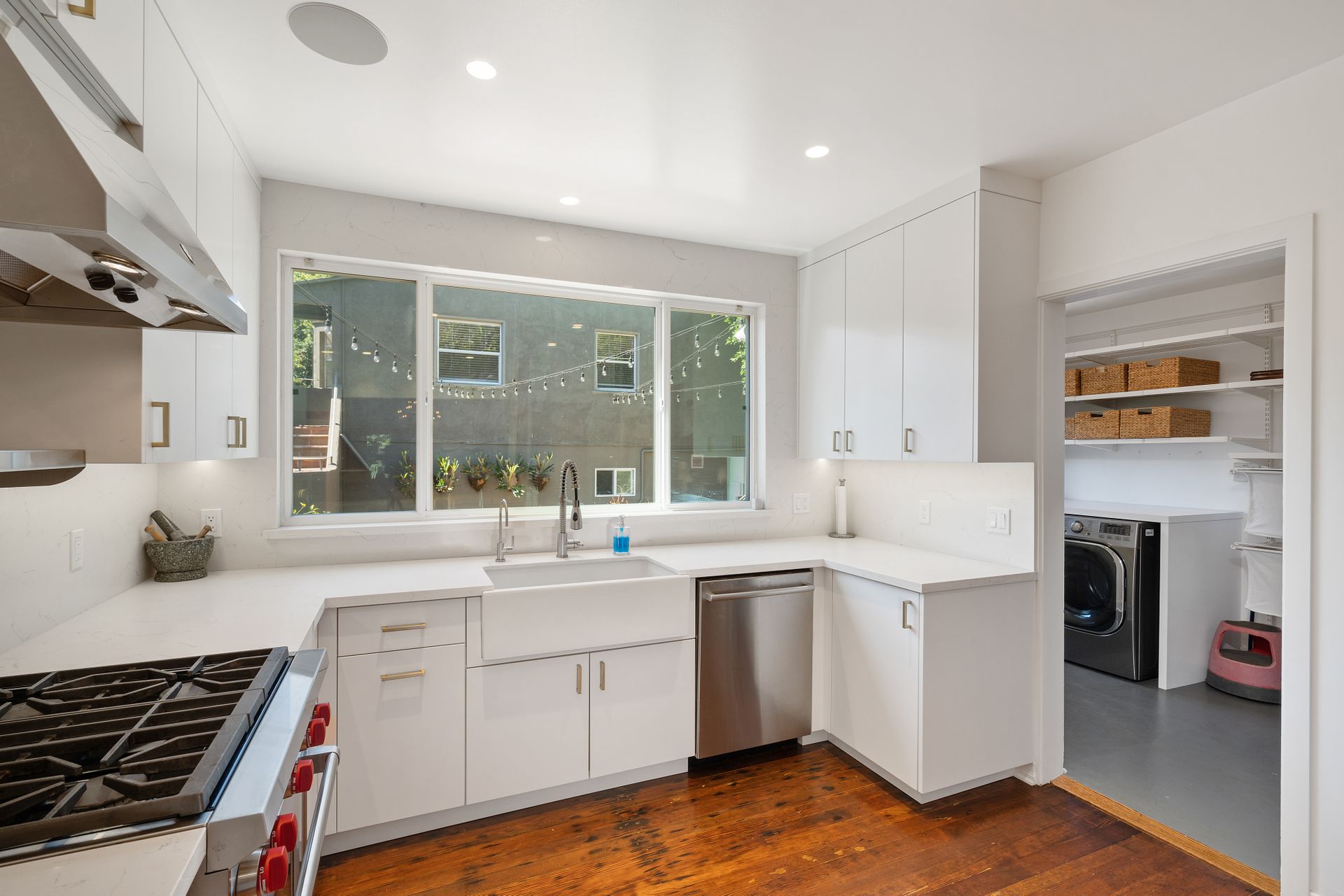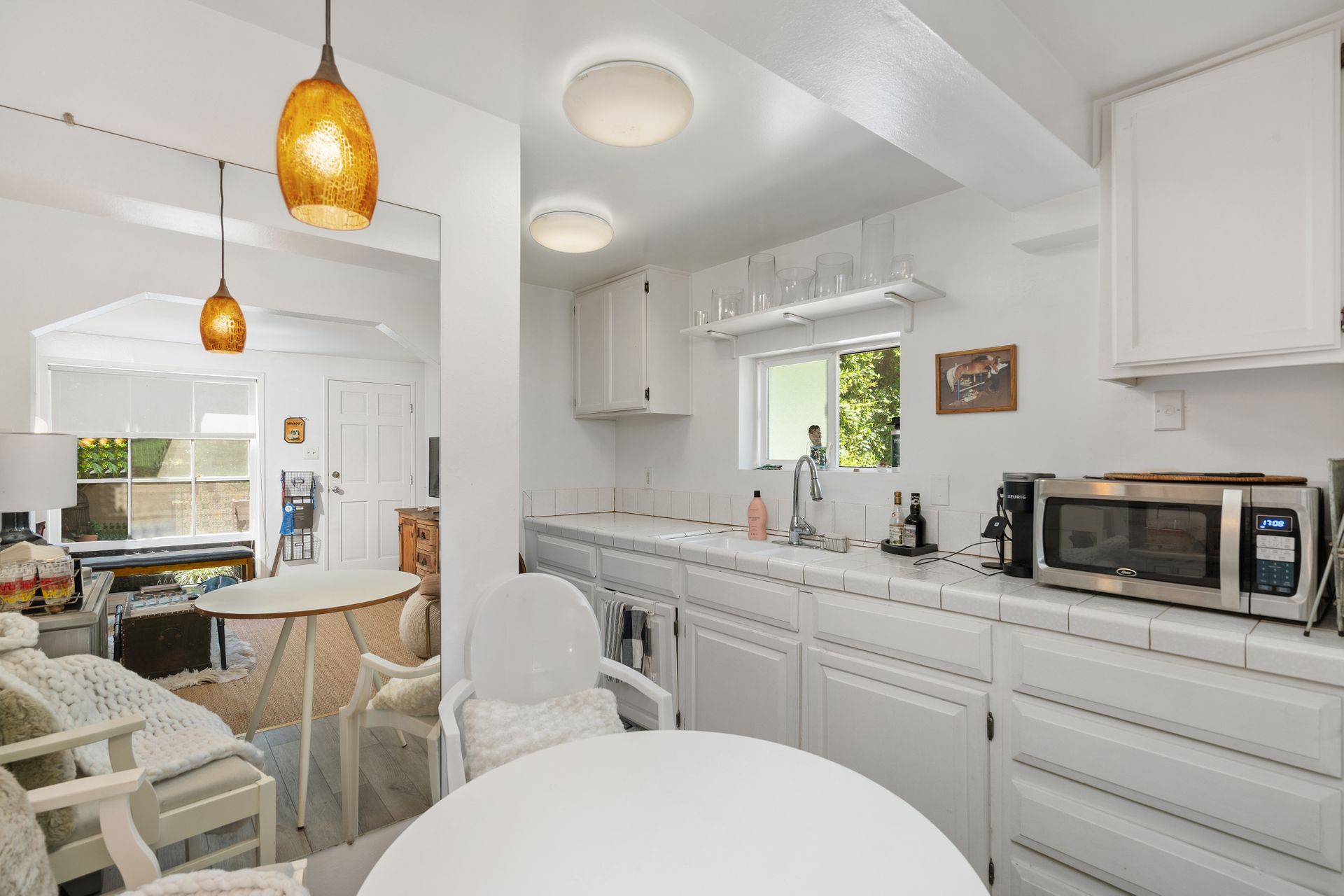 Enchanting compound featuring an impeccably updated character home plus two apartment units in a hedged and gated oasis. The charming owner's bungalow has its own address 7602 Hampton Avenue with three bedrooms and two baths plus a den. The true professional kitchen has recently been recently redone retaining original Douglas Fir flooring and offers superior appliances including a Wolf range and Bosch dishwasher. There is a private front yard and two gated entries. The common area includes a lush Moroccan inspired patio and a fountain for entertaining. The two detached apartments are configured as follows: Unit A is a ground level one bedroom, one bath with a living room and courtyard with a fountain. Unit B is upstairs and has two bedrooms, one bath, laundry, central AC/heat and a nice kitchen with a dishwasher. There is a two car garage with an opener and driveway parking. A solar system (owned not leased) serves the main house. Drought tolerant specimen succulents, fountains and hedges complete the picture. Seismic updates undertaken preemptively by the owner include foundation bolting to the main house and recent soft-story retrofit. This trophy property shows impeccable pride of ownership.