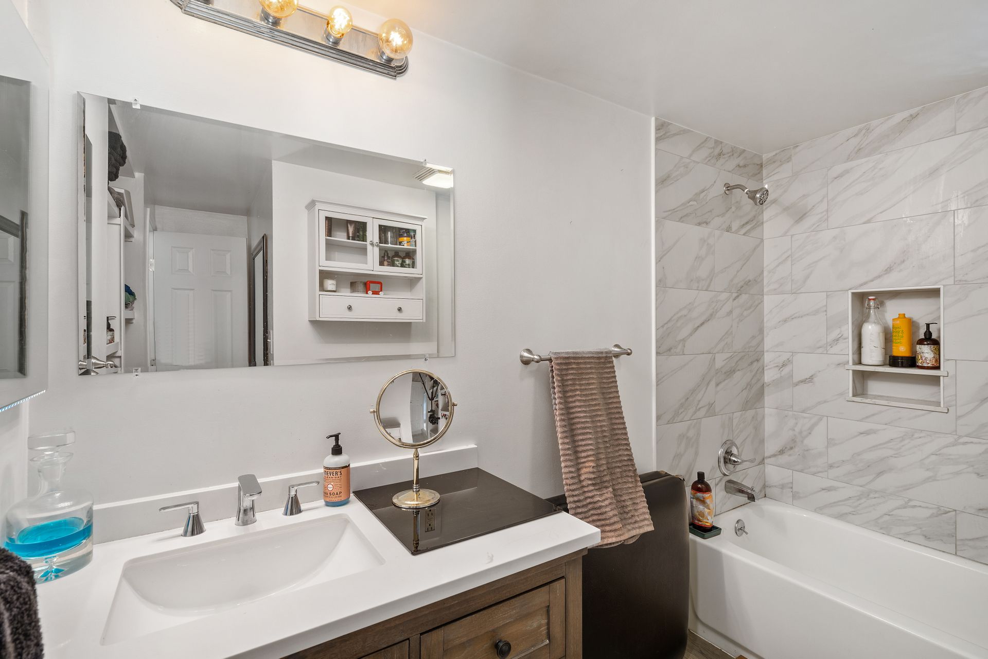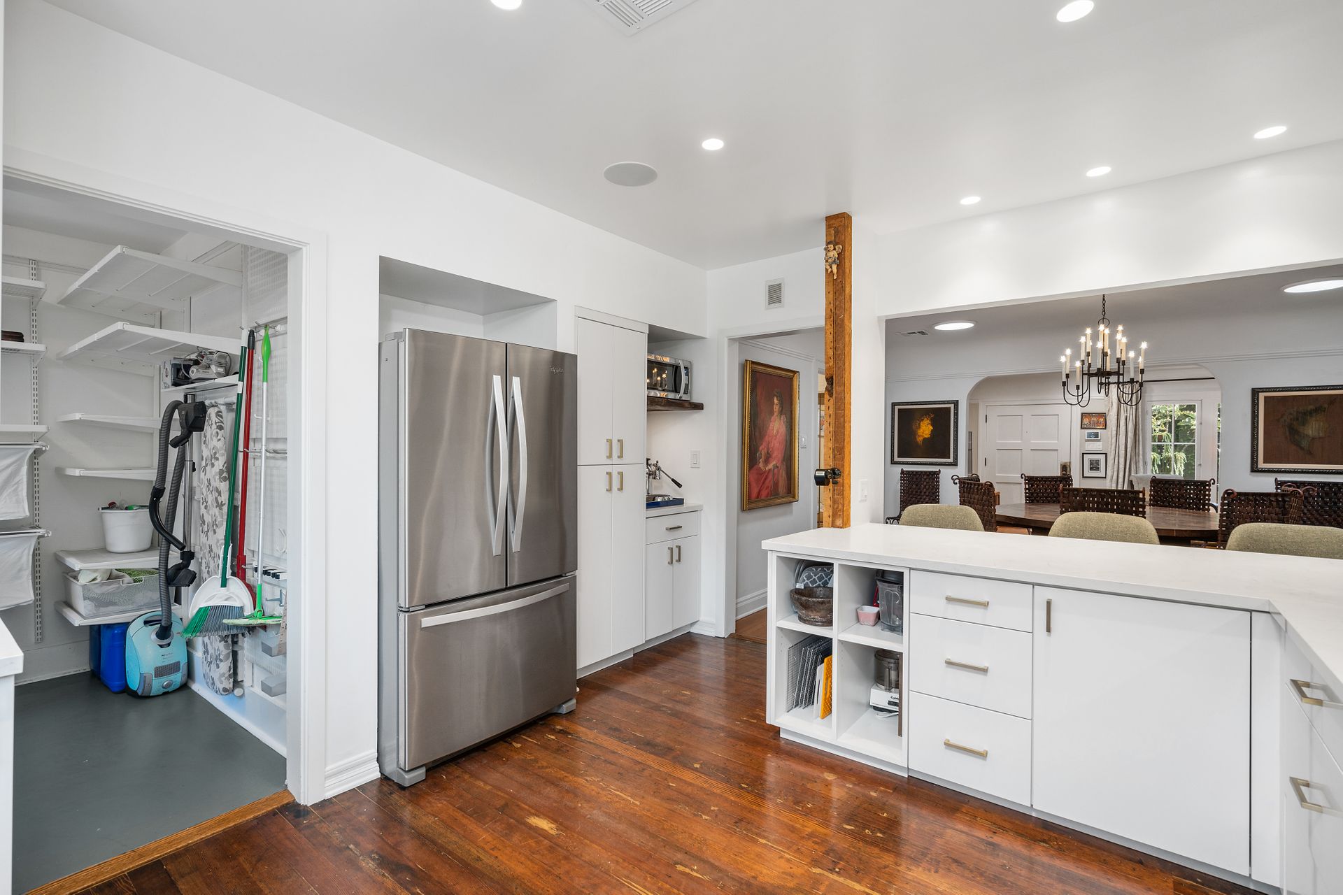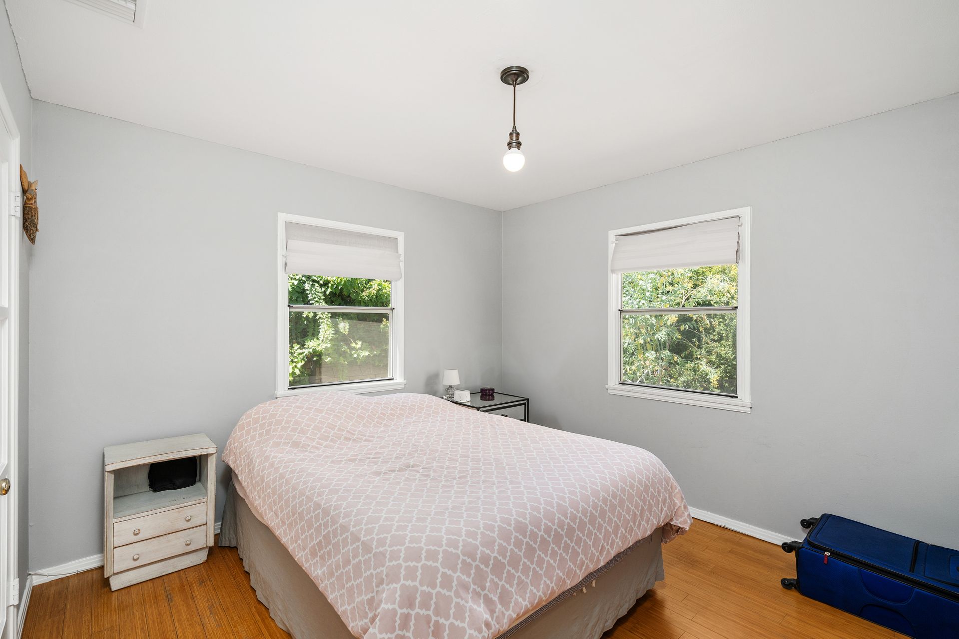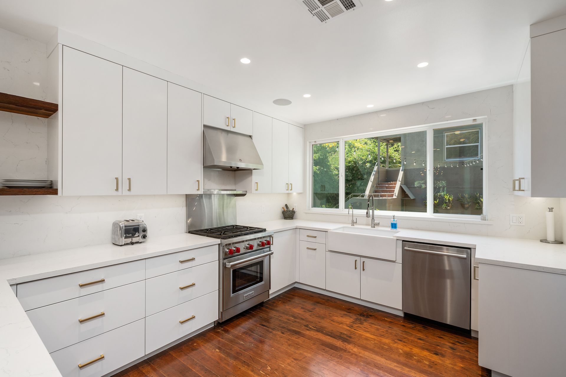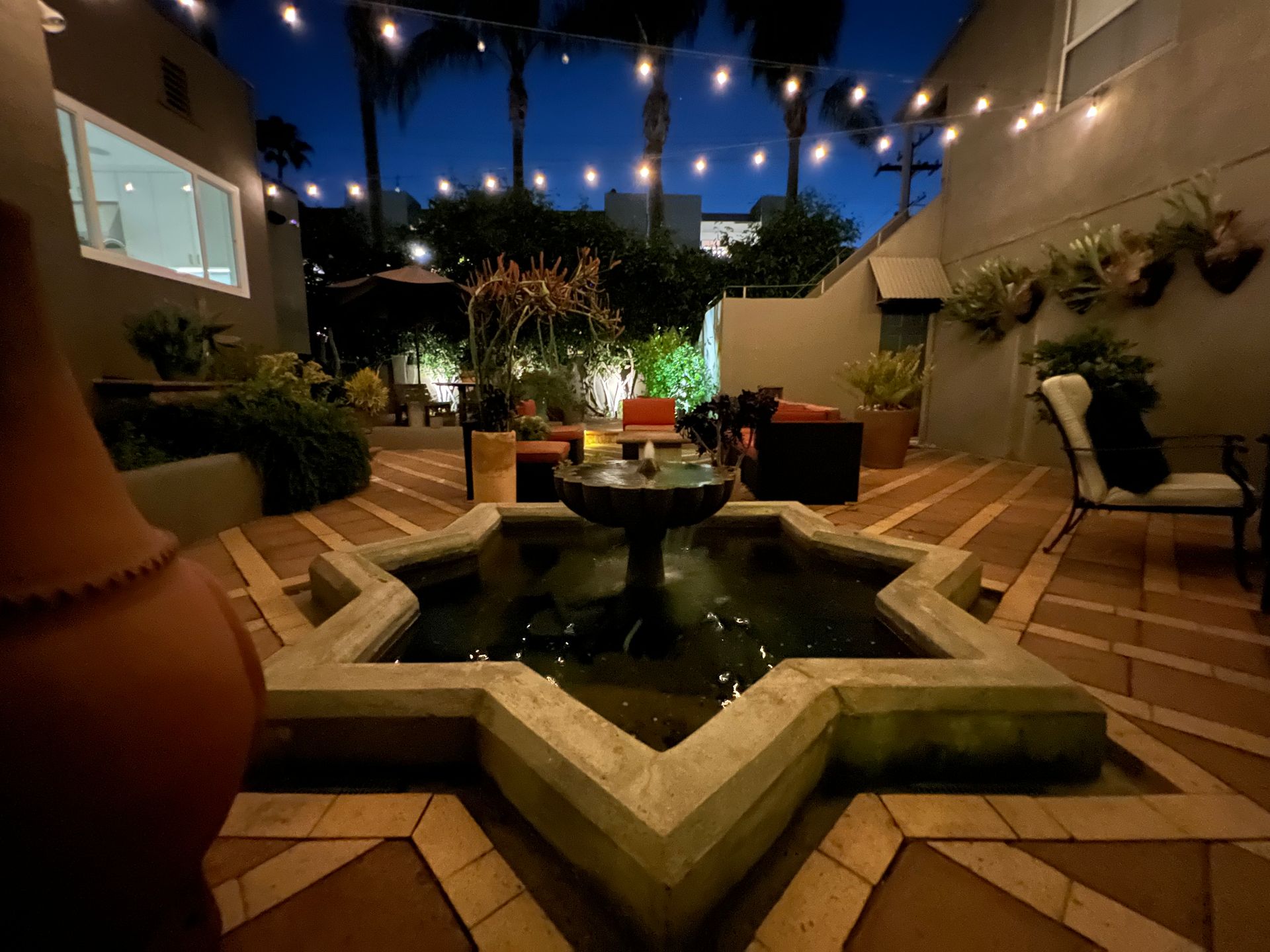 Enchanting compound featuring an impeccably updated character home plus two apartment units in a hedged and gated oasis. The charming owner's bungalow has its own address 7602 Hampton Avenue with three bedrooms and two baths plus a den. The true professional kitchen has recently been recently redone retaining original Douglas Fir flooring and offers superior appliances including a Wolf range and Bosch dishwasher. There is a private front yard and two gated entries. The common area includes a lush Moroccan inspired patio and a fountain for entertaining. The two detached apartments are configured as follows: Unit A is a ground level one bedroom, one bath with a living room and courtyard with a fountain. Unit B is upstairs and has two bedrooms, one bath, laundry, central AC/heat and a nice kitchen with a dishwasher. There is a two car garage with an opener and driveway parking. A solar system (owned not leased) serves the main house. Drought tolerant specimen succulents, fountains and hedges complete the picture. Seismic updates undertaken preemptively by the owner include foundation bolting to the main house and recent soft-story retrofit. This trophy property shows impeccable pride of ownership.