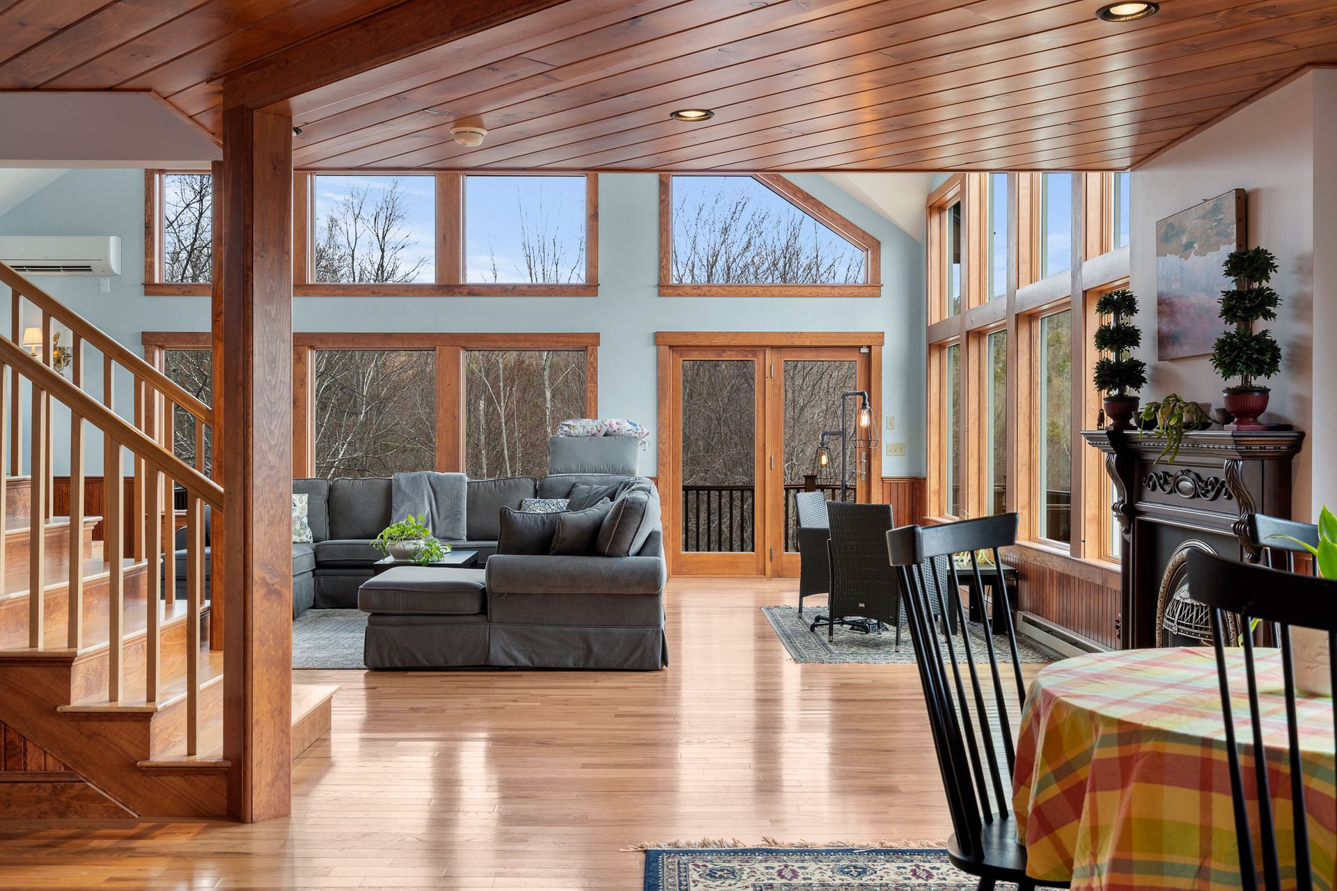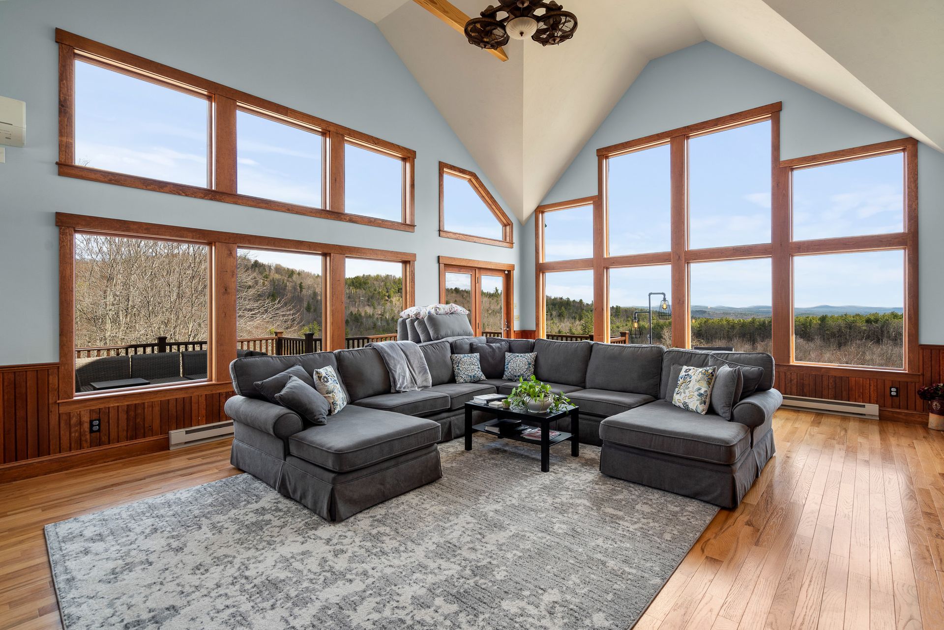 Stop searching and welcome to your dream Mountain and Lake home! This architecturally custom-crafted home was designed to capture breathtaking long views of the mountains and the lake with approximately 87.5 acres of trails and potential sub-division. This approximately 4,341 square foot home has undergone renovations to include an incredible new kitchen and Butler's kitchen with new slider and deck, new steel roof, new laundry room, new heat/air conditioning mini-splits controlled via smart phone and much more! There is a sunroom with hot tub, a billiards room off the lower bar/game room and a widow's peak on the roof level to enjoy the extensive parcel. This home boasts four plus bedrooms, five bathrooms, spacious decks off living room and first floor Master Suite. The main floor Master Suite has a jetted tub with gas wall fireplace for ambiance, separate shower, walk-in closet and gas fireplace. The property is great for hiking, snow shoeing and exploring...or perhaps you want to subdivide and build a home on the crest of the mountain to view all the way to Mount Washington! Minutes to slopes and beach. The possibilities are endless. This exquisite home is suitable for year-round use or as a second home to the Lakes Region. Delayed Showings To May 8 Open House 11-2pm.