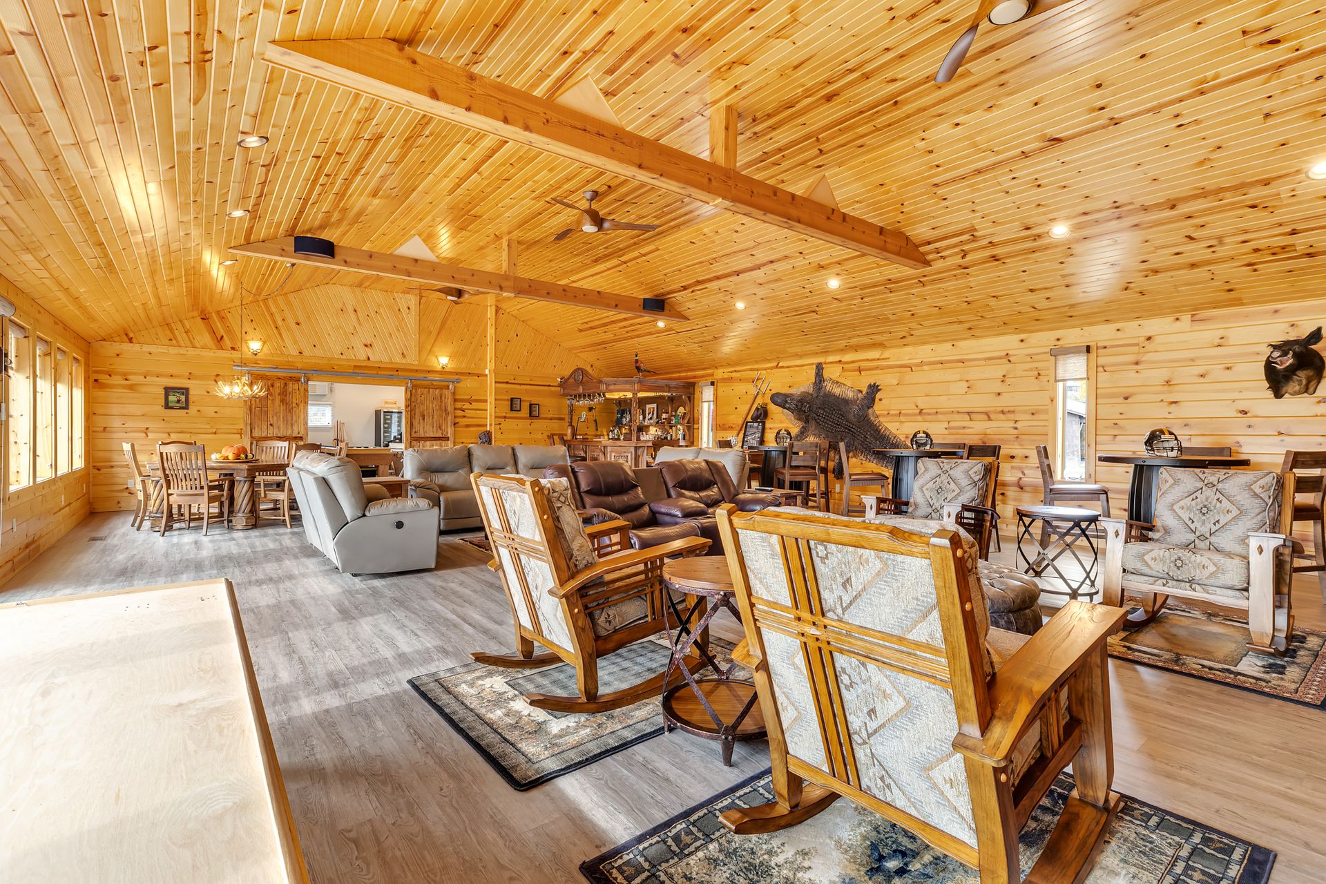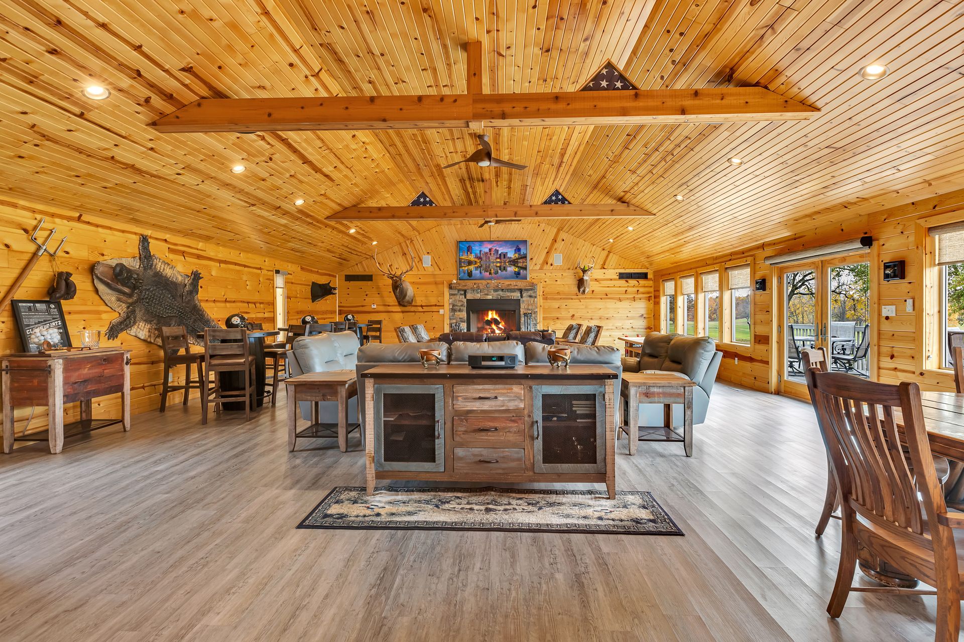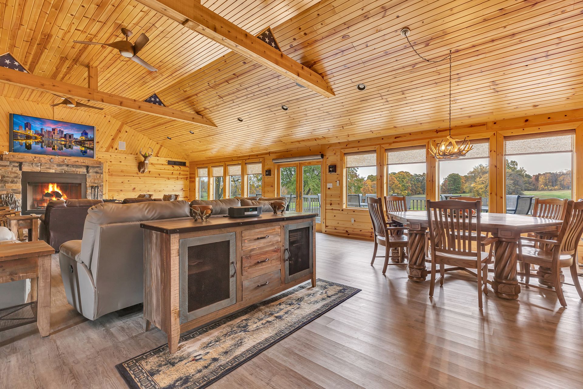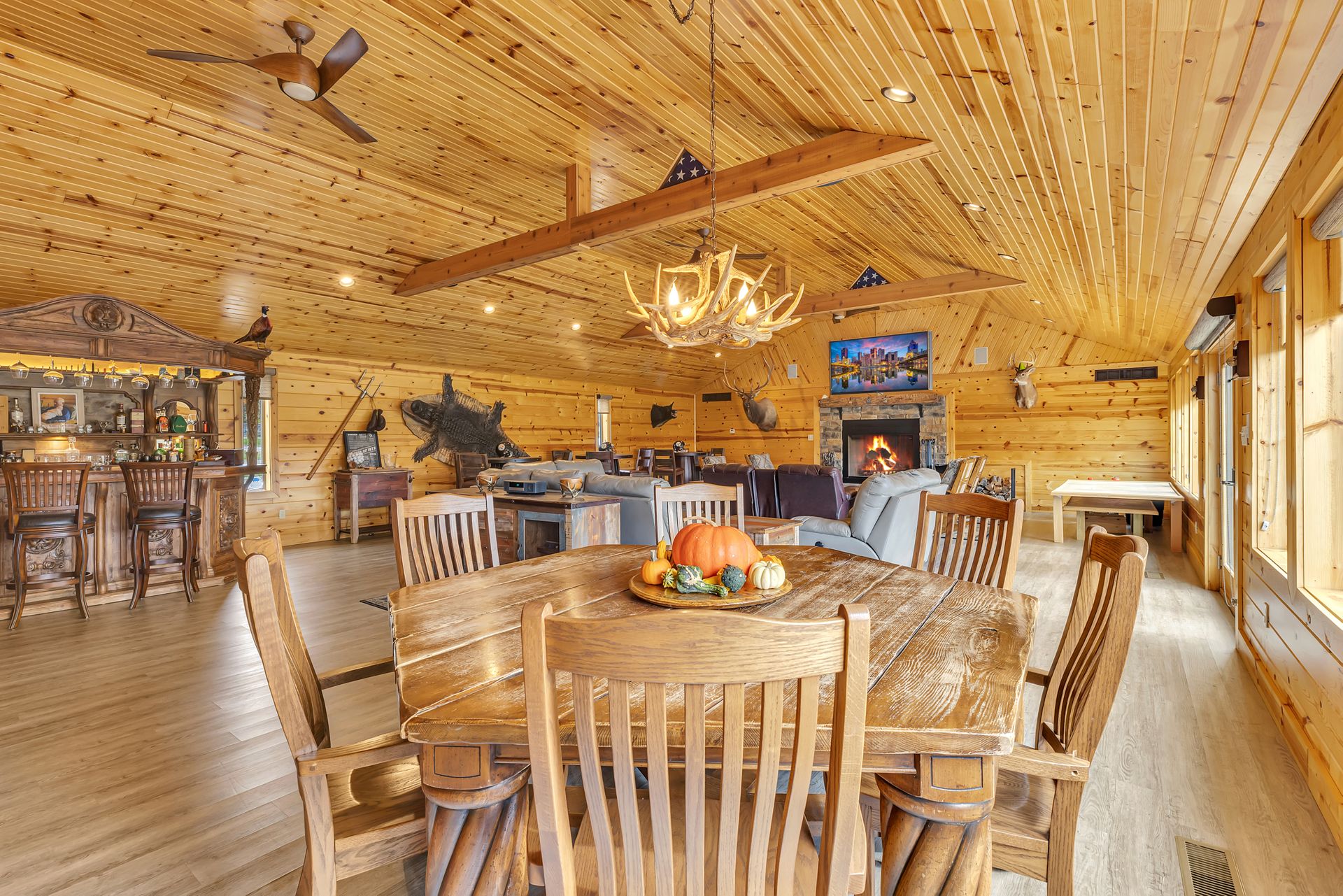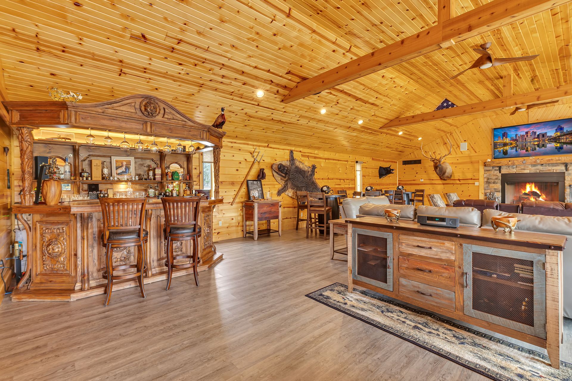 In addition to the three-bedroom, two-bath home located on the property, there is a spectacular lodge on site as well. Perfect for entertaining, the lodge boasts a 23x21 kitchen with granite countertop, a powder room and a 41x29 great room with a vaulted ceiling, a one-of-a-kind, hand-carved, custom-built bar, a wall of windows showcasing the amazing views, a massive stone fireplace and an expansive deck. Sold furnished & fully equipped, but contents are negotiable.