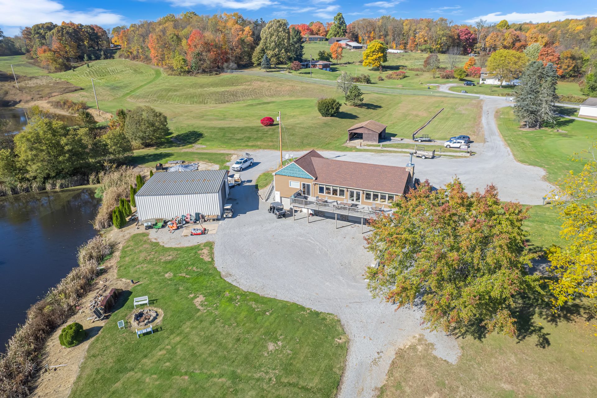 Unique and beyond one-of-a-kind, 122 Daniels Drive is the ultimate retreat property for anyone looking to enjoy the great outdoors and a sporting lifestyle. Once home to Hawthorne Valley Golf Course, MANLAND, as it is now known, has a gated entry and offers 167 acres of sensational recreation. Once inside, MANLAND features an impeccably maintained, 9-hole golf course, an archery tower/deer stand, a pistol range, a heated five-stand for sporting clays, four stocked fishing ponds with Largemouth Bass, Crappies, Bluegills and Channel Cats and several acres of mature land for hunting.