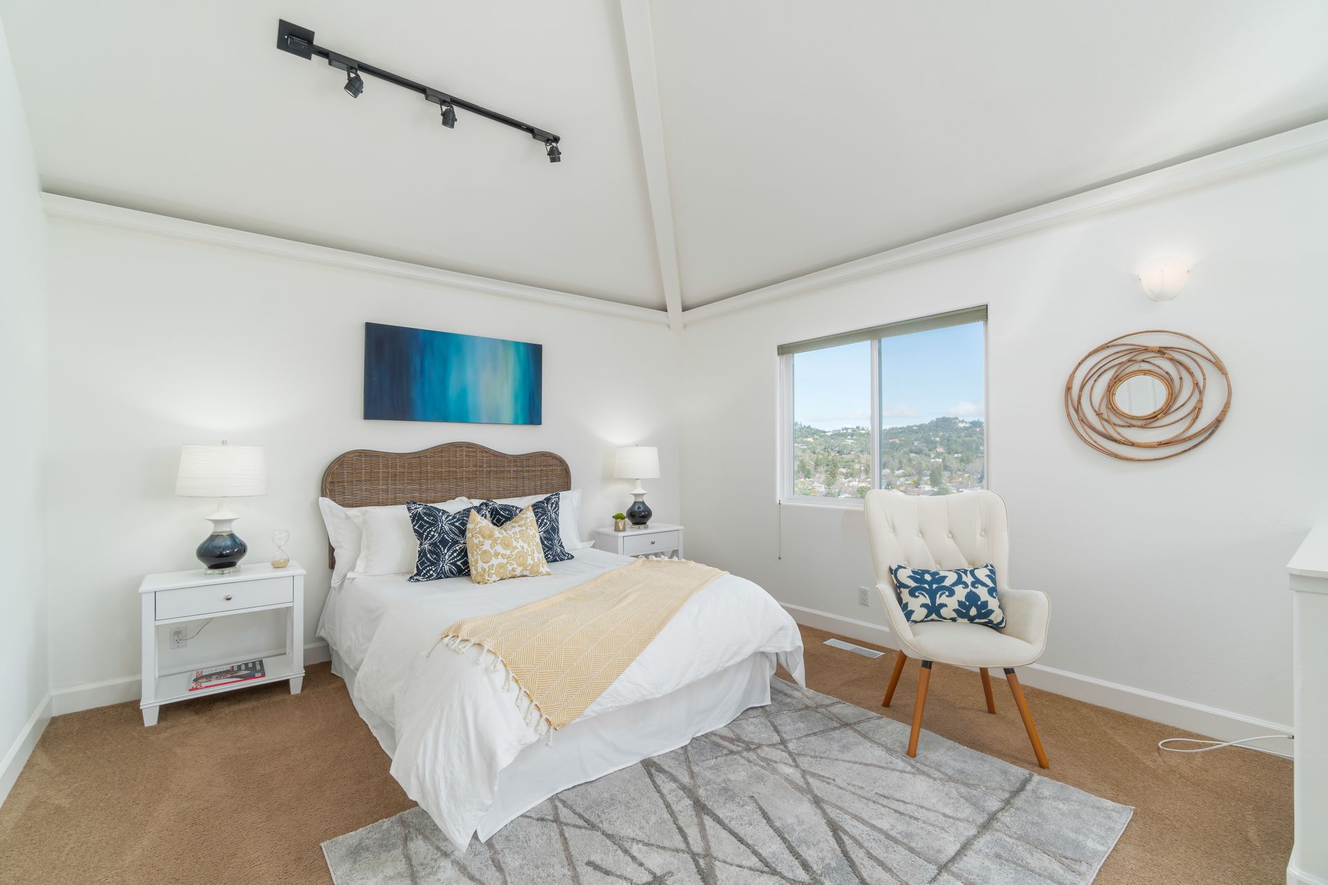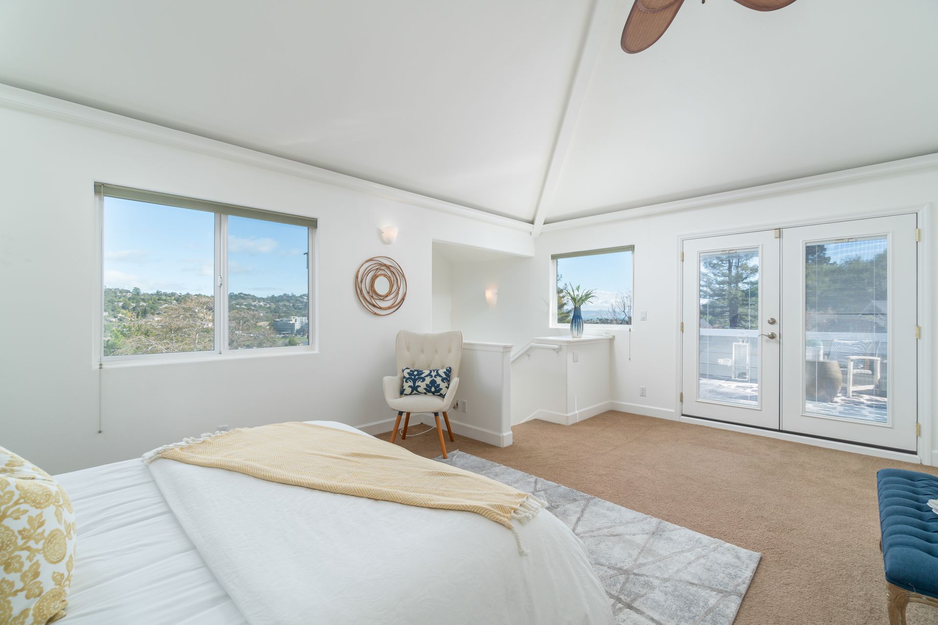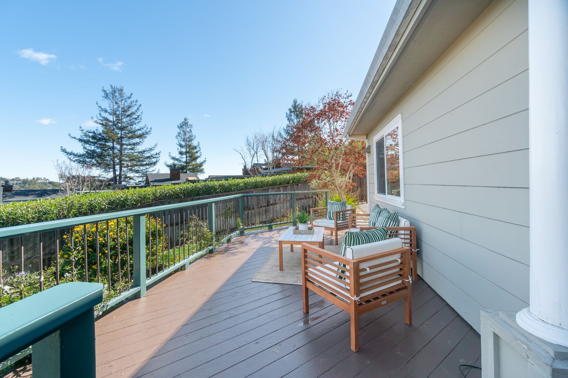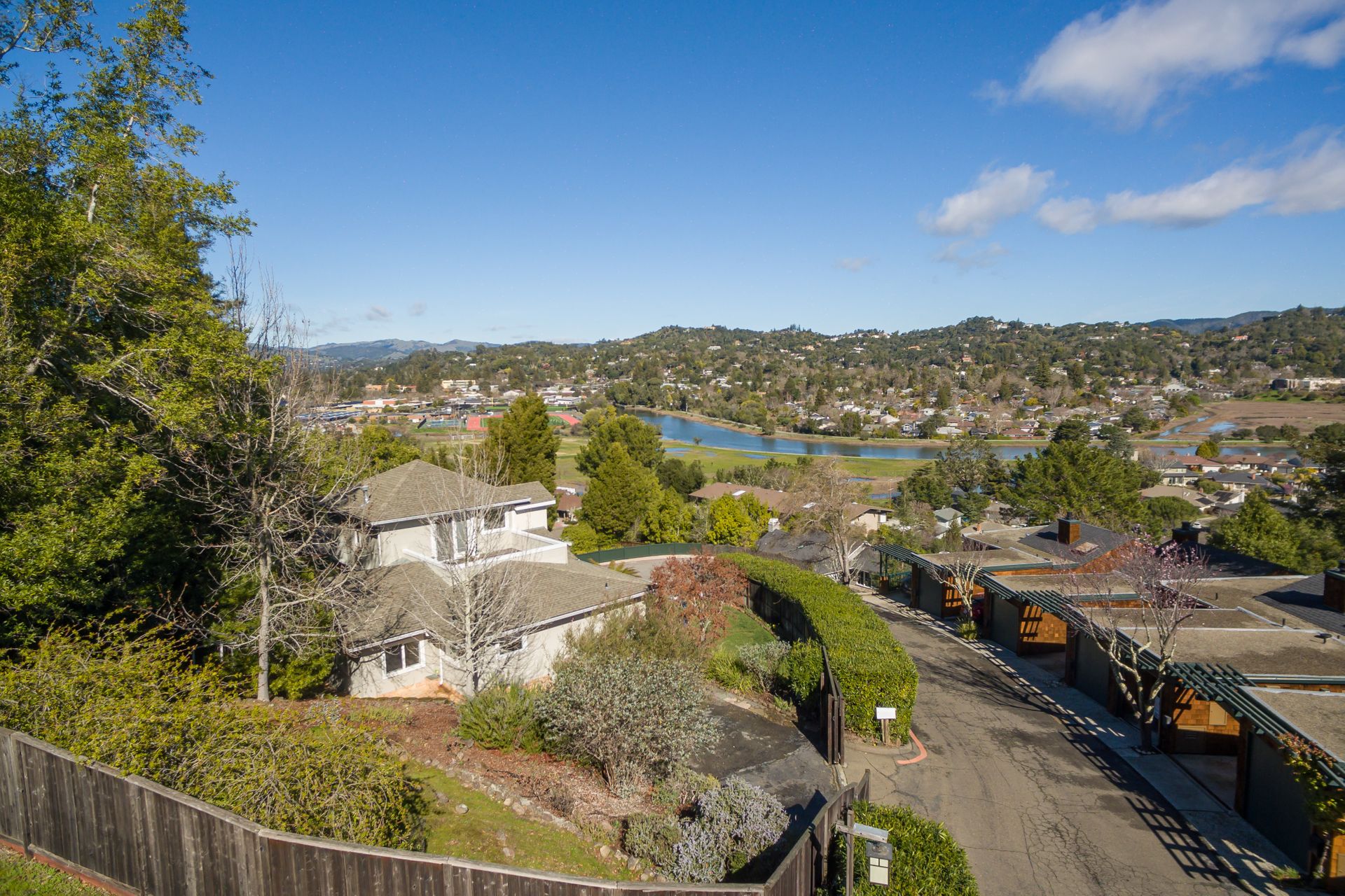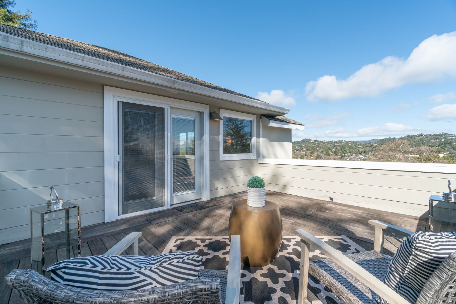 Beautifully remodeled contemporary home with lovely views in a serene, temperate location with top-ranked schools and within easy access to transportation, shops, fabulous restaurants, and hiking trails. 3 bedrooms including a spacious, sunny master suite with an elegant master bathroom and adjoining private deck with panoramic views of the surrounding hills, estuary and bay. Custom kitchen, living room with gas fireplace, guest bathroom and a versatile sunroom provide an open floor plan and great work from home environment. There is a large, enclosed private garden and lawn for entertaining, play and gardening and an attached garage with storage. Second driveway affords ample parking for guests. Convenient to Larkspur Ferry/Bay bike trail.