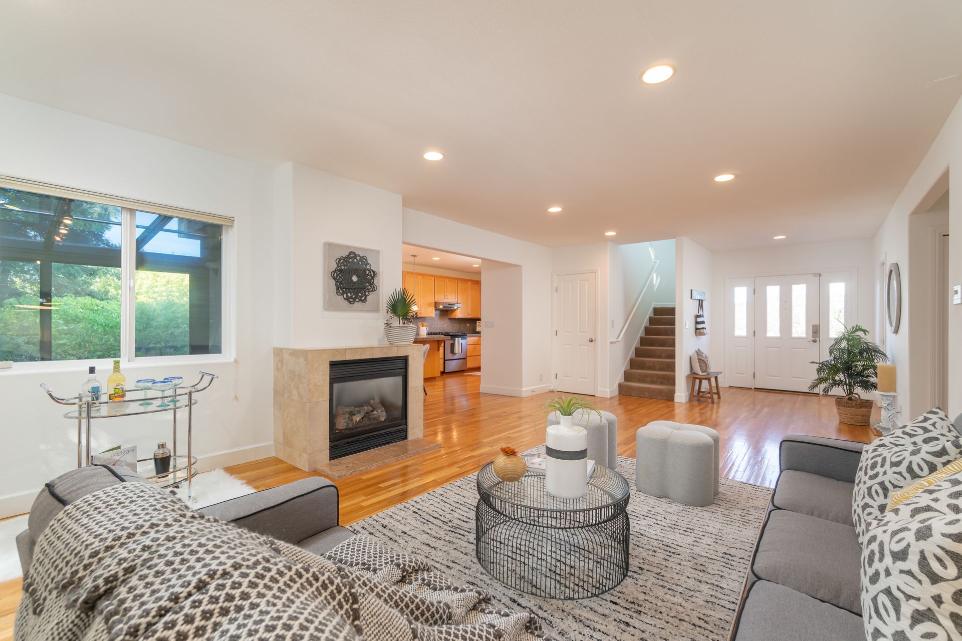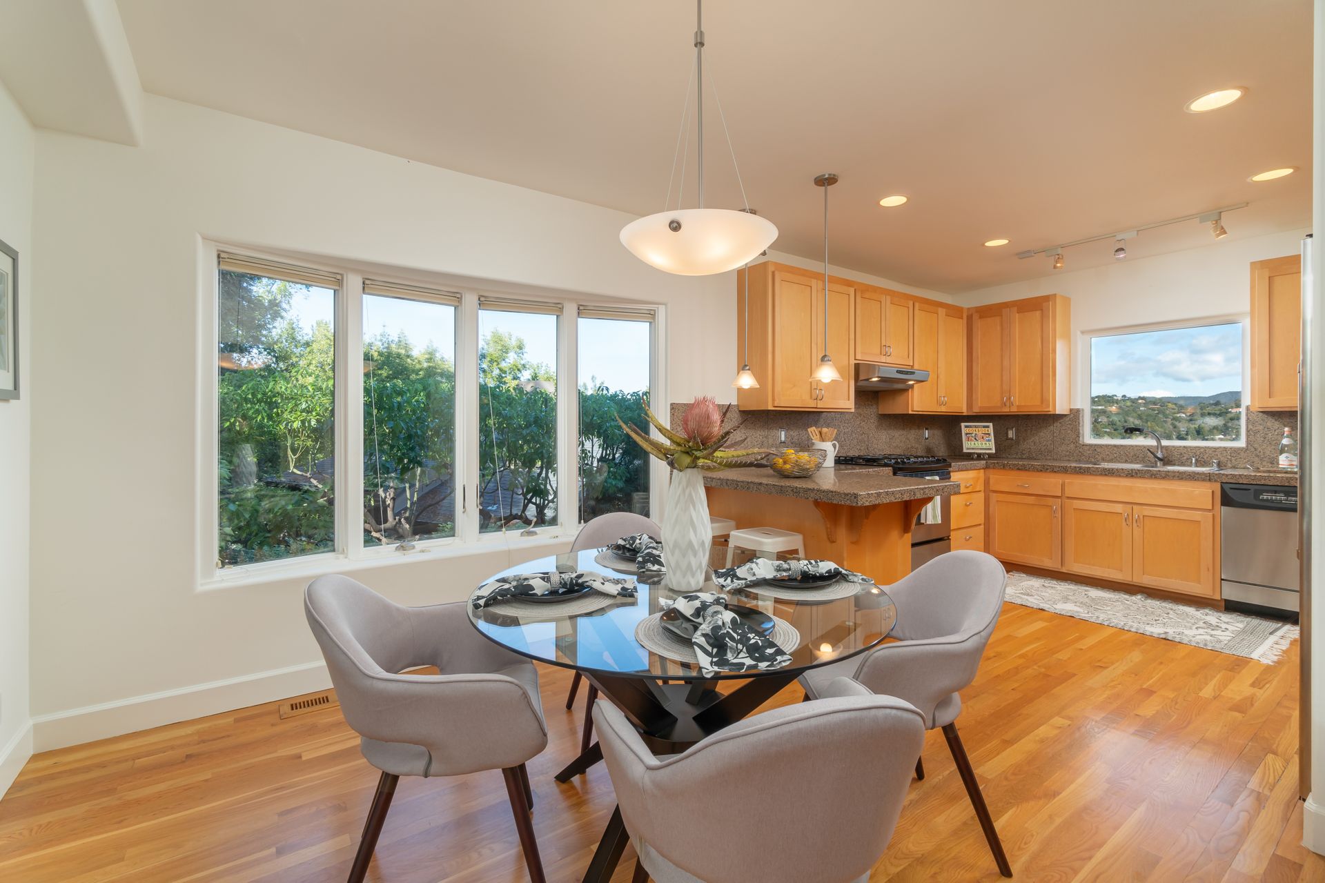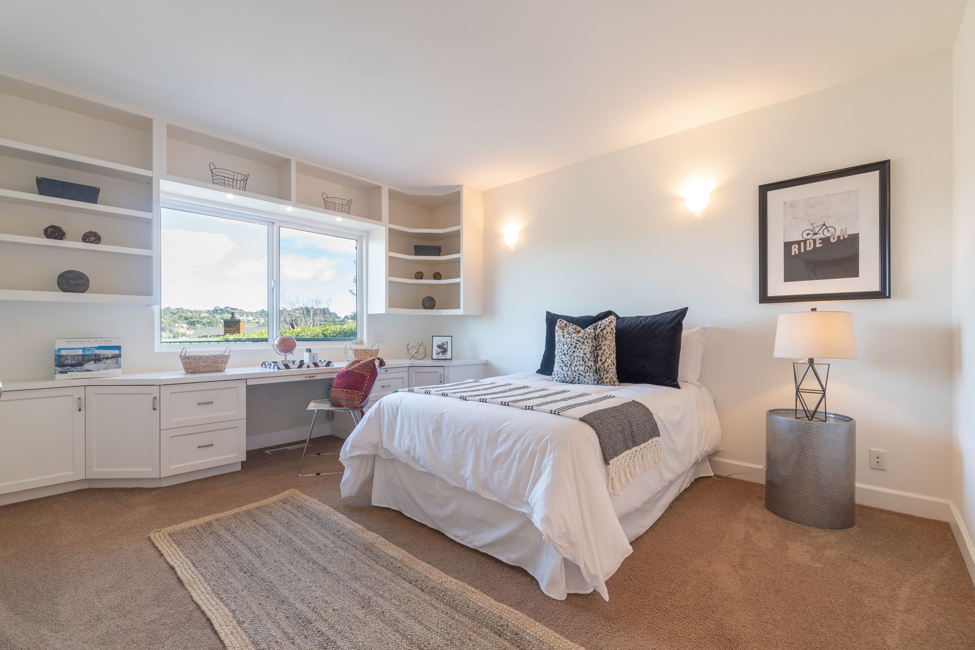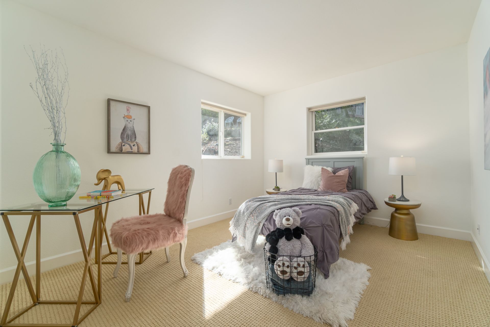Beautifully remodeled contemporary home with lovely views in a serene, temperate location with top-ranked schools and within easy access to transportation, shops, fabulous restaurants, and hiking trails. 3 bedrooms including a spacious, sunny master suite with an elegant master bathroom and adjoining private deck with panoramic views of the surrounding hills, estuary and bay. Custom kitchen, living room with gas fireplace, guest bathroom and a versatile sunroom provide an open floor plan and great work from home environment. There is a large, enclosed private garden and lawn for entertaining, play and gardening and an attached garage with storage. Second driveway affords ample parking for guests. Convenient to Larkspur Ferry/Bay bike trail.