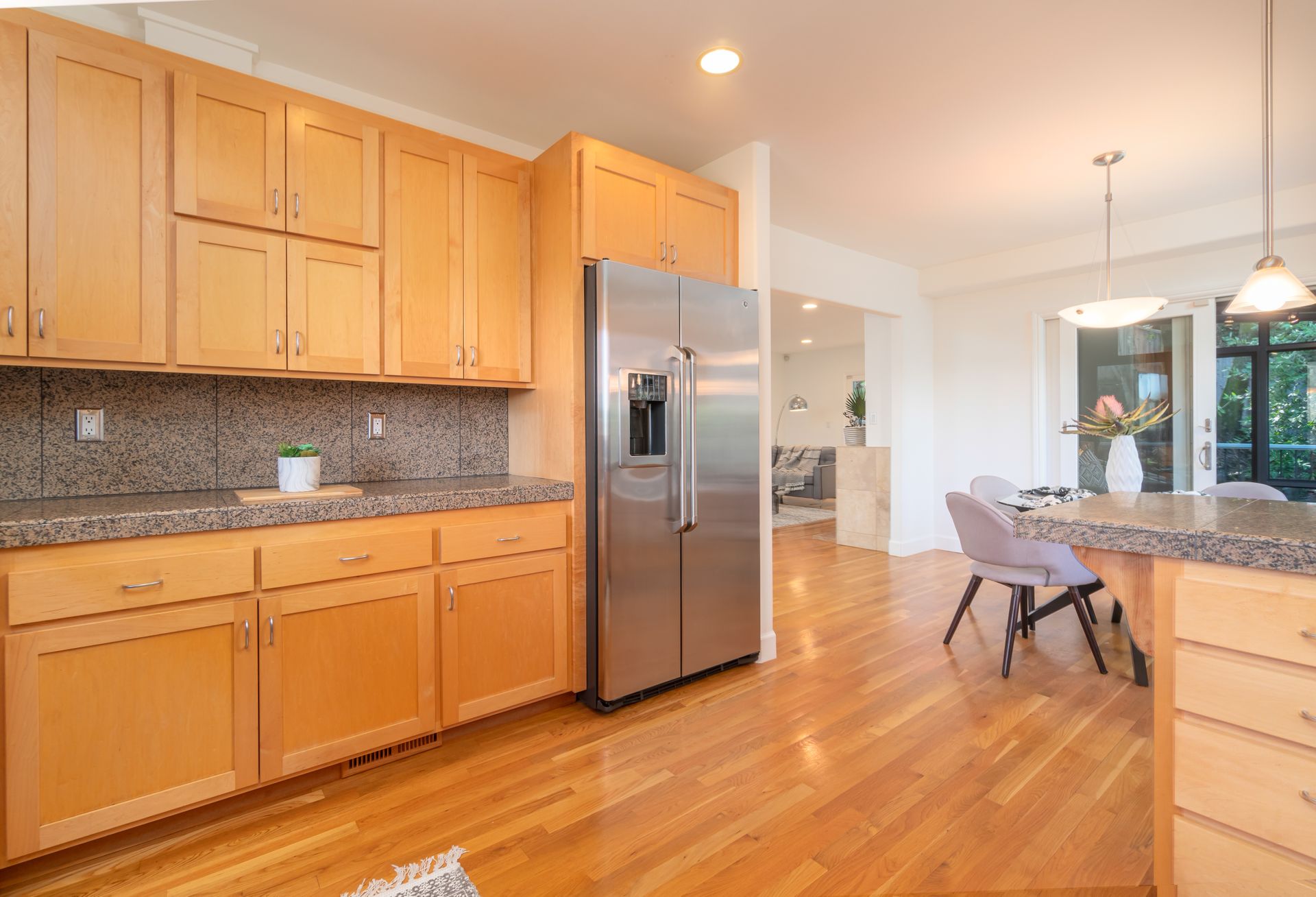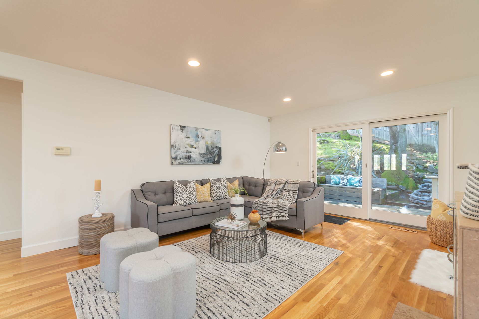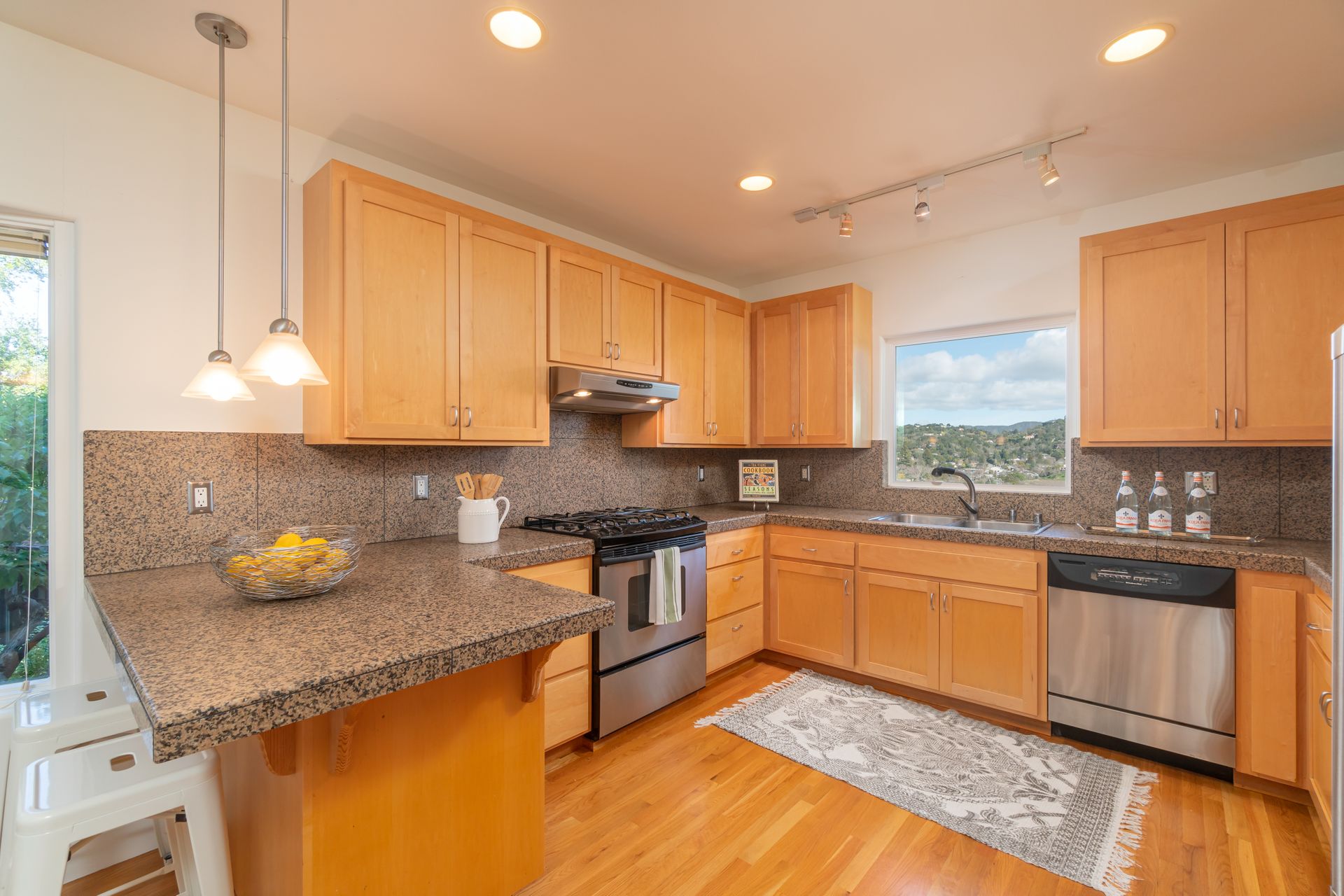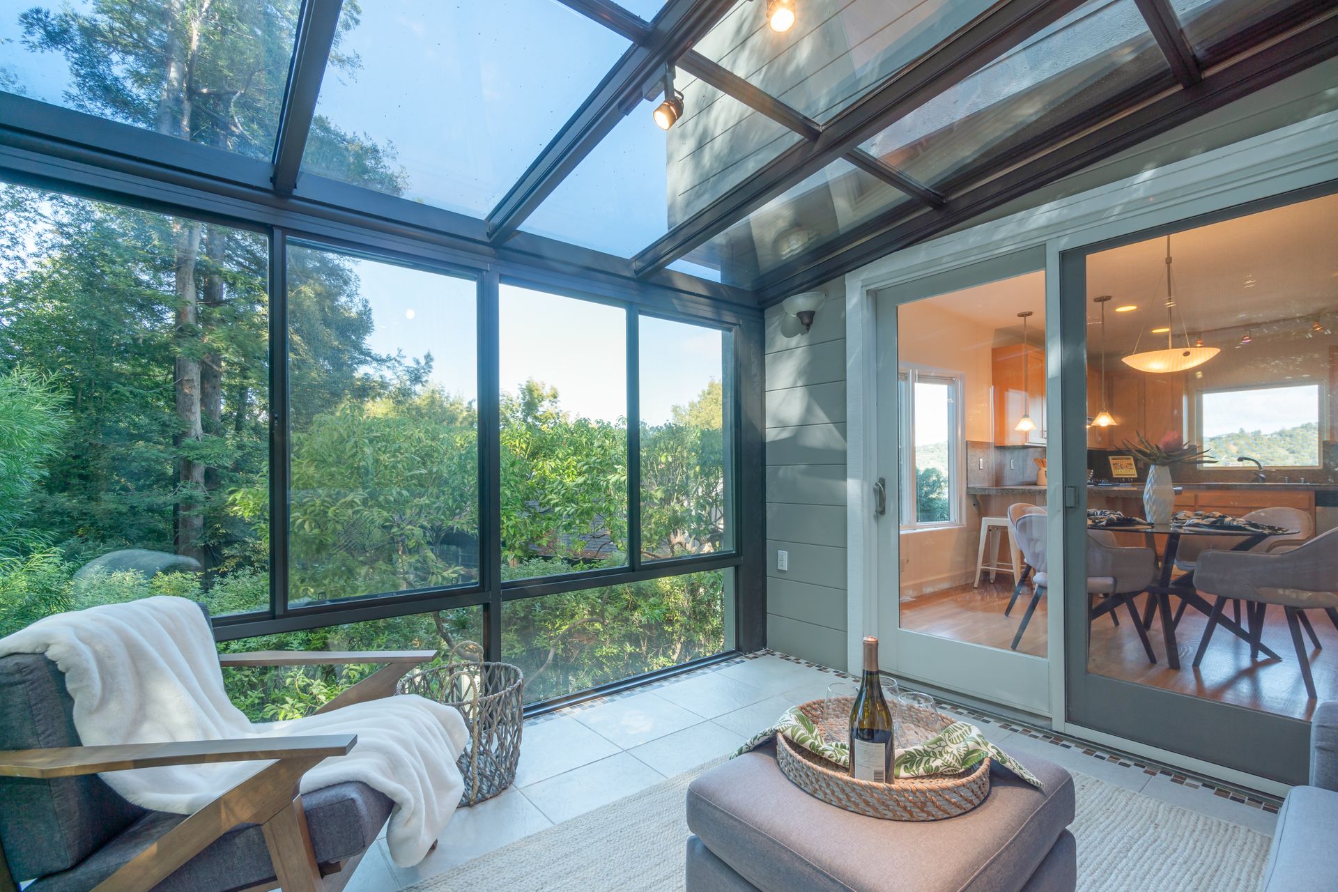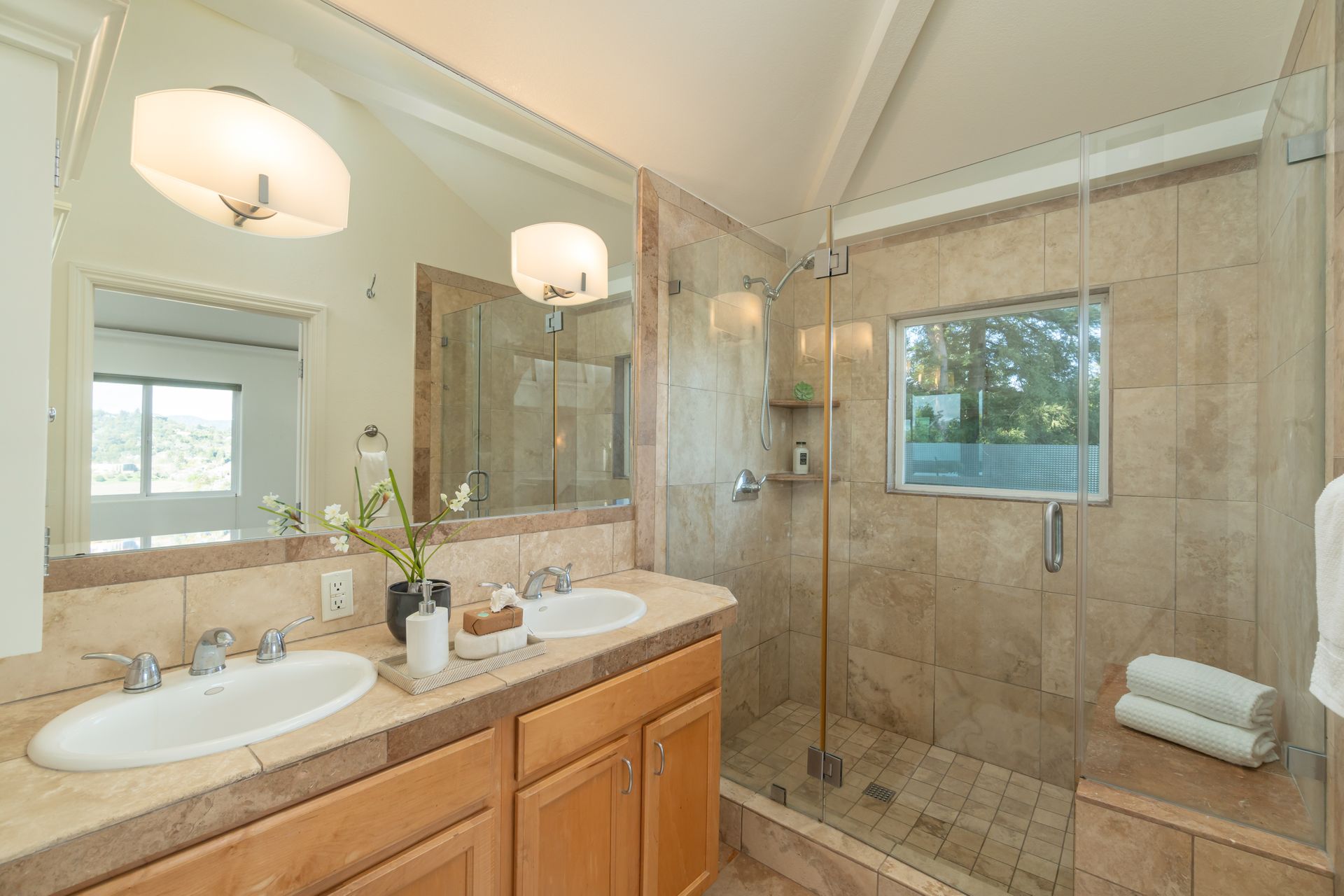 Beautifully remodeled contemporary home with lovely views in a serene, temperate location with top-ranked schools and within easy access to transportation, shops, fabulous restaurants, and hiking trails. 3 bedrooms including a spacious, sunny master suite with an elegant master bathroom and adjoining private deck with panoramic views of the surrounding hills, estuary and bay. Custom kitchen, living room with gas fireplace, guest bathroom and a versatile sunroom provide an open floor plan and great work from home environment. There is a large, enclosed private garden and lawn for entertaining, play and gardening and an attached garage with storage. Second driveway affords ample parking for guests. Convenient to Larkspur Ferry/Bay bike trail.