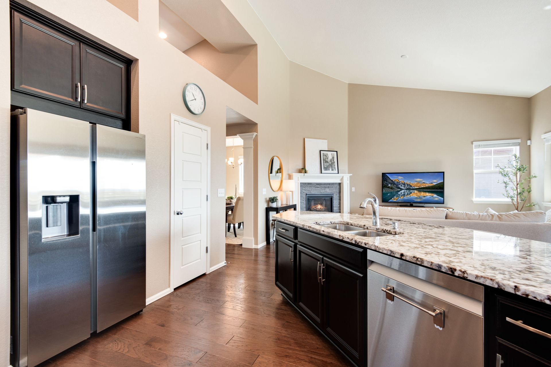 Welcome to this stunning, like-new, three bedroom, four bath ranch home in the sought-after Broomfield Highlands neighborhood. As you venture through the foyer, you're greeted by the elegance of a formal dining room and the heart of the home—a spacious, gourmet kitchen. The kitchen features an oversized island with granite countertops, stainless steel appliances and ample pantry space, perfect for any culinary enthusiast. Entertaining is a breeze with the large butler's pantry and buffet area that seamlessly connects to the dining space. The family room and breakfast nook flow effortlessly from the kitchen, offering an open-concept layout with sliding doors that lead to a large, covered patio—ideal for outdoor gatherings. This home is packed with upgrades, including extended hardwood floors and exquisite paneling in the dining room, adding a touch of luxury. The main floor boasts a generously sized primary bedroom with plenty of natural light, an ensuite full bath and a spacious walk-in closet. A second bedroom on the main floor also features an ensuite full bath and walk-in closet, ensuring comfort and privacy for guests. A convenient powder room rounds out the main level. Head downstairs to discover a large recreation room with high ceilings, perfect for relaxing or entertaining. The lower level also offers a versatile office/flex space, a third bedroom with an ensuite full bath and two expansive unfinished areas, providing endless possibilities for customization. This home is truly a gem—don’t miss the opportunity to make it yours!