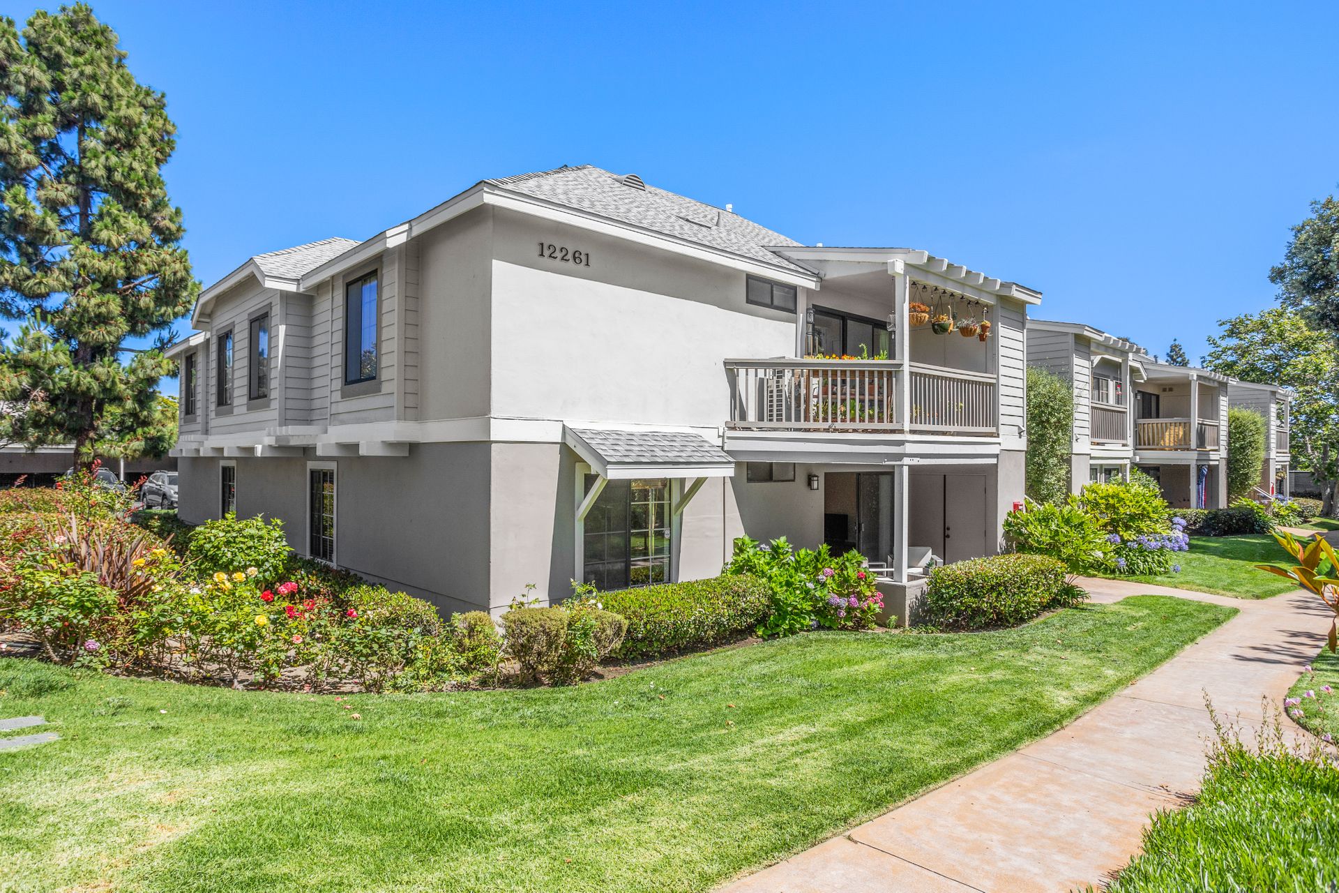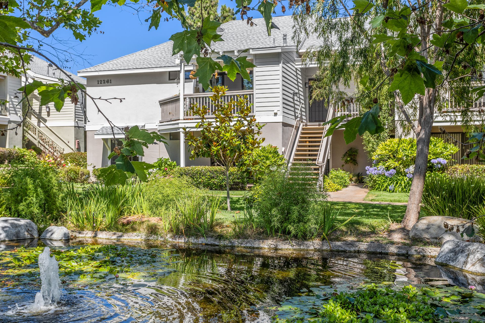 Don't miss this opportunity to reside in the Lakes at Carmel Del Mar, where convenience, comfort and a peaceful ambiance await. This end-unit ground floor two bedroom, two bathroom condo with picturesque lake views creates a tranquil atmosphere accompanied by soothing water sounds.