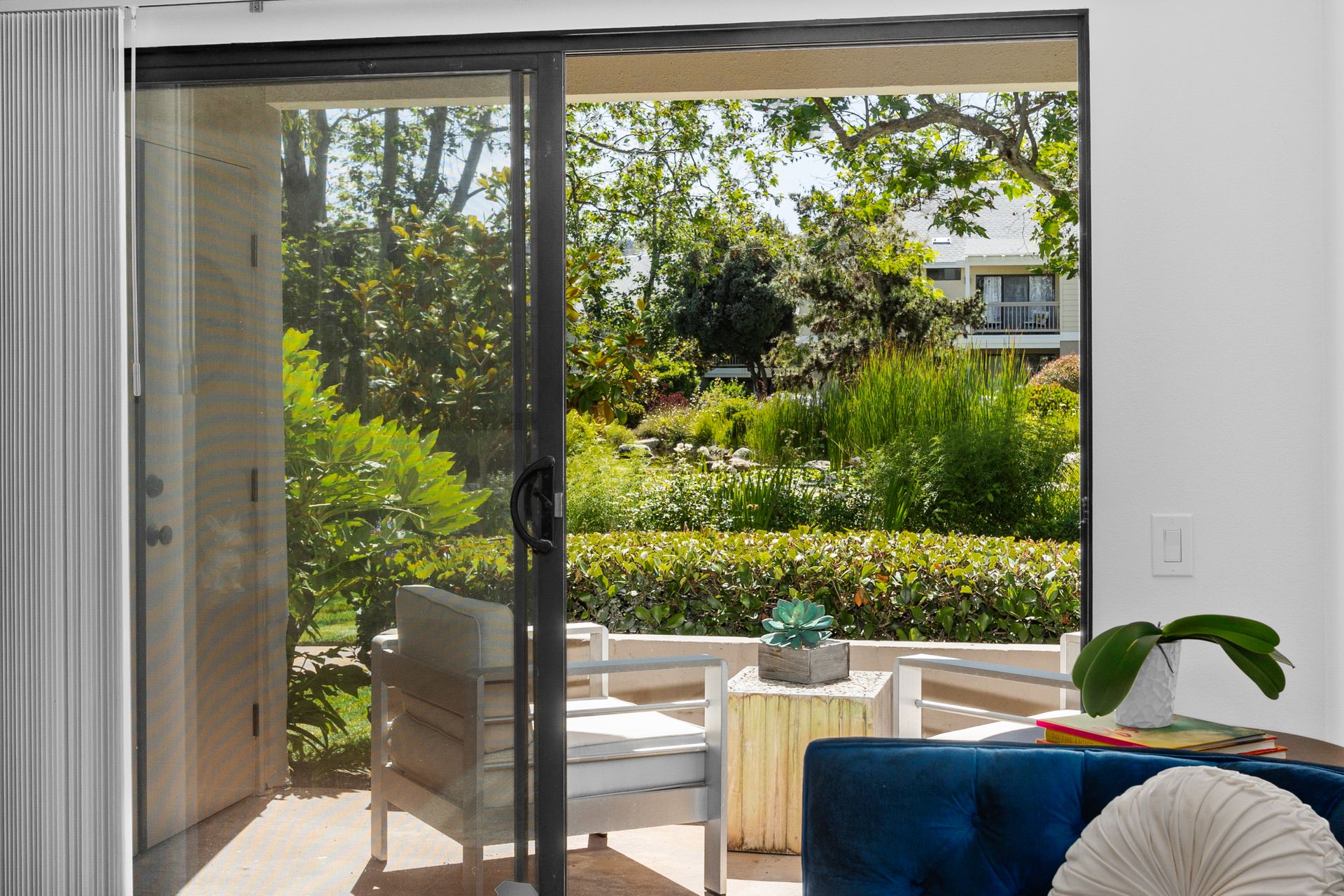 Step inside and be greeted by the open-concept living and dining area that seamlessly connects to a peaceful patio and unwind while overlooking the serene water view and the adjacent rose garden, adding a touch of natural beauty to your surroundings. Newly remodeled baths and a refreshed kitchen add a touch of modern elegance.