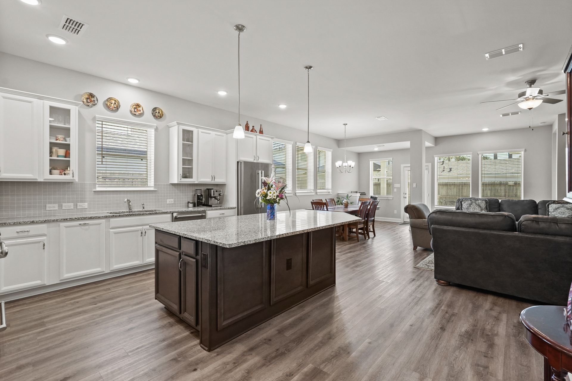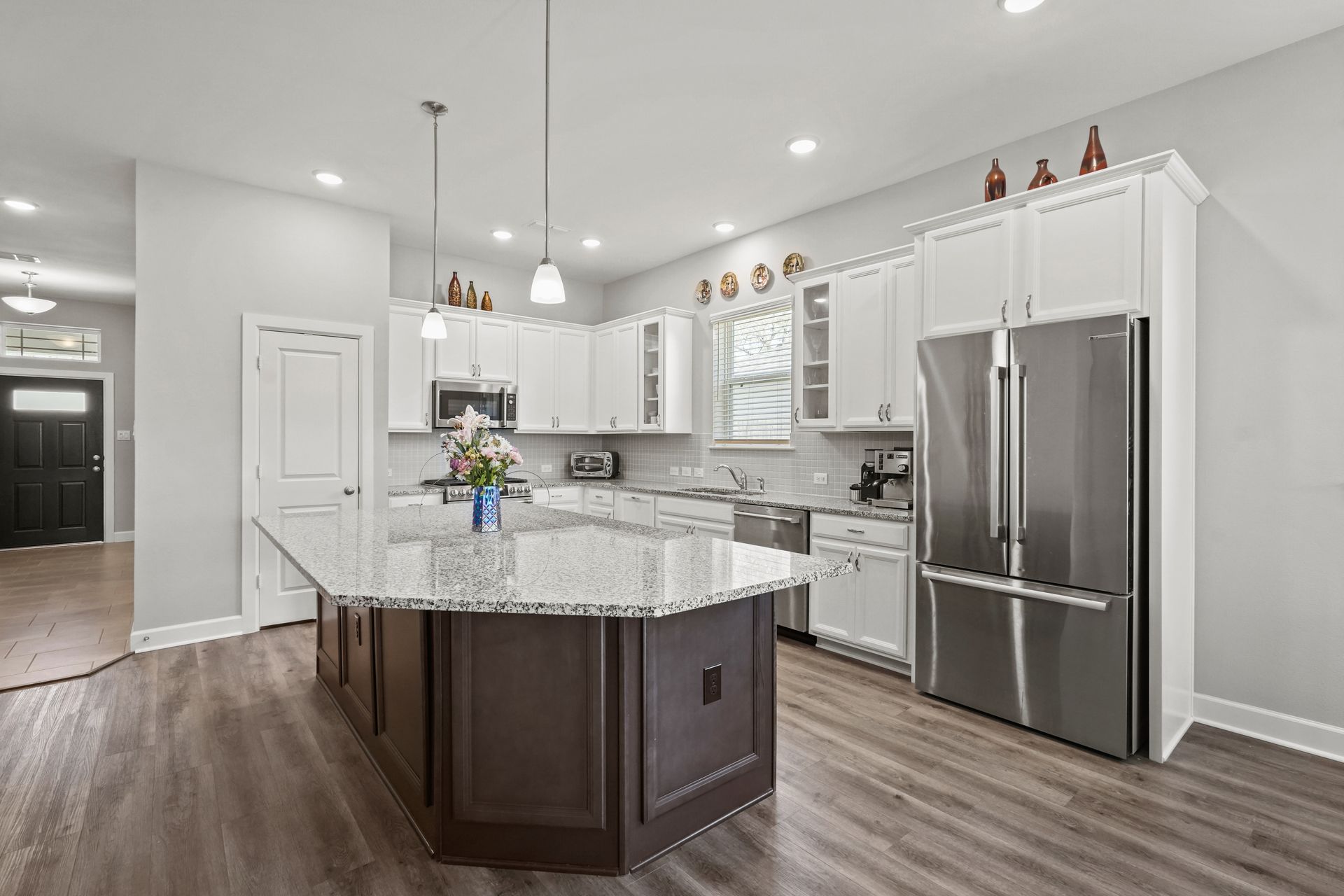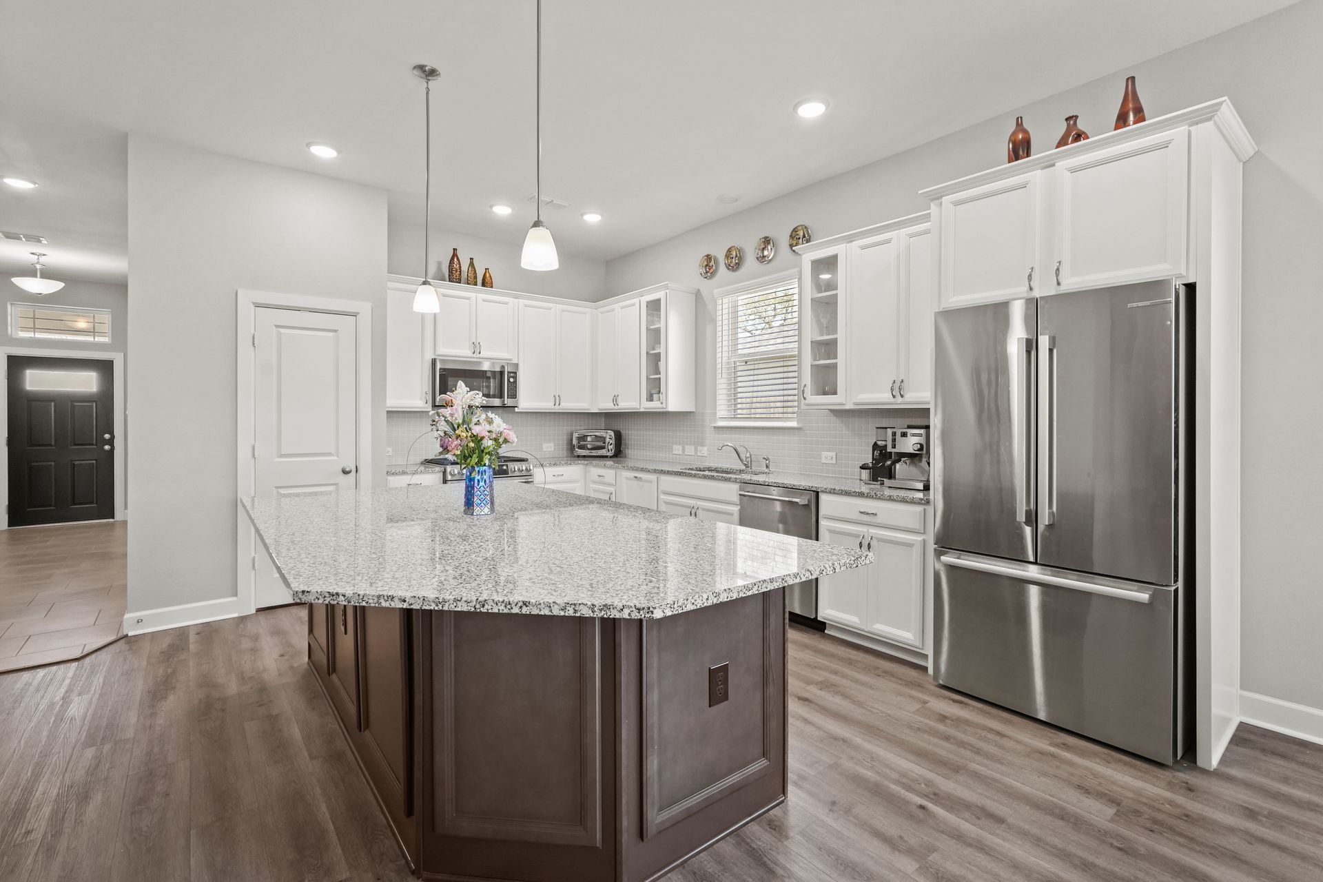 Step into refined living with this recently constructed gem, designed for those who value efficiency without compromising style. The heart-of-the-home is a spacious, oversized kitchen island standing ready for meals or gatherings, while the open floor plan seamlessly integrates living spaces, creating an airy atmosphere encouraging togetherness. Nestled in a vibrant community near the park, inviting leisurely strolls or active play and culinary adventures await with new dining options all around, perfect for modern foodies. You’ll find an A+-rated elementary school. While cozier than some, every inch is crafted to maximize space, proving modern comfort can be found in the most elegantly wrapped packages. Discerning buyers will appreciate the benefits of new construction: Energy efficiency, modern amenities and peace of mind that comes with the latest design and building standards. Sizeable backyard with room for potential pool. Come, embrace the ease of modern living woven seamlessly with community warmth.