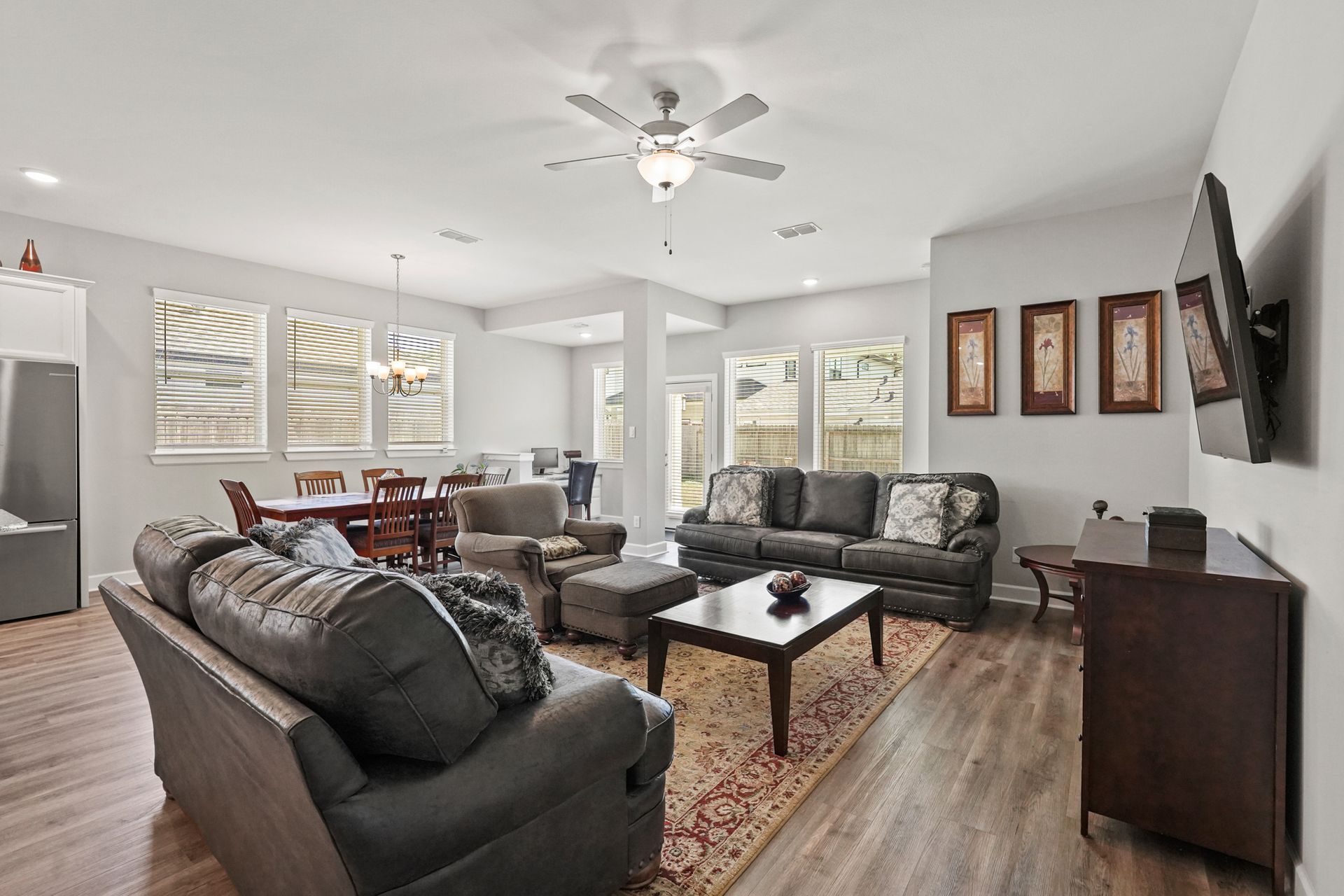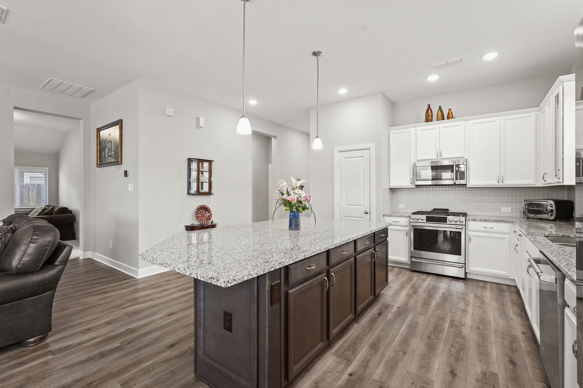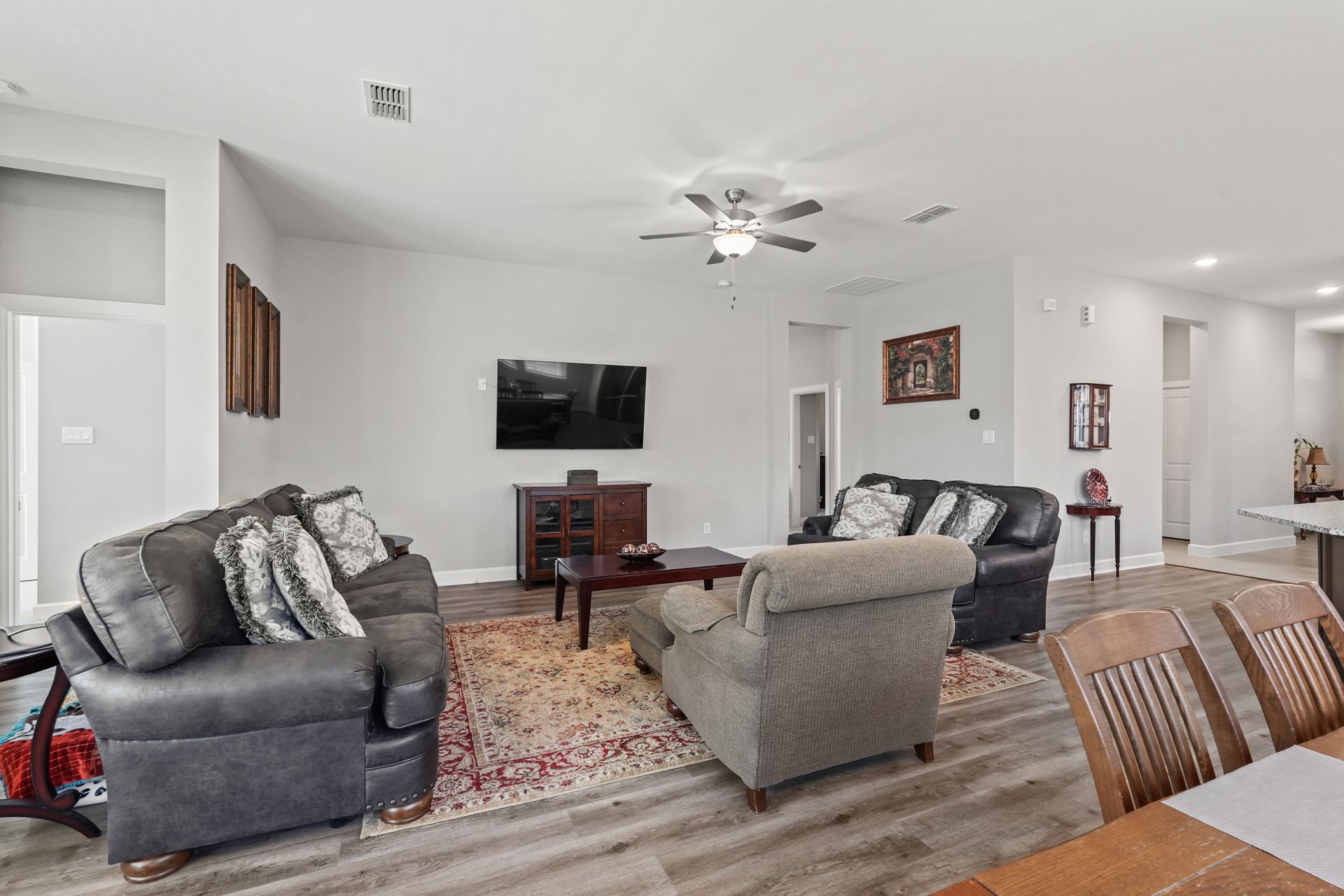 Step into refined living with this recently constructed gem, designed for those who value efficiency without compromising style. The heart-of-the-home is a spacious, oversized kitchen island standing ready for meals or gatherings, while the open floor plan seamlessly integrates living spaces, creating an airy atmosphere encouraging togetherness. Nestled in a vibrant community near the park, inviting leisurely strolls or active play and culinary adventures await with new dining options all around, perfect for modern foodies. You’ll find an A+-rated elementary school. While cozier than some, every inch is crafted to maximize space, proving modern comfort can be found in the most elegantly wrapped packages. Discerning buyers will appreciate the benefits of new construction: Energy efficiency, modern amenities and peace of mind that comes with the latest design and building standards. Sizeable backyard with room for potential pool. Come, embrace the ease of modern living woven seamlessly with community warmth.