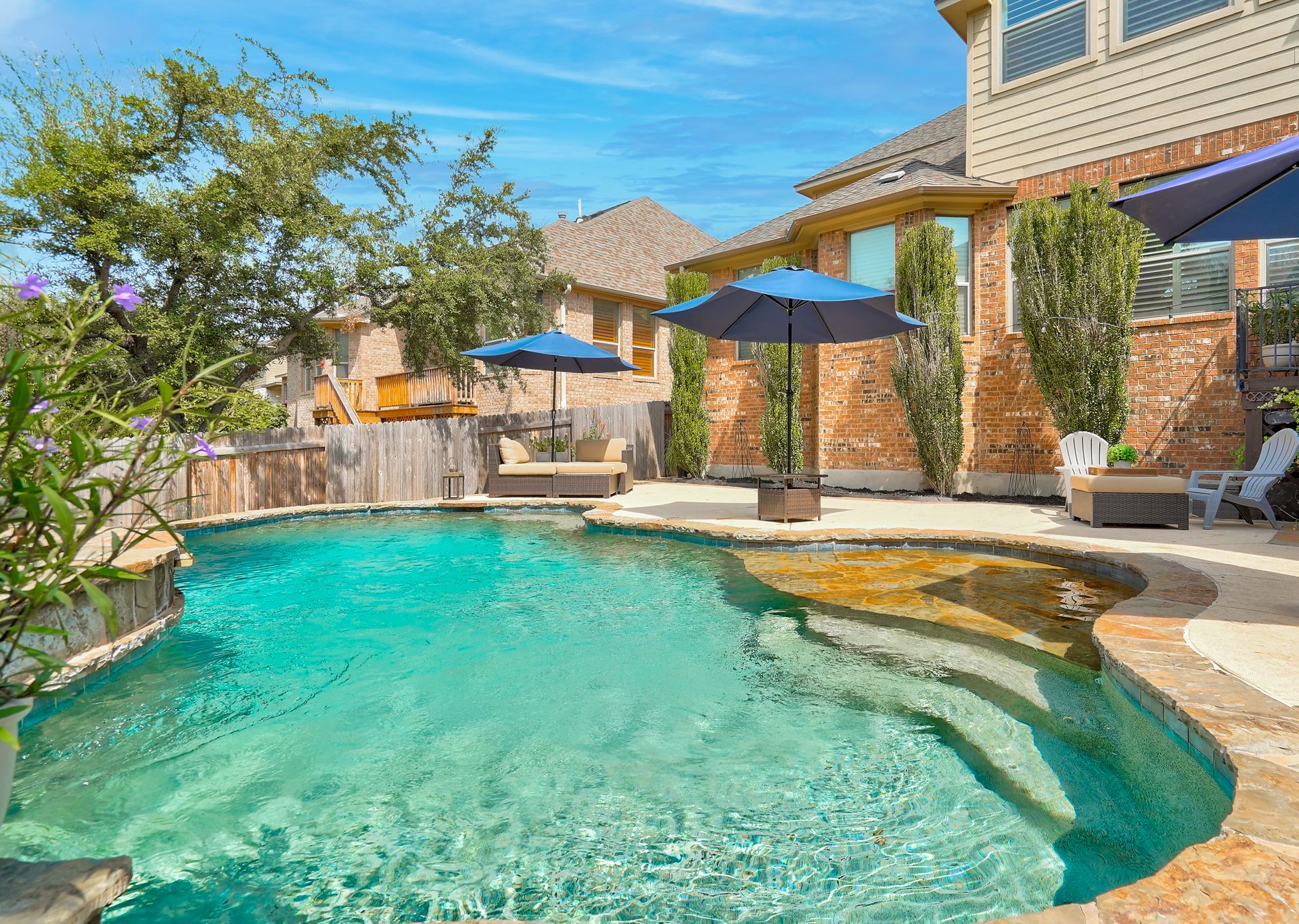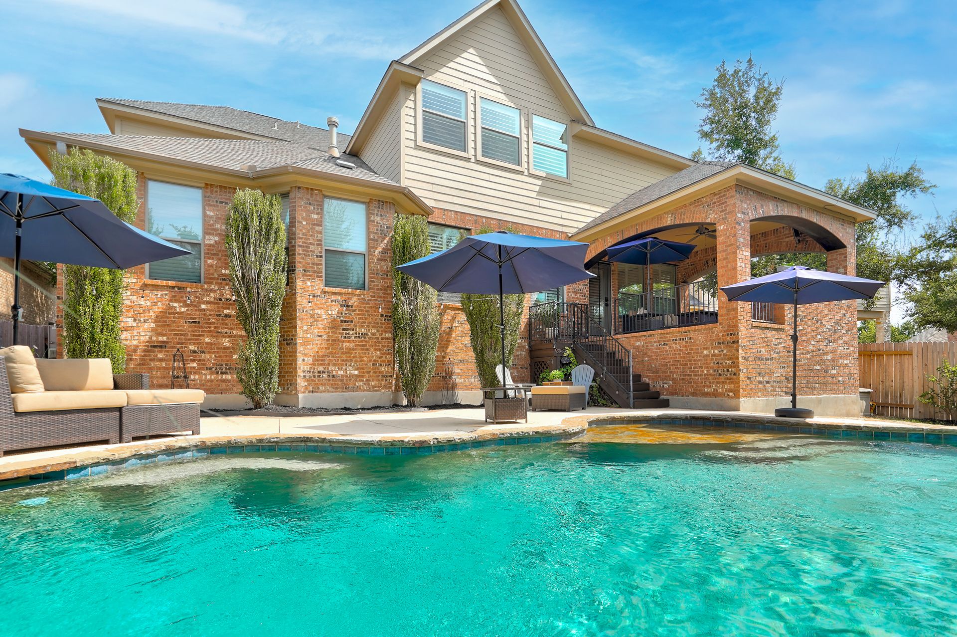 Sometimes we wait for just the right combination of location, style and value. Welcome home to this home's superior example of harmony within. Where each room, bedroom, patio and even the sparkling blue pool feels like a retreat, a place to unwind and relax. Stunning wood craftsmanship throughout the home blends seamlessly with the neutral stone finishes throughout. Soaring ceilings greet your entryway, leading to clear separations between work and play, entertaining and private spaces. Without wasting space, this five bedroom plus a generously sized upstairs game room is ingenious in design and function. From the spacious kitchen with its uninterrupted slab island to the cozy family room with gas fireplace and built-in bookcases, to the separated secondary bedrooms upstairs, each with their own en-suite vanities and bathrooms, you simply must see the pride of ownership; it is a fabulous opportunity to own a home of this craftsmanship and location. Add in the benefits of a recent addition "bonus" room that is perfect for a home gym, podcast studio or true "blackout" media room, a two-and-a-half-car garage for added storage, fresh paint and a newer roof, this is an ideal investment for those buyers looking for a "safe bet." For the outdoor enthusiasts, this home is just two blocks away from Steiner Ranch's largest amenity center; the Bella Mar complex features soccer, basketball and tennis space as well as an expansive aquatic center with a shaded toddler pool, kids activity pool and two additional pools including an Olympic-sized, year-round temperature controlled pool. Come experience Steiner Ranch living at its best, with "big sky" views, built-in community events, blue-ribbon LISD schools, private Lake Austin access, 27 miles to hike and bike and the brand-new business bypass for quicker access to Vandegrift High School, the Domain and downtown Austin.