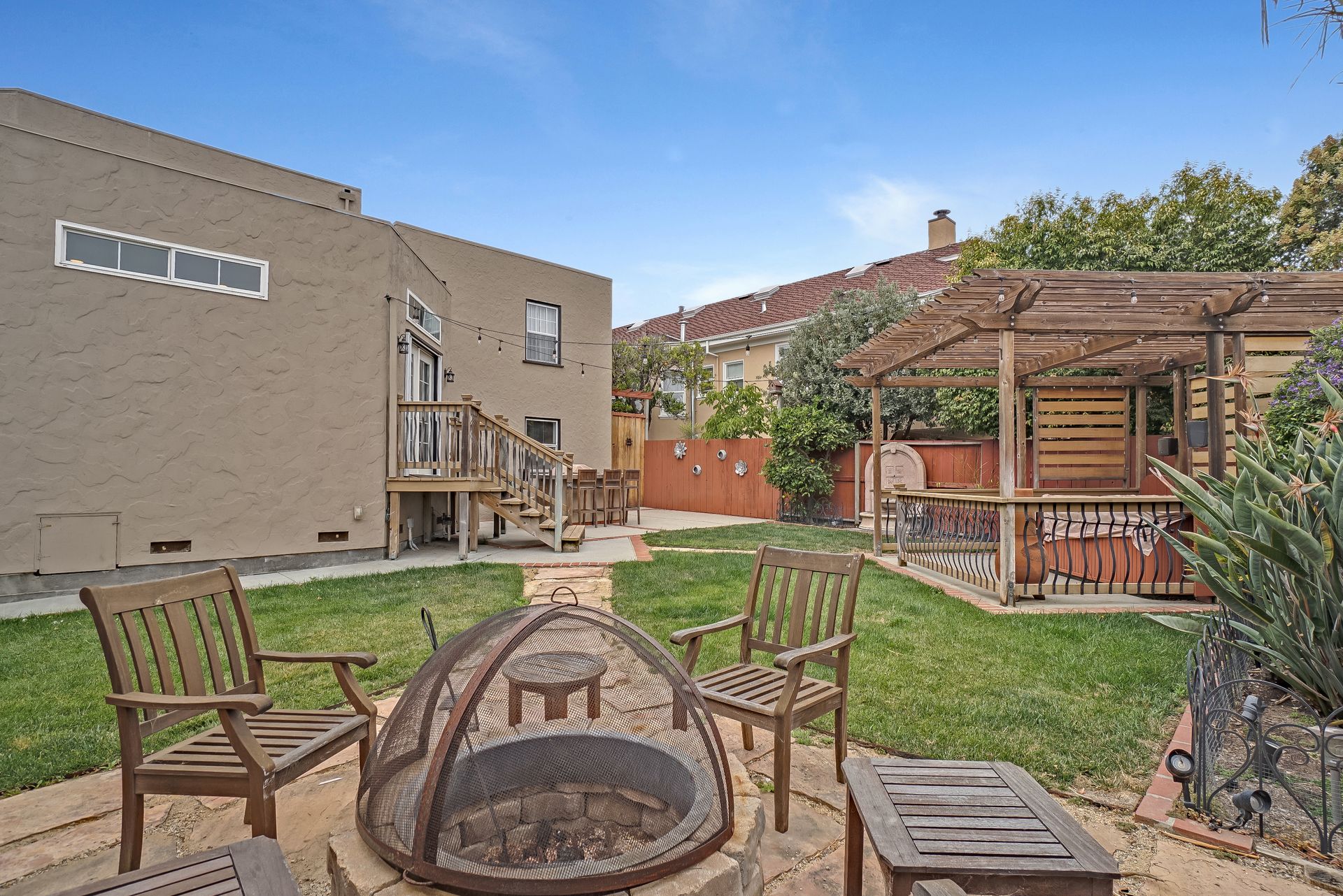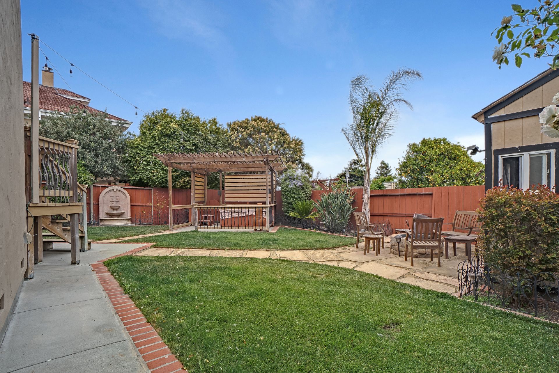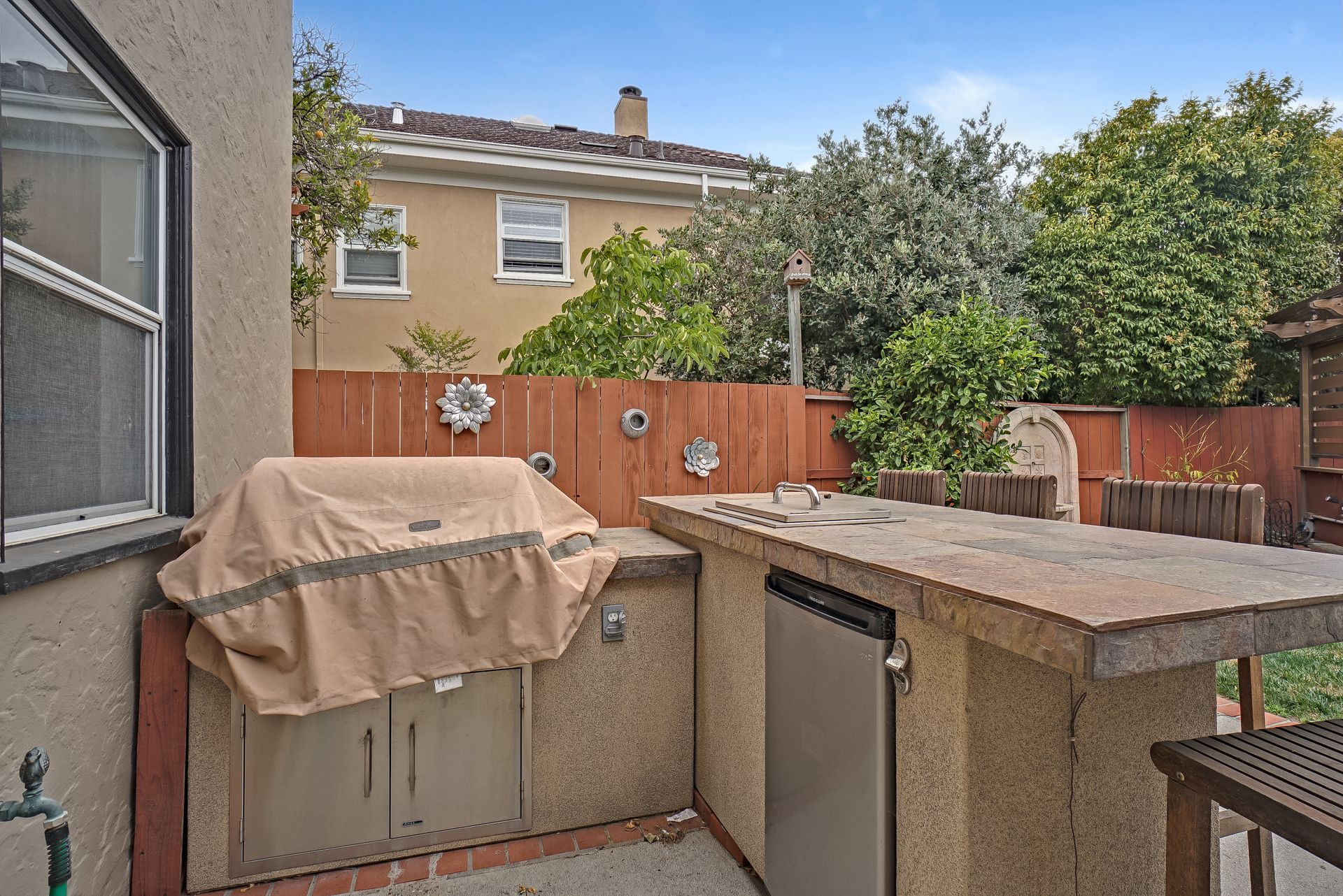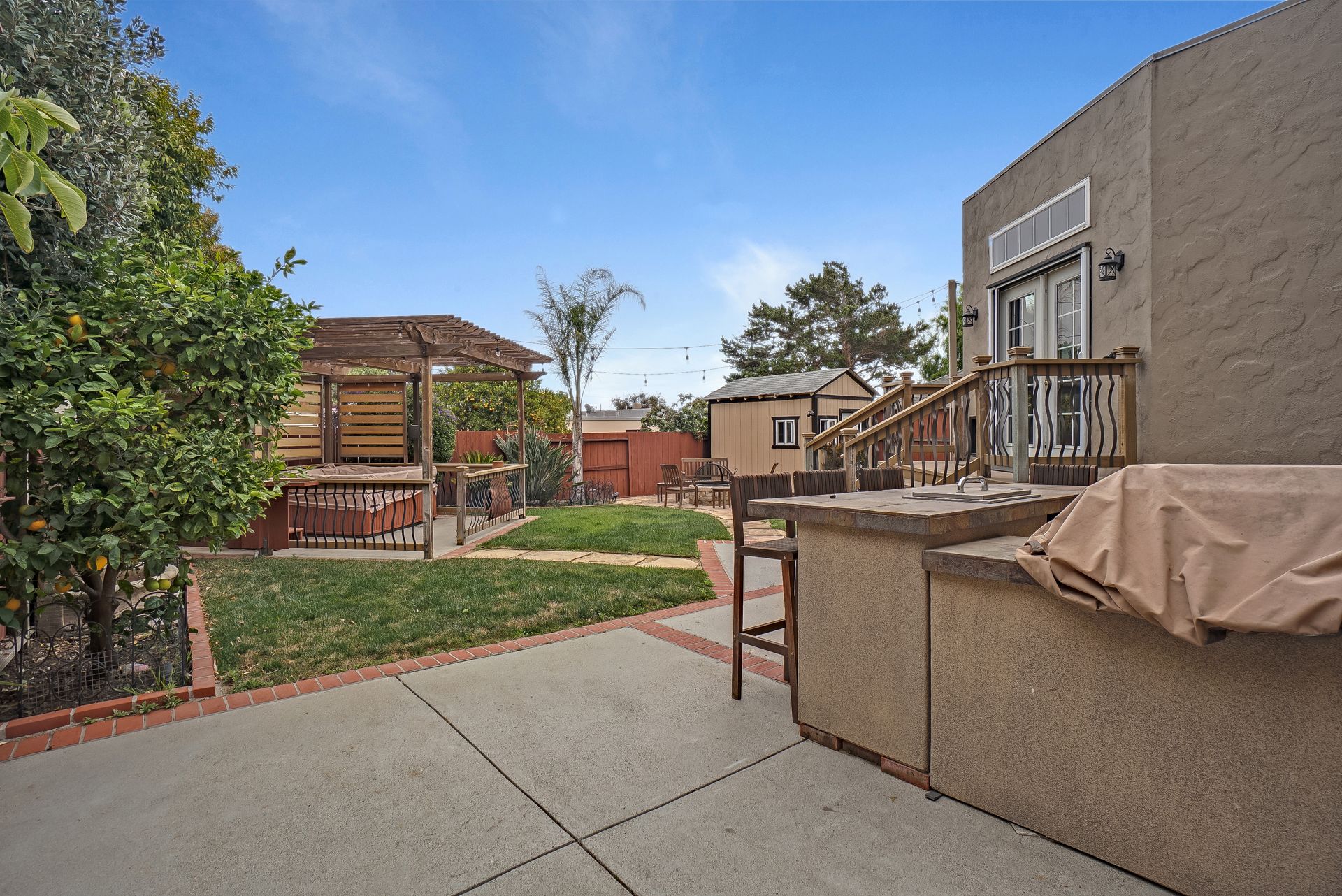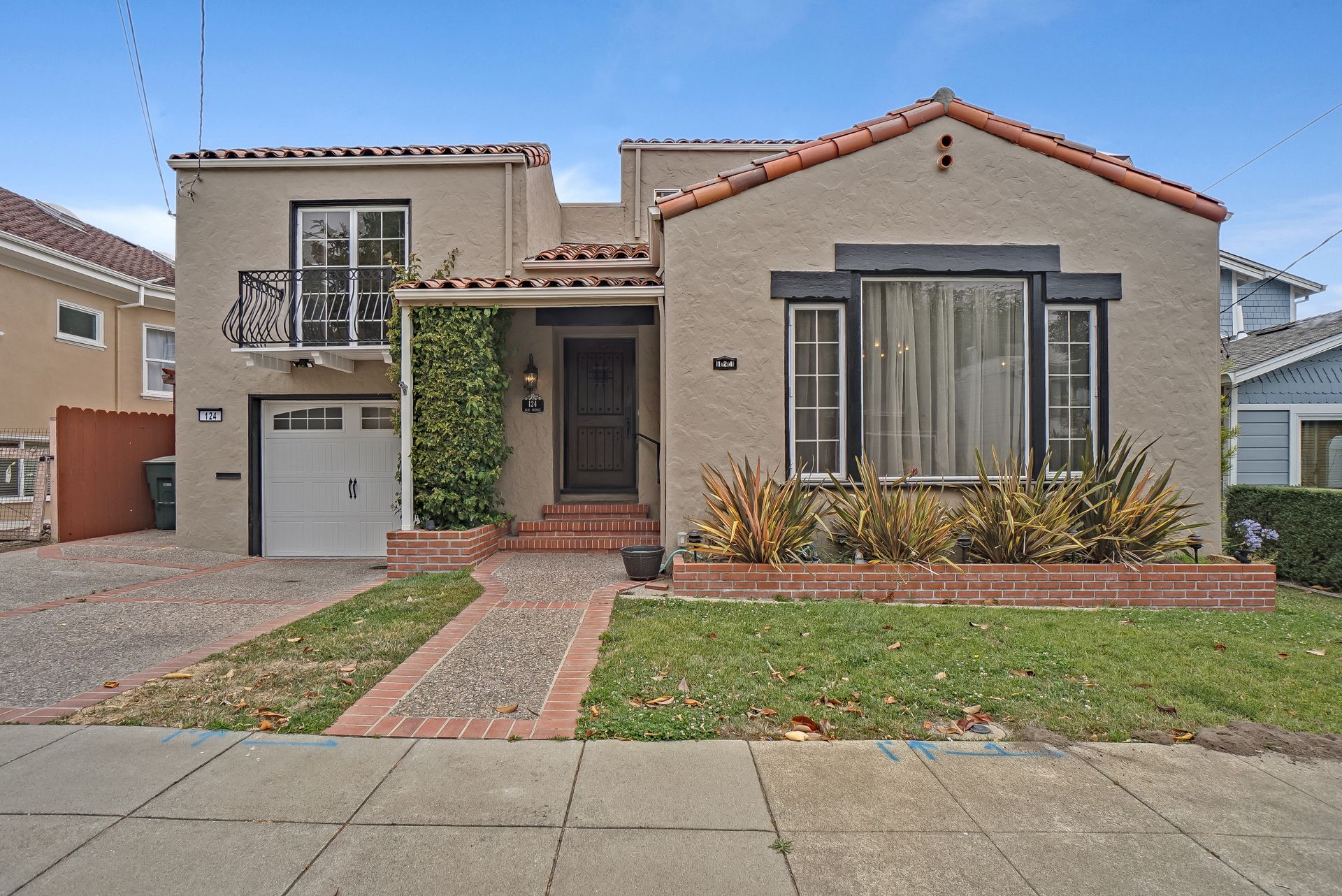 This fabulous remodeled three bedroom, two and one-half bath Spanish style home is located in the Huntington Park neighborhood of San Bruno. Features include a stunning remodeled kitchen with Italian porcelain countertops, a center island, double oven, microwave oven, gas cooktop, a lot lovely cabinets with soft close drawers, low voltage and recessed lighting, a breakfast bar, computer desk and tiled floors, a family room with recessed lighting, a bonus room and a one-half bath off the garage, double pane windows, beautiful hardwood floors, a tankless water heater, a formal dining room with an archway, a living room with a fireplace and beamed ceilings, a remodeled hall bathroom with a Jacuzzi style tub, granite topped vanity with dual sinks and tiled floors, crown molding in all of the bedrooms, a front bedroom with a balcony, a primary bedroom suite with a garden window, recessed lighting and a walk-in closet, a remodeled primary bathroom with a tiled shower stall, granite topped vanity and tile floors, great entertainment options with an awesome landscaped back yard with a patio area, hot tub, firepit, built-in barbecue, lawn area, fountain and storage shed, an attached one-car garage and more. Enjoy this lovely, remodeled home in a great neighborhood. The home offers approximately 2,340 square feet of livable space all sitting on an approximately 5,000 square foot lot.