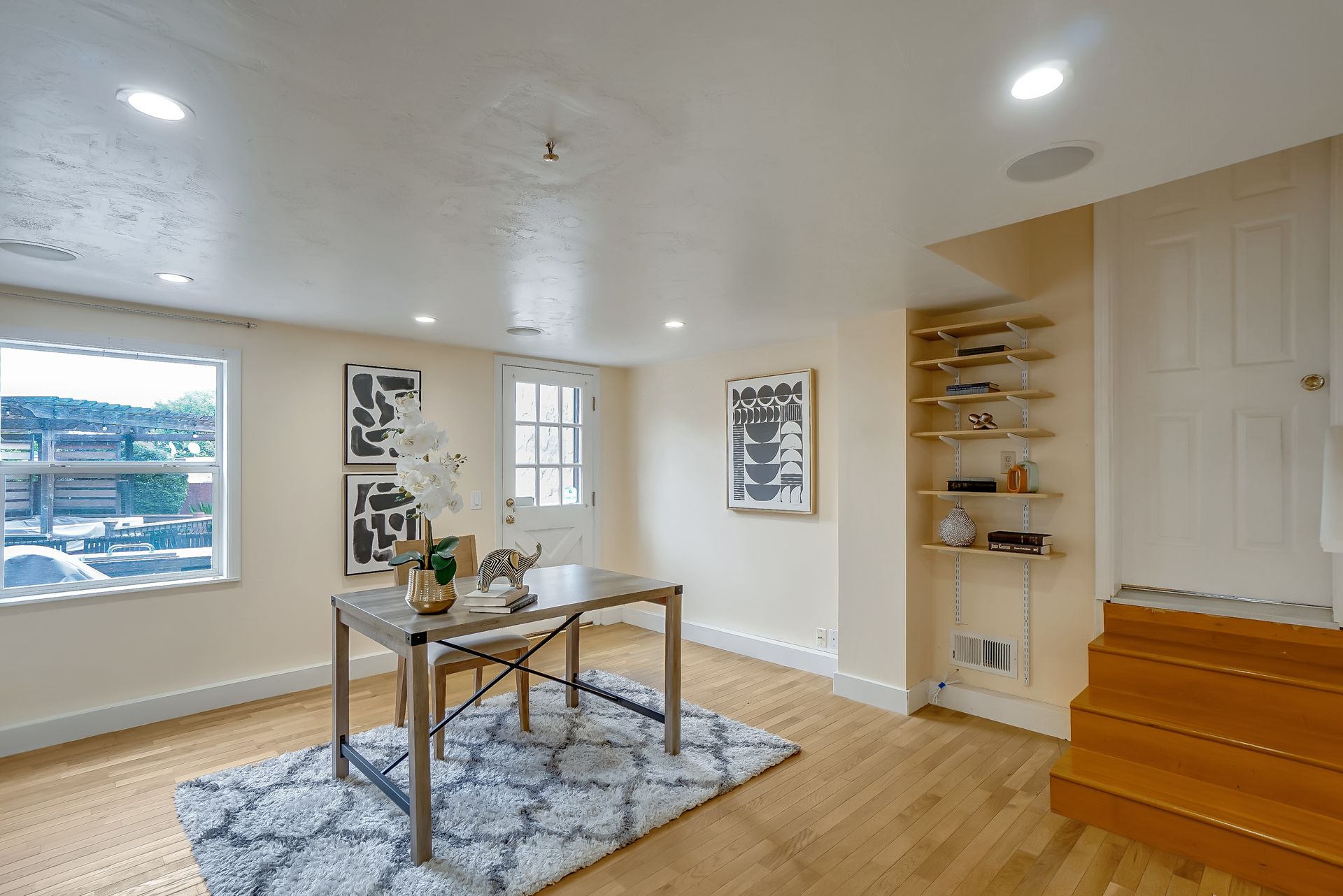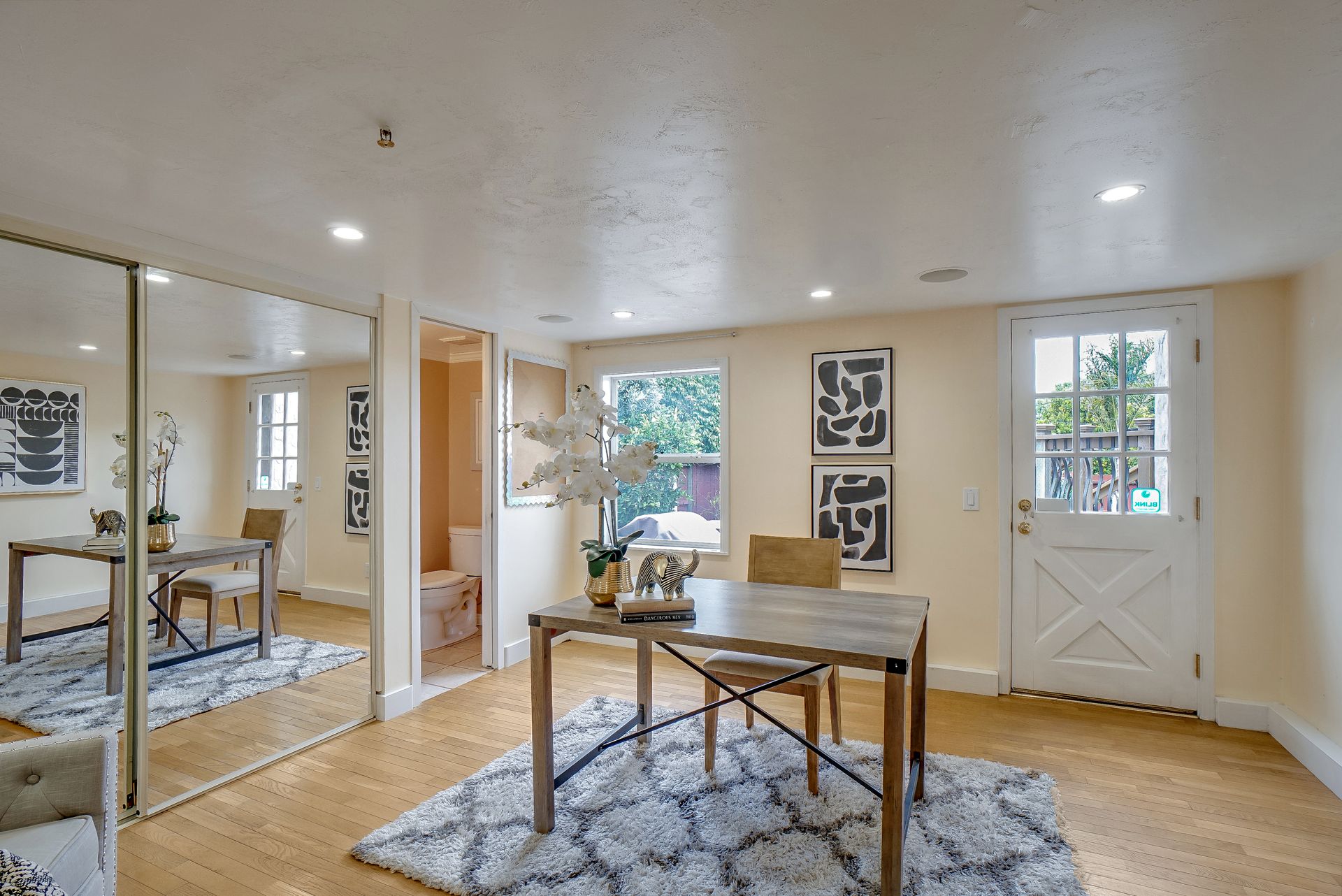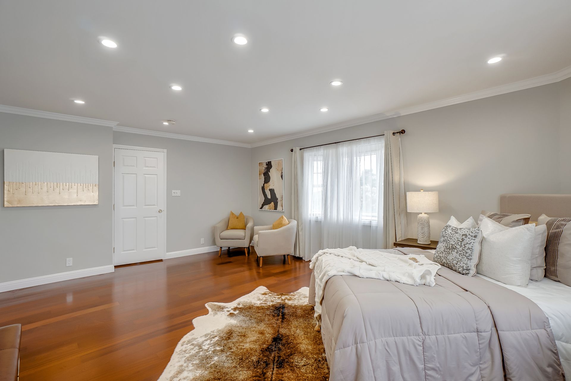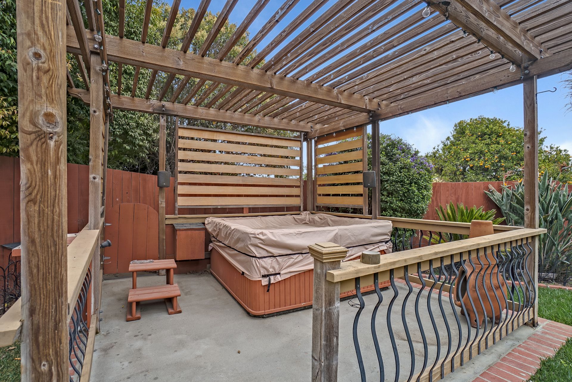 This fabulous remodeled three bedroom, two and one-half bath Spanish style home is located in the Huntington Park neighborhood of San Bruno. Features include a stunning remodeled kitchen with Italian porcelain countertops, a center island, double oven, microwave oven, gas cooktop, a lot lovely cabinets with soft close drawers, low voltage and recessed lighting, a breakfast bar, computer desk and tiled floors, a family room with recessed lighting, a bonus room and a one-half bath off the garage, double pane windows, beautiful hardwood floors, a tankless water heater, a formal dining room with an archway, a living room with a fireplace and beamed ceilings, a remodeled hall bathroom with a Jacuzzi style tub, granite topped vanity with dual sinks and tiled floors, crown molding in all of the bedrooms, a front bedroom with a balcony, a primary bedroom suite with a garden window, recessed lighting and a walk-in closet, a remodeled primary bathroom with a tiled shower stall, granite topped vanity and tile floors, great entertainment options with an awesome landscaped back yard with a patio area, hot tub, firepit, built-in barbecue, lawn area, fountain and storage shed, an attached one-car garage and more. Enjoy this lovely, remodeled home in a great neighborhood. The home offers approximately 2,340 square feet of livable space all sitting on an approximately 5,000 square foot lot.
