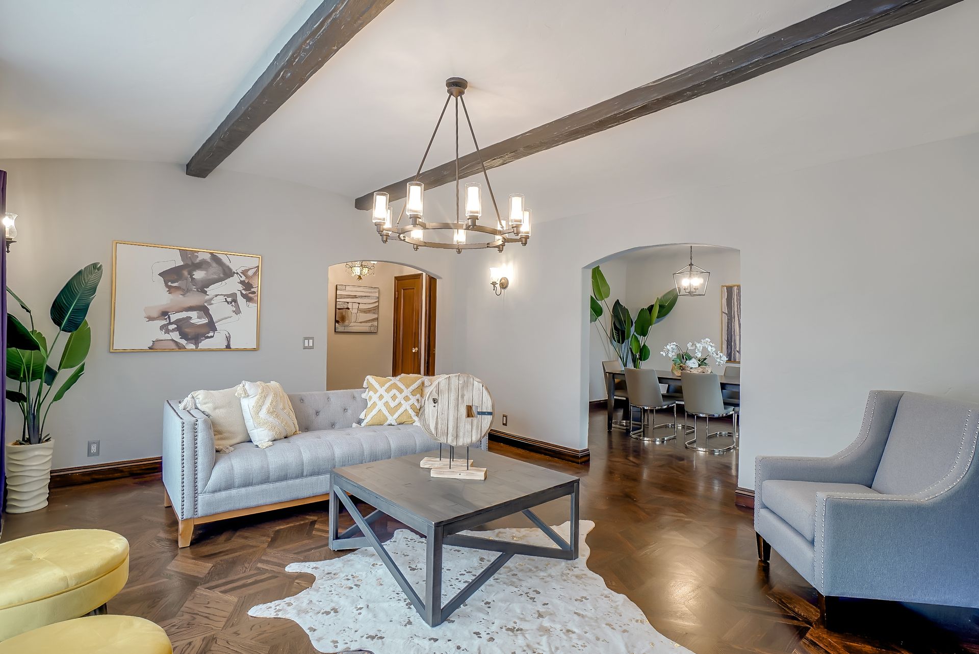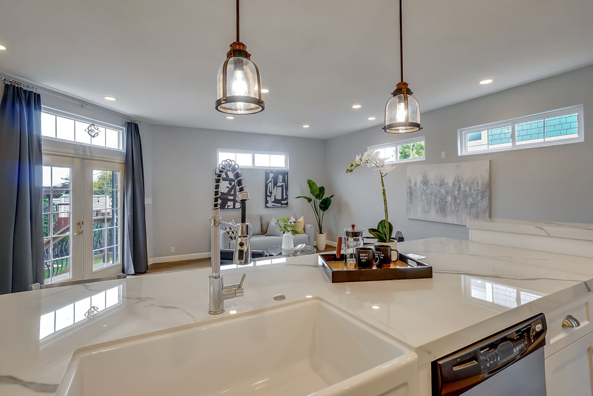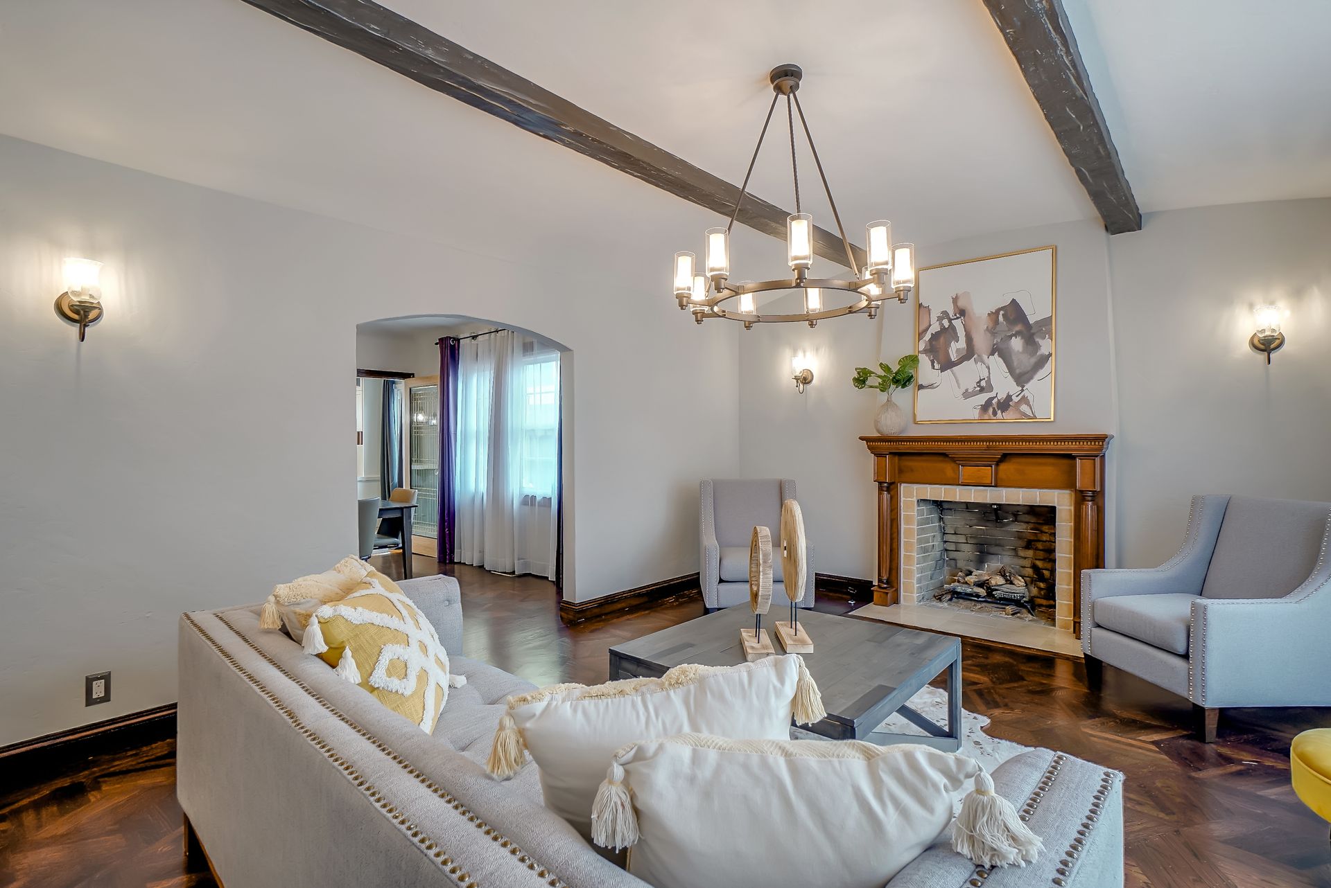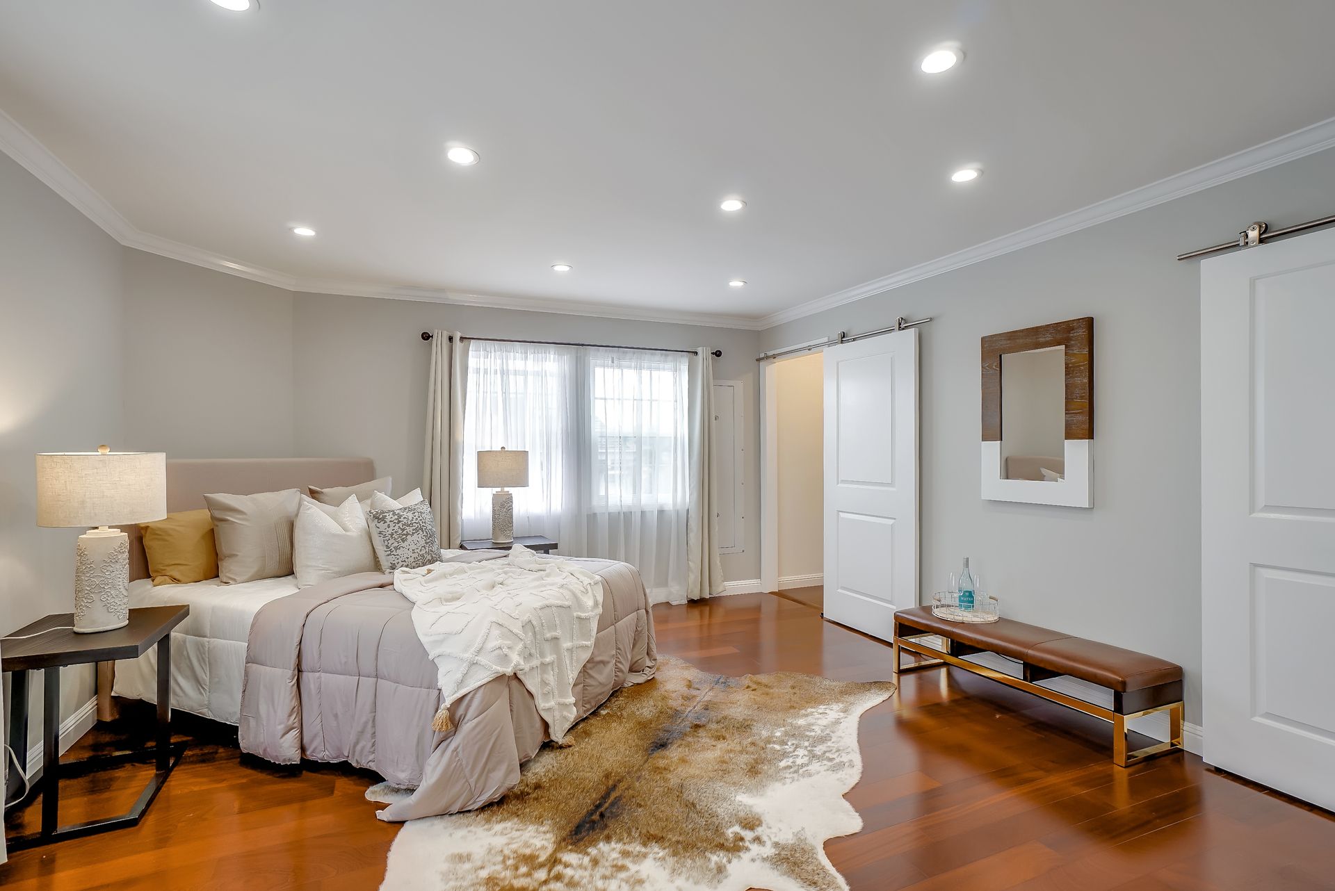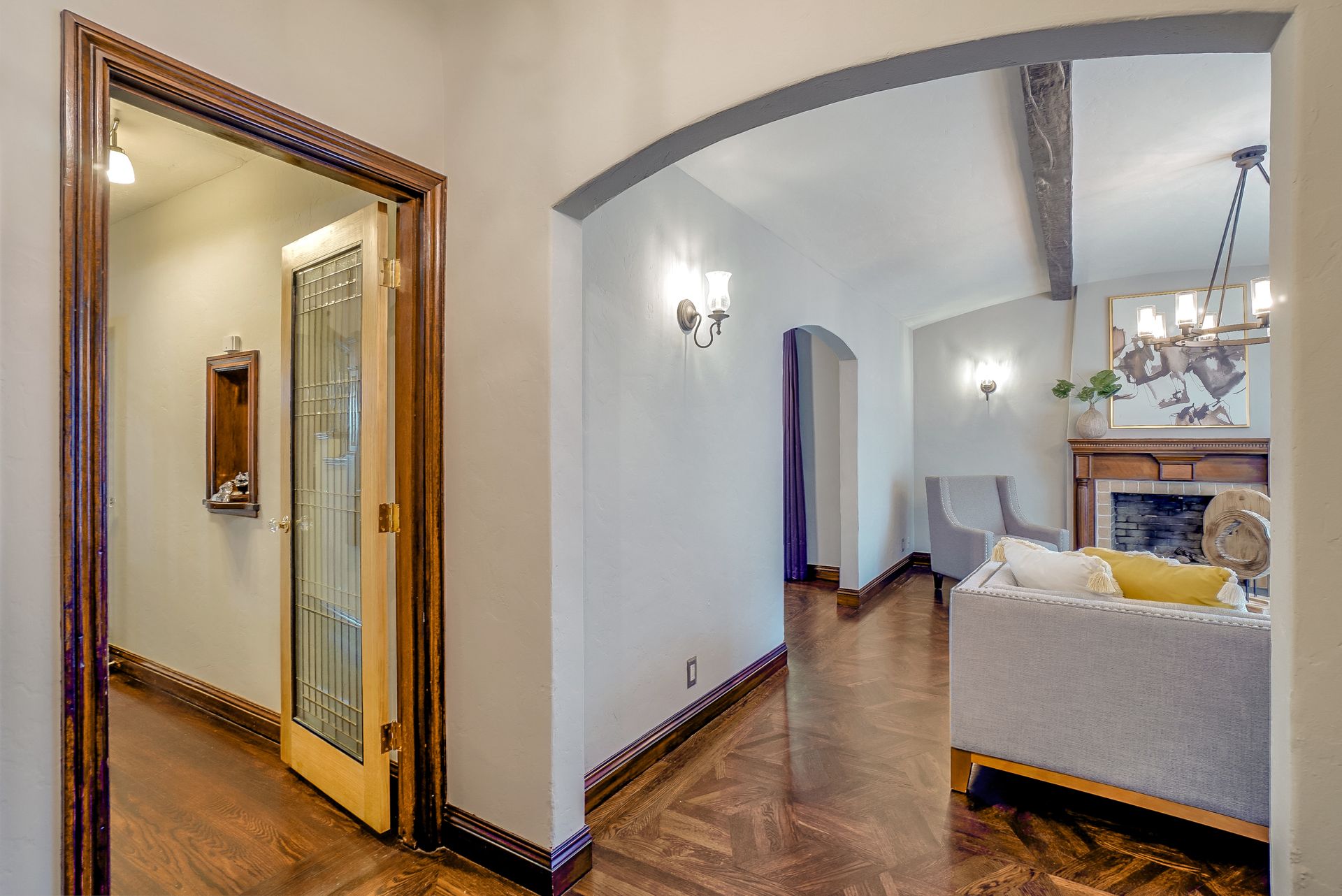 This fabulous remodeled three bedroom, two and one-half bath Spanish style home is located in the Huntington Park neighborhood of San Bruno. Features include a stunning remodeled kitchen with Italian porcelain countertops, a center island, double oven, microwave oven, gas cooktop, a lot lovely cabinets with soft close drawers, low voltage and recessed lighting, a breakfast bar, computer desk and tiled floors, a family room with recessed lighting, a bonus room and a one-half bath off the garage, double pane windows, beautiful hardwood floors, a tankless water heater, a formal dining room with an archway, a living room with a fireplace and beamed ceilings, a remodeled hall bathroom with a Jacuzzi style tub, granite topped vanity with dual sinks and tiled floors, crown molding in all of the bedrooms, a front bedroom with a balcony, a primary bedroom suite with a garden window, recessed lighting and a walk-in closet, a remodeled primary bathroom with a tiled shower stall, granite topped vanity and tile floors, great entertainment options with an awesome landscaped back yard with a patio area, hot tub, firepit, built-in barbecue, lawn area, fountain and storage shed, an attached one-car garage and more. Enjoy this lovely, remodeled home in a great neighborhood. The home offers approximately 2,340 square feet of livable space all sitting on an approximately 5,000 square foot lot.