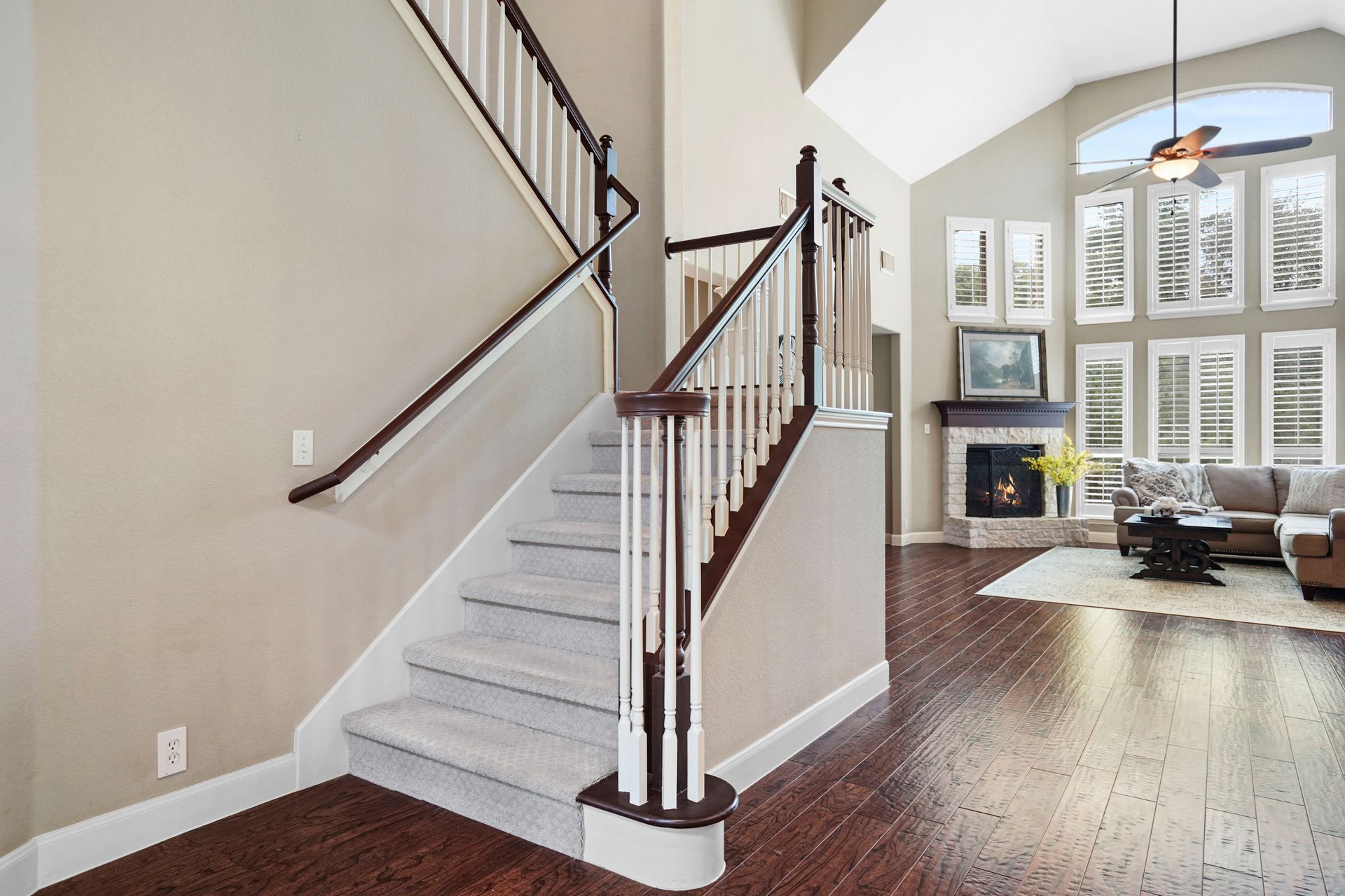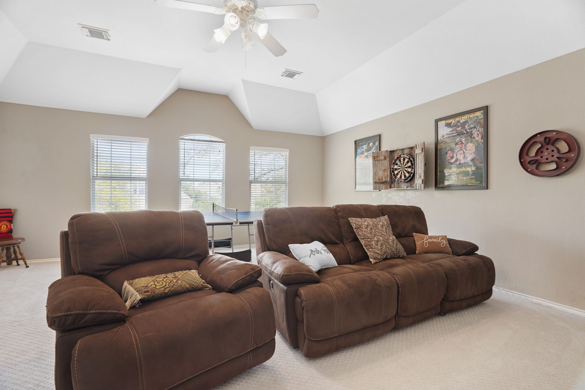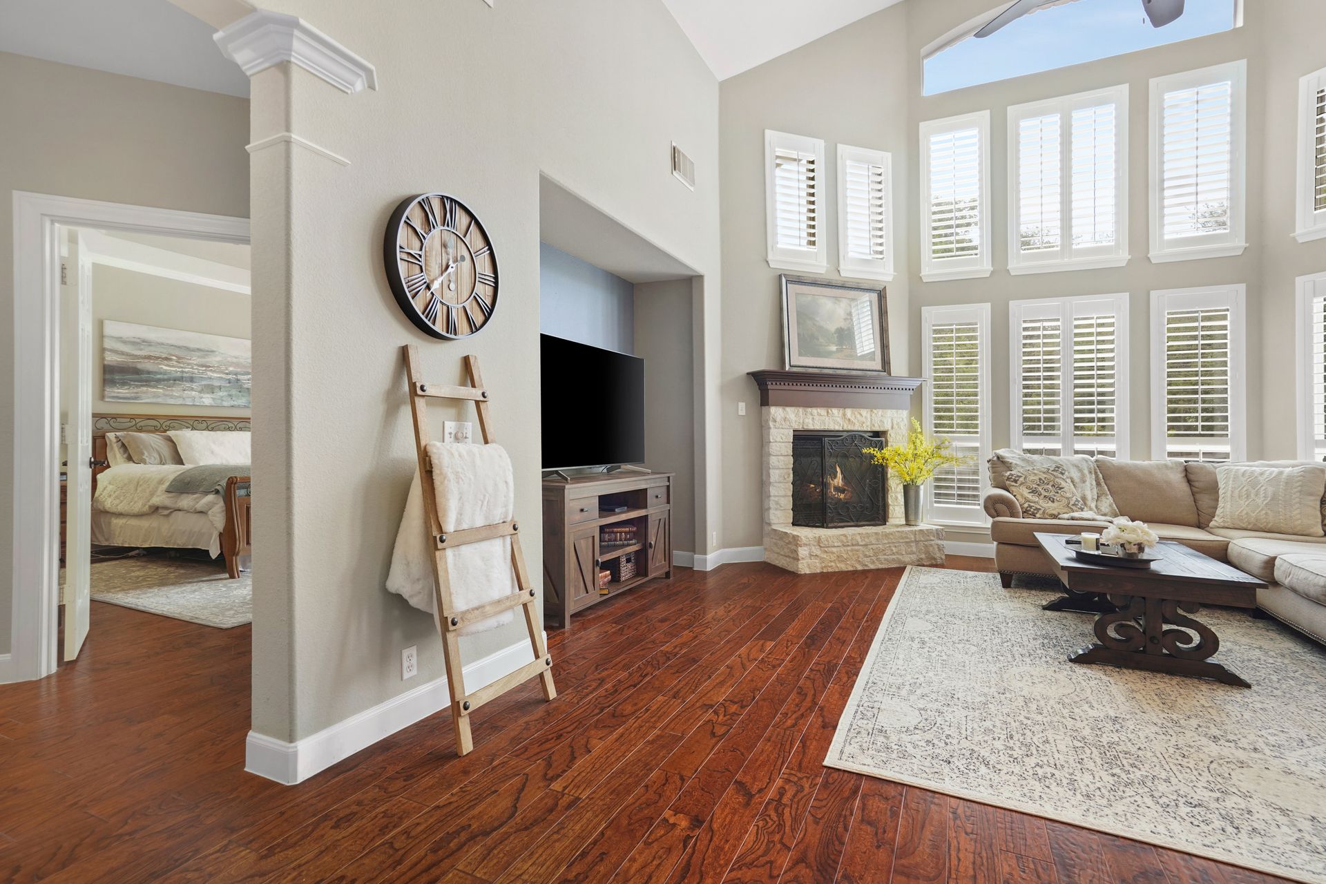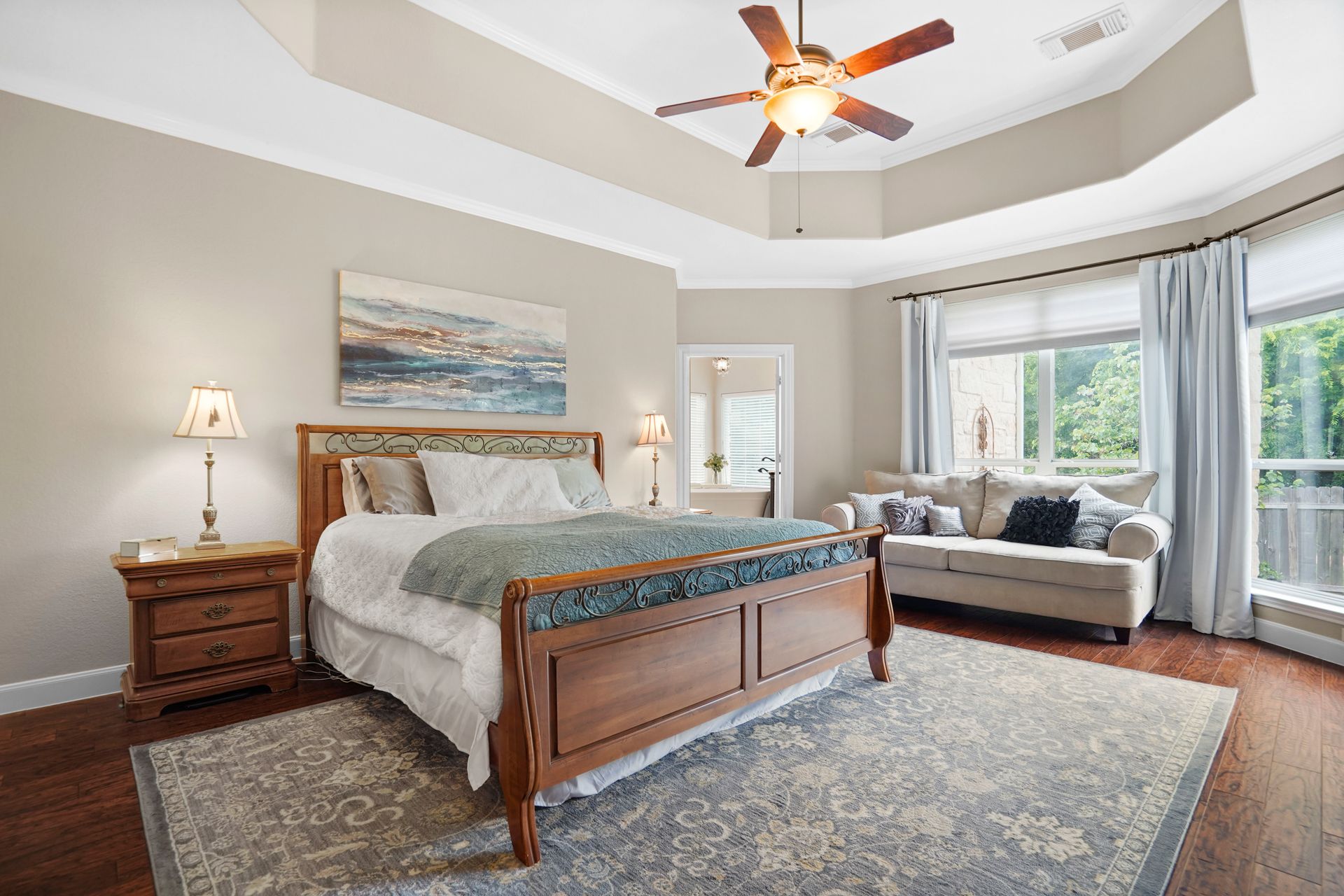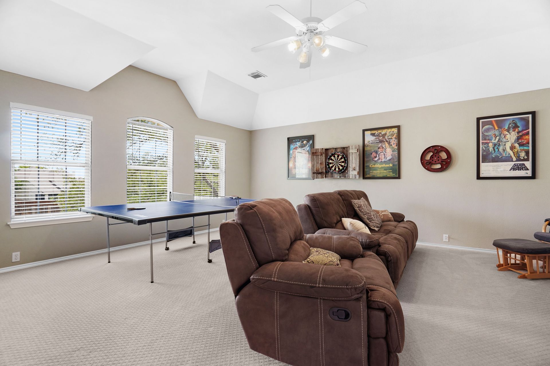 The home you have been waiting for! Located on a quiet cul-de-sac, this darling home is on a corner lot and backs a greenbelt. A spacious SIX bedroom home with a primary suite and two secondary bedrooms on the first floor. Both secondary bedrooms have closets, and privacy doors and share a three-quarter bath (one bedroom is en-suite with direct access, so it’s easy to use both as bedrooms or use as an office!) Soaring a two-story living room with a wall of windows anchors the gathering space in the home. Warm, inviting and flowing seamlessly into a spacious kitchen with abundant counters and cabinet space. Intentional and mindful storage throughout including a pantry that extends under the stairs and multiple storage closets throughout the home. The secondary back stairs are tucked away off the breakfast nook and land at an amazing flex space. Upstairs you'll find three additional bedrooms, two full baths and an oversized bonus room complete with a ping pong table and movie set up! The peaceful and serene backyard has a large two-level deck that wraps around the side of the house and a fire pit. Lots of room to play, practice soccer, plant a garden or build a pool. Grandview Hills is a quiet community that is near the Trails at 620, a multi-acre retail, services and eatery complex, including a Movie house and Eatery and schools. This is a rare opportunity to take advantage of this hard-to-find floor plan. A must-see!