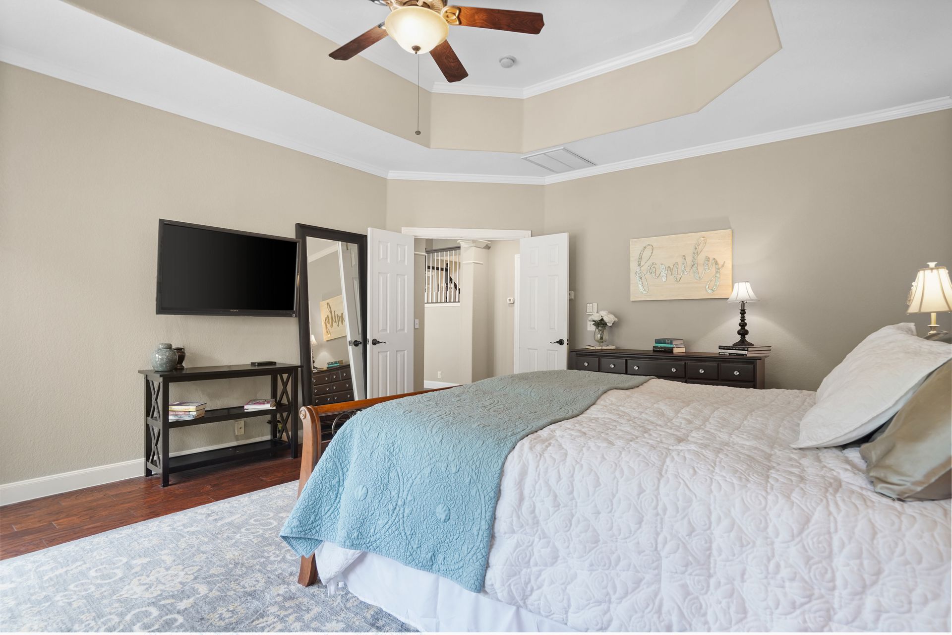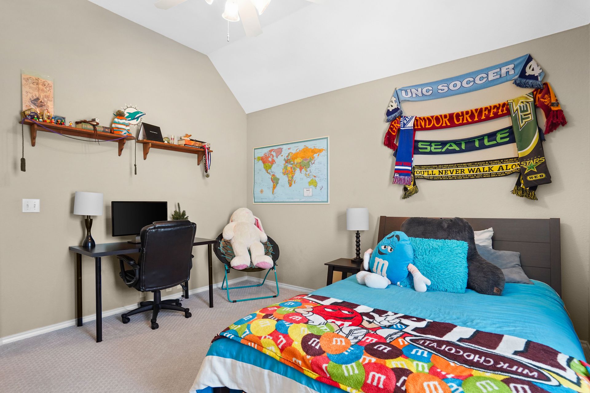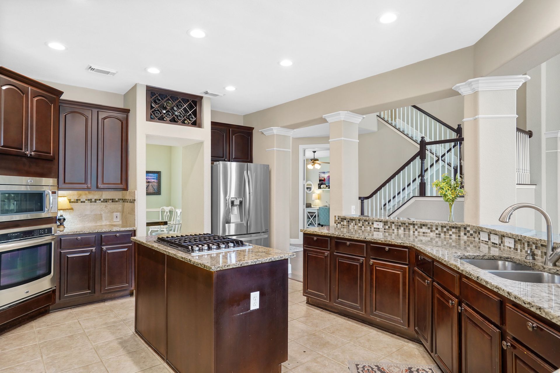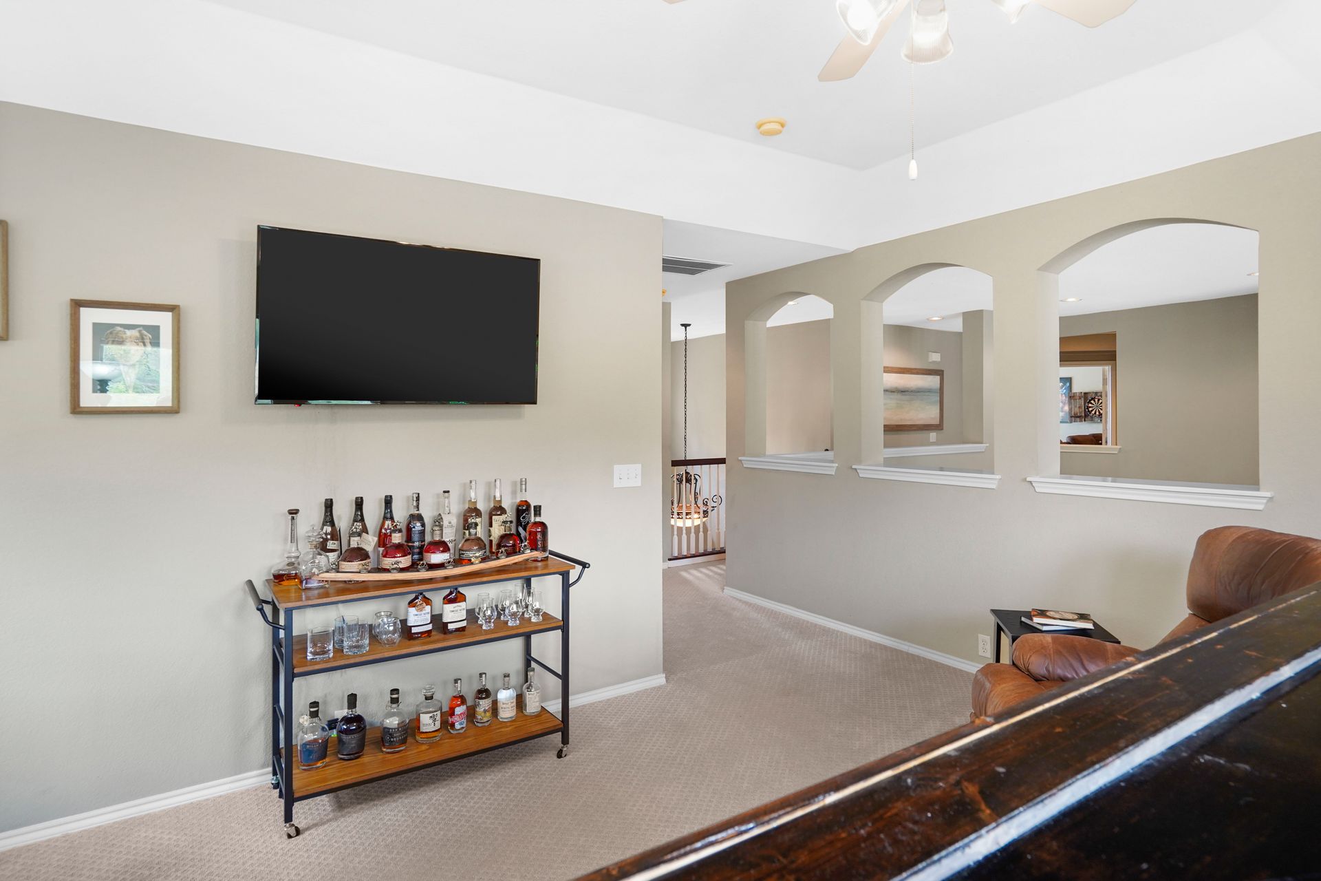The home you have been waiting for! Located on a quiet cul-de-sac, this darling home is on a corner lot and backs a greenbelt. A spacious SIX bedroom home with a primary suite and two secondary bedrooms on the first floor. Both secondary bedrooms have closets, and privacy doors and share a three-quarter bath (one bedroom is en-suite with direct access, so it’s easy to use both as bedrooms or use as an office!) Soaring a two-story living room with a wall of windows anchors the gathering space in the home. Warm, inviting and flowing seamlessly into a spacious kitchen with abundant counters and cabinet space. Intentional and mindful storage throughout including a pantry that extends under the stairs and multiple storage closets throughout the home. The secondary back stairs are tucked away off the breakfast nook and land at an amazing flex space. Upstairs you'll find three additional bedrooms, two full baths and an oversized bonus room complete with a ping pong table and movie set up! The peaceful and serene backyard has a large two-level deck that wraps around the side of the house and a fire pit. Lots of room to play, practice soccer, plant a garden or build a pool. Grandview Hills is a quiet community that is near the Trails at 620, a multi-acre retail, services and eatery complex, including a Movie house and Eatery and schools. This is a rare opportunity to take advantage of this hard-to-find floor plan. A must-see!