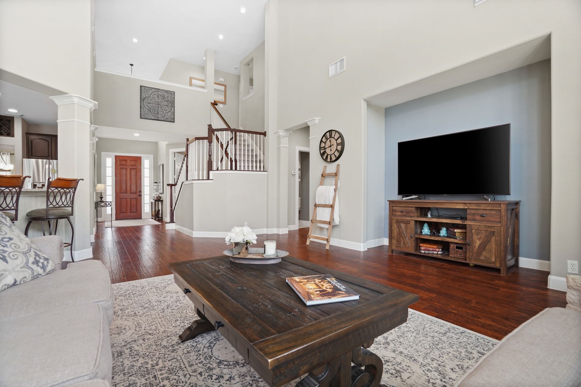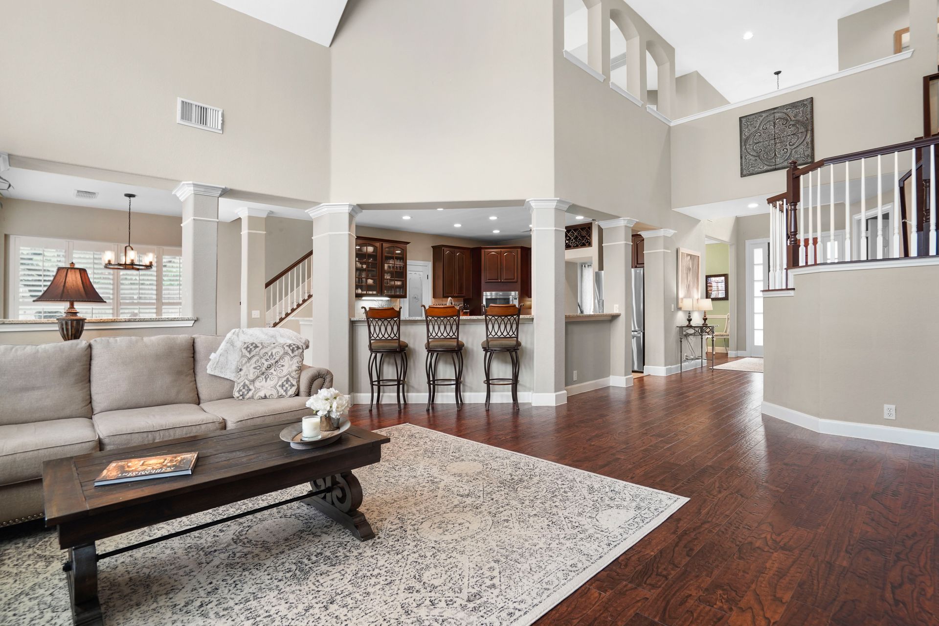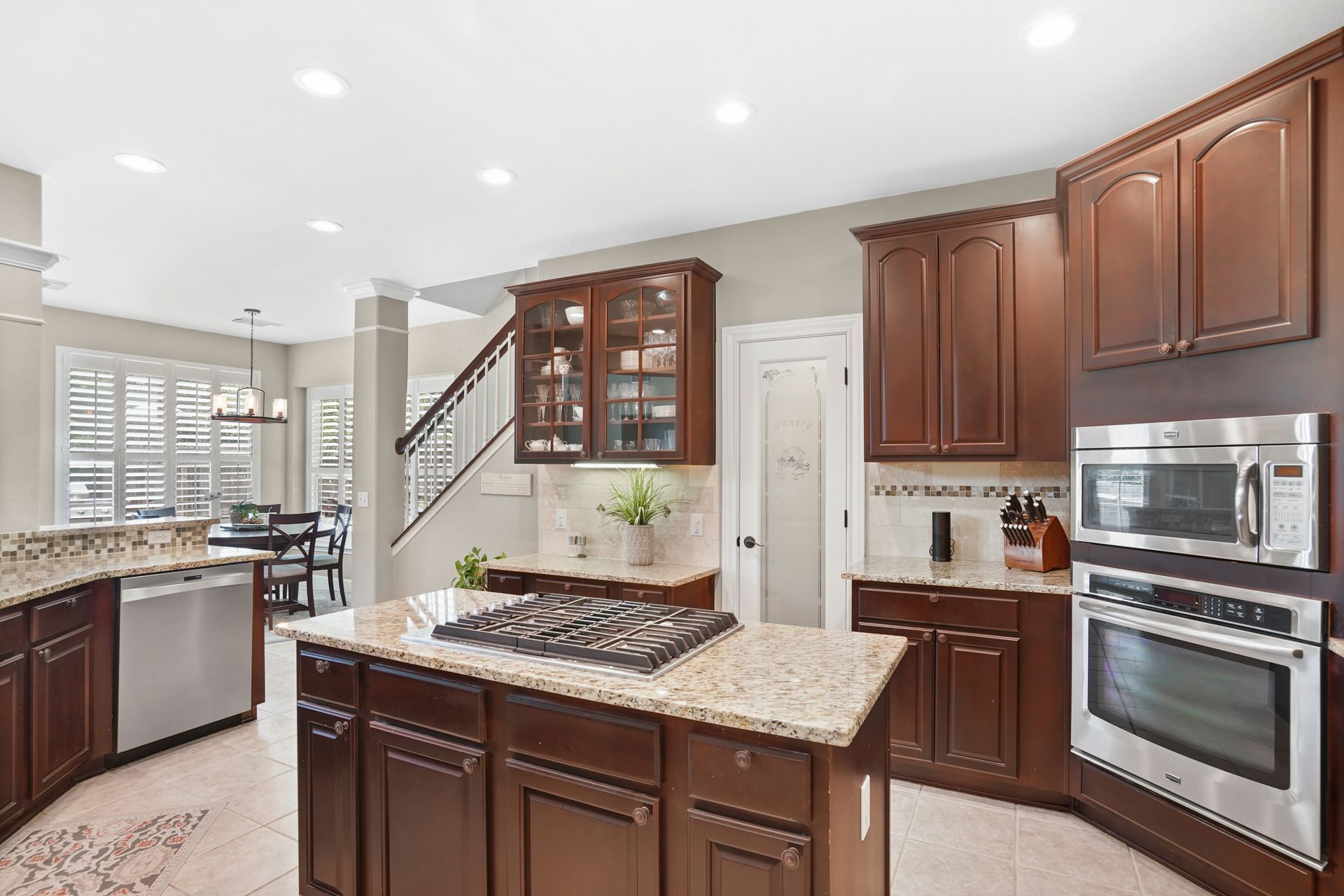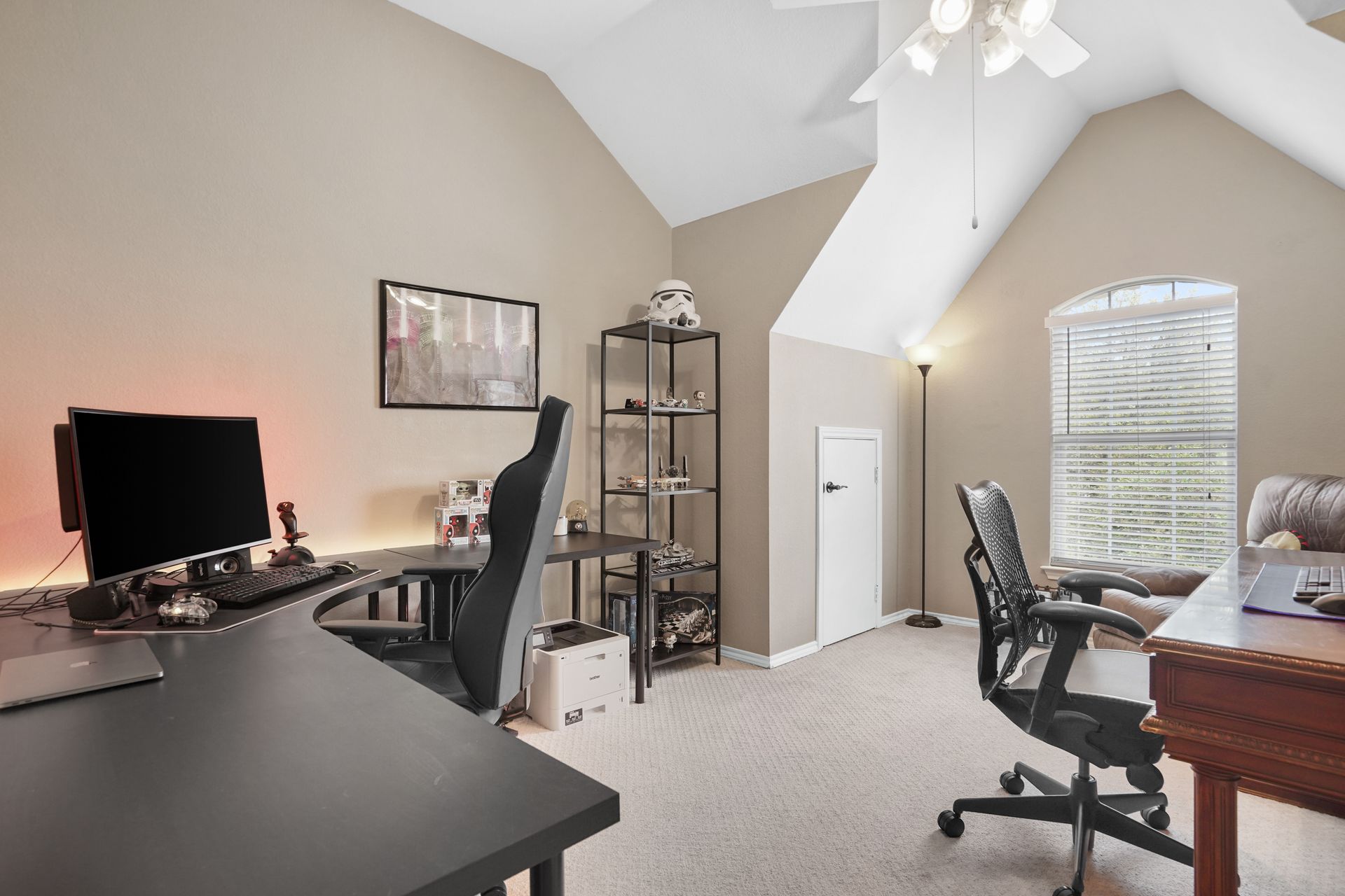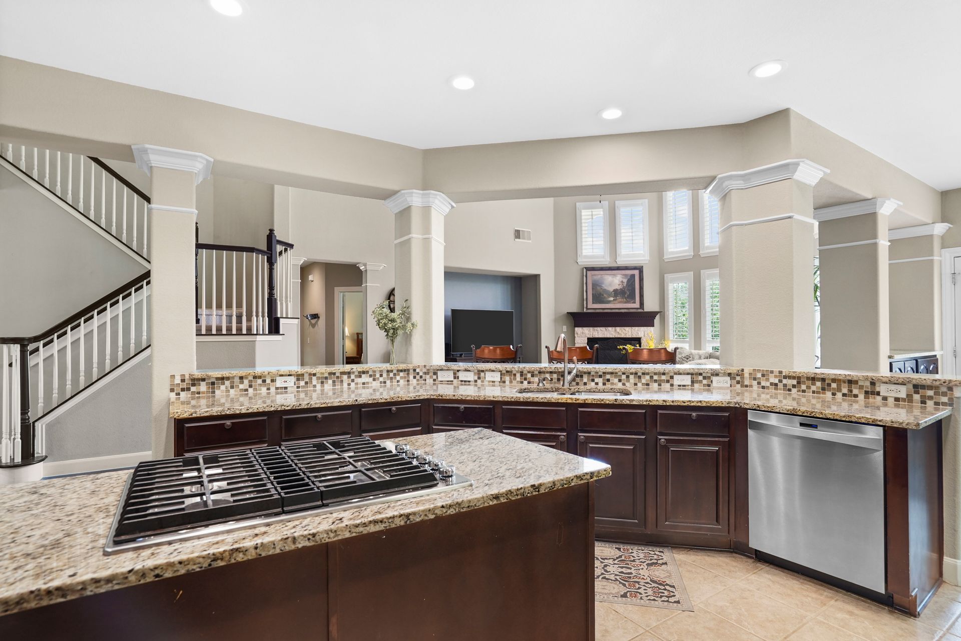 The home you have been waiting for! Located on a quiet cul-de-sac, this darling home is on a corner lot and backs a greenbelt. A spacious SIX bedroom home with a primary suite and two secondary bedrooms on the first floor. Both secondary bedrooms have closets, and privacy doors and share a three-quarter bath (one bedroom is en-suite with direct access, so it’s easy to use both as bedrooms or use as an office!) Soaring a two-story living room with a wall of windows anchors the gathering space in the home. Warm, inviting and flowing seamlessly into a spacious kitchen with abundant counters and cabinet space. Intentional and mindful storage throughout including a pantry that extends under the stairs and multiple storage closets throughout the home. The secondary back stairs are tucked away off the breakfast nook and land at an amazing flex space. Upstairs you'll find three additional bedrooms, two full baths and an oversized bonus room complete with a ping pong table and movie set up! The peaceful and serene backyard has a large two-level deck that wraps around the side of the house and a fire pit. Lots of room to play, practice soccer, plant a garden or build a pool. Grandview Hills is a quiet community that is near the Trails at 620, a multi-acre retail, services and eatery complex, including a Movie house and Eatery and schools. This is a rare opportunity to take advantage of this hard-to-find floor plan. A must-see!