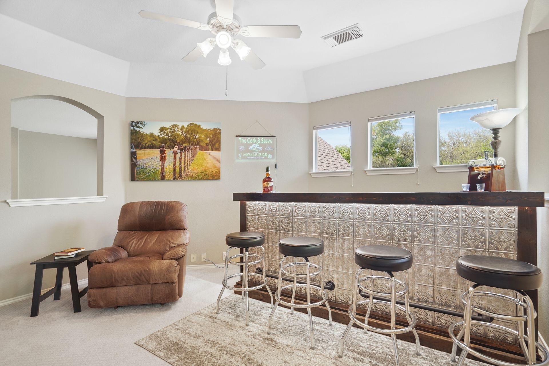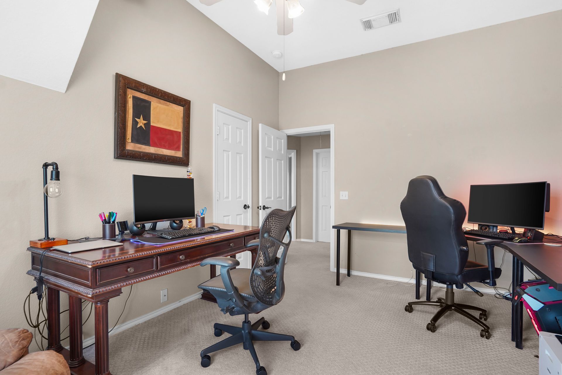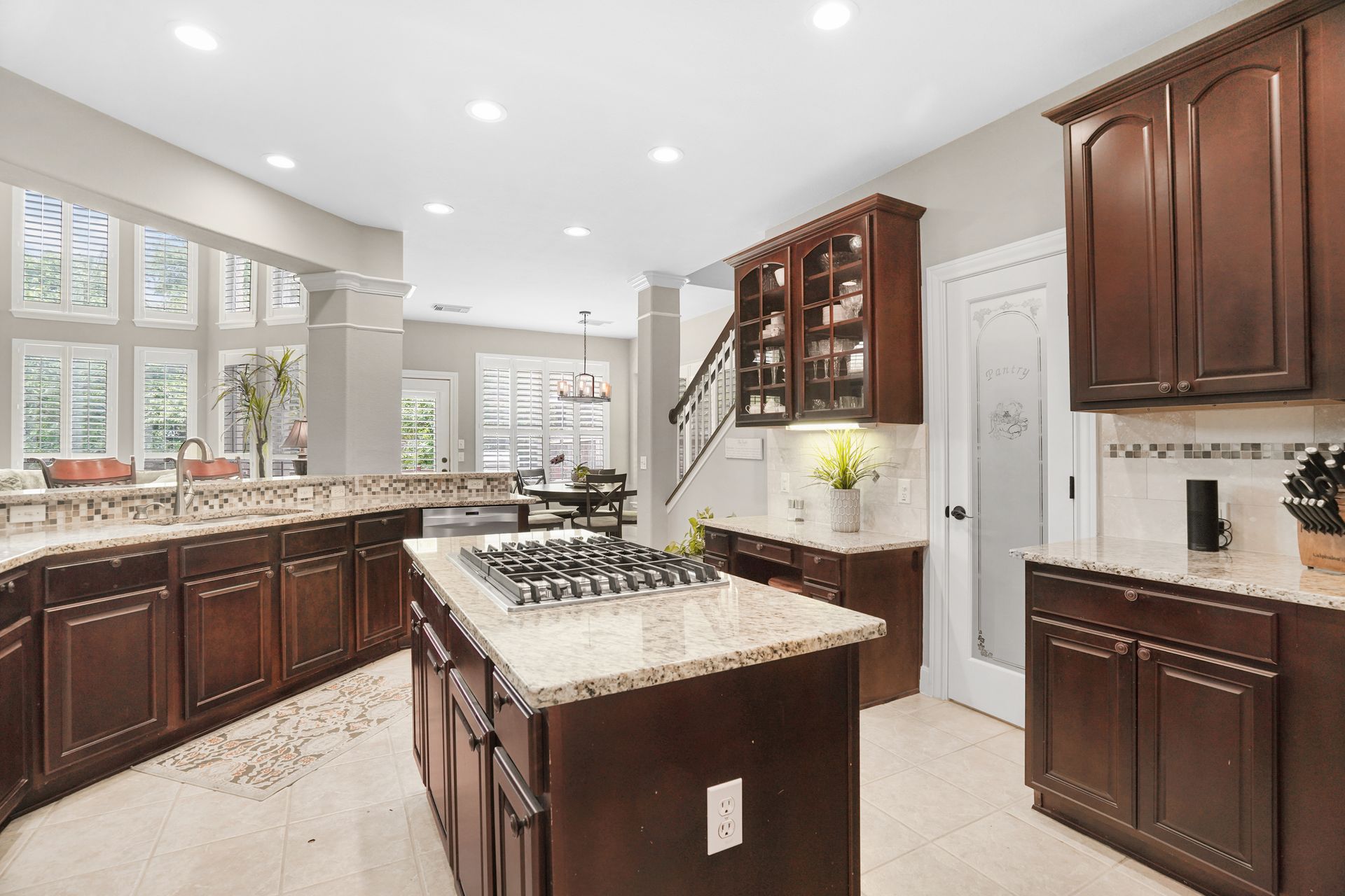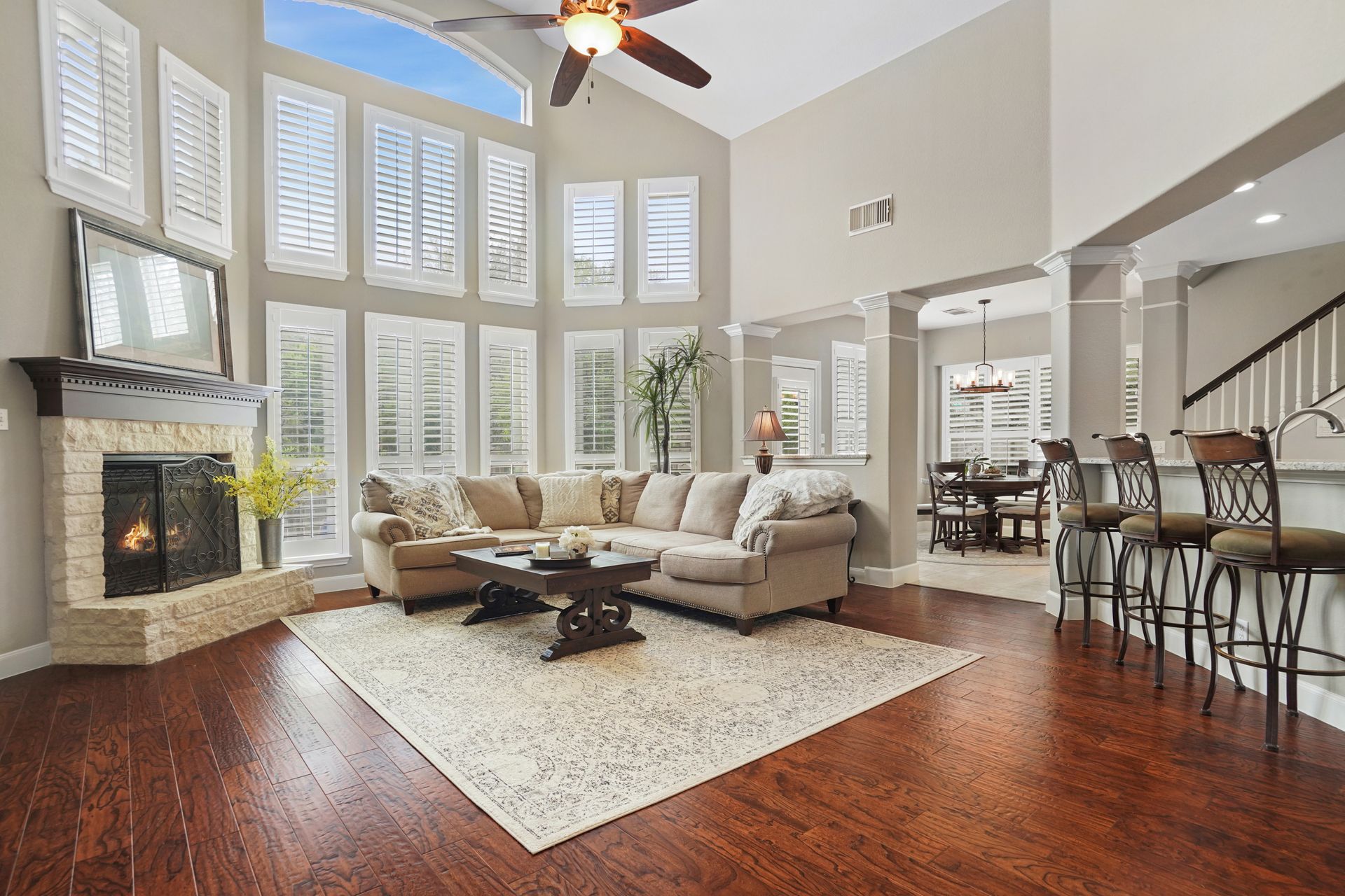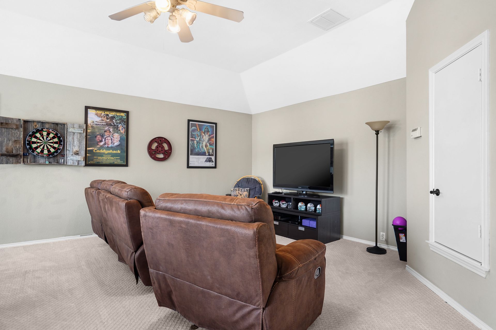 The home you have been waiting for! Located on a quiet cul-de-sac, this darling home is on a corner lot and backs a greenbelt. A spacious SIX bedroom home with a primary suite and two secondary bedrooms on the first floor. Both secondary bedrooms have closets, and privacy doors and share a three-quarter bath (one bedroom is en-suite with direct access, so it’s easy to use both as bedrooms or use as an office!) Soaring a two-story living room with a wall of windows anchors the gathering space in the home. Warm, inviting and flowing seamlessly into a spacious kitchen with abundant counters and cabinet space. Intentional and mindful storage throughout including a pantry that extends under the stairs and multiple storage closets throughout the home. The secondary back stairs are tucked away off the breakfast nook and land at an amazing flex space. Upstairs you'll find three additional bedrooms, two full baths and an oversized bonus room complete with a ping pong table and movie set up! The peaceful and serene backyard has a large two-level deck that wraps around the side of the house and a fire pit. Lots of room to play, practice soccer, plant a garden or build a pool. Grandview Hills is a quiet community that is near the Trails at 620, a multi-acre retail, services and eatery complex, including a Movie house and Eatery and schools. This is a rare opportunity to take advantage of this hard-to-find floor plan. A must-see!
