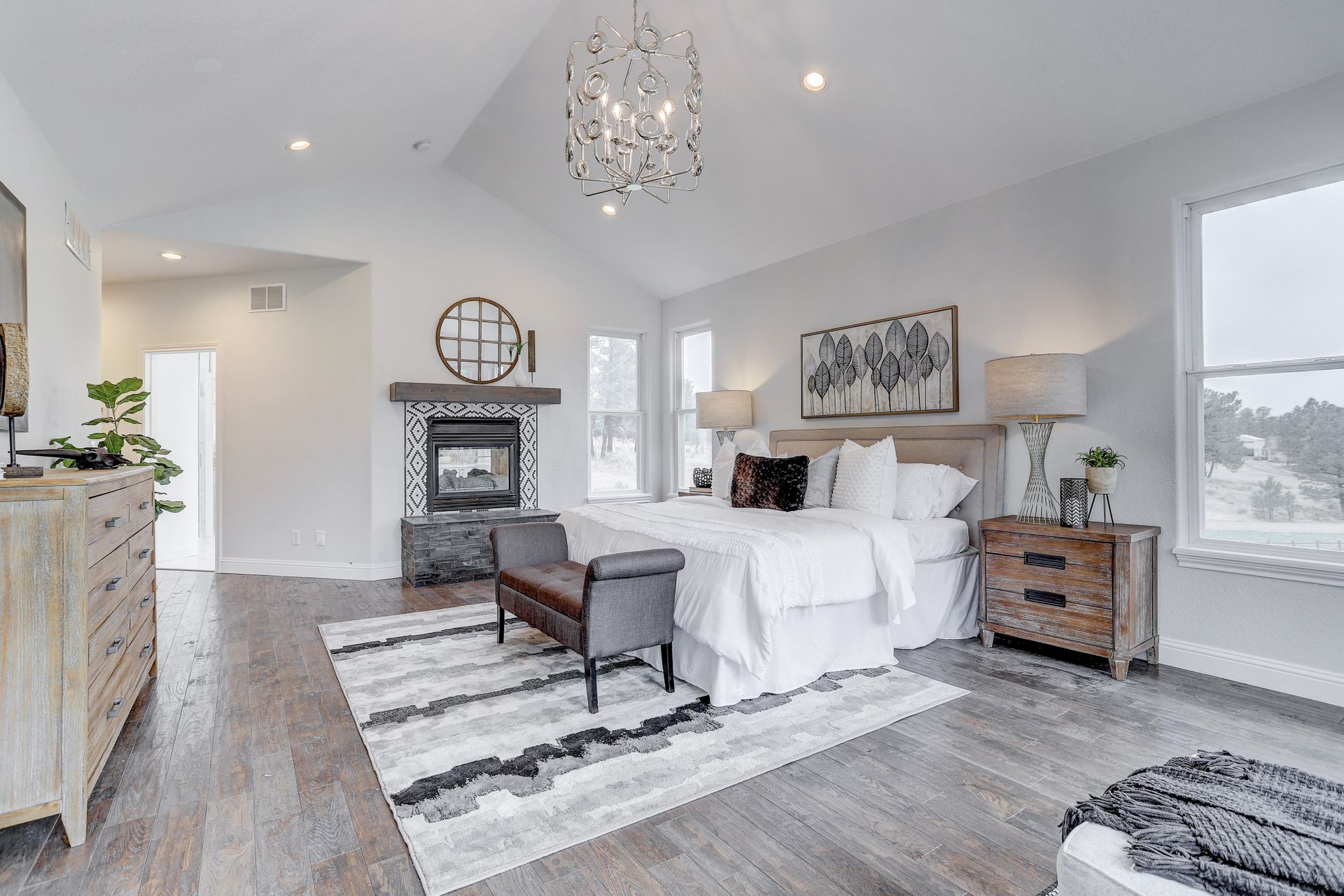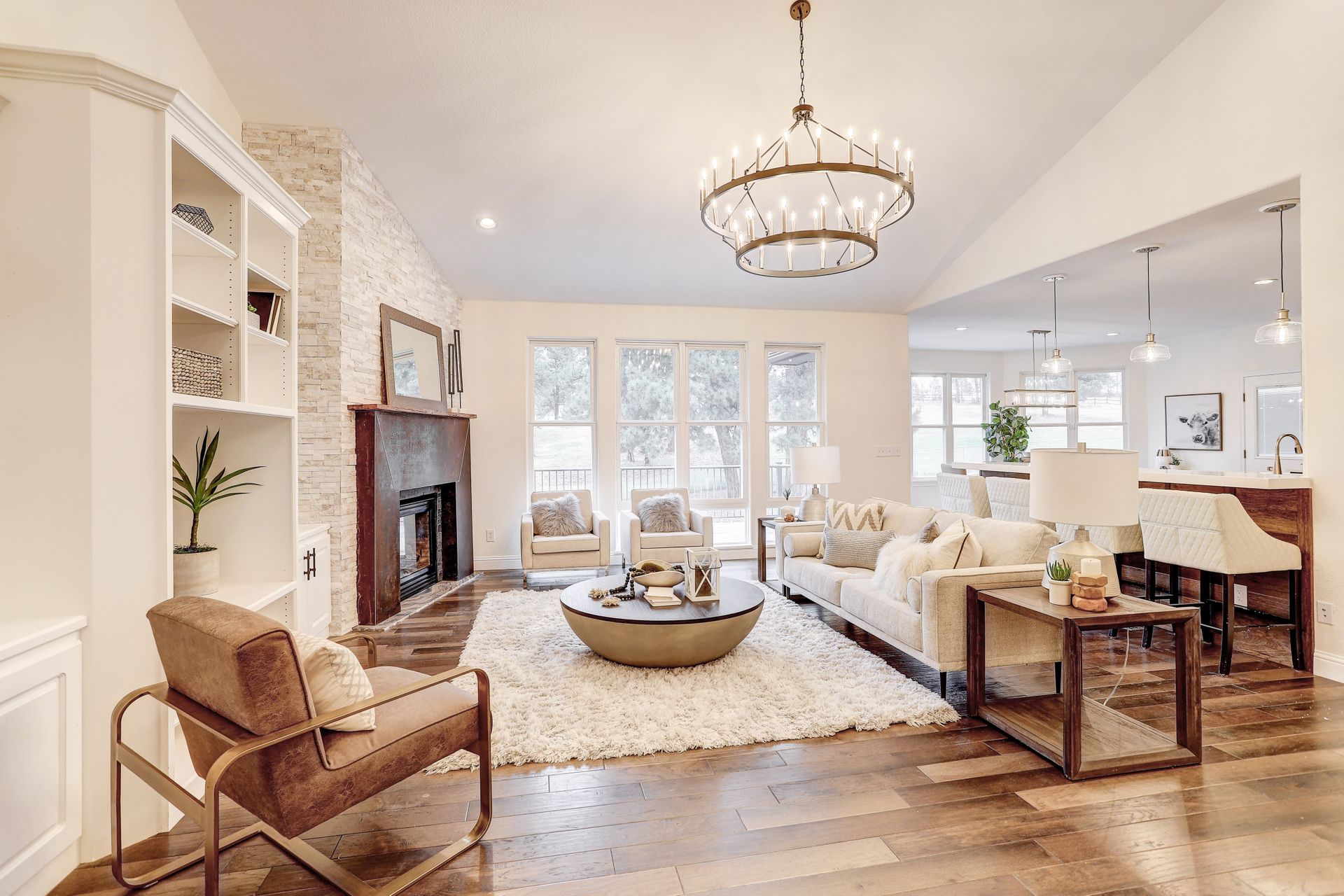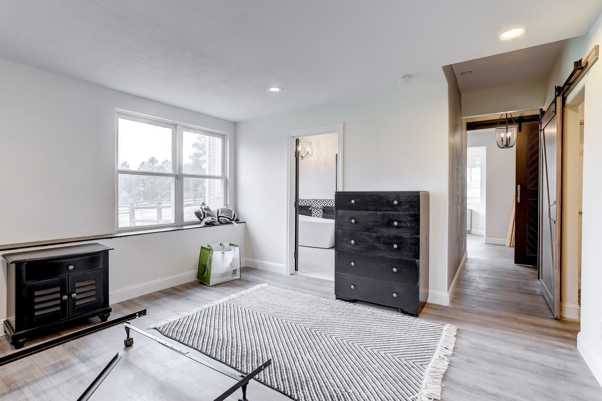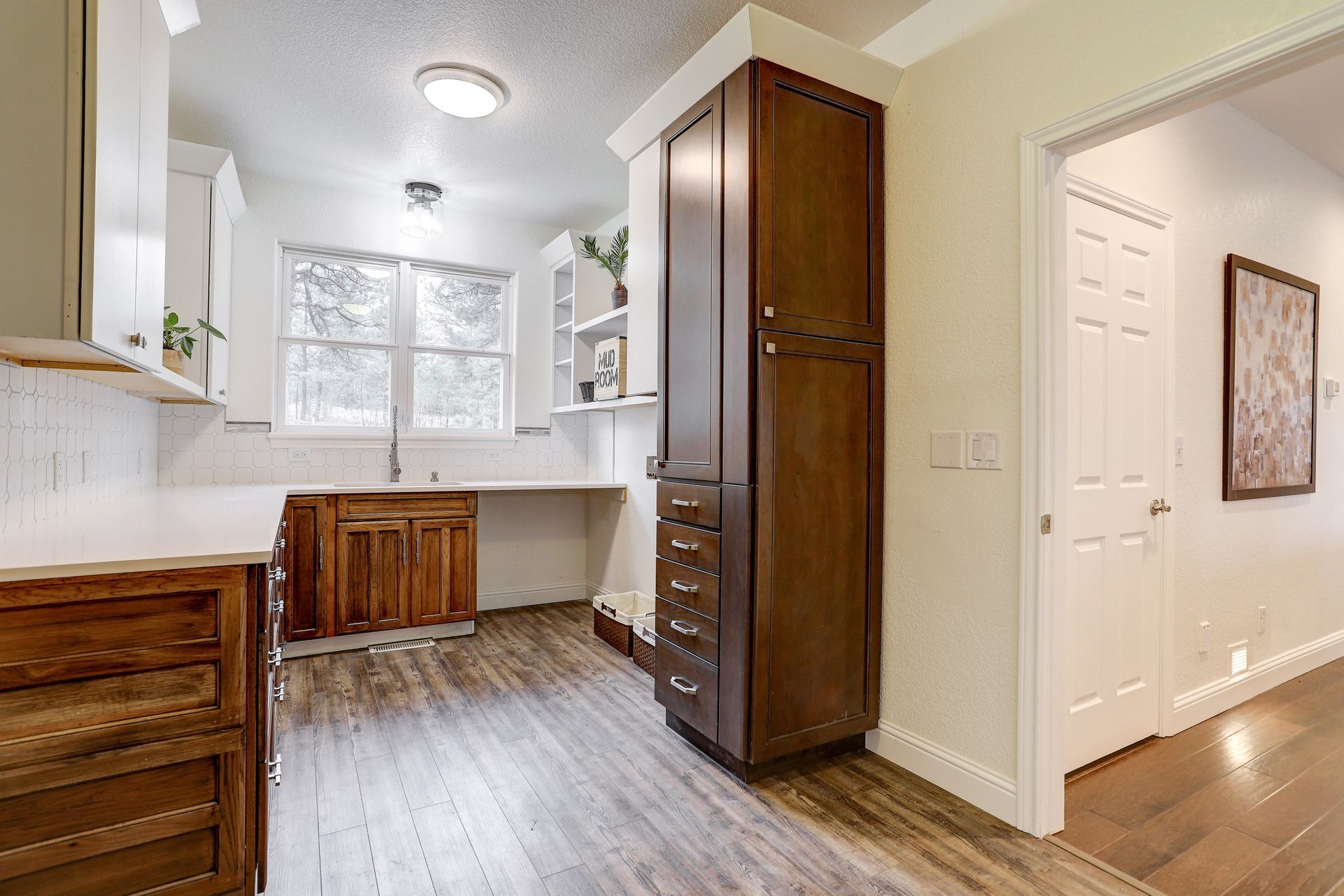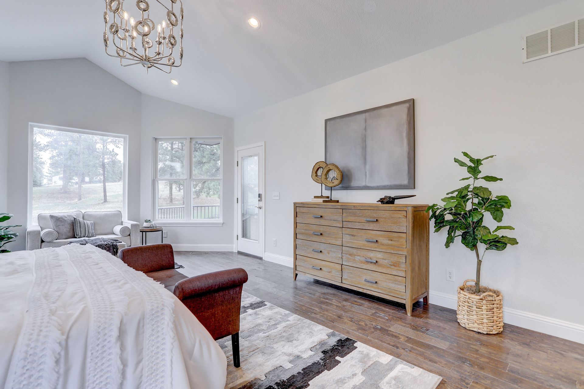 At once surprising and classic, nestled amongst the mature whispering pines on 2.65 acres this stunning Ponderosa Hills ranch home is the essence of Colorado living. Private country living yet close to modern conveniences and easy access to Denver and DIA. Head up onto the welcoming covered porch and into a vaulted foyer with a custom mosaic floor. The great room is grounded by a beveled metal and stone surround fireplace and features a two-tiered chandelier that compliments the high ceilings and open floor plan. Sophistication abounds in the chef’s kitchen finished with an interior pop of metallic brushed gold features, open shelving and two-toned Merillat Masterpiece cabinetry. The oversized eating area offers gorgeous private views and flows out to the covered and uncovered deck spaces. The gracious primary main floor suite has deck access and a two-sided fireplace that allows enjoyment from the bedroom sitting area or the free-standing tub. The five-piece luxury bath has a steam shower. A private study with French doors and built ins, two bedrooms, two baths and spacious custom laundry room round out the first floor. The walkout lower level is an entertainer’s dream with a pool table and patio access. High ceilings and floor to ceiling built-ins provide an inviting living space that features an elegant galley seated home bar with an under-mount sink, display cabinets, dishwasher and bar refrigerator drawers. Additional flex space is ready as a gym or would make a great home theatre. Two large bedrooms with a shared five-piece luxury bath complete the lower level. Two furnaces/A/C units, two water heaters and ample storage. Tiered landscaping, multiple patios, fencing and storage shed.