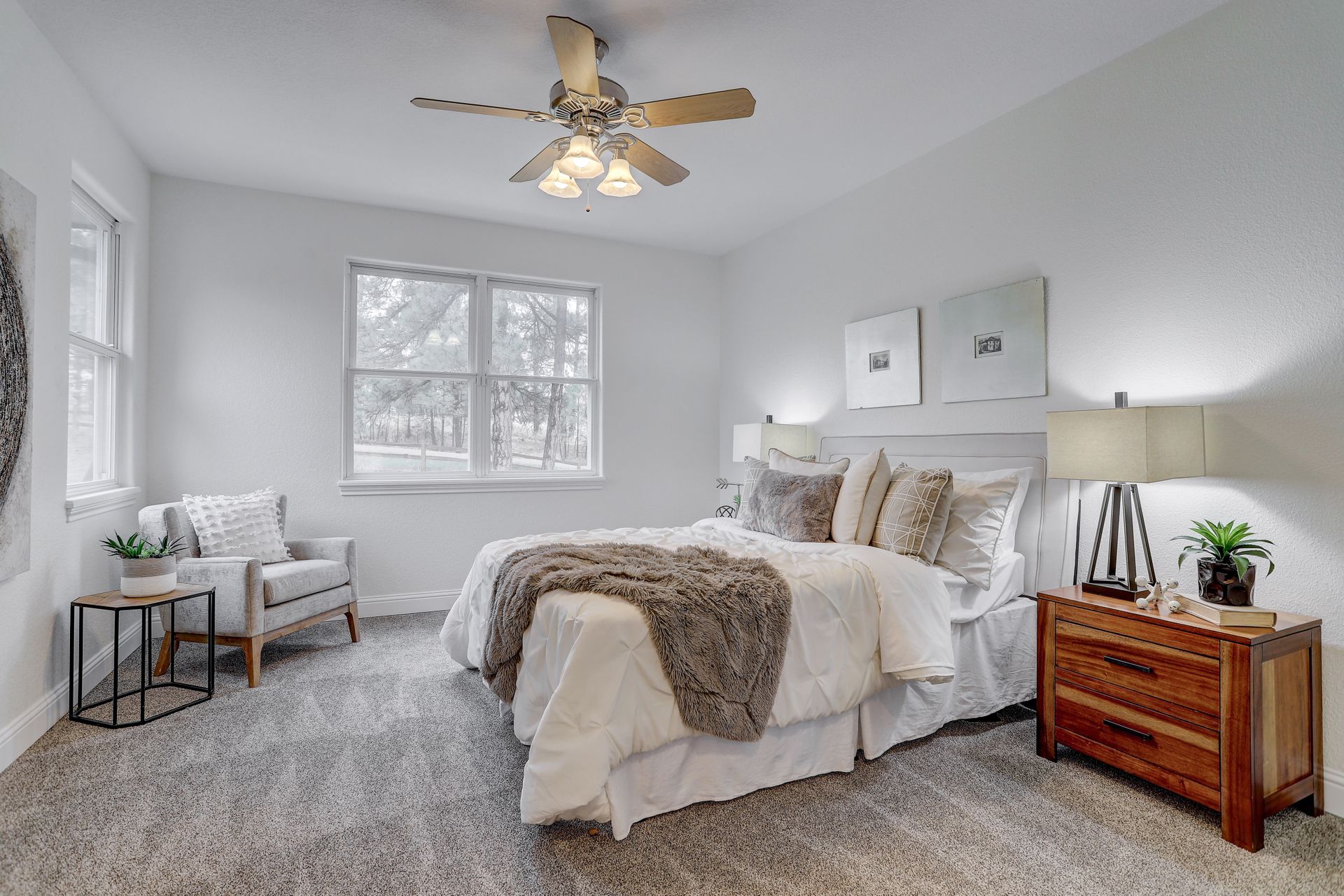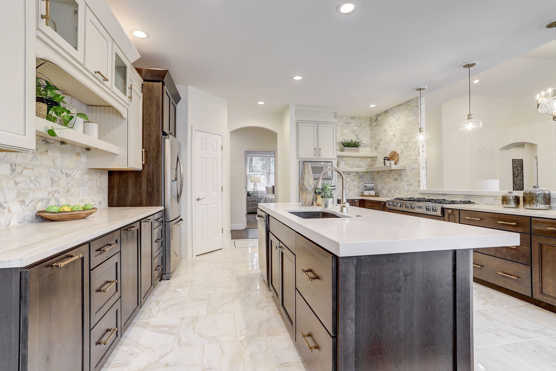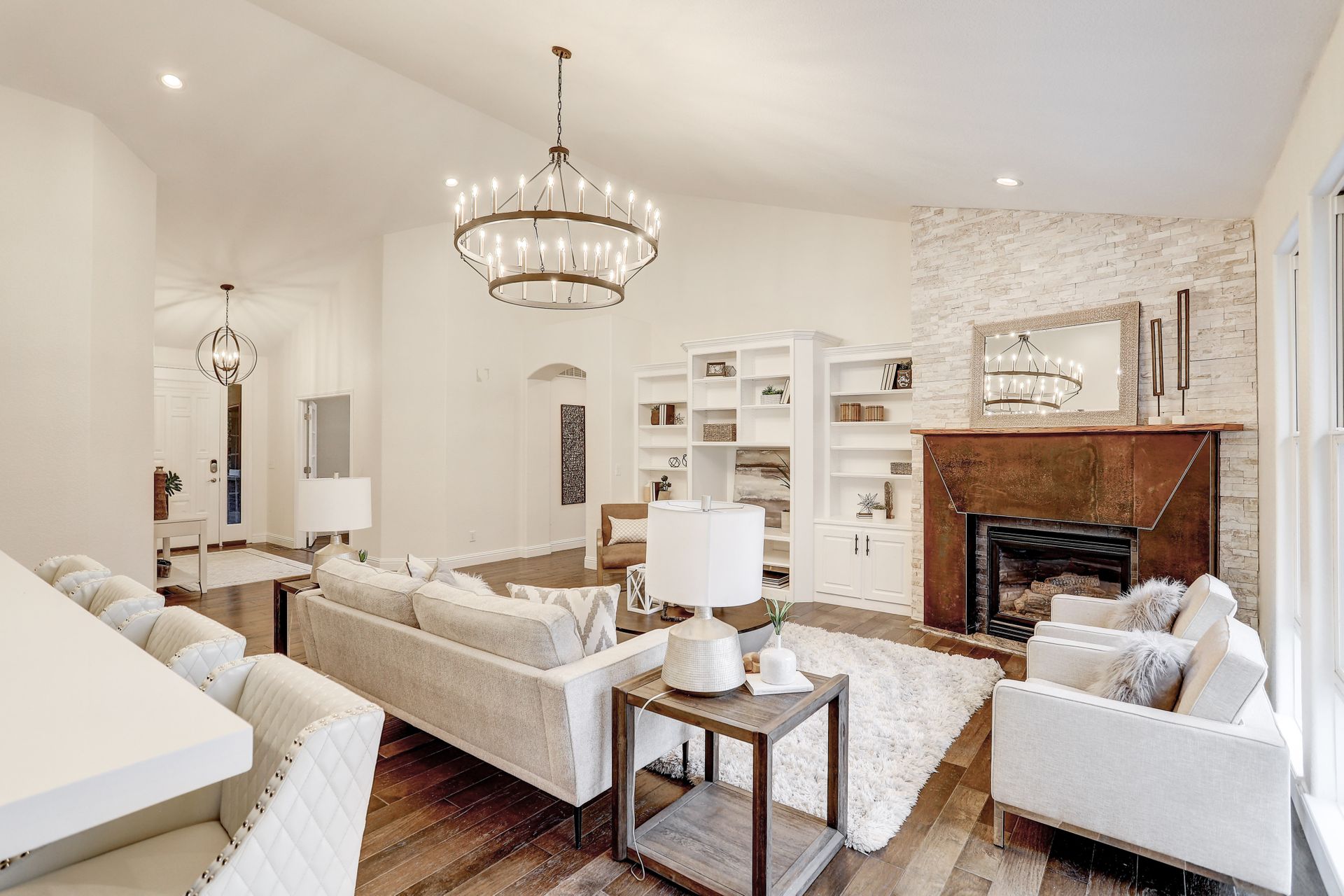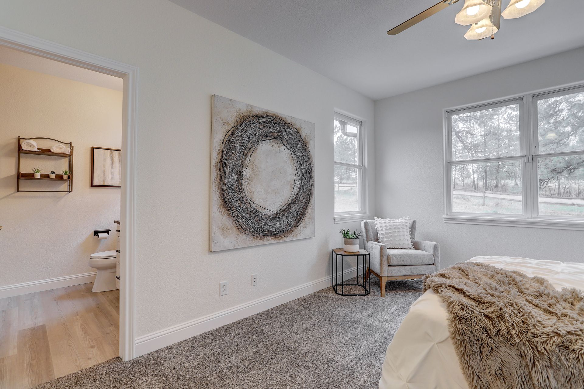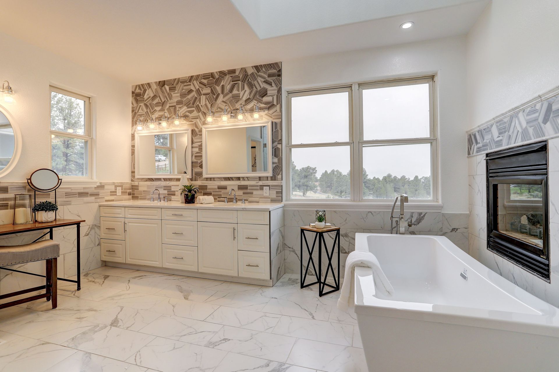 At once surprising and classic, nestled amongst the mature whispering pines on 2.65 acres this stunning Ponderosa Hills ranch home is the essence of Colorado living. Private country living yet close to modern conveniences and easy access to Denver and DIA. Head up onto the welcoming covered porch and into a vaulted foyer with a custom mosaic floor. The great room is grounded by a beveled metal and stone surround fireplace and features a two-tiered chandelier that compliments the high ceilings and open floor plan. Sophistication abounds in the chef’s kitchen finished with an interior pop of metallic brushed gold features, open shelving and two-toned Merillat Masterpiece cabinetry. The oversized eating area offers gorgeous private views and flows out to the covered and uncovered deck spaces. The gracious primary main floor suite has deck access and a two-sided fireplace that allows enjoyment from the bedroom sitting area or the free-standing tub. The five-piece luxury bath has a steam shower. A private study with French doors and built ins, two bedrooms, two baths and spacious custom laundry room round out the first floor. The walkout lower level is an entertainer’s dream with a pool table and patio access. High ceilings and floor to ceiling built-ins provide an inviting living space that features an elegant galley seated home bar with an under-mount sink, display cabinets, dishwasher and bar refrigerator drawers. Additional flex space is ready as a gym or would make a great home theatre. Two large bedrooms with a shared five-piece luxury bath complete the lower level. Two furnaces/A/C units, two water heaters and ample storage. Tiered landscaping, multiple patios, fencing and storage shed.