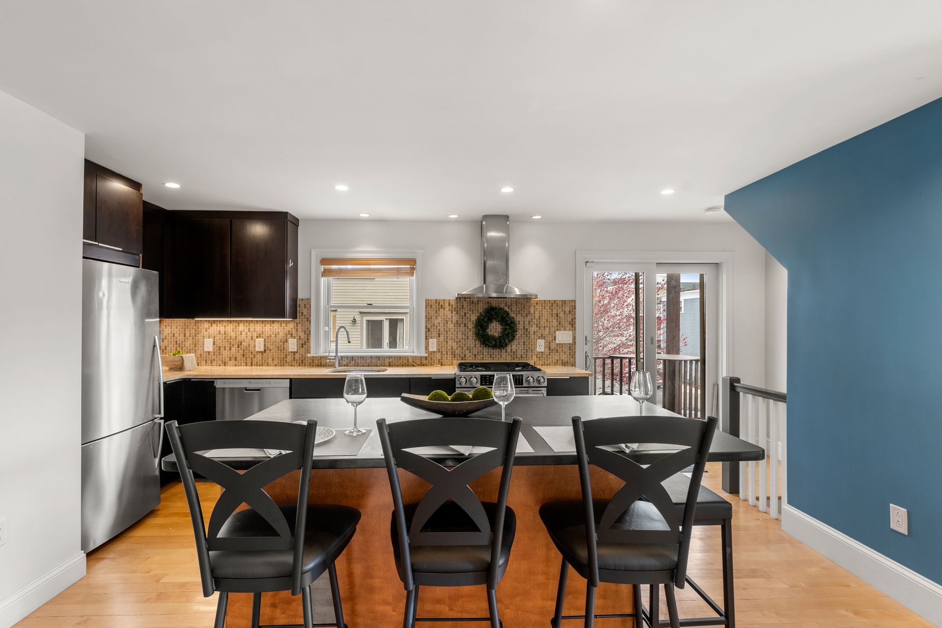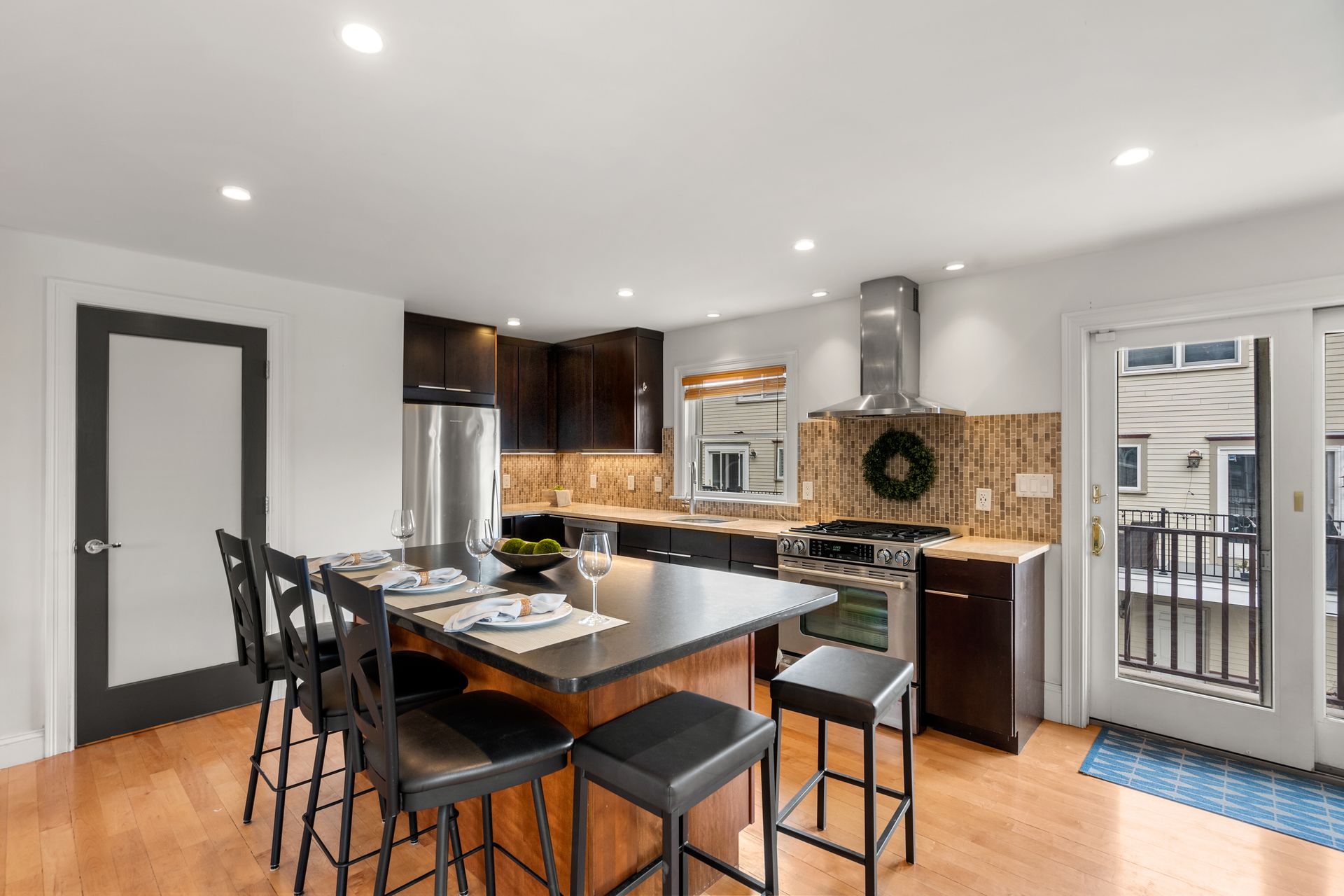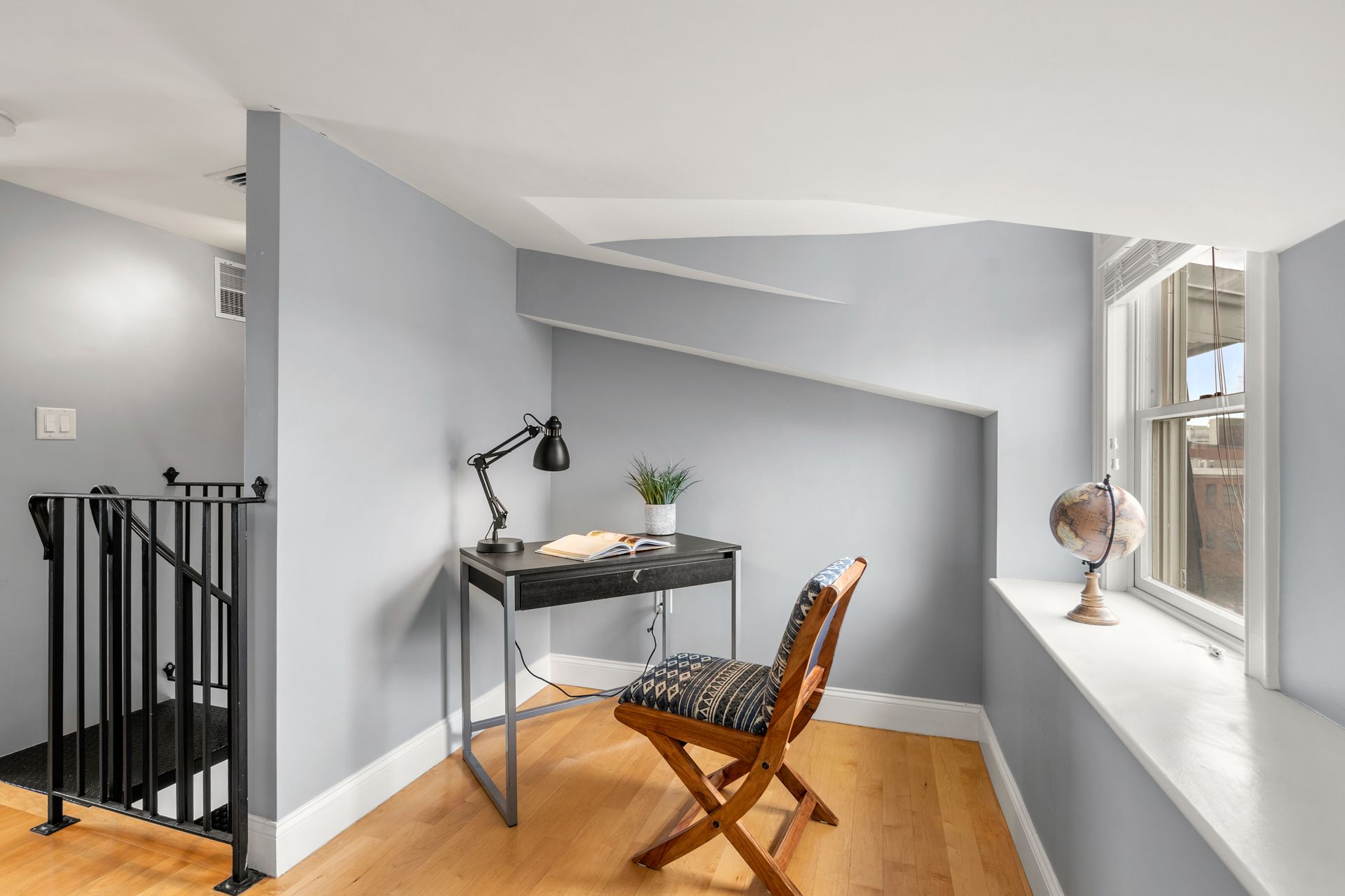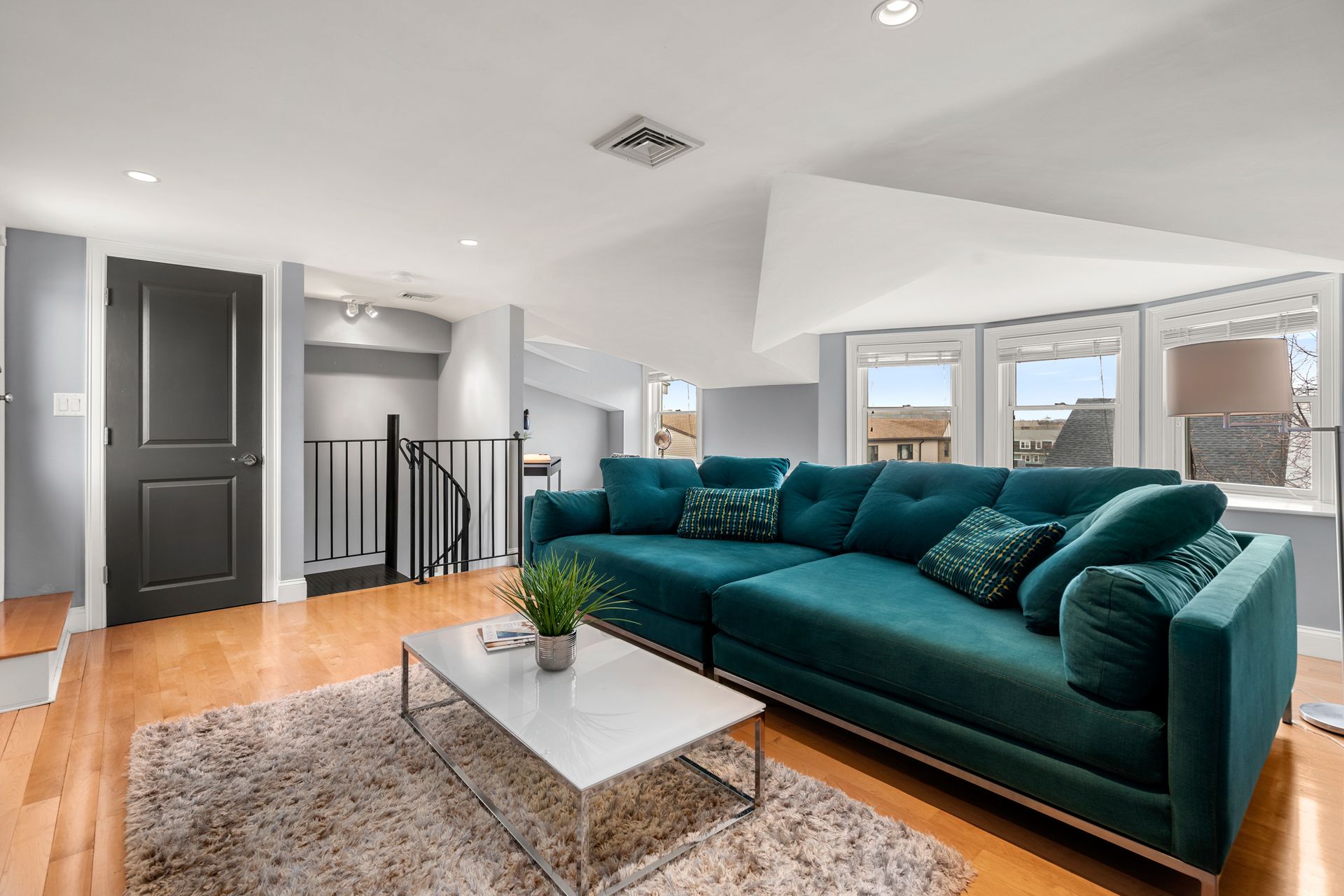 Welcome to a rare South Boston Single Family in a stellar location and at an exceptional value! Steps from A Street, The Seaport and Flaherty Park - this corner building, with fantastic light, offers many unique features that set it apart. Enter to an open concept living and dining area with a half bath and a walk-out patio with access to a private garden. Upstairs features a large master suite with a walk-in closet and a beautiful full bath. The second bedroom is outfitted with an amazing closet and can also be used as a dressing room, hobby area, or office. A spiral staircase leads to a spacious loft which allows for a variety of uses such as a bedroom, lounge, or library. A roof deck with city views awaits and offers an exceptional setting to watch the sunset while having drinks with friends. There is more! The lower level features a custom cedar sauna, a mudroom, laundry and a large garage with plenty of room for extra storage. Do not miss this once-in-a-lifetime opportunity!