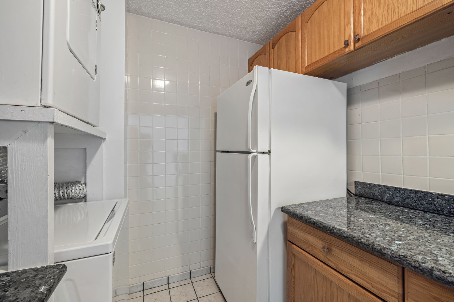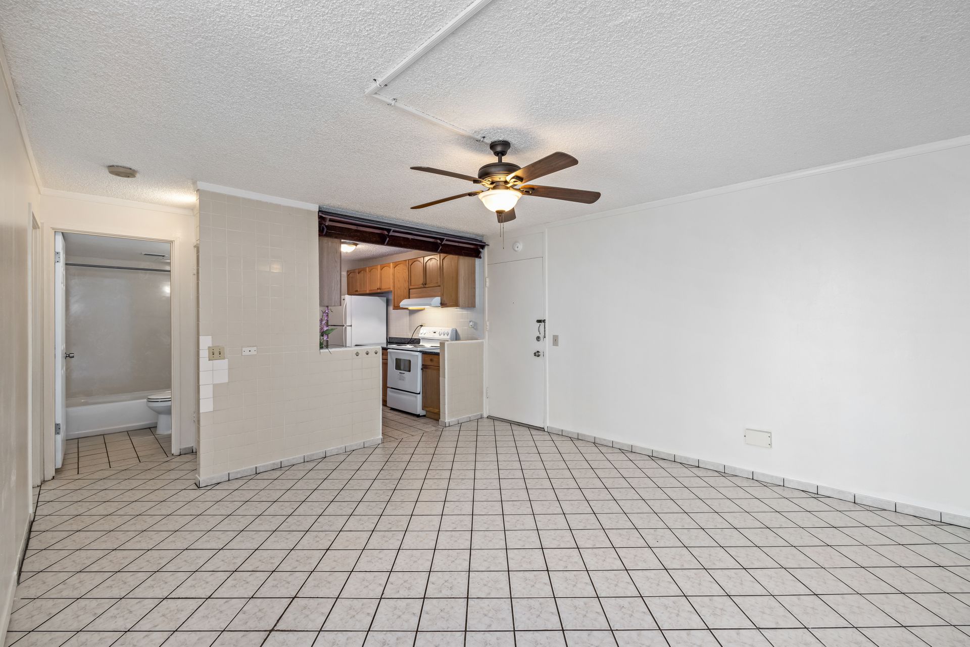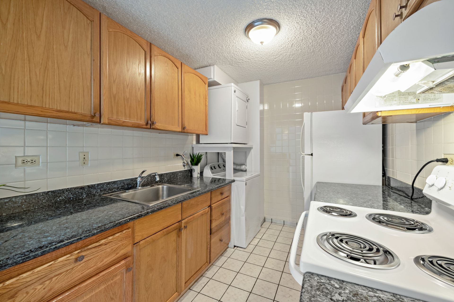 Bright and spacious open floor plan. This home has been nicely upgraded with ceramic tile flooring throughout, granite kitchen counters, newer appliances with washer and dryer and a freshly painted interior. Move-in ready! Must see to appreciate. Selling in "As Is" condition.