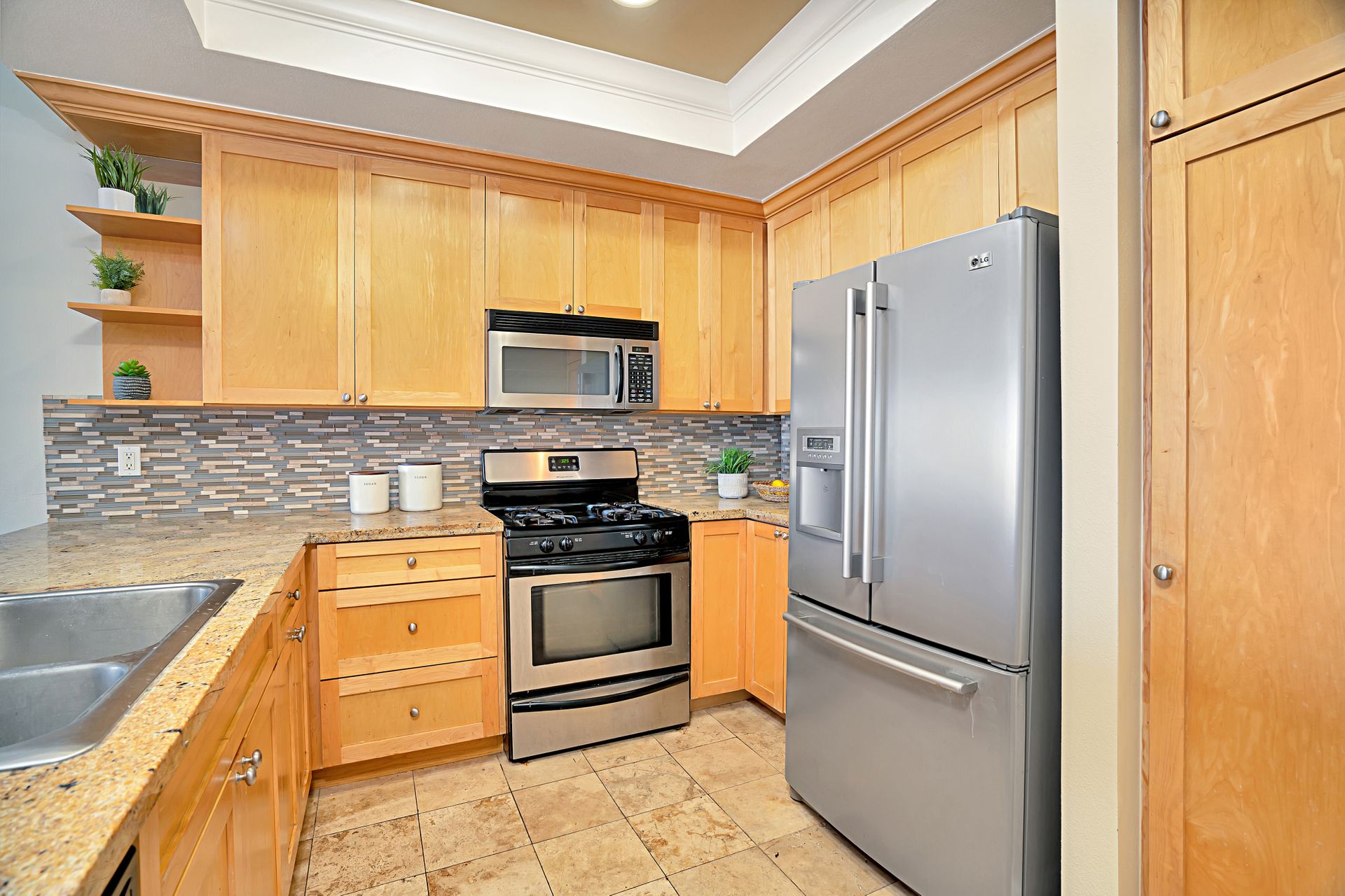 Luxury PENTHOUSE condo in the highly sought after community of Mar Vista. Walking distance to several cafes, boutique shops, restaurants, and only 2 miles to Venice Beach! As you enter the home, you will be greeted by the spectacular OPEN FLOORPLAN with SOARING 12' CEILINGS, upgraded wood flooring, spacious living and dining room, and large windows with gorgeous views of the city lights. Gourmet Chef's Kitchen has been upgraded with granite countertops, custom maple wood shaker cabinets, stainless steel appliances, recessed lighting, and lots of counter space and storage. Kitchen opens up seamlessly to the Great Room which features a cozy fireplace and sliding doors out to the balcony for indoor/outdoor entertaining. You will love the DUAL MASTER SUITES at opposite ends of the home. Both spacious bedrooms have their own bathrooms with upgraded maple cabinets, granite countertops, newer glass tub/shower enclosures, designer lighting and upgraded fixtures. Brand new carpeting in both rooms! Laundry is conveniently located between the rooms. Prime Penthouse level CORNER UNIT only shares 1 wall. Convenient gated subterranean garage features 2 assigned parking spaces. Highly sought after location with convenient access to the 405 Freeway, and minutes to Marina Del Ray and Venice Beach. This is a rare gem that hardly comes on the market!