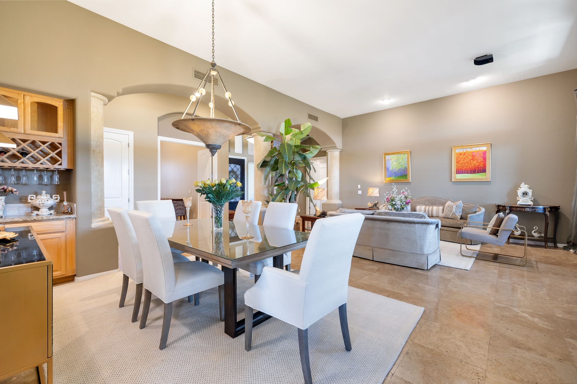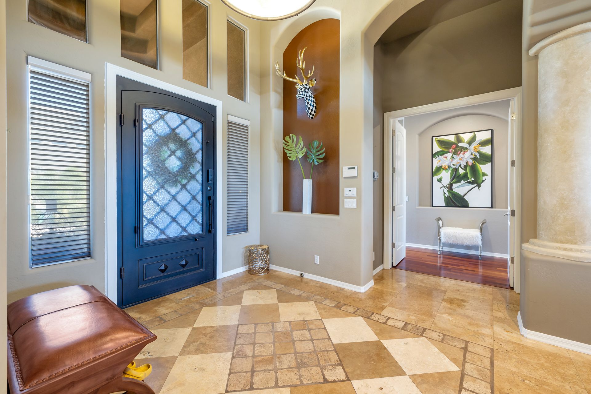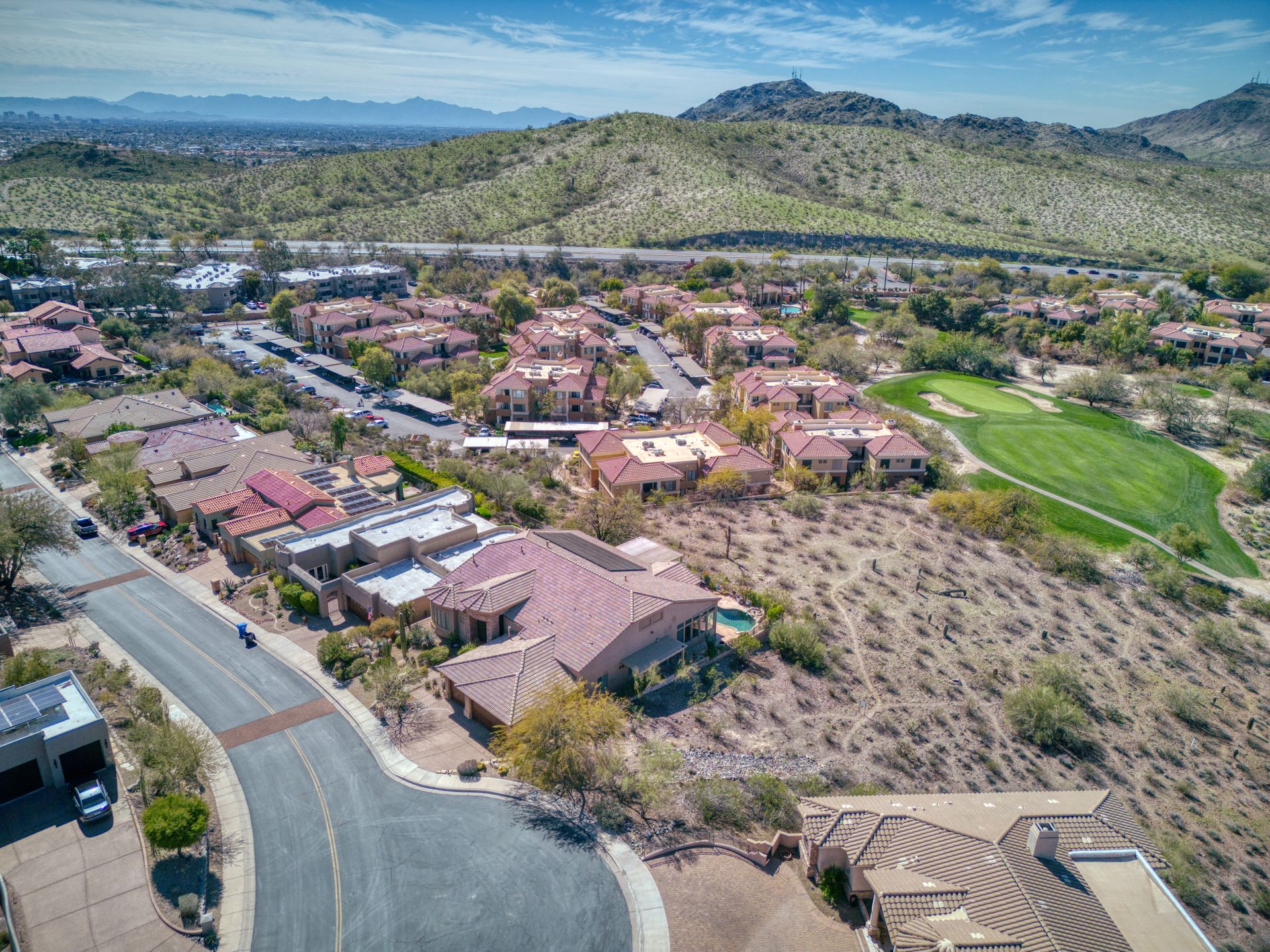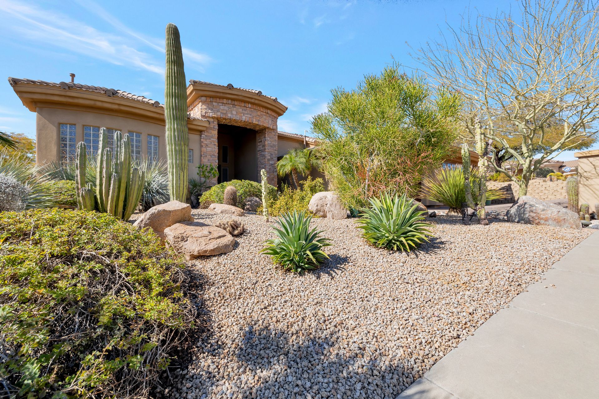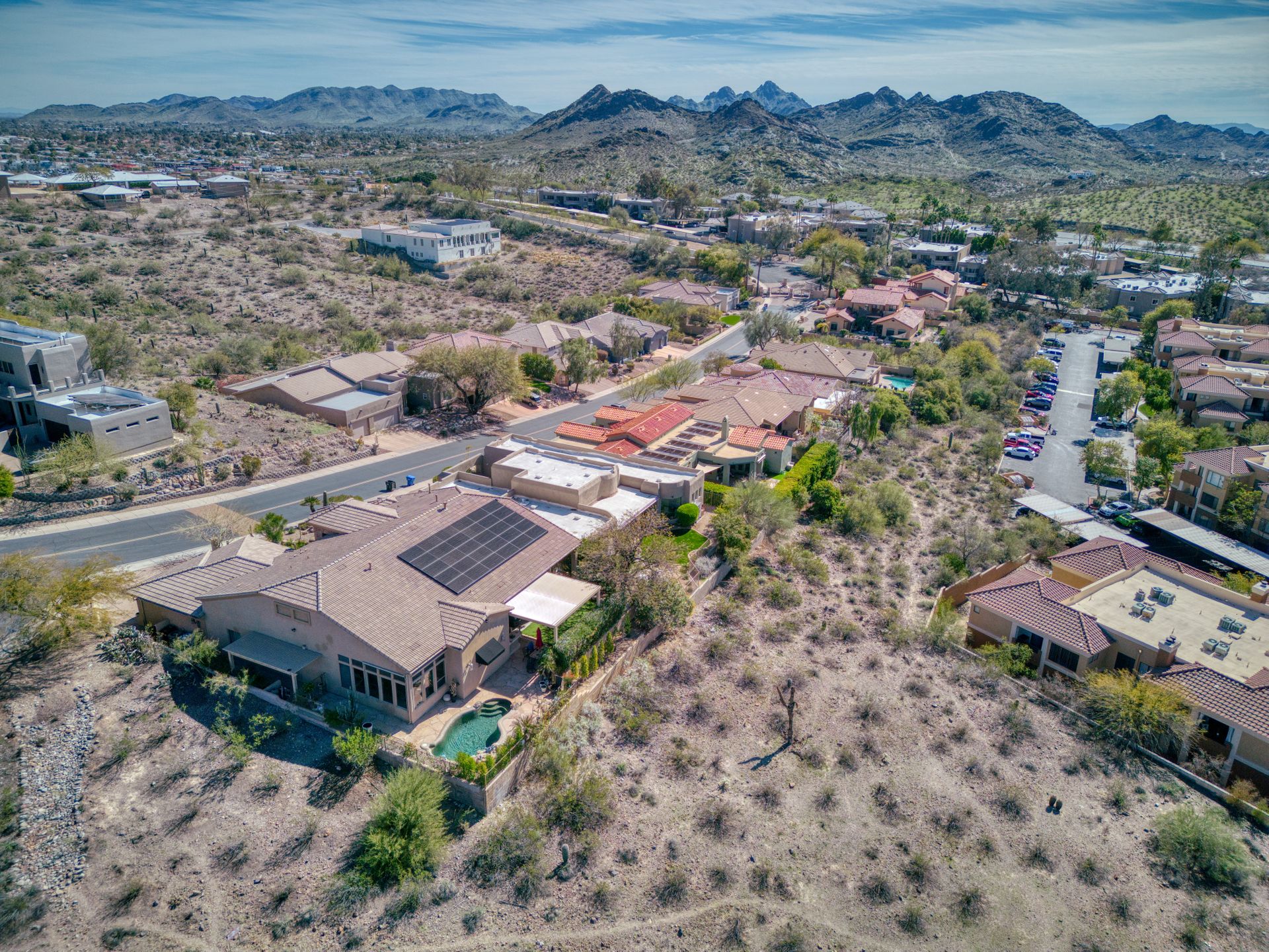 This Ridge at Lookout Mountain property offers a combination of luxurious features and natural beauty. The elevated, hillside location delivers unparalleled sunset, golf and mountain views in a gated community overlooking Lookout Mountain Golf Club. The well-designed floorplan is tailored for entertaining and the kitchen is a standout feature with custom cabinetry and high-end SubZero and Wolf appliances. The owner's suite, separated from other bedrooms, provides a lavish escape with a sitting area, gas fireplace, two walk-in closets, jetted tub and a walk-in shower. The low-maintenance backyard enhances the outdoor living experience with a covered patio, PebbleTec pool, built-in BBQ and artificial turf, creating a perfect retreat. Other features include solar panels, a new roof and a tankless water heater, contributing to energy efficiency. Additional recent improvements are all new smart locks, shutters, invisible screen doors, electronic window screens, both a water softener and reverse osmosis, new insulated garage doors, two pergolas, gutters and a backyard gate. Overall, this residence combines modern elegance with its natural surroundings, offering a luxurious and tranquil lifestyle for those seeking a sophisticated home with breathtaking views and upscale amenities. 4 BD, 3 BA, 3 CG, 3410