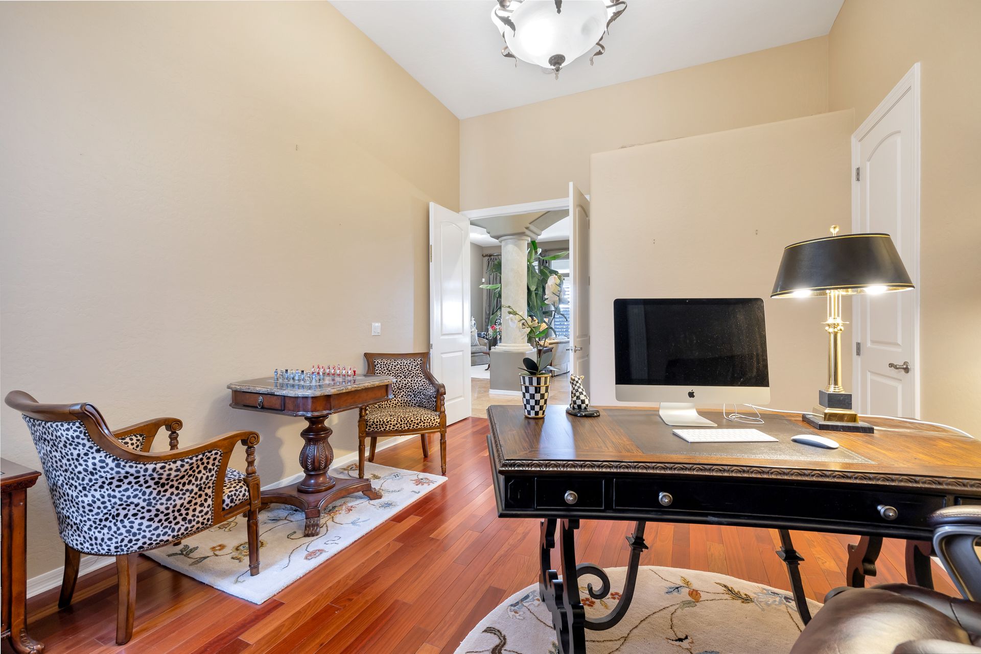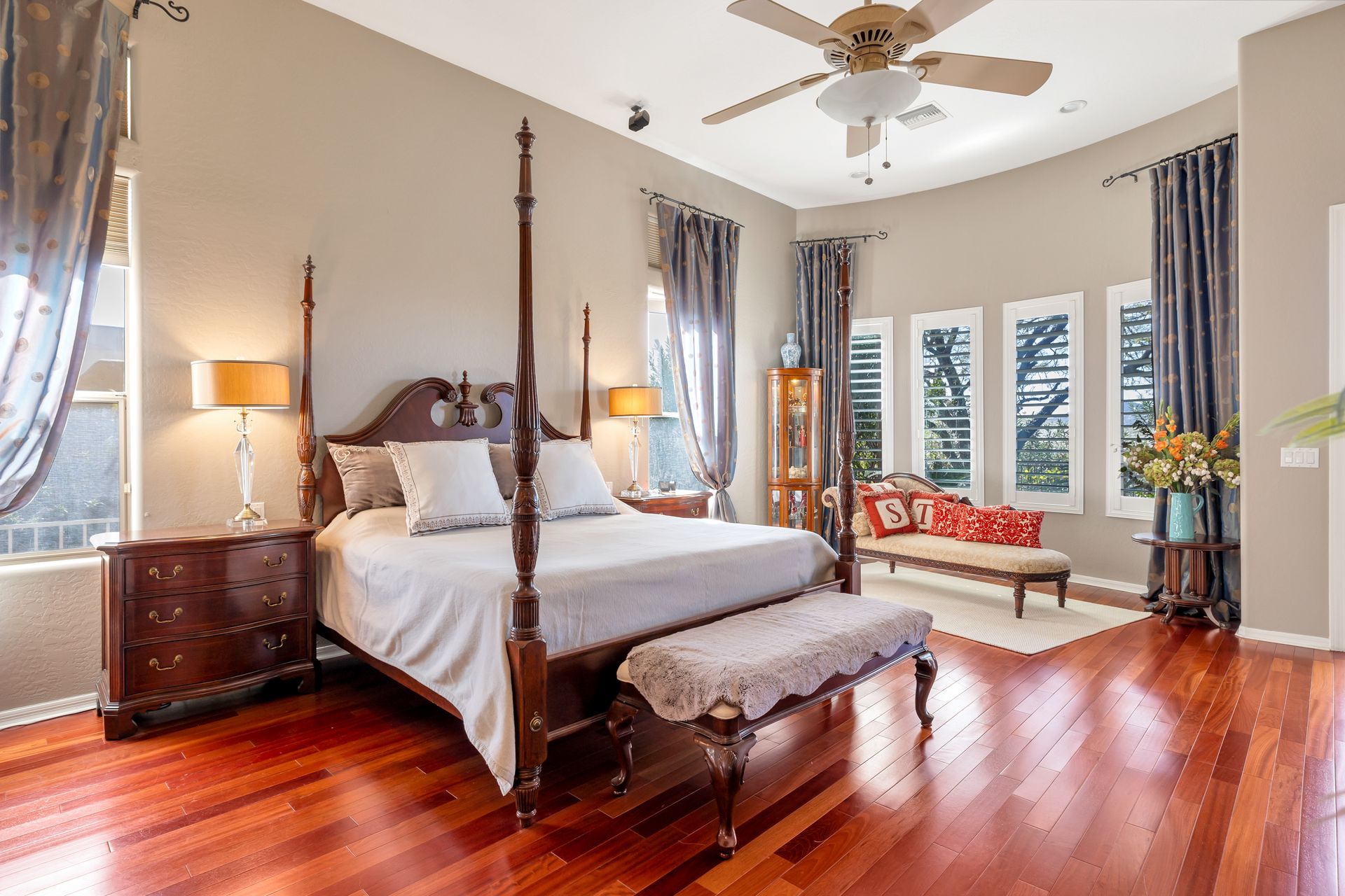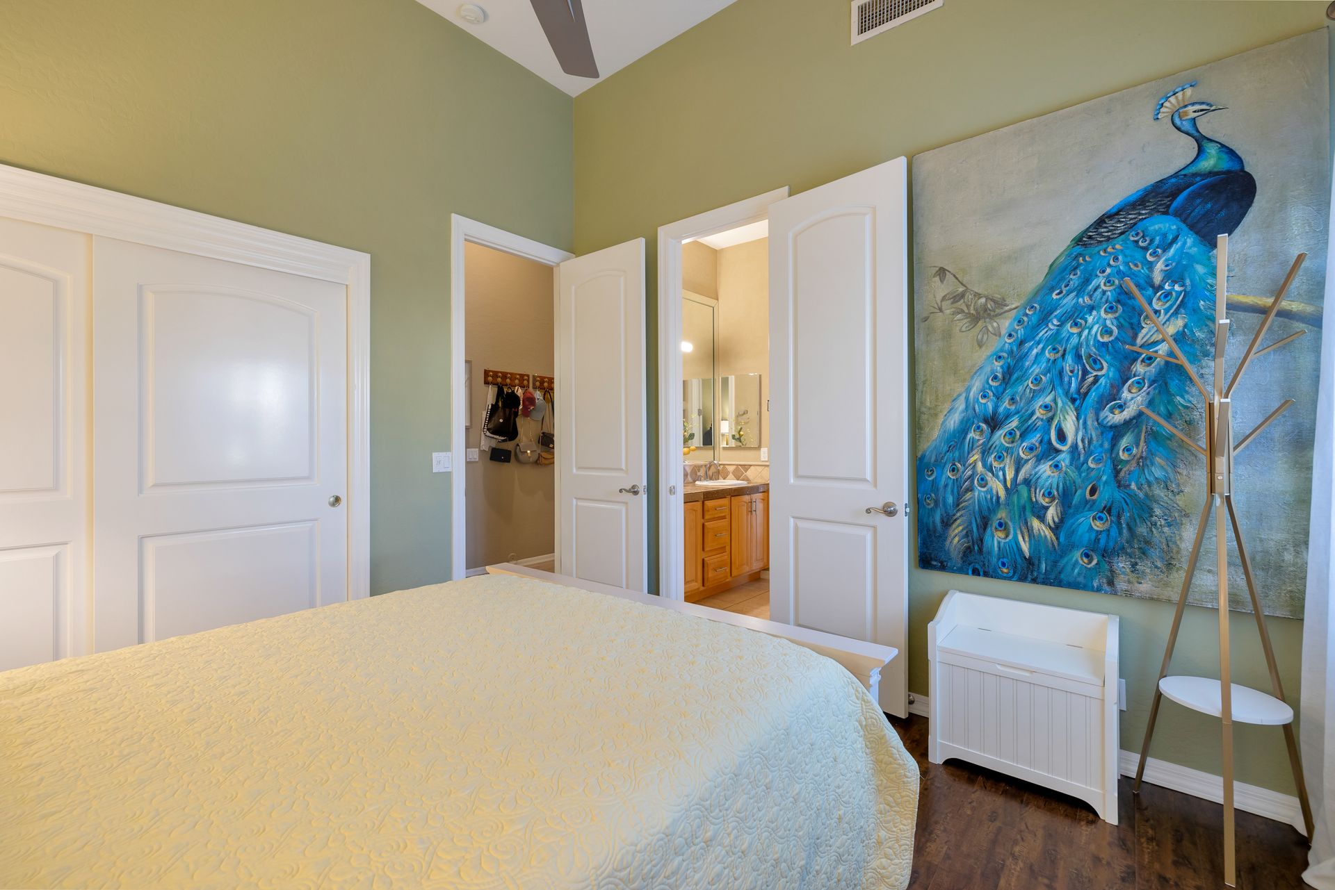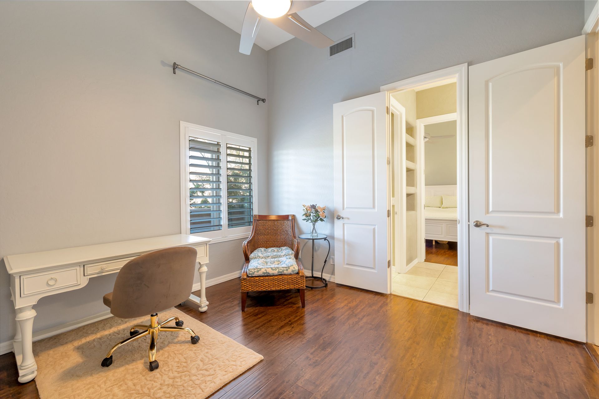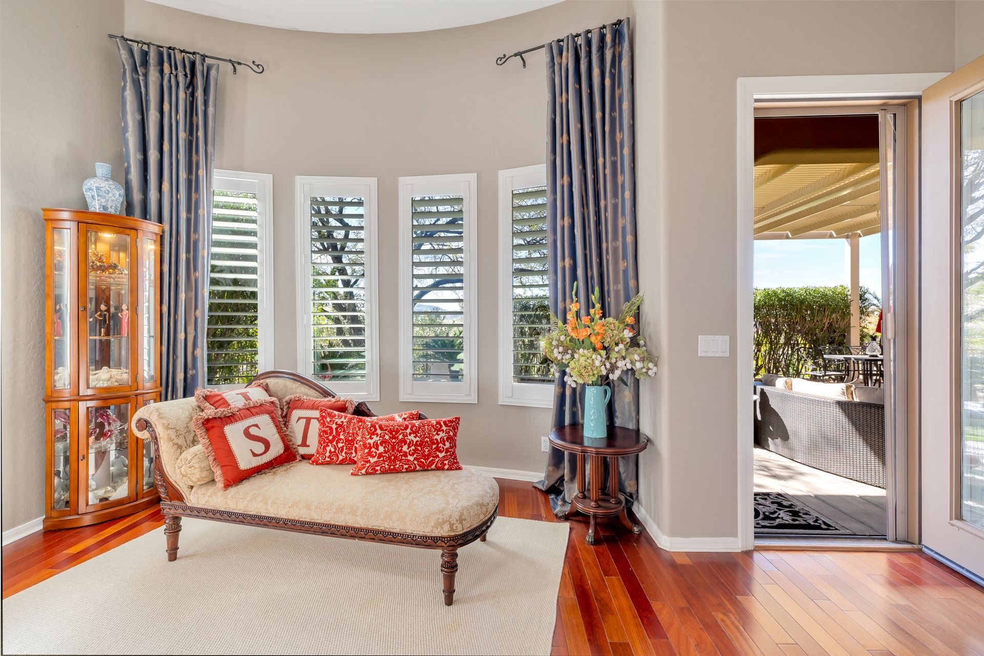 This Ridge at Lookout Mountain property offers a combination of luxurious features and natural beauty. The elevated, hillside location delivers unparalleled sunset, golf and mountain views in a gated community overlooking Lookout Mountain Golf Club. The well-designed floorplan is tailored for entertaining and the kitchen is a standout feature with custom cabinetry and high-end SubZero and Wolf appliances. The owner's suite, separated from other bedrooms, provides a lavish escape with a sitting area, gas fireplace, two walk-in closets, jetted tub and a walk-in shower. The low-maintenance backyard enhances the outdoor living experience with a covered patio, PebbleTec pool, built-in BBQ and artificial turf, creating a perfect retreat. Other features include solar panels, a new roof and a tankless water heater, contributing to energy efficiency. Additional recent improvements are all new smart locks, shutters, invisible screen doors, electronic window screens, both a water softener and reverse osmosis, new insulated garage doors, two pergolas, gutters and a backyard gate. Overall, this residence combines modern elegance with its natural surroundings, offering a luxurious and tranquil lifestyle for those seeking a sophisticated home with breathtaking views and upscale amenities. 4 BD, 3 BA, 3 CG, 3410