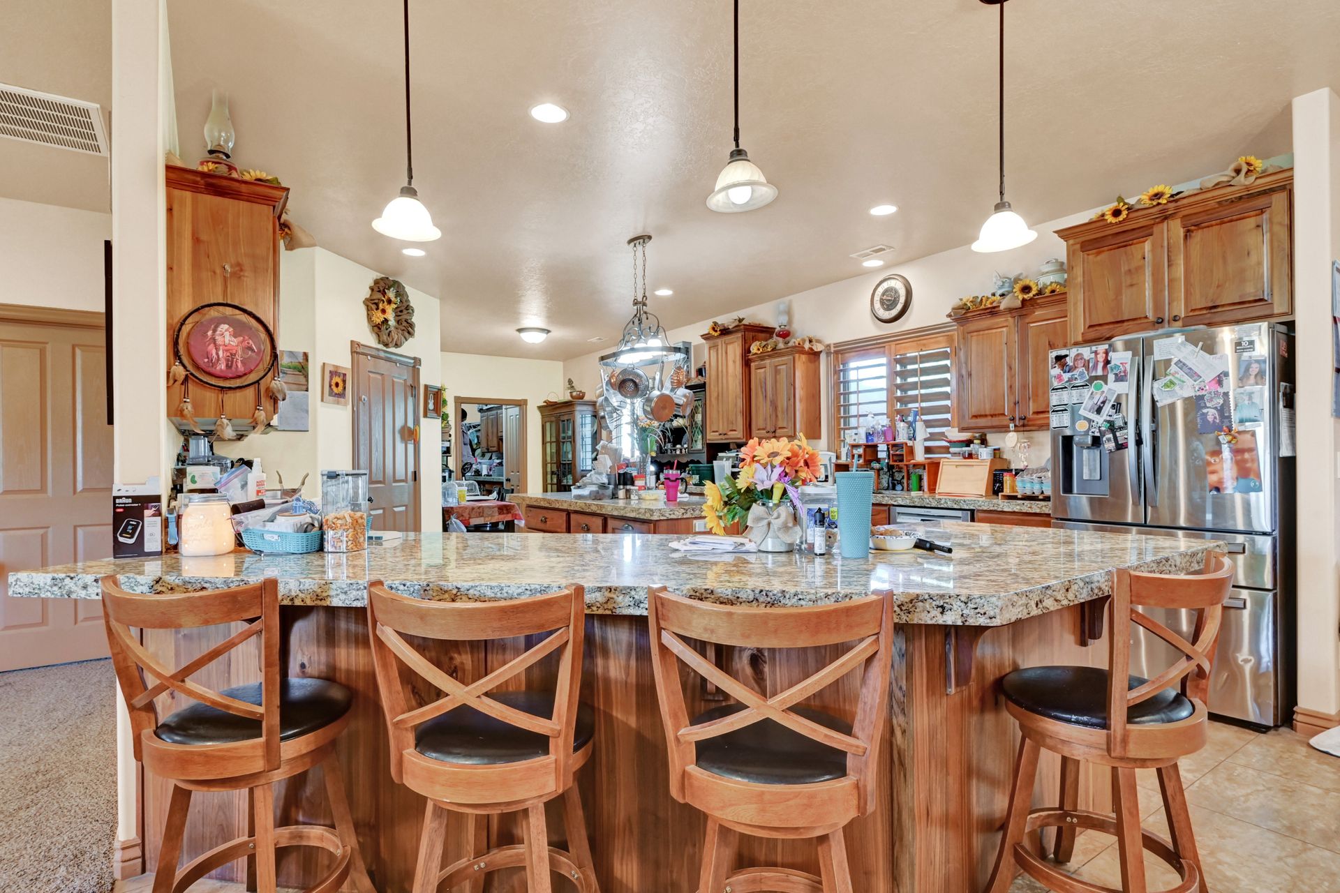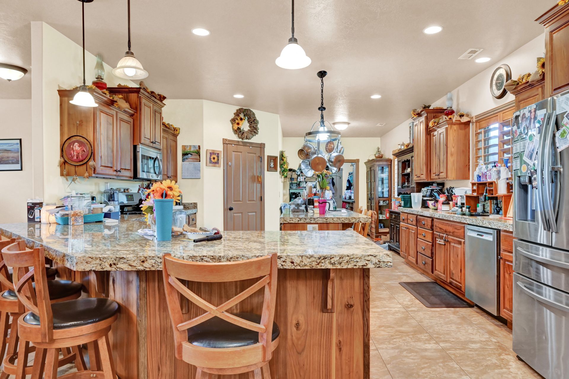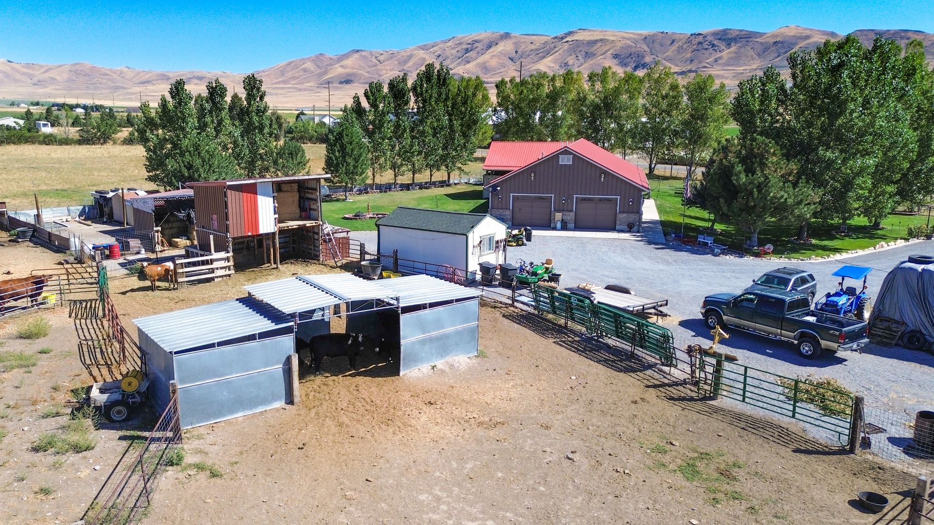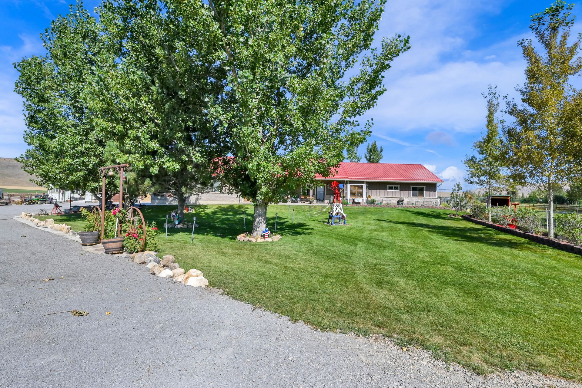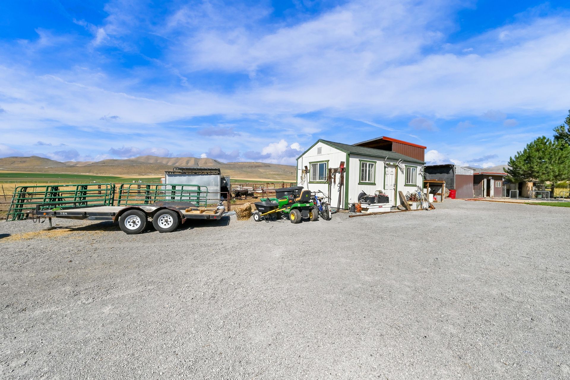 Escape to your own country paradise on this stunning 6.5-acre property, offering the perfect blend of comfort and natural beauty. This charming single-story home features an open floor plan, ideal for both everyday living and entertaining. The spacious living room flows seamlessly into a gourmet kitchen, complete with granite countertops, custom walnut cabinets and a propane gas stove. The home offers three well-appointed bedrooms, including a primary suite with a luxurious full bath and a generous walk-in closet. The meticulously cared-for yard surrounds the home with lush greenery, while the property’s numerous outbuildings provide ample storage and workspace. With expansive green pastures, this property is perfect for those seeking a peaceful retreat or a small-scale agricultural opportunity. Accessibility is a priority, with a convenient wheelchair ramp for easy entry. This property offers a rare opportunity to enjoy country living with all the comforts of a well-designed, modern home. Don't miss your chance to own this beautiful slice of countryside.