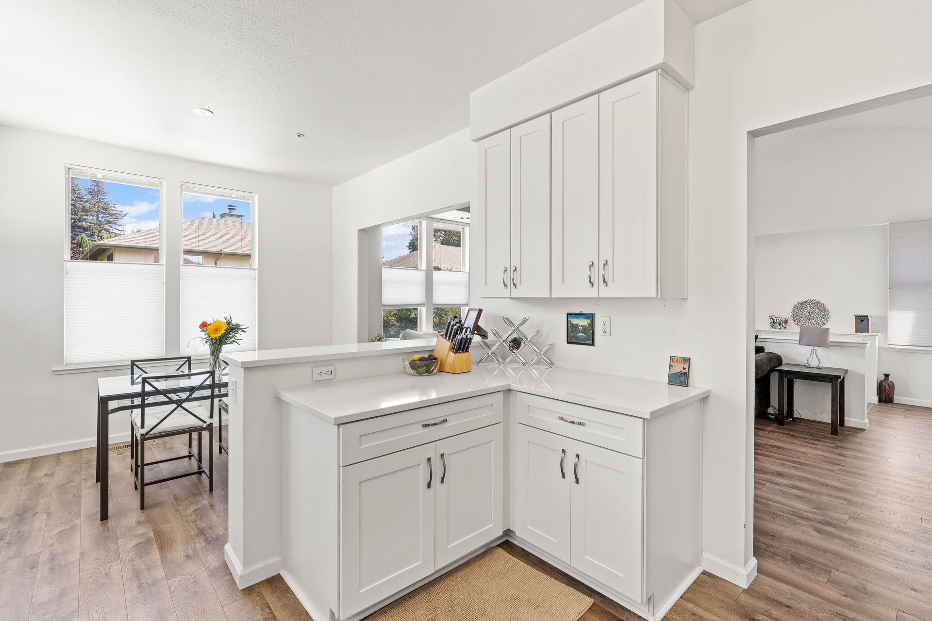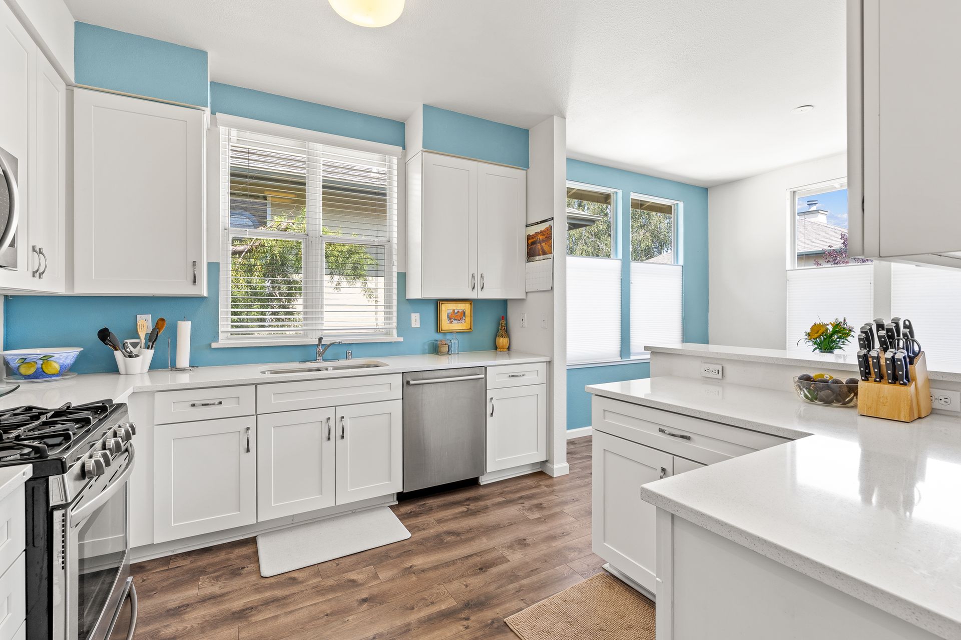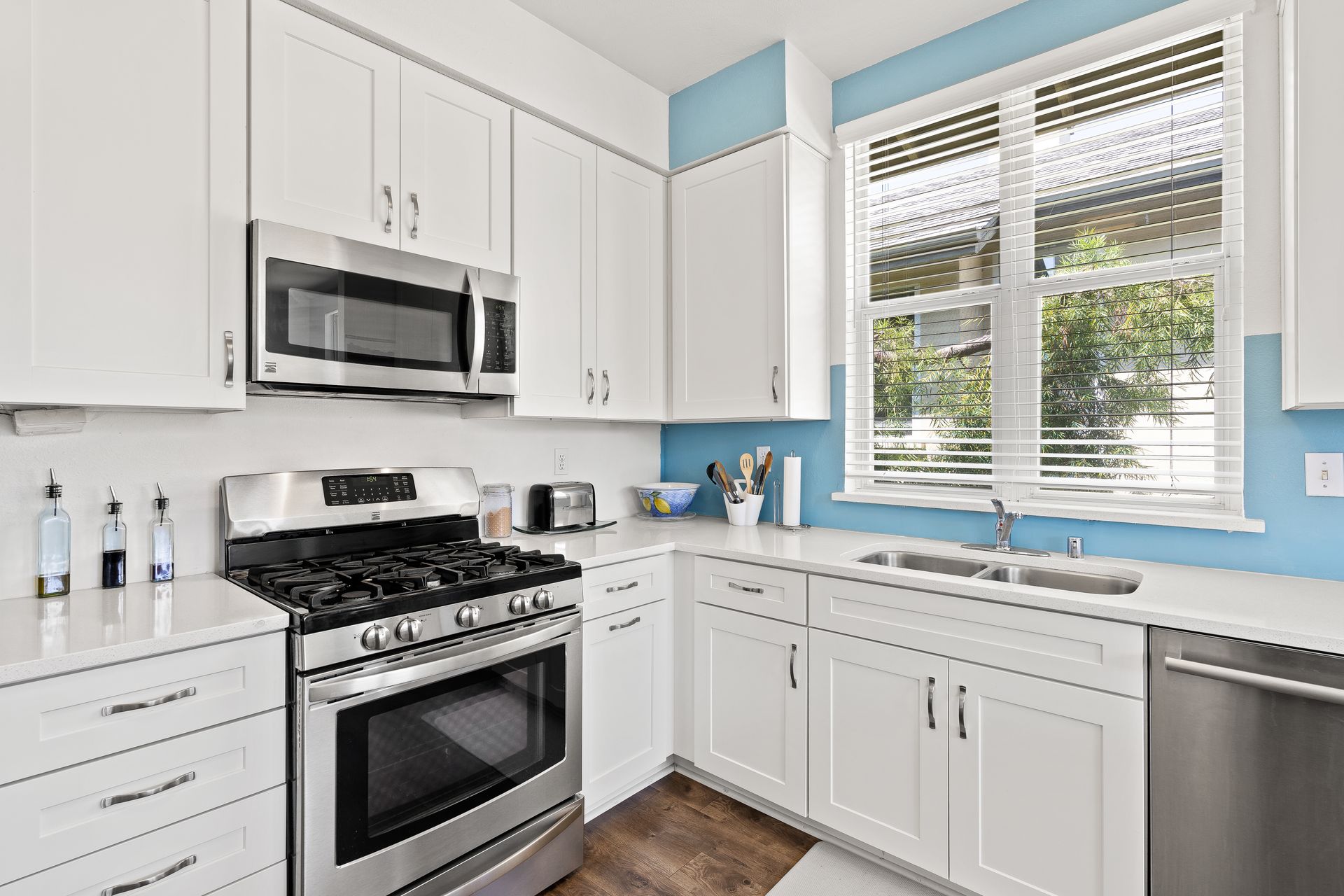 - Easy-care Quartz counters, newer Shaker-style kitchen cabinets