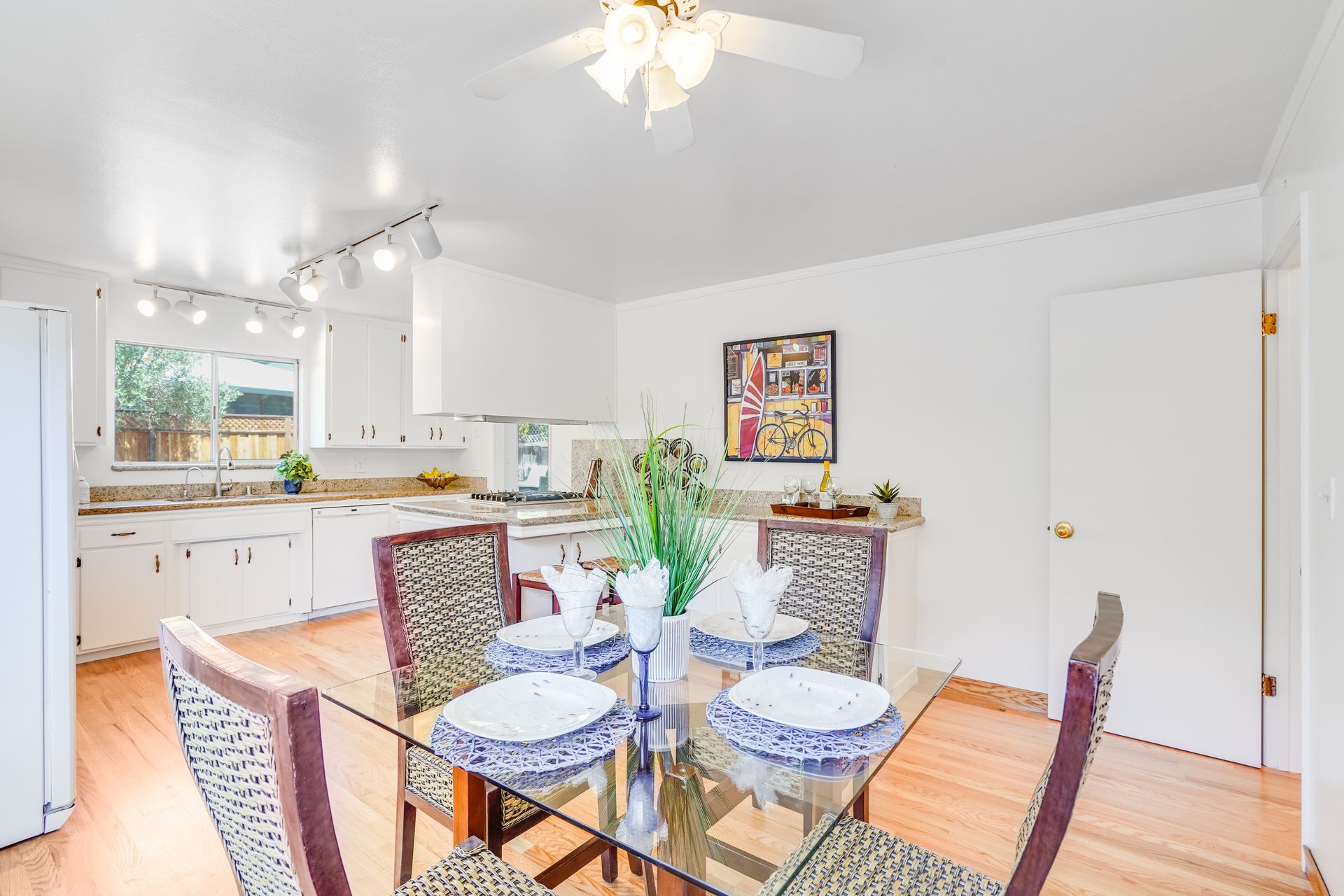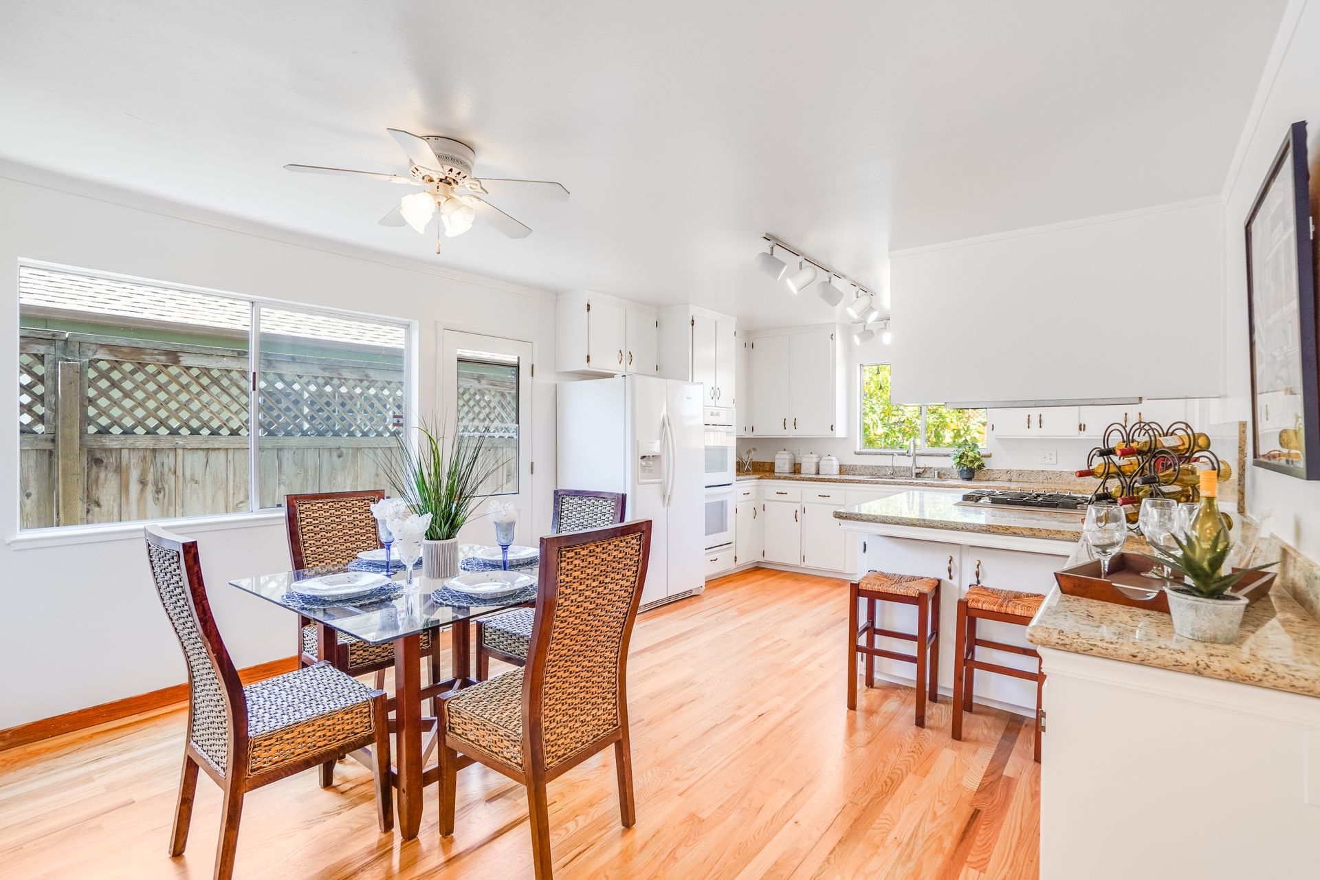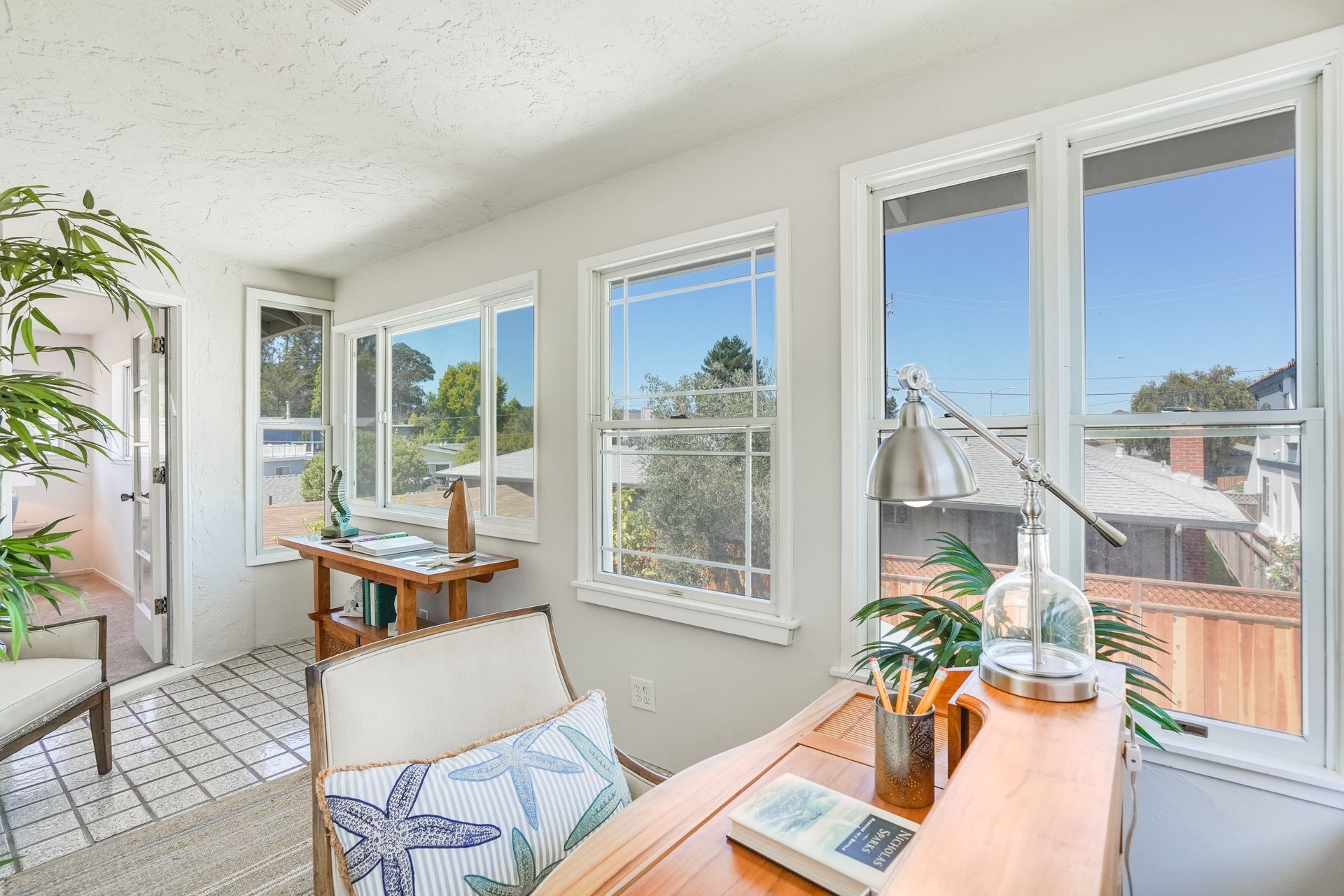 This approximately 2,300 square foot home is located on the upper west side close to UCSC, hiking and biking trails, many popular eateries, coffee shops, breweries and the popular West Cliff Drive! Some of the home features include four good-sized bedrooms with an ocean peak from the front bedrooms, a spacious primary suite with a large walk-in closet and an enclosed sunroom that was used as a home office that has some mountain views, refinished wood floors in the living room and kitchen, an inside laundry room with a laundry chute, a fireplace with an insert, fresh interior paint, new carpeting and a two-car attached garage. The kitchen is light and bright and has newer appliances, granite counters, a double oven with a separate six-burner range and an additional eating area and breakfast bar. There is a nice sunny fenced back yard with a peach and lemon tree, fragrant trumpet blossoms and plumbing for a hot tub, ideal for relaxing or enjoying the sun. Be sure to wander to the end of the street to take in the amazing views. This is a great value, don't miss out.
