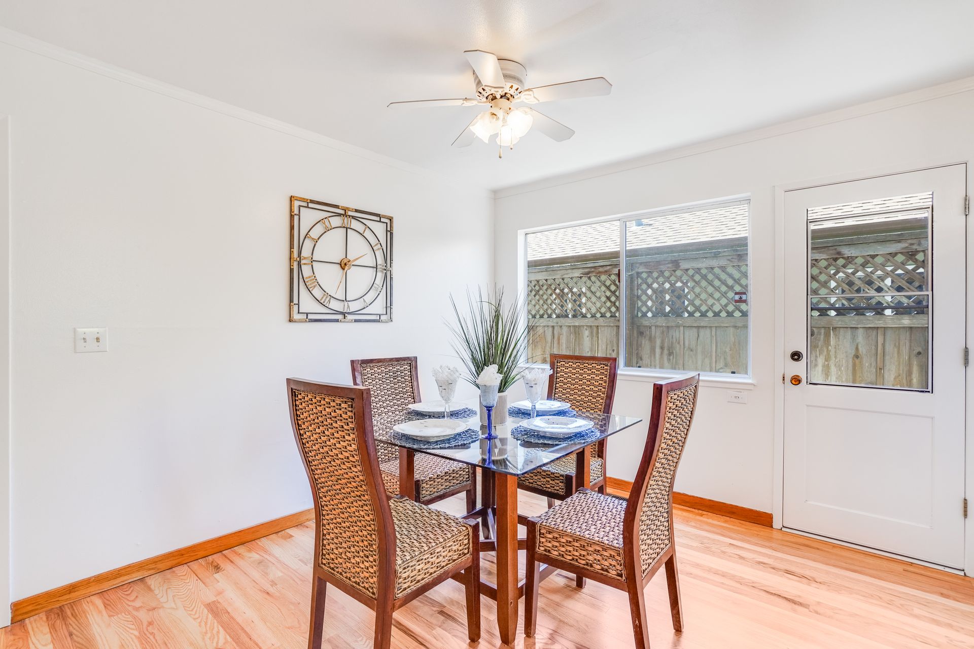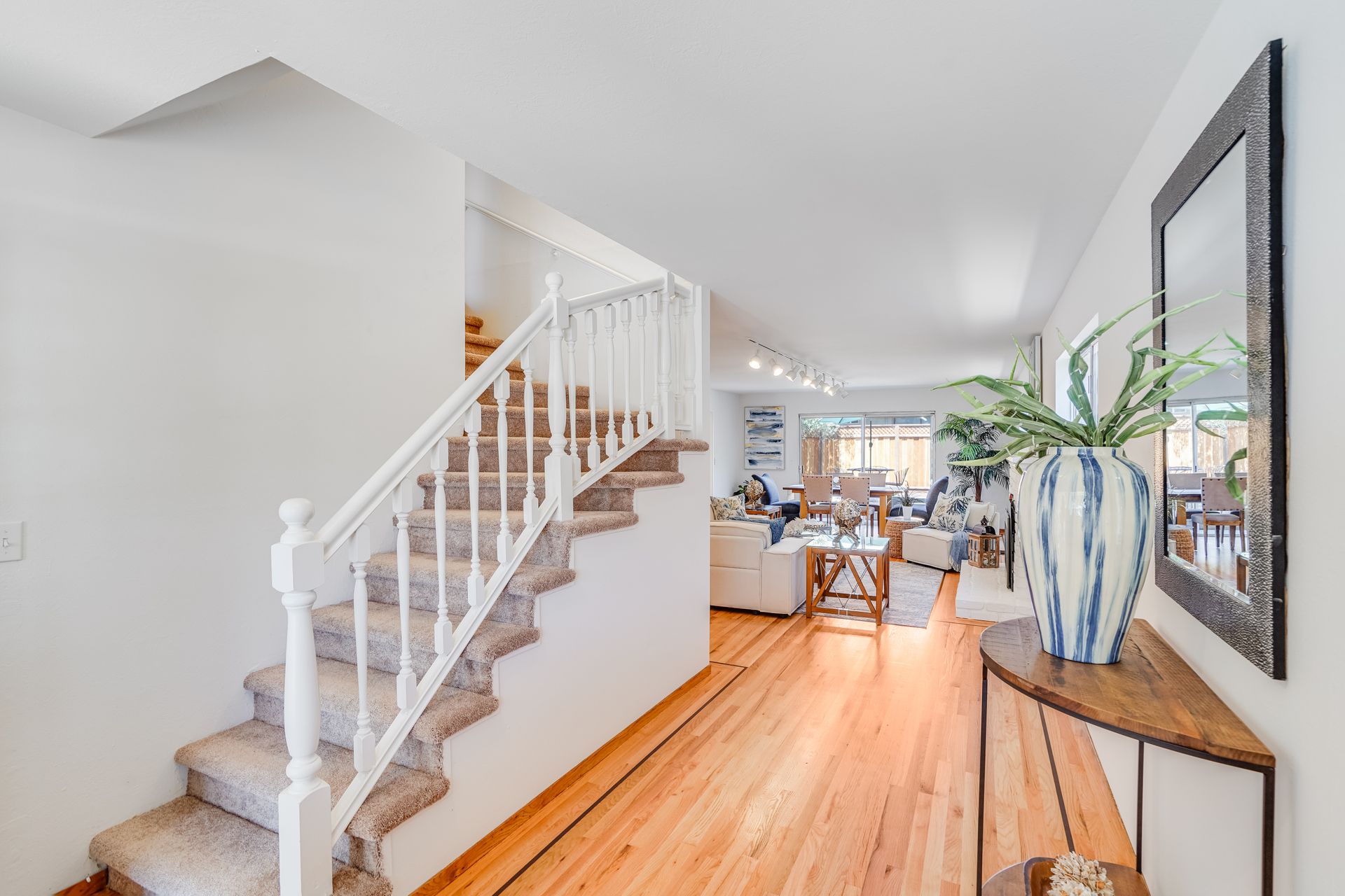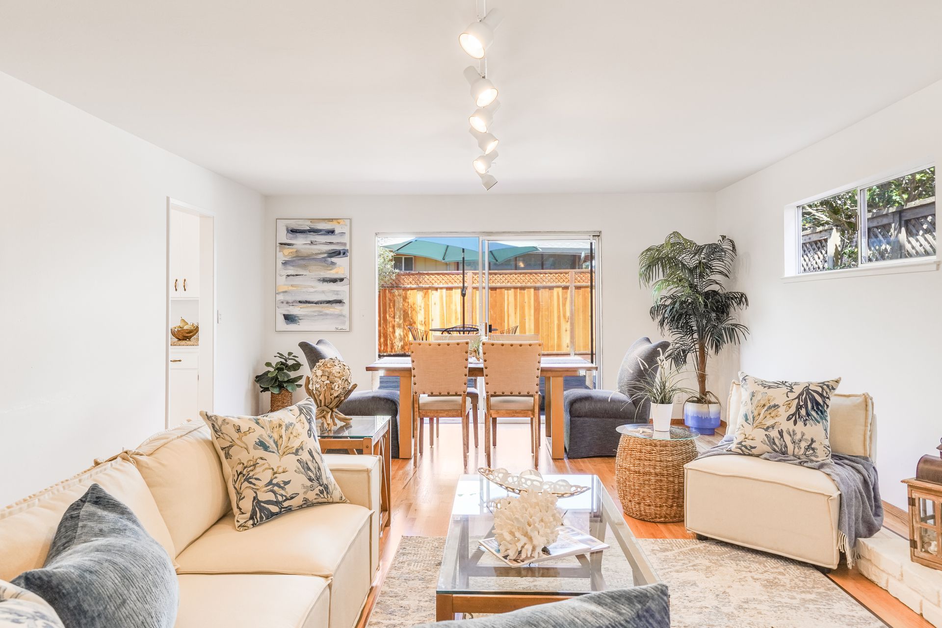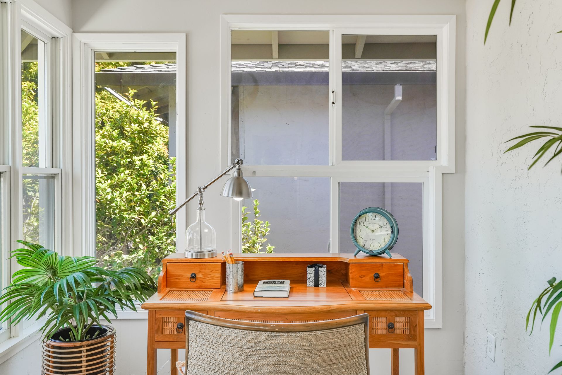 This approximately 2,300 square foot home is located on the upper west side close to UCSC, hiking and biking trails, many popular eateries, coffee shops, breweries and the popular West Cliff Drive! Some of the home features include four good-sized bedrooms with an ocean peak from the front bedrooms, a spacious primary suite with a large walk-in closet and an enclosed sunroom that was used as a home office that has some mountain views, refinished wood floors in the living room and kitchen, an inside laundry room with a laundry chute, a fireplace with an insert, fresh interior paint, new carpeting and a two-car attached garage. The kitchen is light and bright and has newer appliances, granite counters, a double oven with a separate six-burner range and an additional eating area and breakfast bar. There is a nice sunny fenced back yard with a peach and lemon tree, fragrant trumpet blossoms and plumbing for a hot tub, ideal for relaxing or enjoying the sun. Be sure to wander to the end of the street to take in the amazing views. This is a great value, don't miss out.