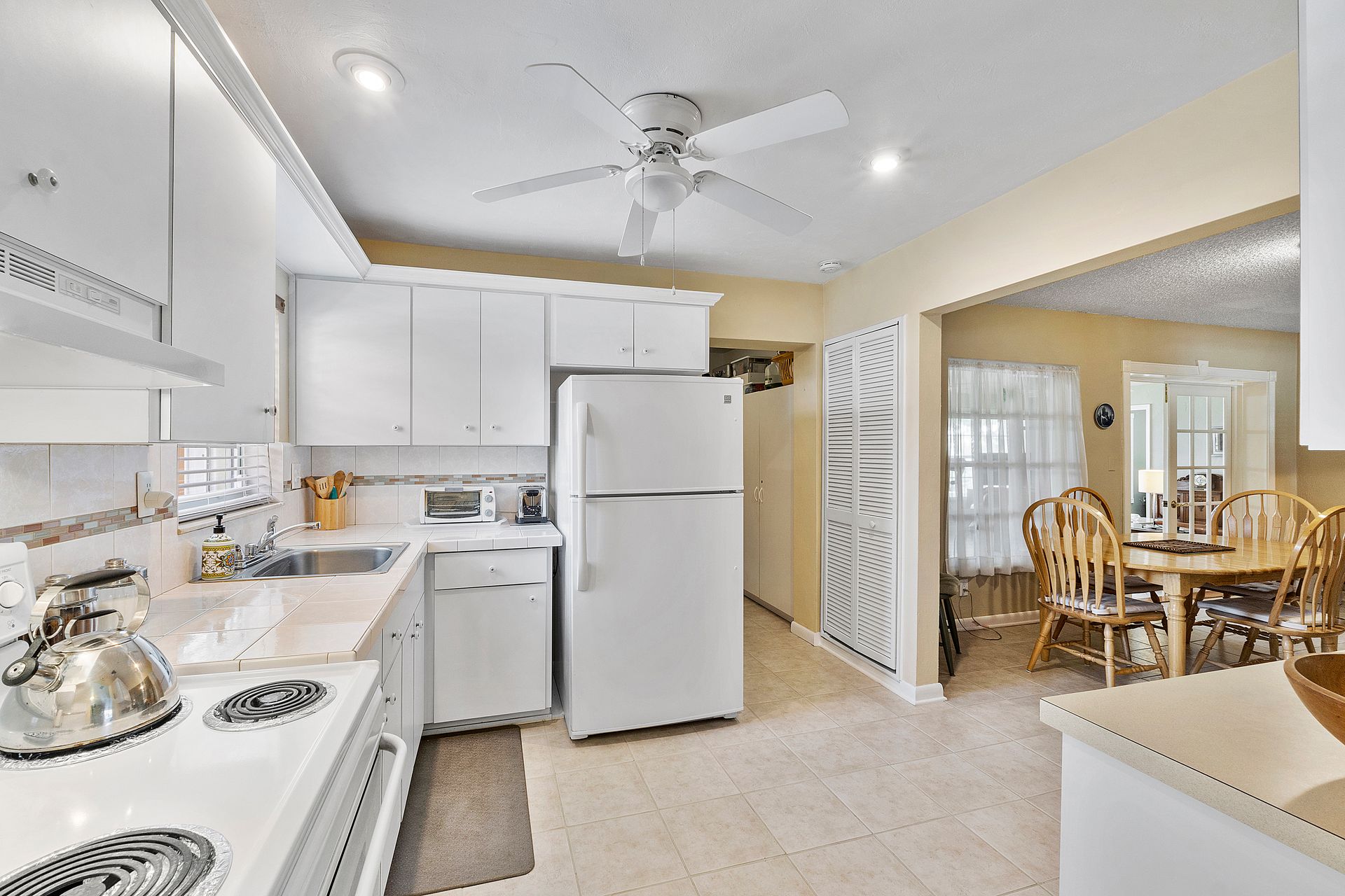 The detached garage offers ample storage and parking space, seamlessly connected to the main house by a charming breezeway. This home has been meticulously maintained. Ceramic tiled flooring throughout. White wood kitchen cabinets and white appliances. Accordion hurricane shutters, French doors to patio. Spacious laundry room.