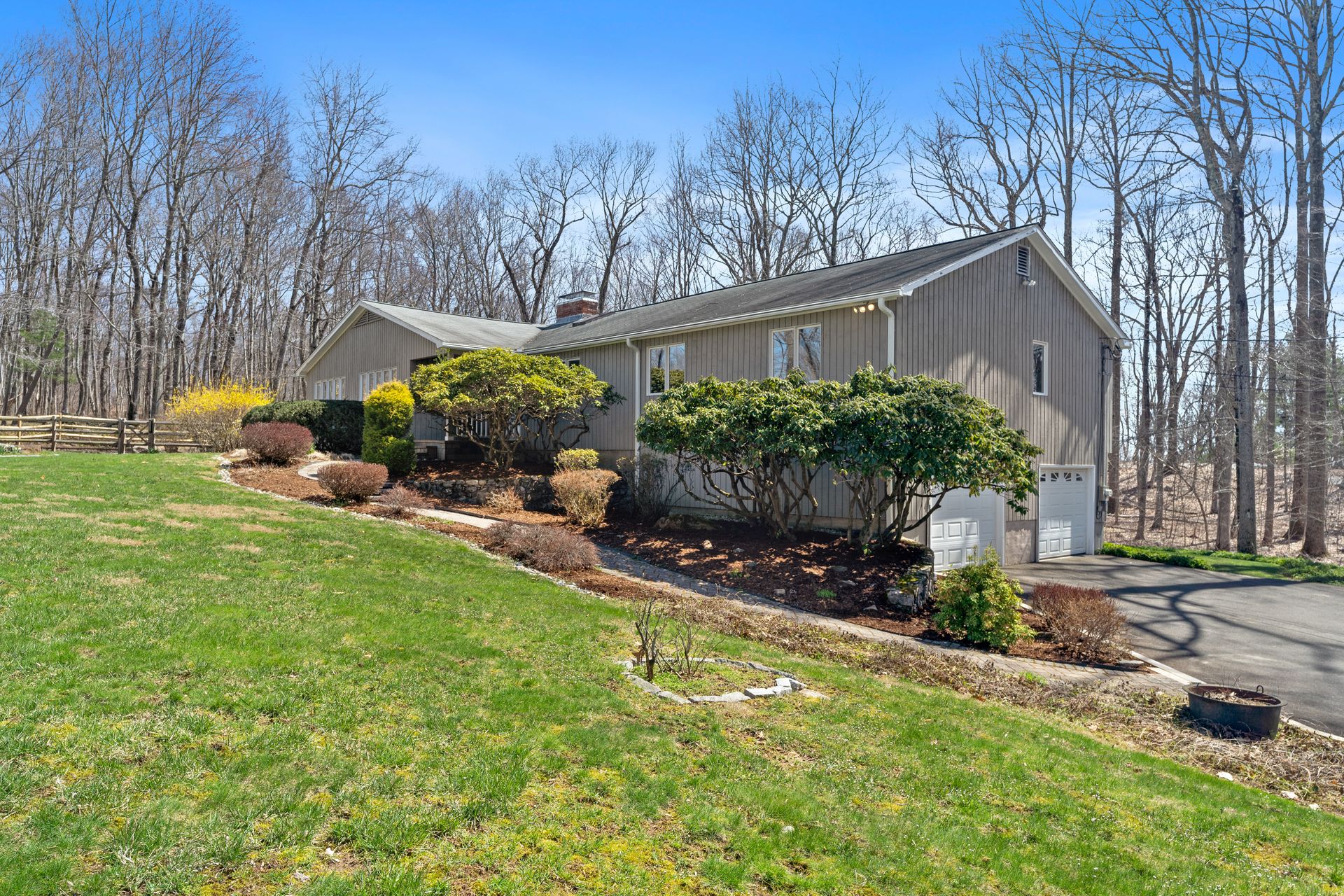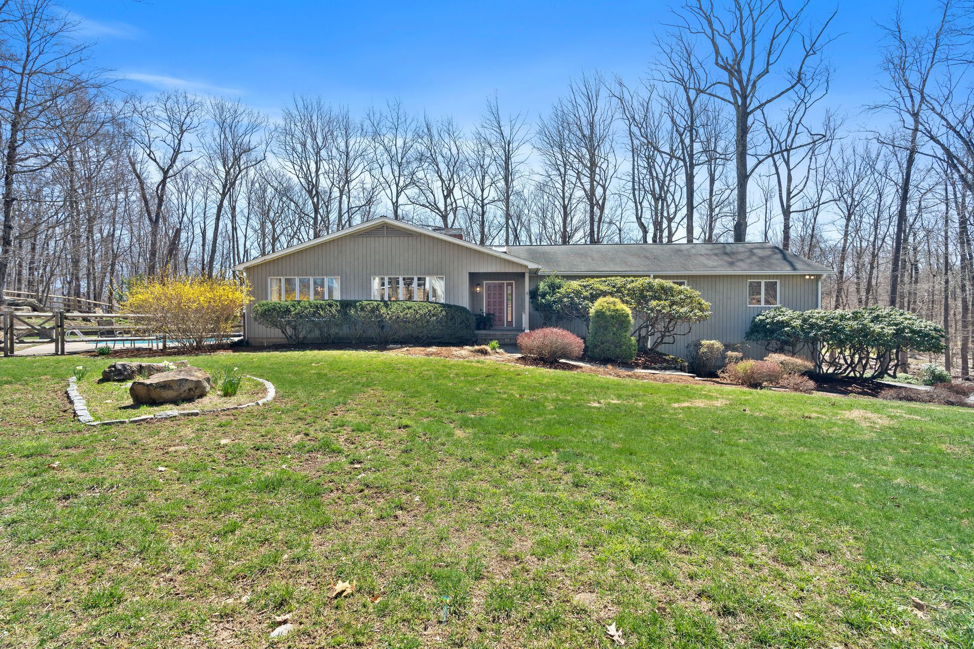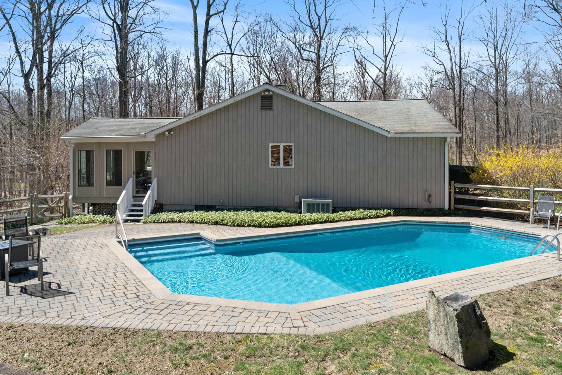A fabulous contemporary ranch with heated inground pool awaits! Four seasons of fun and memories to be made in this inviting four bedroom, two and one-half bath home, sited beautifully on the lot with a mix of sun and shade. A welcoming foyer with skylight sets the tone for the rest of the home with light-filled rooms and sense of peaceful privacy throughout. The heart of the home is the cook's delight eat-in kitchen with center island, triple skylights, gas cooktop and double ovens and fabulous three season room. The living room has a wood burning fireplace and the family room features striking floor-to-ceiling brick gas fireplace and sliders to the deck overlooking the park-like yard. The primary bath boasts a step-in shower with seat and a new vanity with a granite countertop. A huge 1,835 square foot walkout unfinished basement with a third fireplace offers tremendous expansion possibilities. Simply spectacular, inside and out, this is one very special home. Minutes to Parkway, Trains, Downtown New Haven, Yale and award-winning Amity Schools. Will not last, make your private appointment today and you may find yourself HOME SWEET HOME Tomorrow!