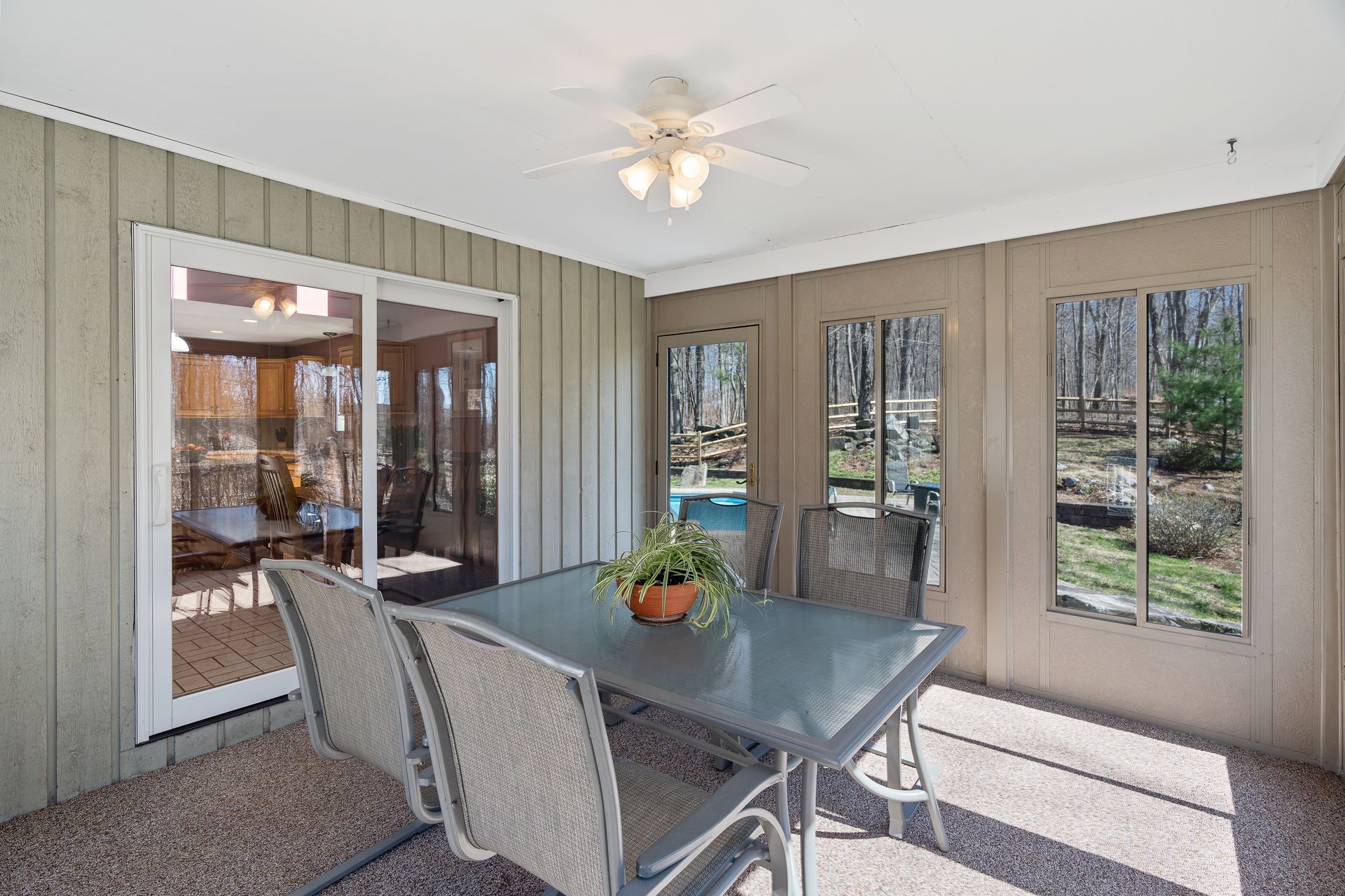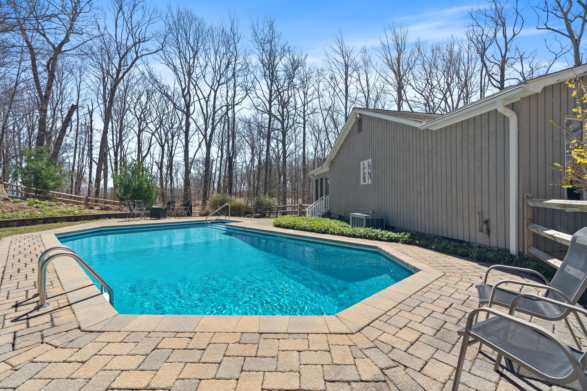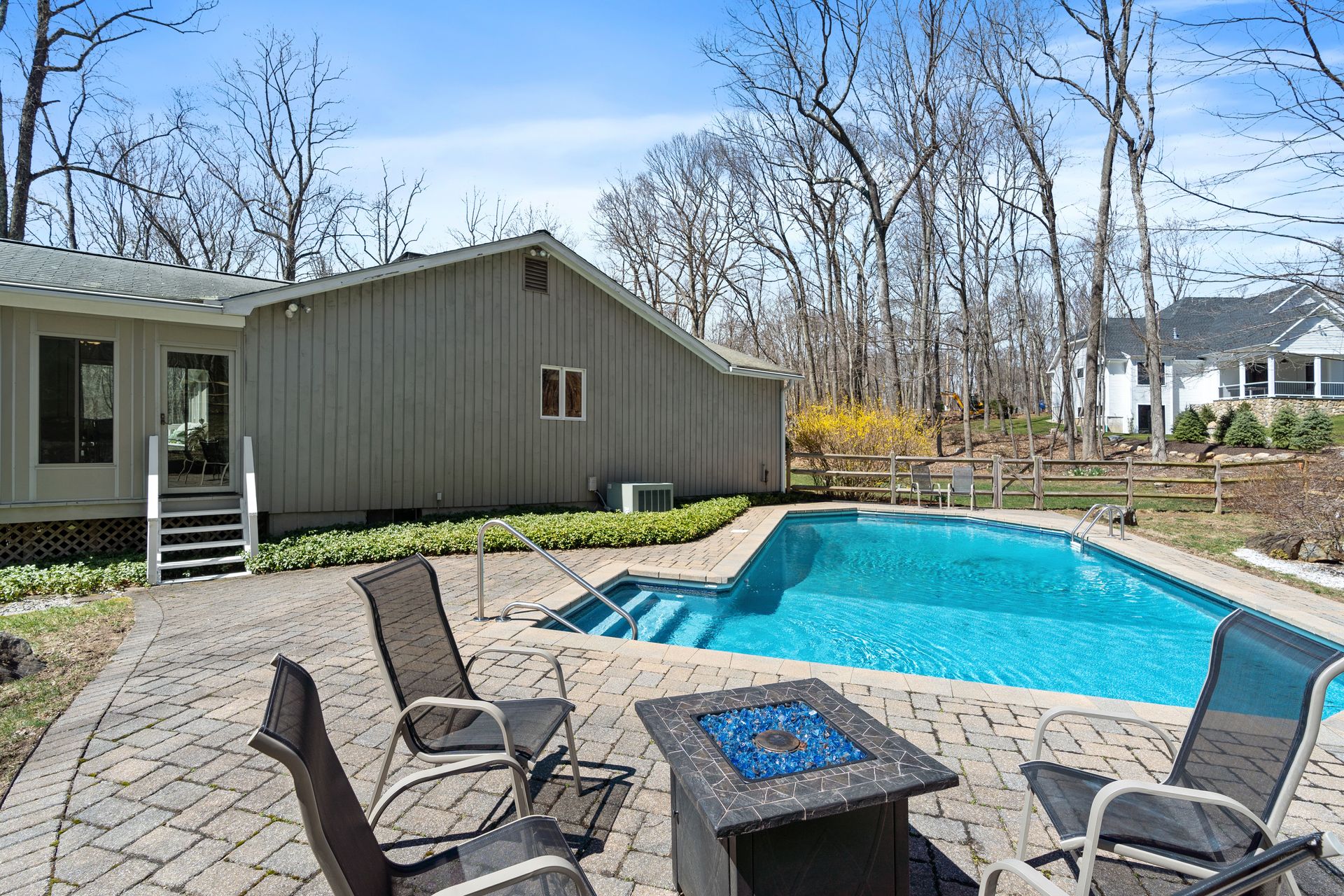 A fabulous contemporary ranch with heated inground pool awaits! Four seasons of fun and memories to be made in this inviting four bedroom, two and one-half bath home, sited beautifully on the lot with a mix of sun and shade. A welcoming foyer with skylight sets the tone for the rest of the home with light-filled rooms and sense of peaceful privacy throughout. The heart of the home is the cook's delight eat-in kitchen with center island, triple skylights, gas cooktop and double ovens and fabulous three season room. The living room has a wood burning fireplace and the family room features striking floor-to-ceiling brick gas fireplace and sliders to the deck overlooking the park-like yard. The primary bath boasts a step-in shower with seat and a new vanity with a granite countertop. A huge 1,835 square foot walkout unfinished basement with a third fireplace offers tremendous expansion possibilities. Simply spectacular, inside and out, this is one very special home. Minutes to Parkway, Trains, Downtown New Haven, Yale and award-winning Amity Schools. Will not last, make your private appointment today and you may find yourself HOME SWEET HOME Tomorrow!