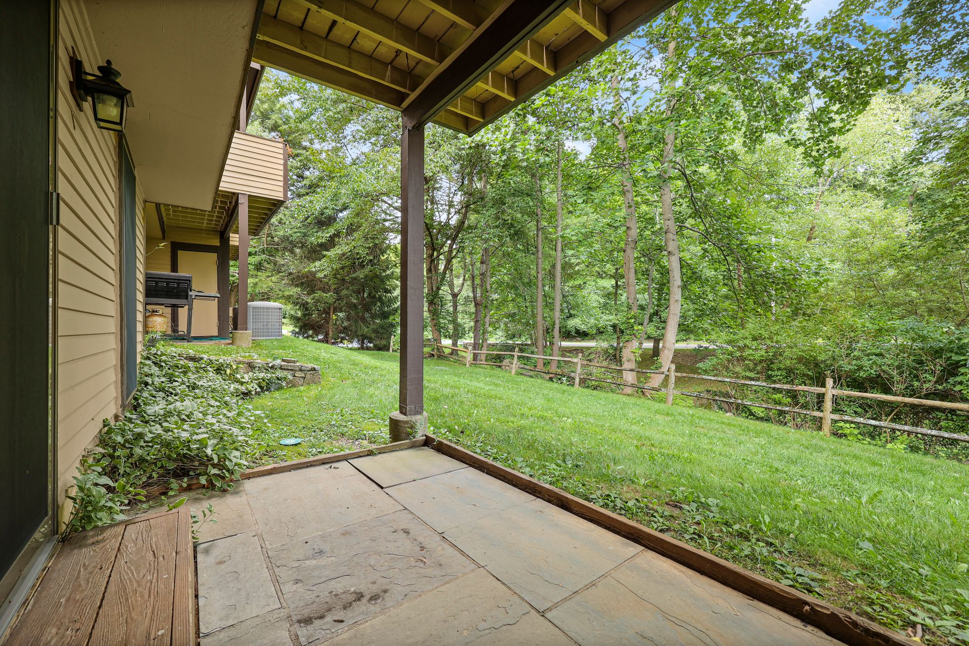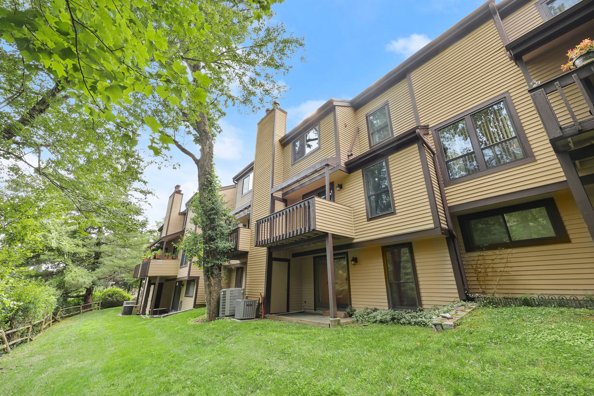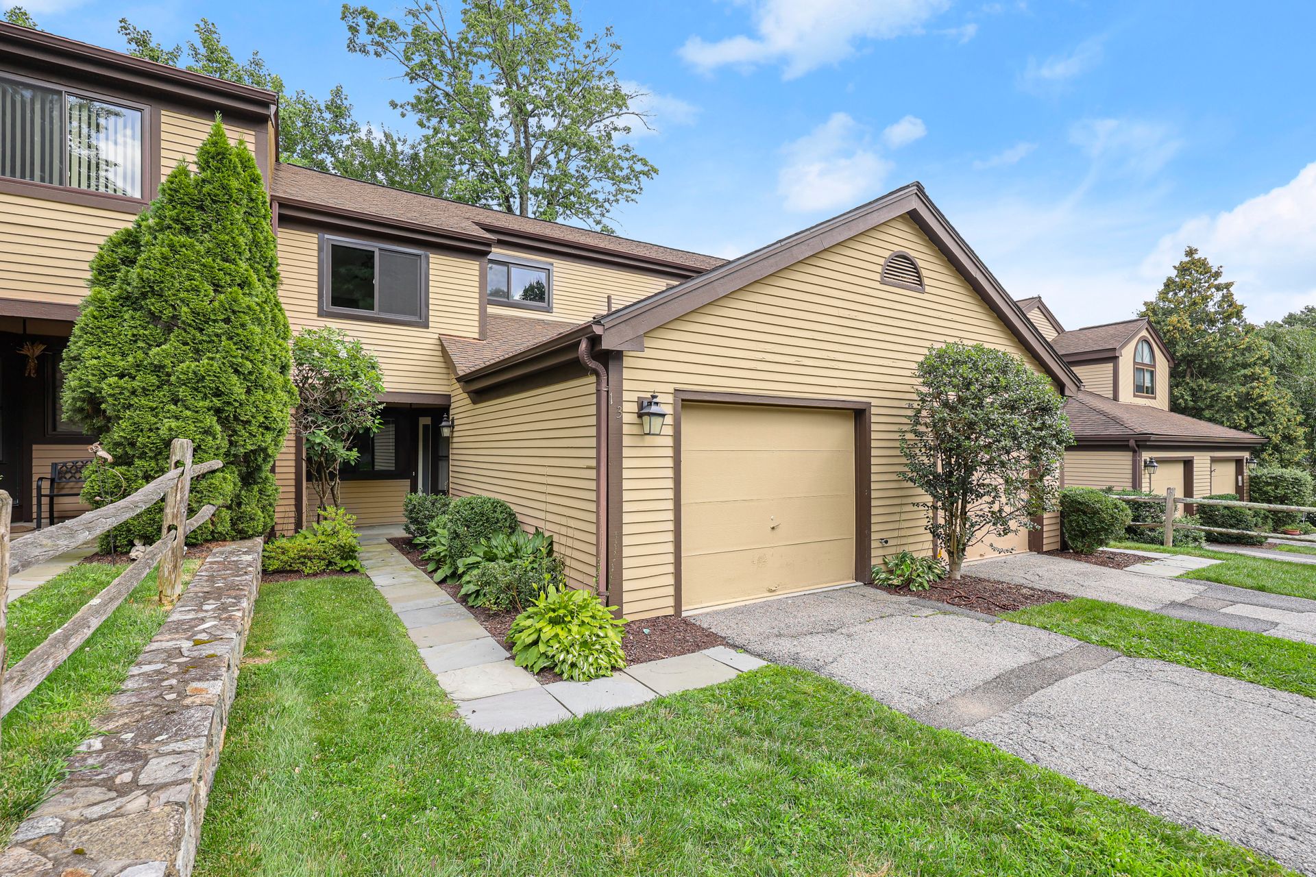 This Deerfield two-bedroom unit has been updated, freshly painted and is ready to go. The first-floor features entry from the private front door or direct access from the attached one car garage. Updated in 2019, the eat-in-kitchen boast quartz counters, white appliances, separate pantry and open concept into the formal dining room and living room with traditional wood burning fireplace and sliding glass doors to deck with wooded view. The second floor features a main bedroom with walk-in organized closet and direct access to the bathroom with double sinks, full bathtub and large linen closet. The second bedroom has two closets. The hall has the upgraded Meile Washer and Dryer and an additional large hall closet. The lower level is finished (500+ sq ft included in total) with sliding glass doors to the patio, lots of additional closets and a full bath with shower. Enjoy the complex pool during hot summer months.