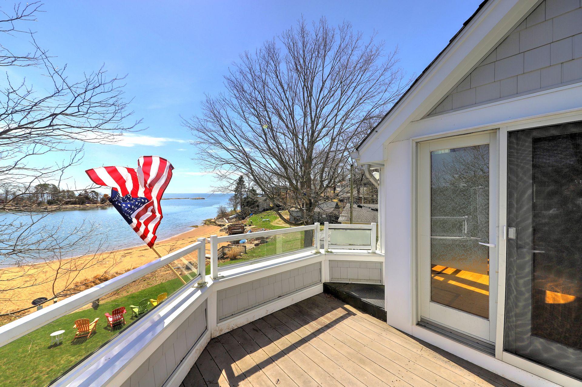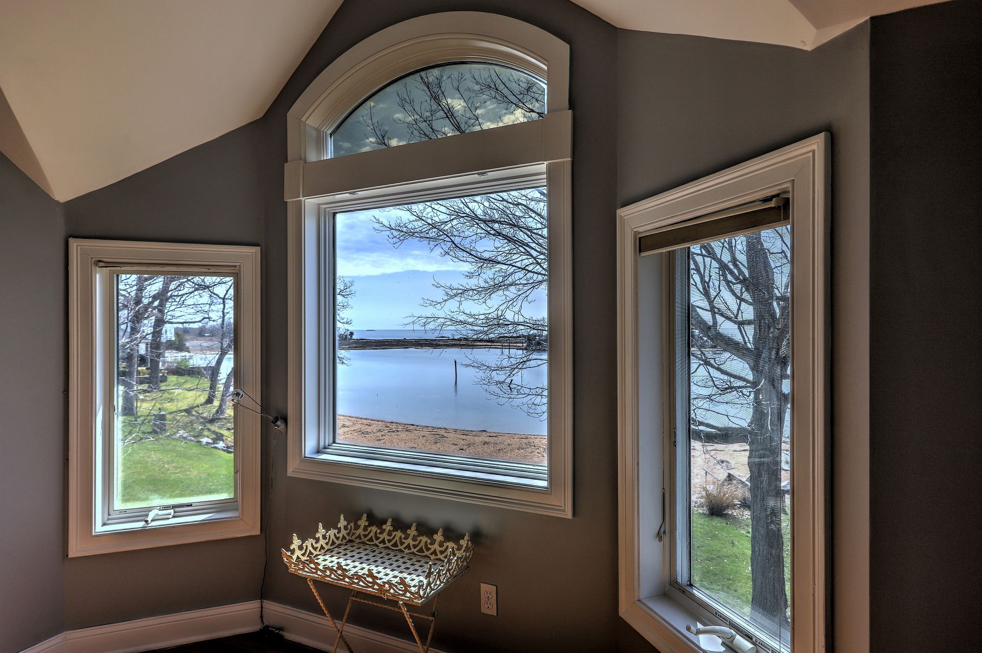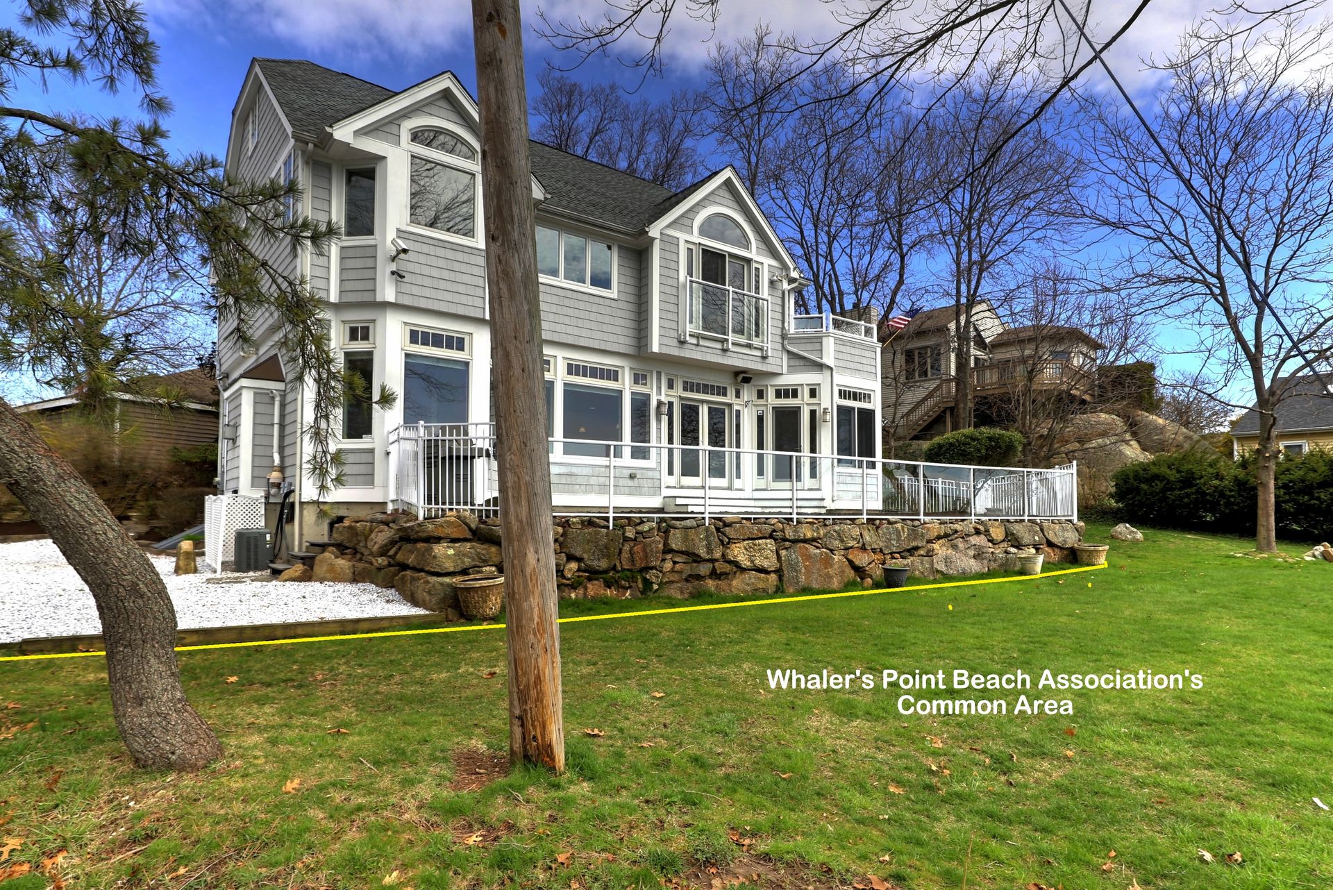 Vacation all year round in this direct waterfront, custom contemporary colonial in the much sought-after Whalers Point area. Open concept floor plan with kitchen, great room and family room connected, all with breathtaking views of the water and beach and flooded with sunlight. There is a warm pine kitchen with granite counters, stainless steel appliances and center island with seating. Octagonal dining room with walls of windows let you soak in all of the views. A home/office, laundry room and half bath complete the first floor. The upper level offers a sumptuous, sunny main suite with spectacular views, palladium window and a private, water-facing balcony. Enjoy the ensuite bath with double sink vanity, travertine floor, stall shower and Jacuzzi tub overlooking the water. Three additional bedrooms, all generous in proportion, as well as full bath, complete the second floor. Enjoy relaxing on your private patio overlooking the sandy beach. While not part of the Whalers Point Association, this home does enjoy beach and mooring rights (~$1,116).