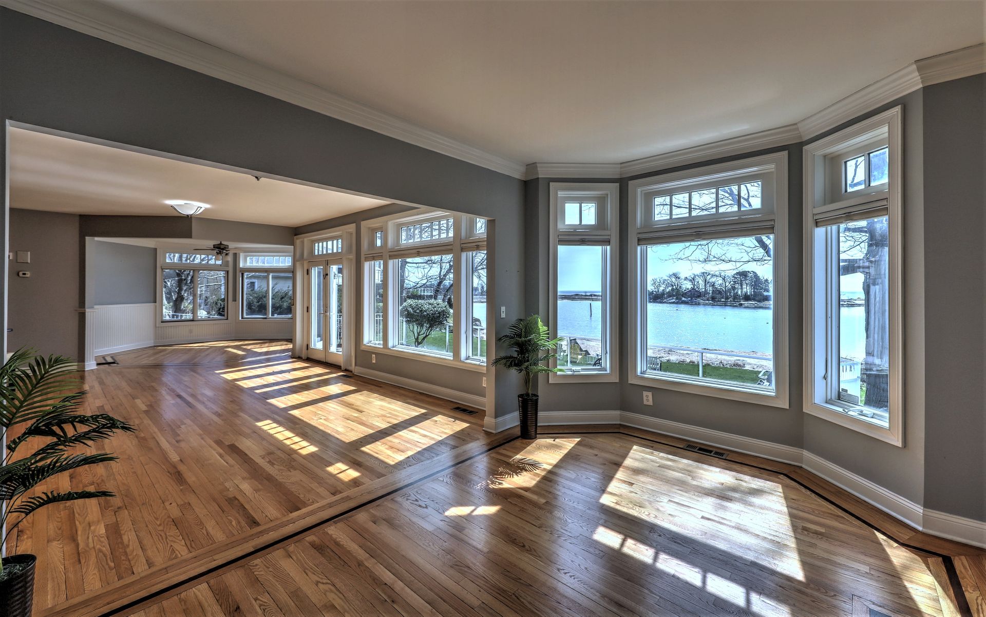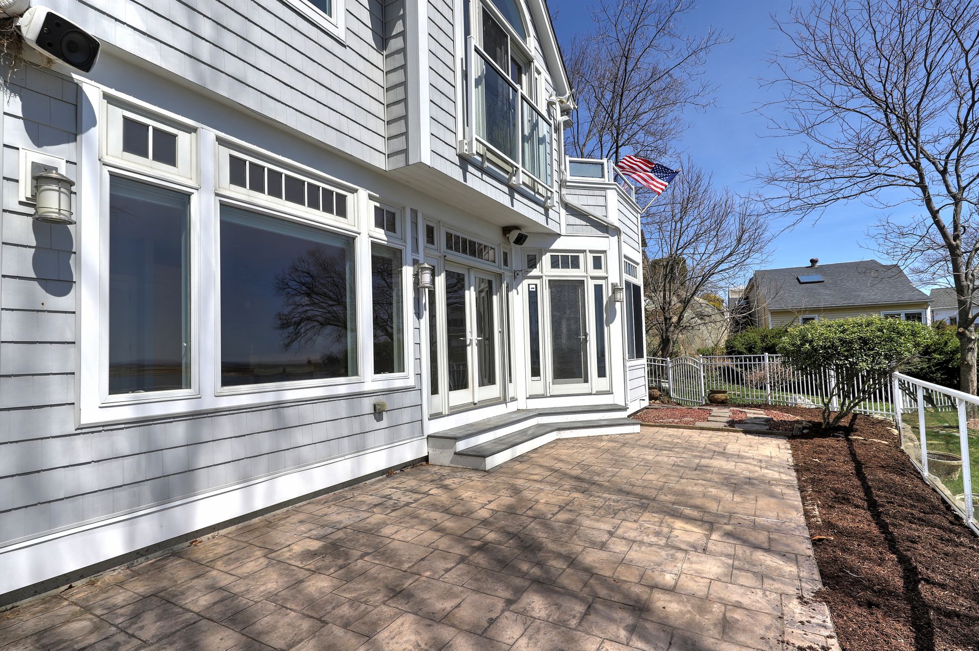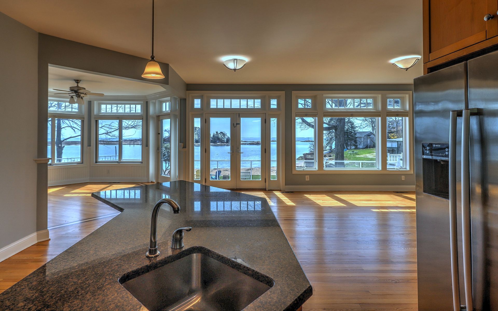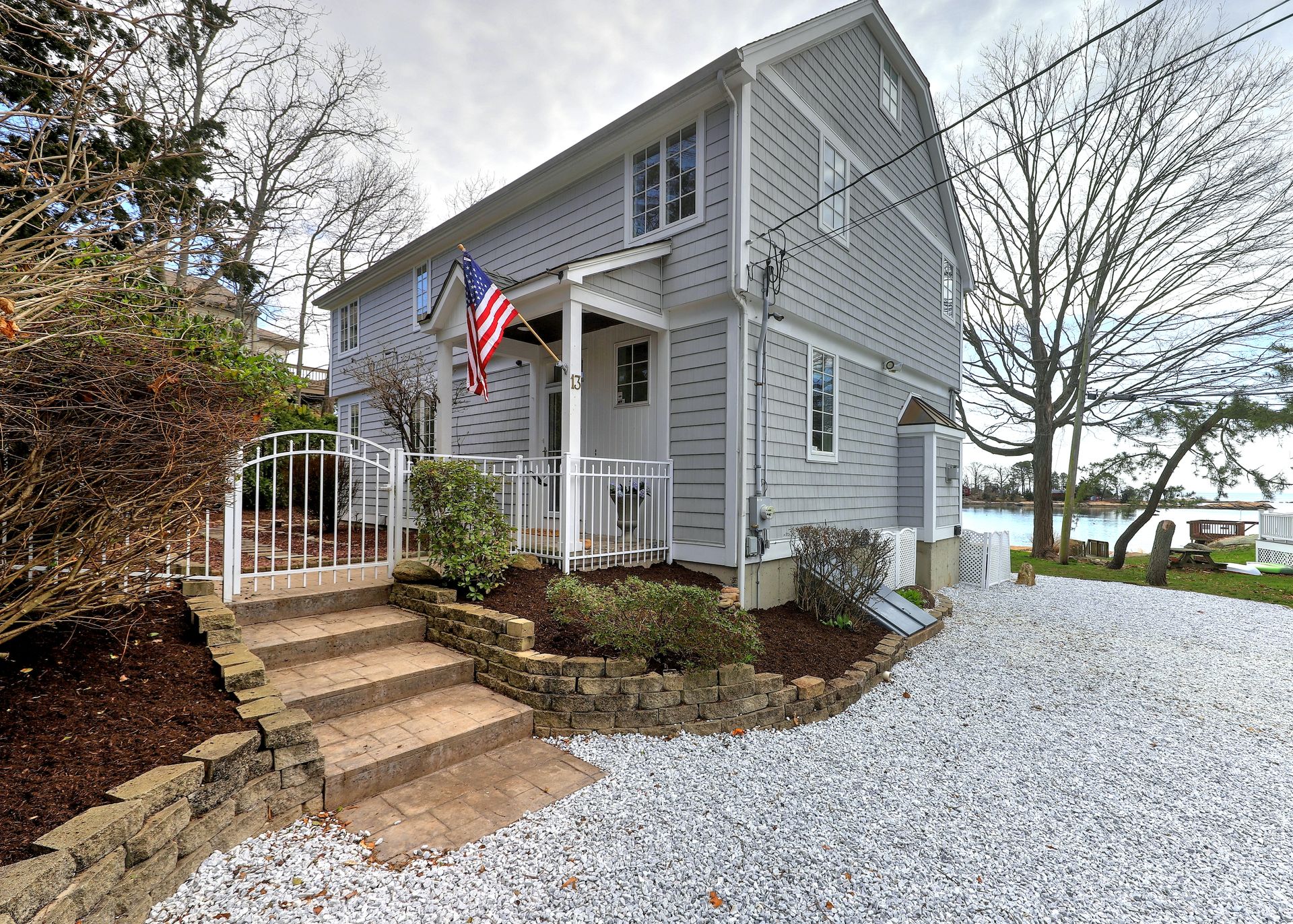 Vacation all year round in this direct waterfront, custom contemporary colonial in the much sought-after Whalers Point area. Open concept floor plan with kitchen, great room and family room connected, all with breathtaking views of the water and beach and flooded with sunlight. There is a warm pine kitchen with granite counters, stainless steel appliances and center island with seating. Octagonal dining room with walls of windows let you soak in all of the views. A home/office, laundry room and half bath complete the first floor. The upper level offers a sumptuous, sunny main suite with spectacular views, palladium window and a private, water-facing balcony. Enjoy the ensuite bath with double sink vanity, travertine floor, stall shower and Jacuzzi tub overlooking the water. Three additional bedrooms, all generous in proportion, as well as full bath, complete the second floor. Enjoy relaxing on your private patio overlooking the sandy beach. While not part of the Whalers Point Association, this home does enjoy beach and mooring rights (~$1,116).