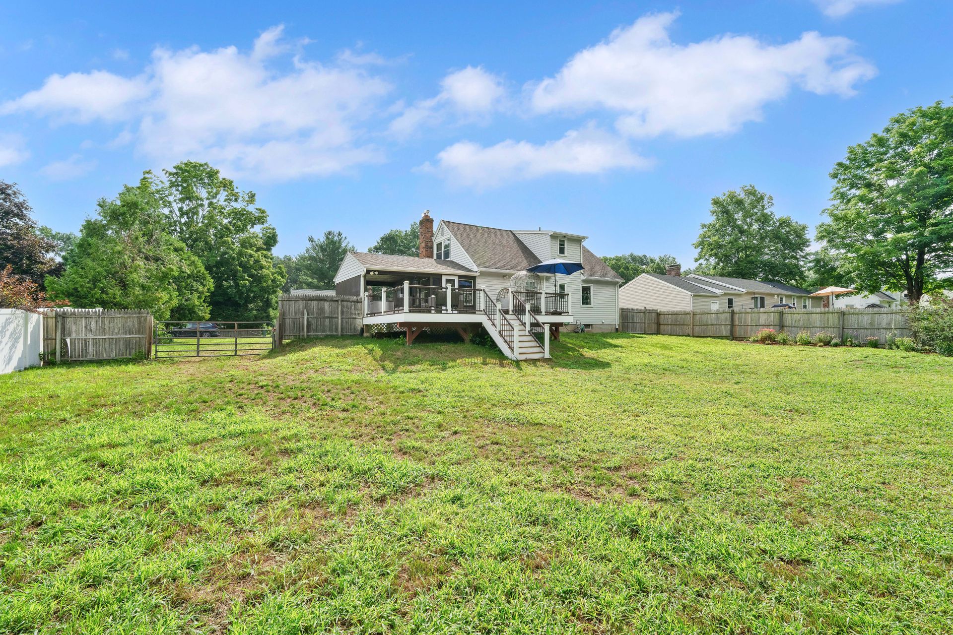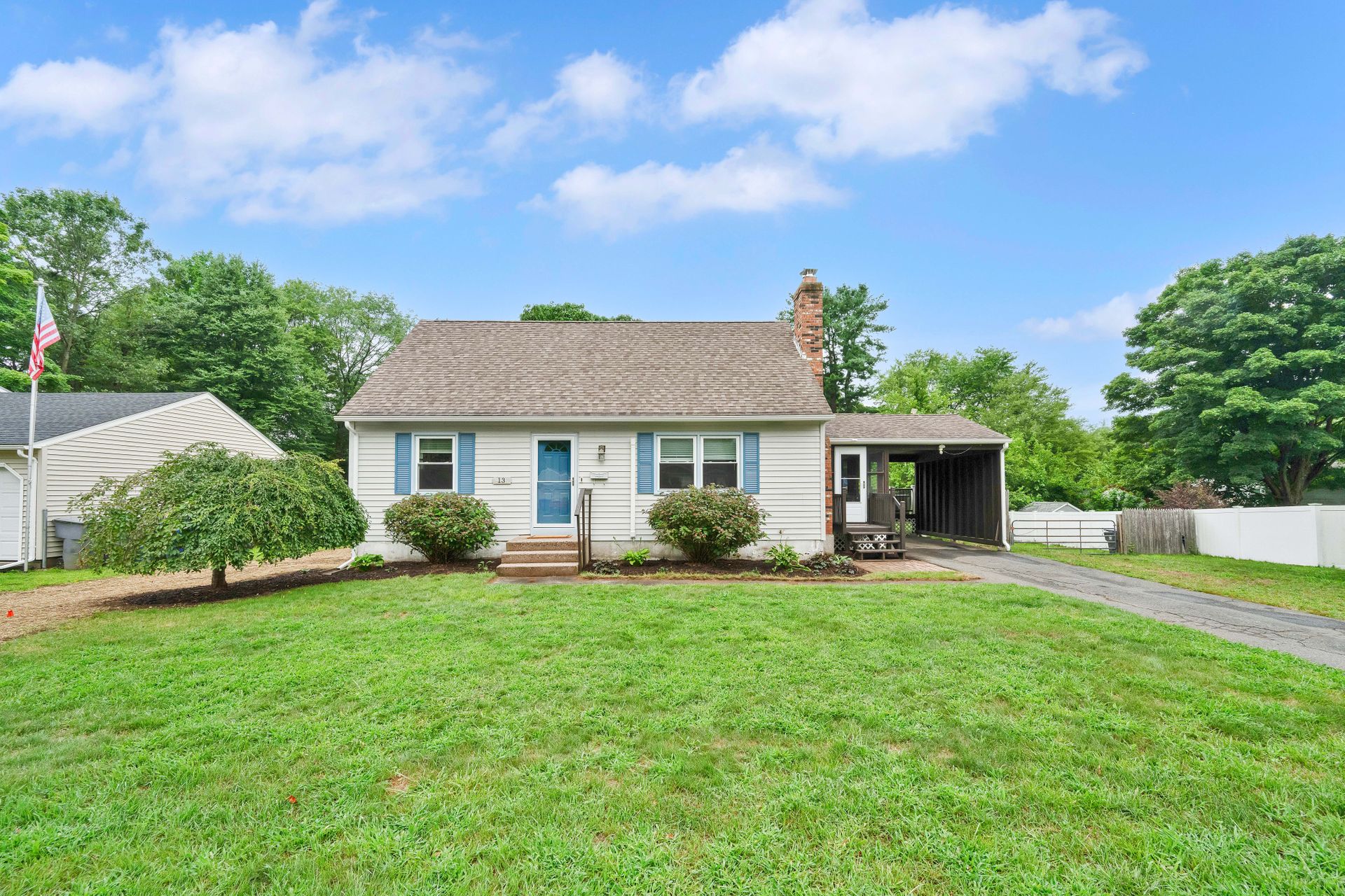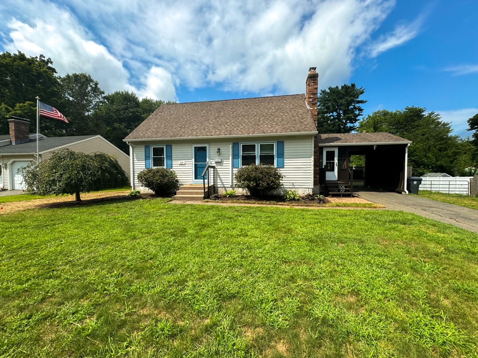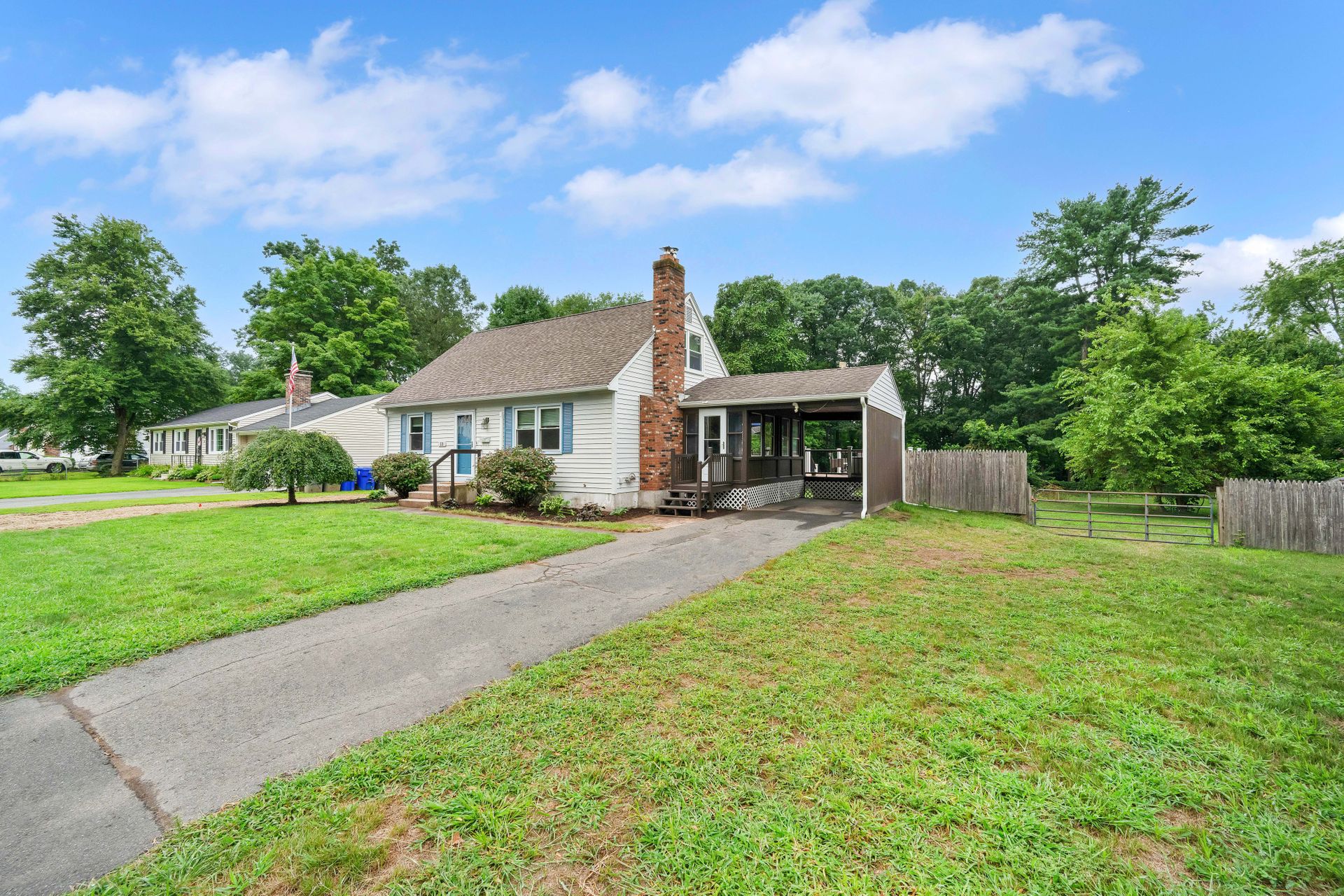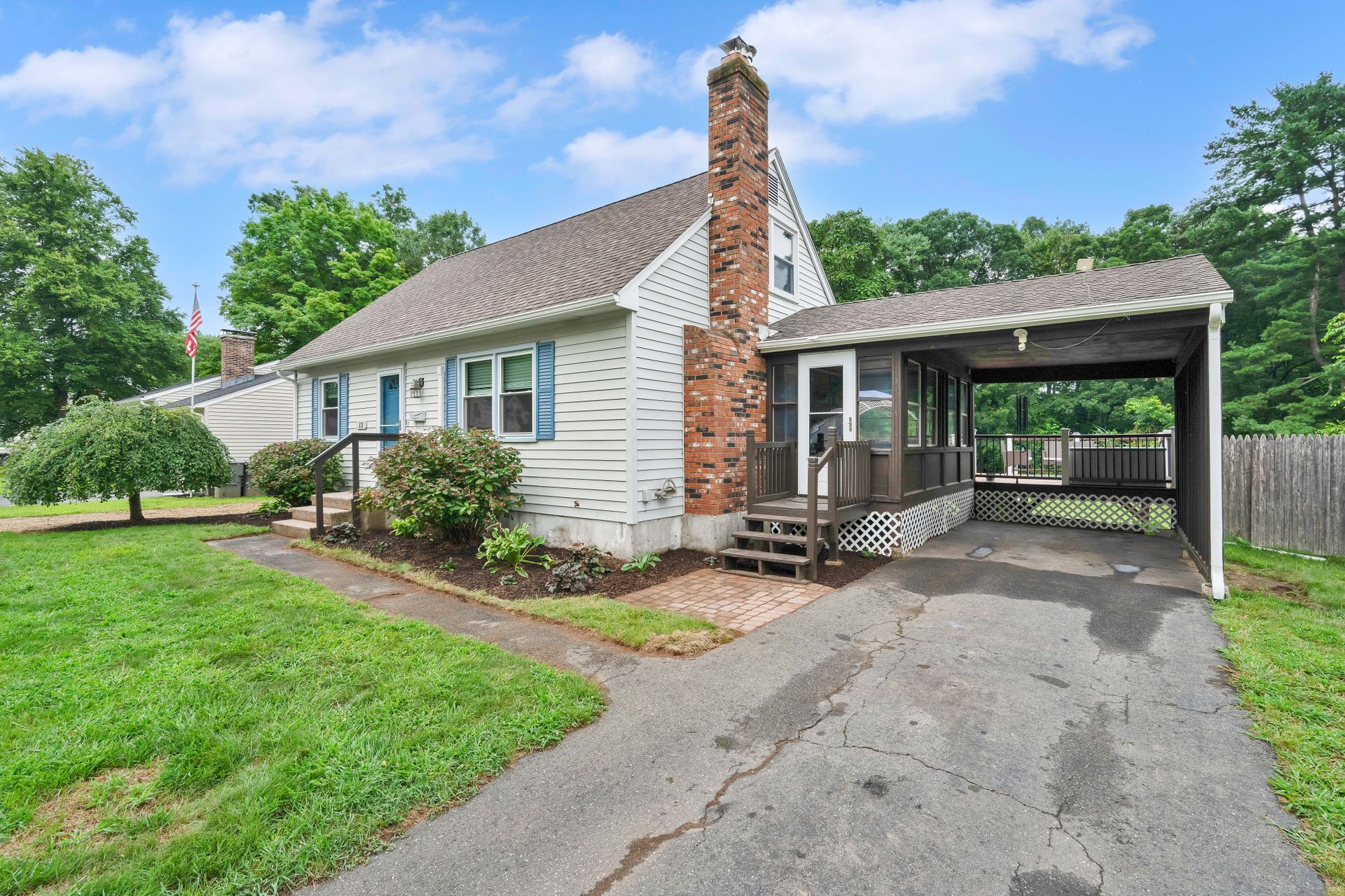 A PLACE TO CALL HOME! Welcome to this cozy four bedroom, 1.5 bath, 1,200 plus square foot Cape-Style home in the always beautiful Enfield, CT. Head in through the front door and find a inviting living room with warm hardwoods, nicely painted walls, and an endearing fireplace surround. Move through to the updated and eat-in kitchen with light oak cabinetry, tiled floor, complimented with a newer stainless steel fridge, dishwasher and range with microwave hood. The large side porch/breezeway shares an exit to the front or one to the back deck. You will love the newer large dark brown Trex deck with two-toned colored vinyl rails with black metal spindles. Plenty of room to dine on and hang out but also enjoy the large backyard to entertain your loved ones and guests. Two bedrooms served by a center bath finishes the downstairs. If more space is desired, the basement is dry and currently has space for a workout room, laundry room, workbench area and storage. Access to the backyard is available via a bulkhead as well. The second level offers a comfortably sized primary bedroom and an additional bedroom both with mini splits and wall-to-wall carpet as well as an updated full bath. Off the side porch is a carport. Recent updates include newer downstairs windows, deck and mini splits that provide efficient heat or air conditioning. Walking distance to two parks, Whiteacres and Greenwood as well as access to Int 91 as well as shopping. Don't miss out on this one. A Place to Call Home is ready for you!