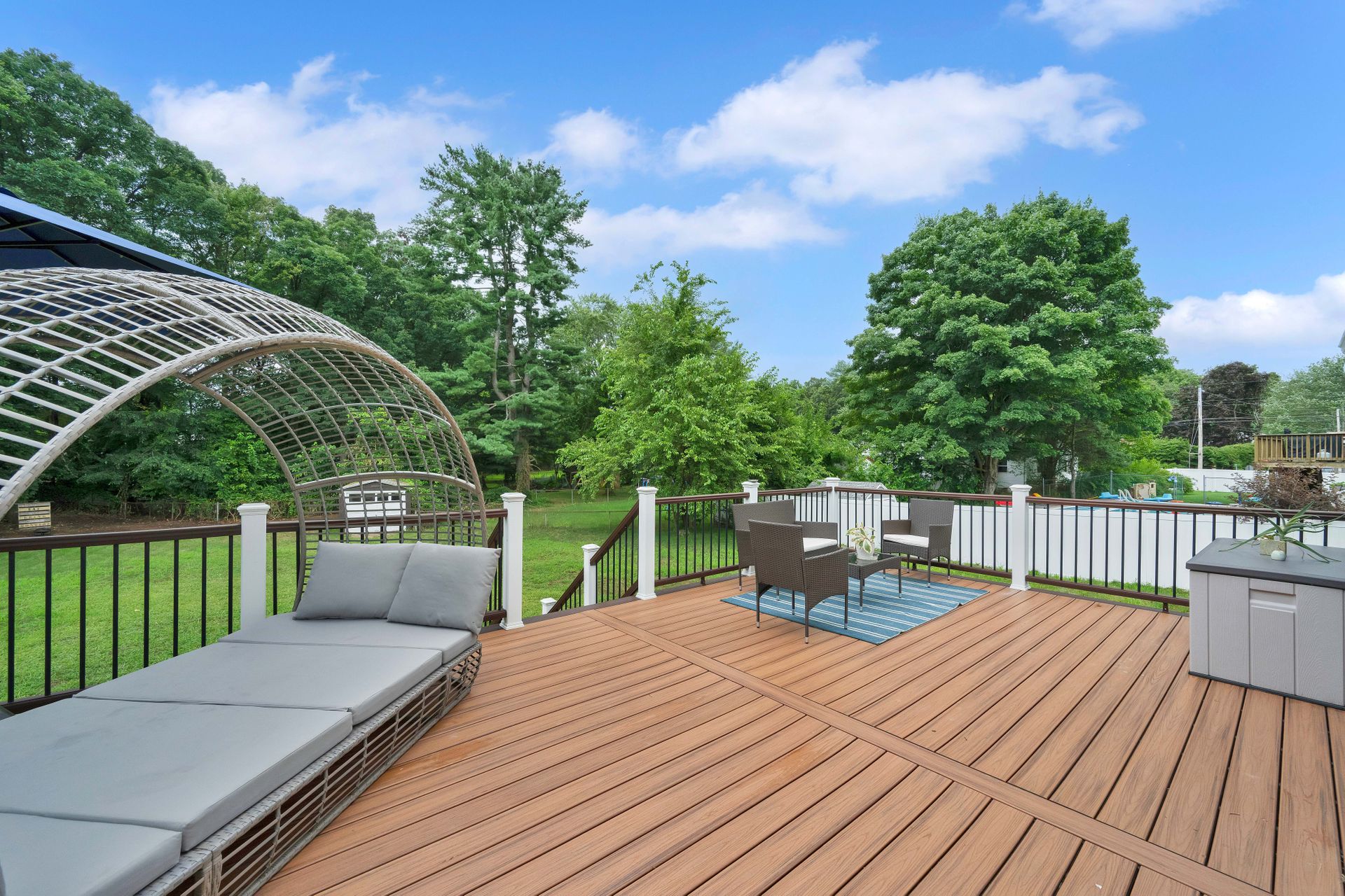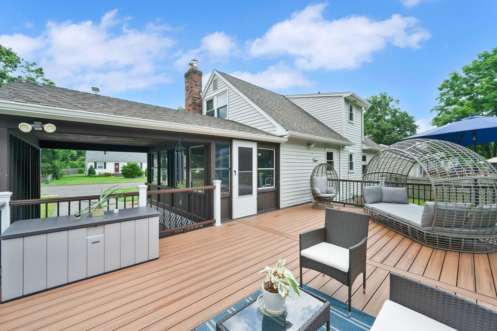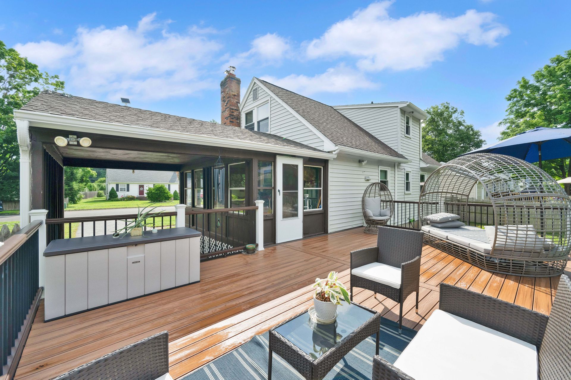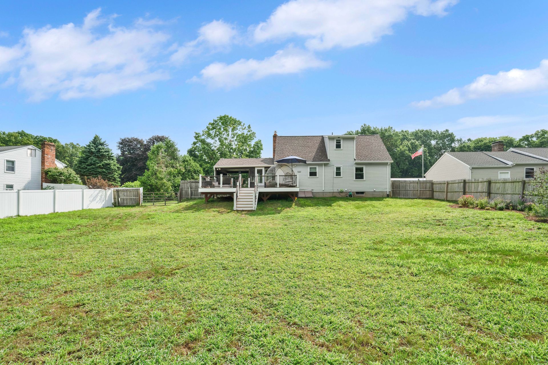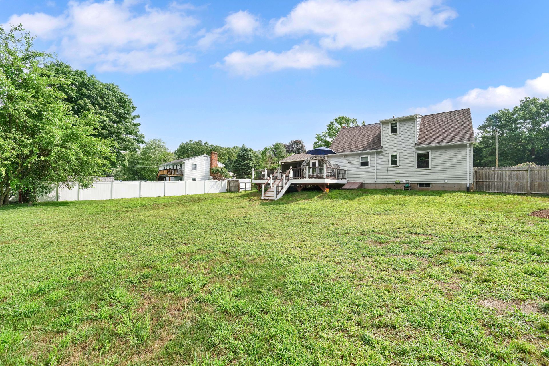 A PLACE TO CALL HOME! Welcome to this cozy four bedroom, 1.5 bath, 1,200 plus square foot Cape-Style home in the always beautiful Enfield, CT. Head in through the front door and find a inviting living room with warm hardwoods, nicely painted walls, and an endearing fireplace surround. Move through to the updated and eat-in kitchen with light oak cabinetry, tiled floor, complimented with a newer stainless steel fridge, dishwasher and range with microwave hood. The large side porch/breezeway shares an exit to the front or one to the back deck. You will love the newer large dark brown Trex deck with two-toned colored vinyl rails with black metal spindles. Plenty of room to dine on and hang out but also enjoy the large backyard to entertain your loved ones and guests. Two bedrooms served by a center bath finishes the downstairs. If more space is desired, the basement is dry and currently has space for a workout room, laundry room, workbench area and storage. Access to the backyard is available via a bulkhead as well. The second level offers a comfortably sized primary bedroom and an additional bedroom both with mini splits and wall-to-wall carpet as well as an updated full bath. Off the side porch is a carport. Recent updates include newer downstairs windows, deck and mini splits that provide efficient heat or air conditioning. Walking distance to two parks, Whiteacres and Greenwood as well as access to Int 91 as well as shopping. Don't miss out on this one. A Place to Call Home is ready for you!