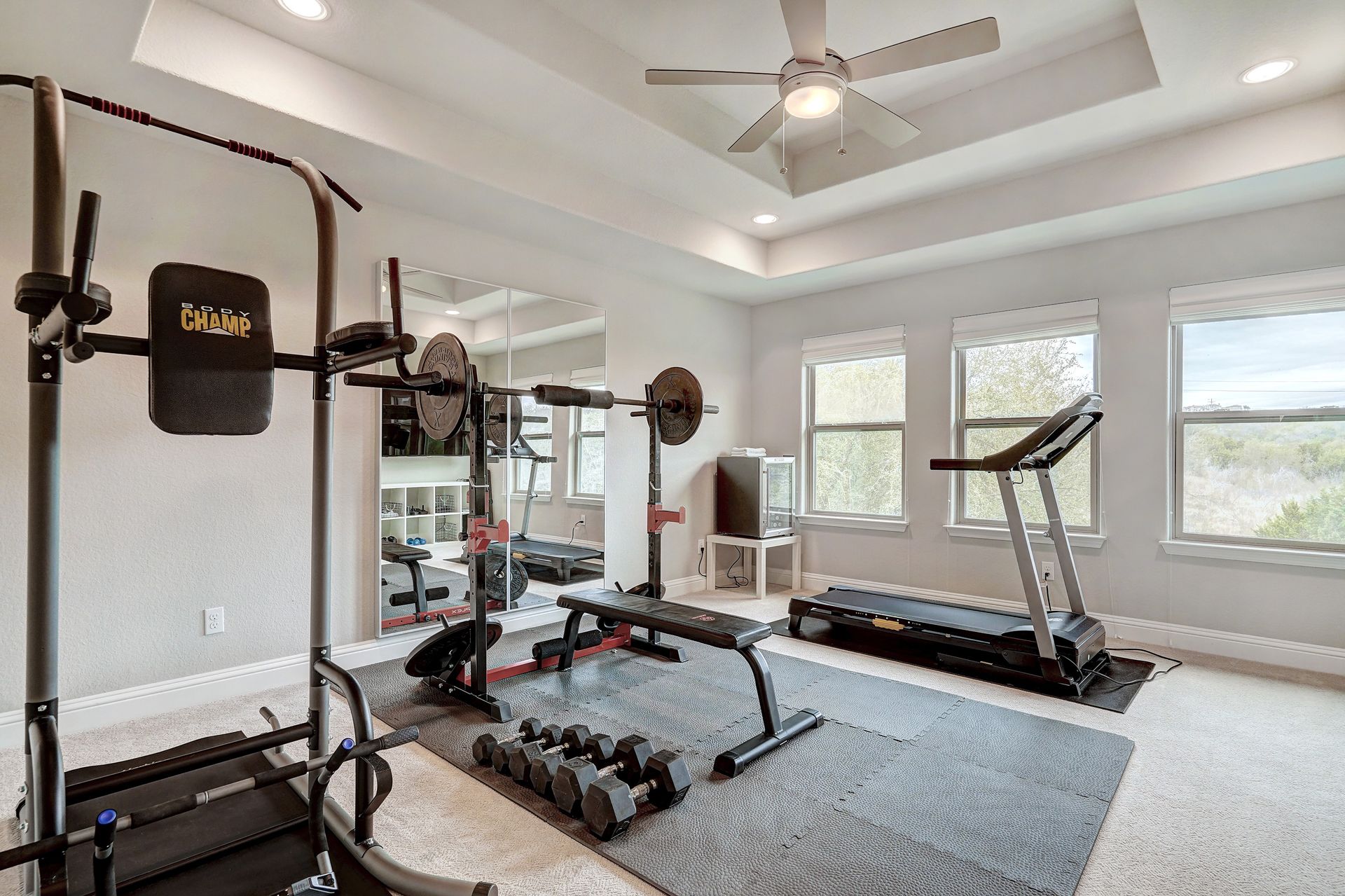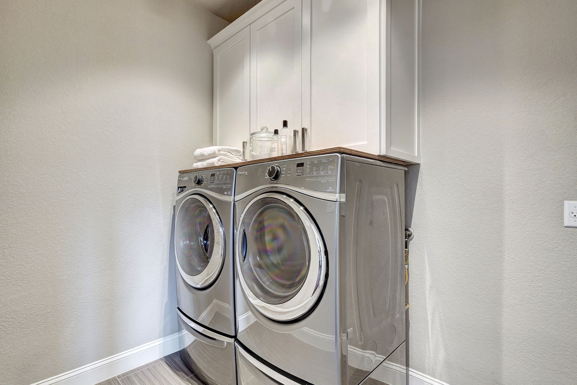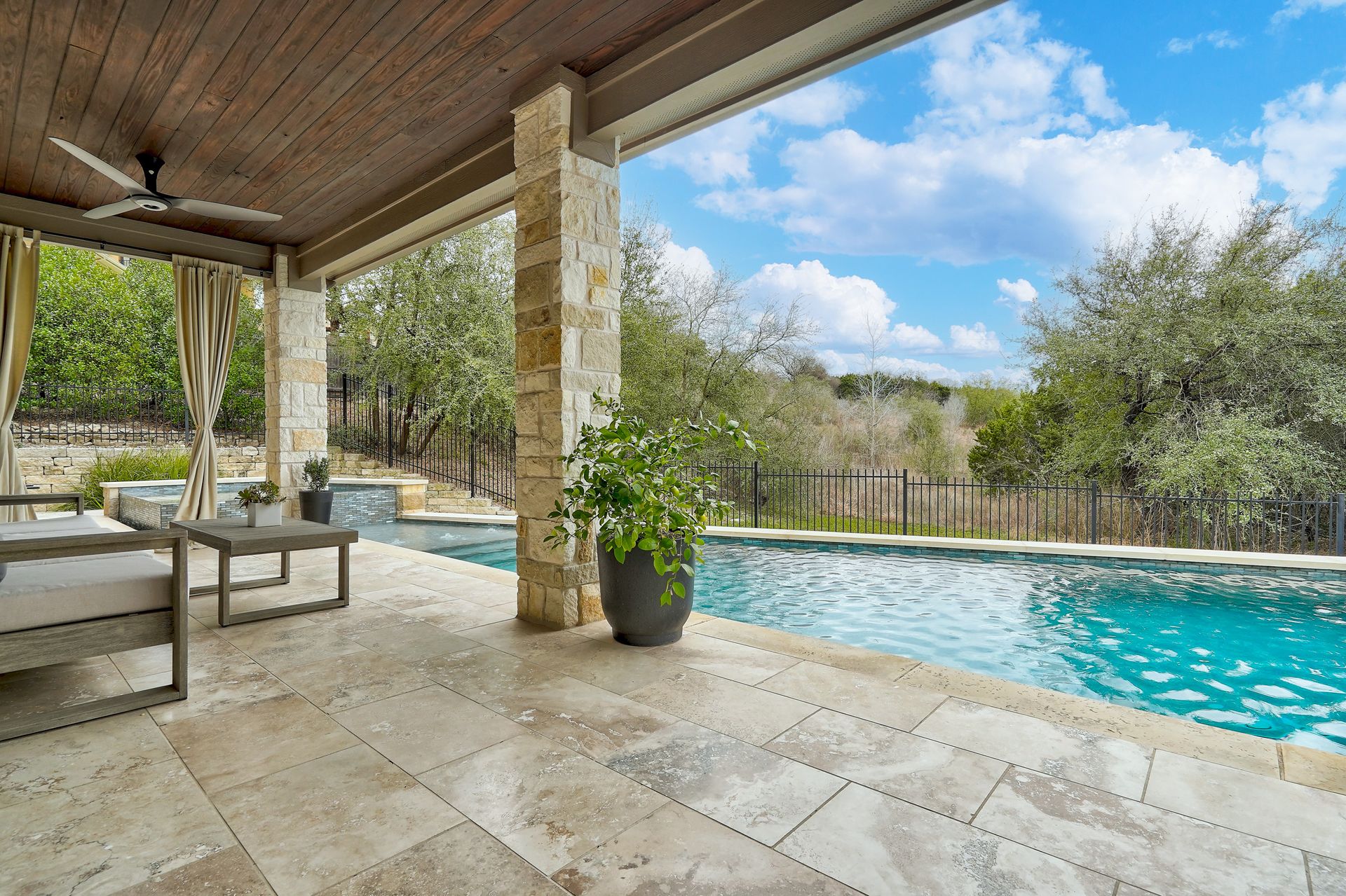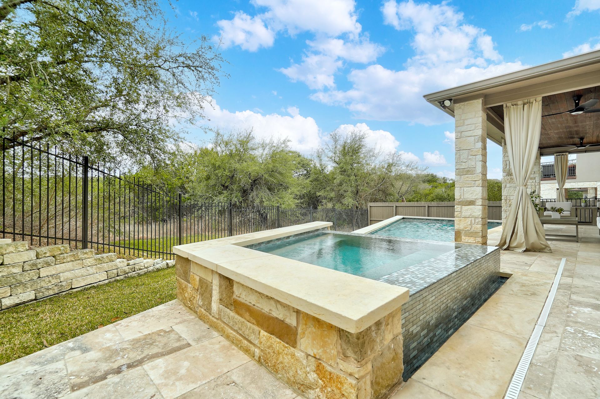 Extreme attention to detail and an extraordinary level of craftsmanship elevates this property into a league of its own. Truly one of a kind, custom-built in 2015 near the front of the award-winning, master-planned community, Steiner Ranch. Refresh and unwind in this quiet backyard on the covered Travertine patio, take a dip in the pool or spa or entertain friends and make memories amongst the pristine landscaping and greenbelt views. The owners have carefully chosen updates that transfer to a variety of tastes in the interior of the home; new light fixtures, railings, added shelving and wine fridge add to the turn-key condition of this "like new" home. An immaculate chef's kitchen with Quartz countertops, an enormous island, top-end appliances and an open concept design with bar & breakfast seating; whether you are cooking for one or hosting a dozen! The owner's wing was designed with functionally and practicality in mind offering a professionally designed closet, walk-in shower, and sleek soaking tub. Upstairs features 4 bedrooms, 2 full baths and a flex room (currently set up as a gym but could function as an office, media room or 6th bedroom if needed. Two, (yes 2) laundry centers within the home, one on each floor, and all washers & dryers convey! The 3-car garage has a sleek epoxy floor finish and exudes organization with the addition of custom cabinetry. Exemplary Leander ISD, full access to the amenities of Steiner Ranch including the Lake Austin waterfront park, 22 miles of hiking & biking trails, 3 pools, tennis courts and more. See full list of included items as well as additional furniture for sale in additional documents.
