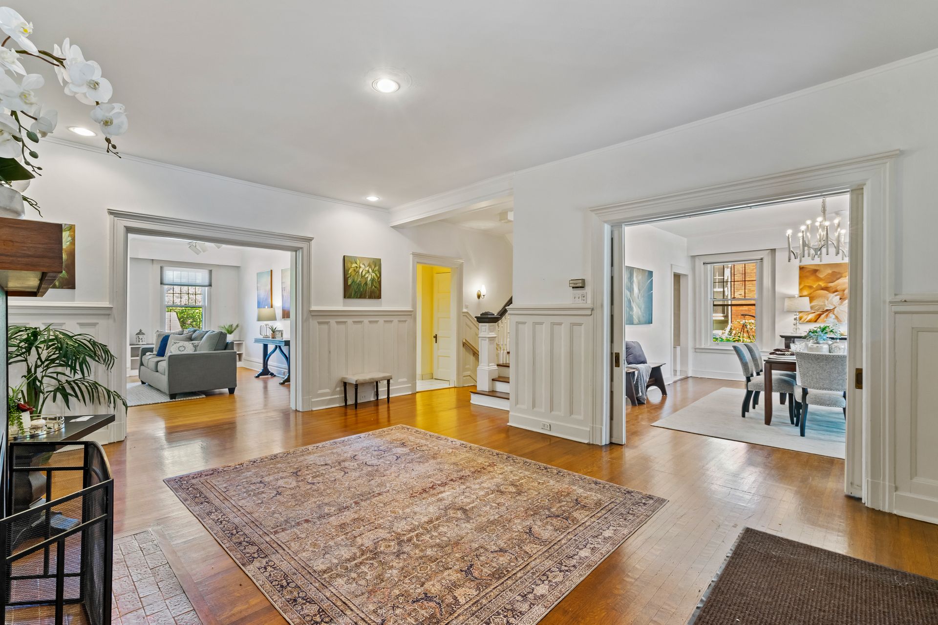 This exquisite Tudor Revival is truly one of a kind. It’s been the home of renowned artist Rochelle Blumenfeld for over half a century. Nestled on a cul-de-sac in the upper corner of Highland Park this home offers six bedrooms, three and one-half baths and a two-car garage. The wide front porch opens into a grand foyer and onto a bright 19’ living room, centered around the fireplace. The home has five fireplaces in total. Cross-hatched diamond muntins adorn the large windows. A banquet-sized dining room with a window seat is reached from the kitchen through a butler’s pantry. Also on the main level find a wet bar, powder room, small office/den and a laundry. The second floor features four spacious bedrooms. The hall bath contains a double vanity and a deep soaking tub. The primary bedroom has a newer ensuite bath. And all rooms have generous closets. The third floor was most recently the artist’s studio. Easily reimagined as a great family room, there are also two bedrooms and a full bath on that level. Don’t skip the lower level’s charming game room replete with a wood-burning fireplace. The French doors open to a lush arbor-covered patio for shaded privacy. Between the house and the two-car garage are a back porch and a charming patio courtyard. The garage has automatic door openers. You will be surprised at the sprawling spaciousness of this home. Although the square footage is listed as 4,828 square feet this includes only the first and second floors. The figure does not include the fully finished third floor with a family room, two bedrooms and a full bath. It also does not count the 22’ game room downstairs. So be prepared to be pleasantly surprised. This highly desirable location is three blocks from the Bryant Street business district and close to the park. You won’t want to miss this unique home.