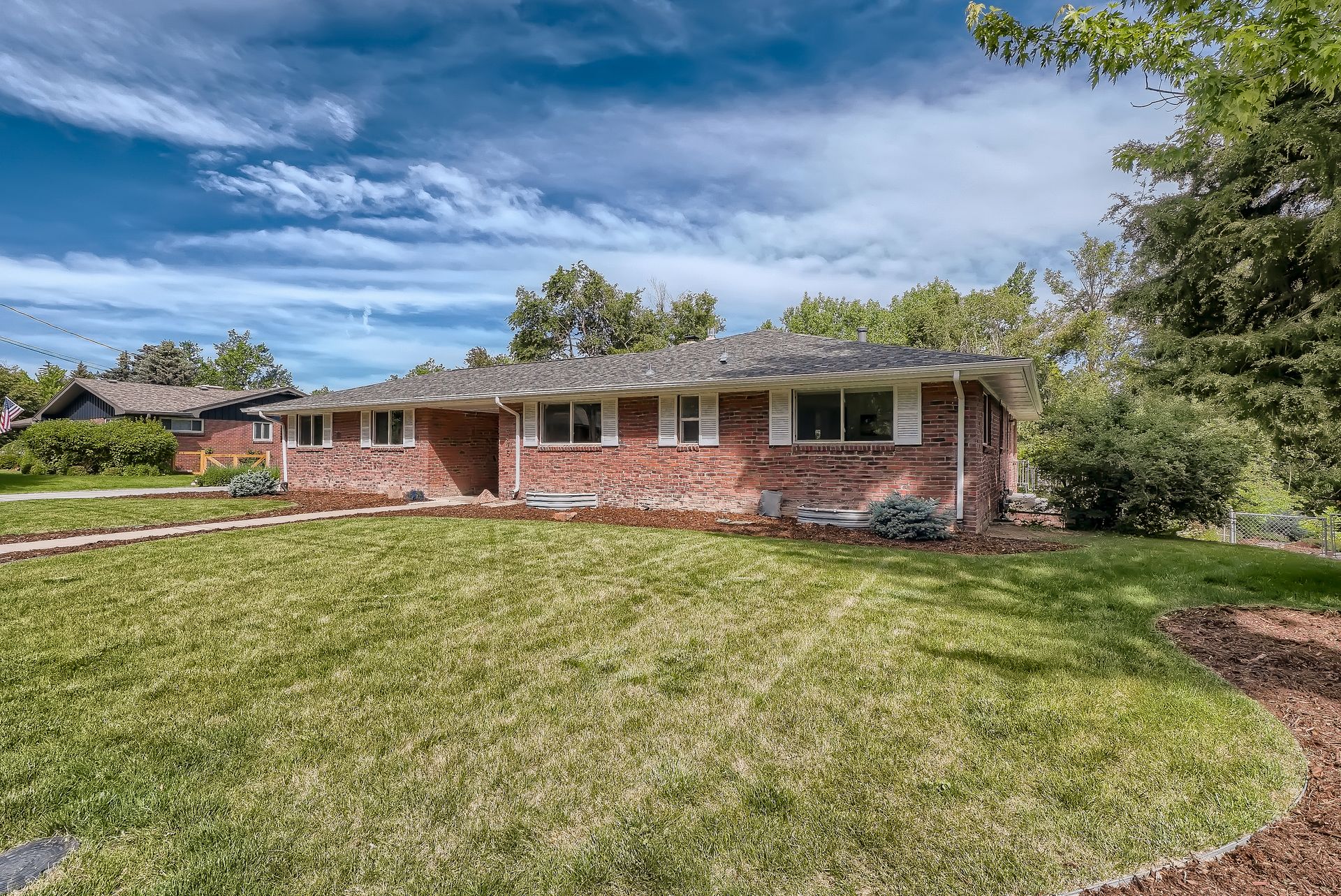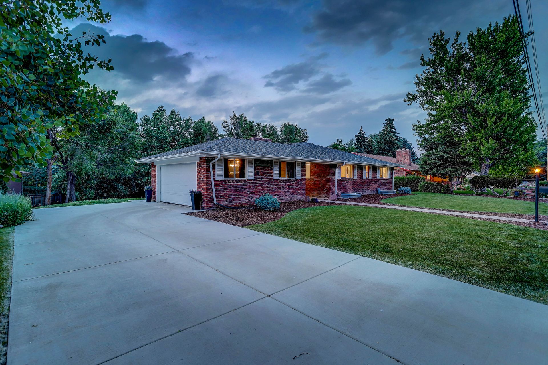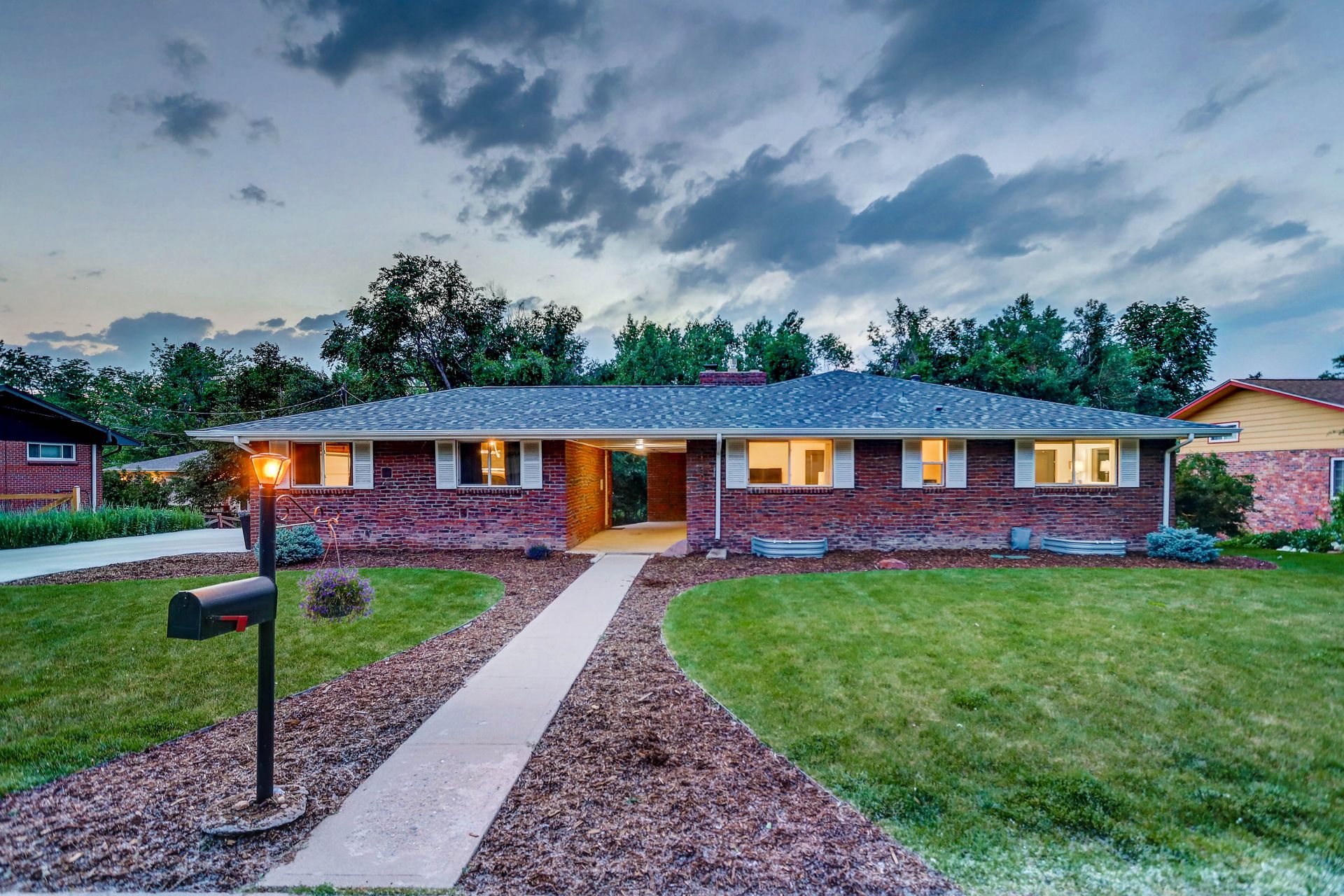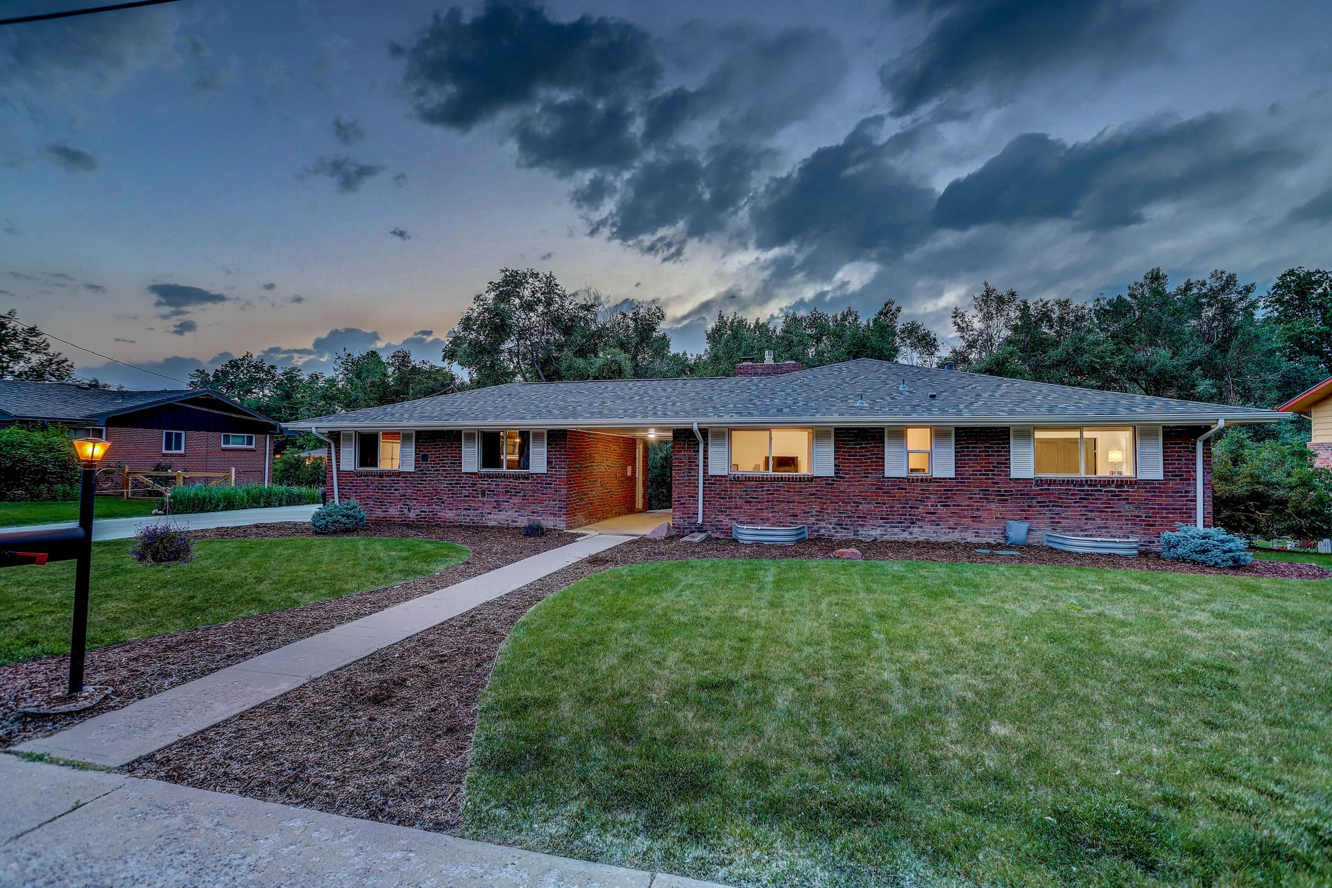 Welcome to this immaculately remodeled Applewood Grove Ranch on a one-third acre lot. This home was fully remodeled in 2018 with all modern finishes and upgrades throughout. The main floor is bright and open and perfect for entertaining with a dining room and eat-in kitchen. The modern kitchen has tall white cabinets, granite counters and stainless steel appliances. The living room overlooks the park-like backyard and includes a newly installed gas fireplace. The primary bedroom has a private bath with a glass walled shower. The second bedroom is perfect for a main floor office or guest room and has a large full bath in the hallway. Both basement bedrooms are extra spacious and have egress windows. The sprawling lower living room has a working fireplace. The walkout basement is complete with a three-quarter bath and laundry room with included washer and dryer. The backyard stretches back to a lower ditch under the mature trees, creating a peaceful nature retreat. The two-car garage has a brand new door and is attached to the home via a breezeway and is complimented with an extra-large driveway. The roof was replaced in 2021 and blinds were added throughout the home. This home is minutes from I-70/C-470/6th Avenue for quick access to downtown and the mountains. Close to Applewood Park, Applewood Athletic Club or the restaurants at 20th and Youngfield. Don't miss this beautiful home in Denver Metro's most sought after neighborhood!
