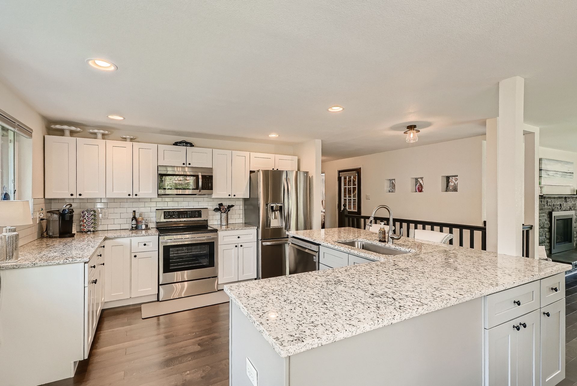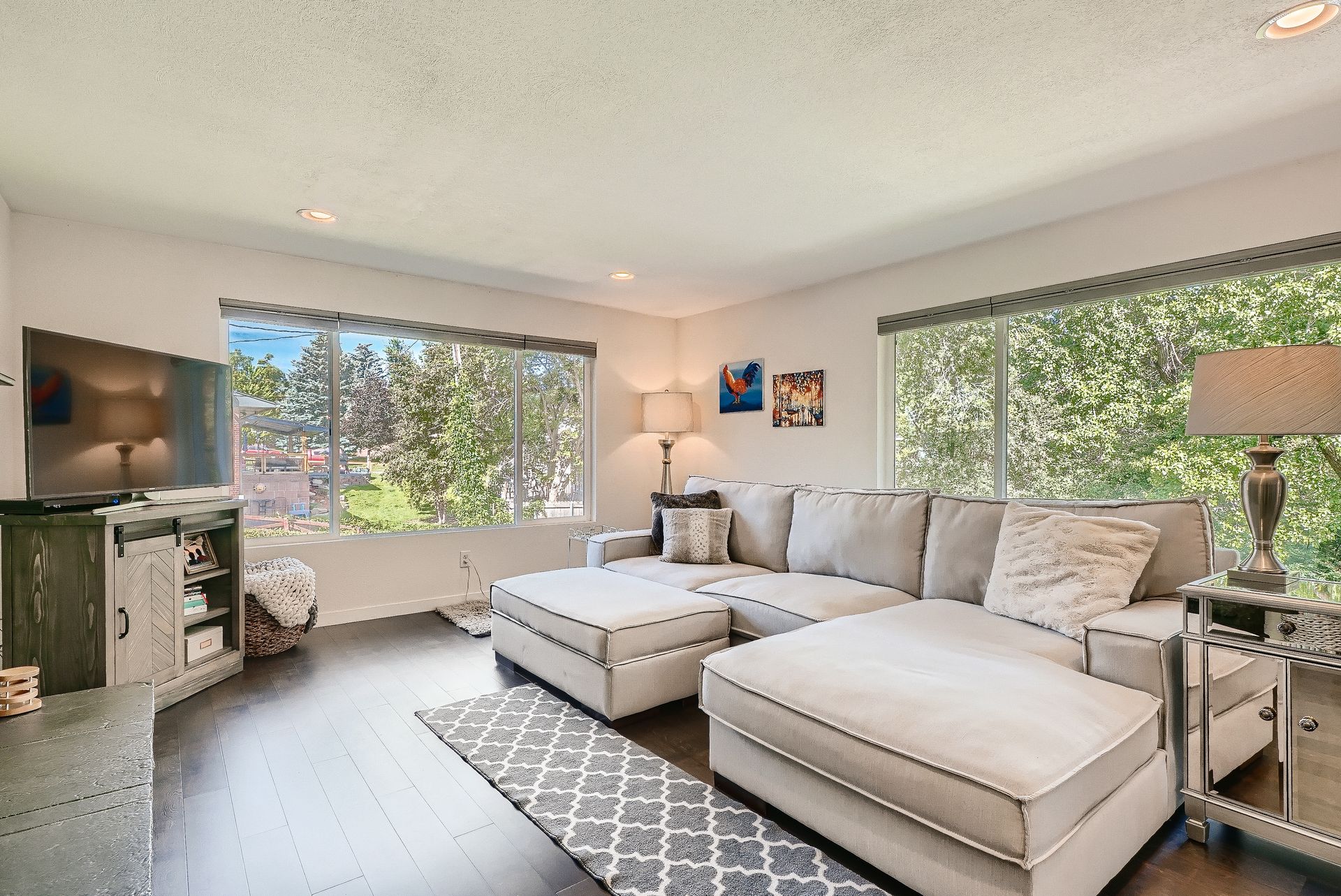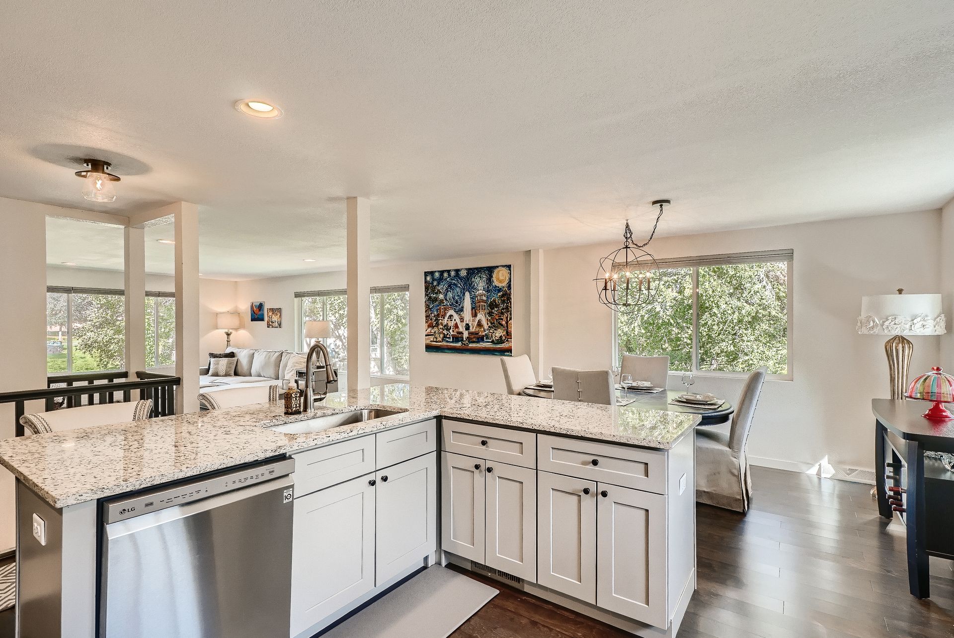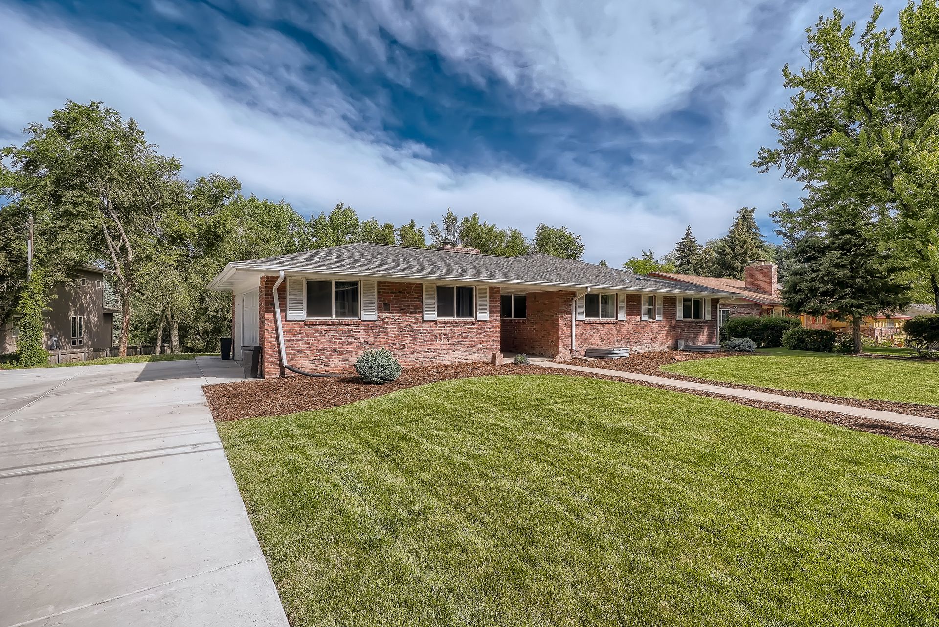 Welcome to this immaculately remodeled Applewood Grove Ranch on a one-third acre lot. This home was fully remodeled in 2018 with all modern finishes and upgrades throughout. The main floor is bright and open and perfect for entertaining with a dining room and eat-in kitchen. The modern kitchen has tall white cabinets, granite counters and stainless steel appliances. The living room overlooks the park-like backyard and includes a newly installed gas fireplace. The primary bedroom has a private bath with a glass walled shower. The second bedroom is perfect for a main floor office or guest room and has a large full bath in the hallway. Both basement bedrooms are extra spacious and have egress windows. The sprawling lower living room has a working fireplace. The walkout basement is complete with a three-quarter bath and laundry room with included washer and dryer. The backyard stretches back to a lower ditch under the mature trees, creating a peaceful nature retreat. The two-car garage has a brand new door and is attached to the home via a breezeway and is complimented with an extra-large driveway. The roof was replaced in 2021 and blinds were added throughout the home. This home is minutes from I-70/C-470/6th Avenue for quick access to downtown and the mountains. Close to Applewood Park, Applewood Athletic Club or the restaurants at 20th and Youngfield. Don't miss this beautiful home in Denver Metro's most sought after neighborhood!