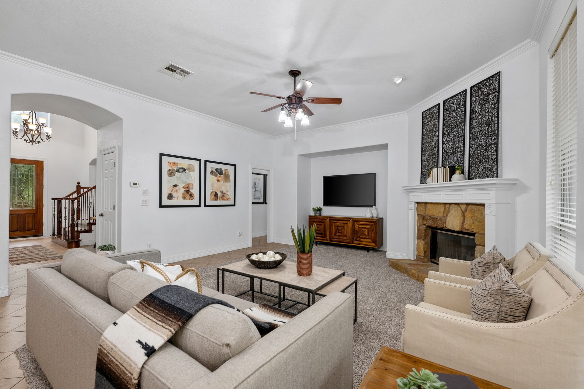 Enjoy life in coveted Lake Forest Round Rock neighborhood. This Highland Homes 2005 custom-built, two-story residence has so much to offer! Five bedrooms (2 lower, 3 upper), four full bathrooms, two large living spaces (one on each level), office, media room, formal dining, and a three-car garage within 3,897 square feet.