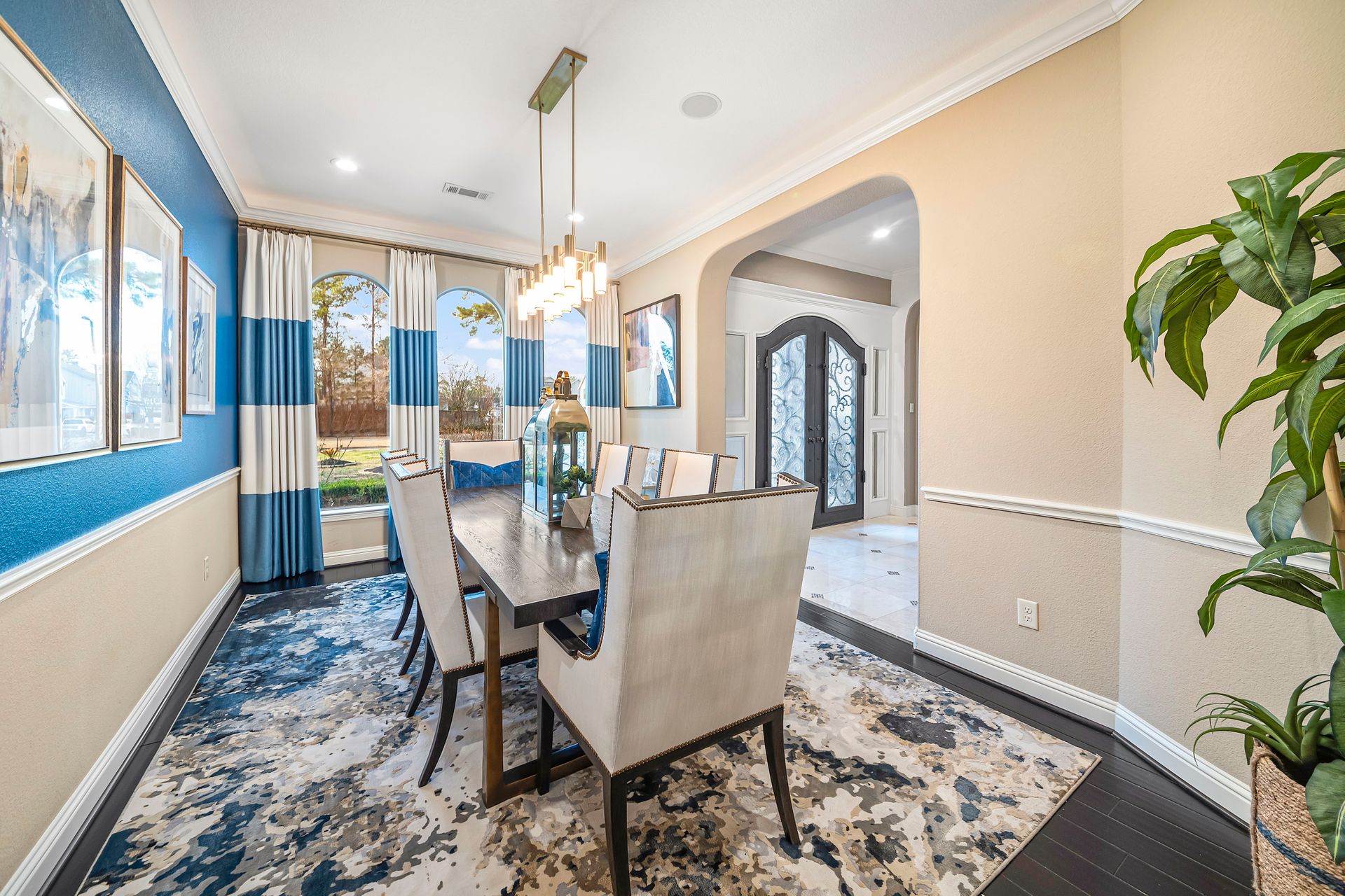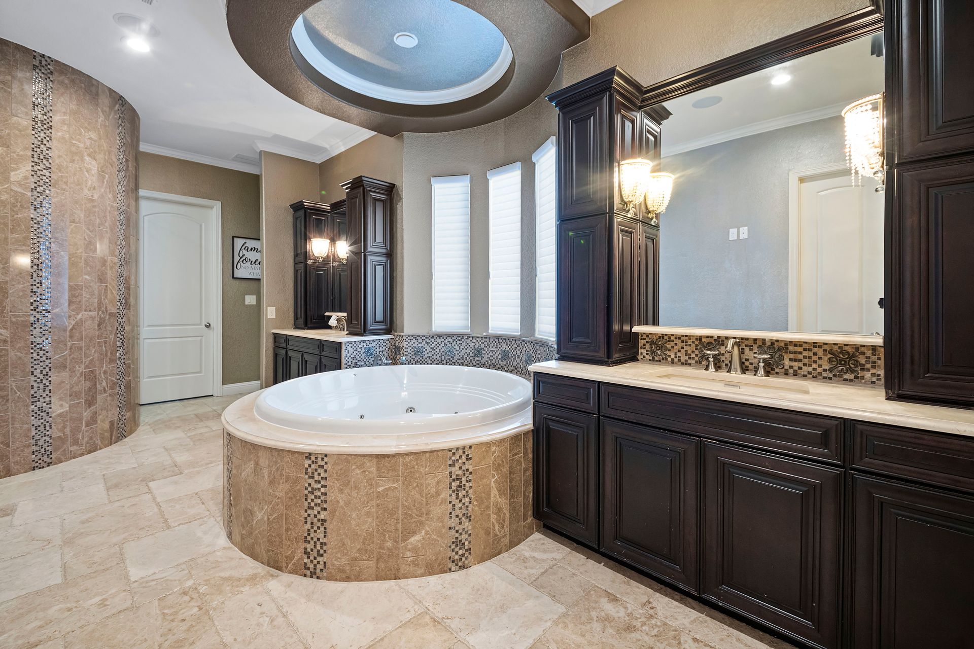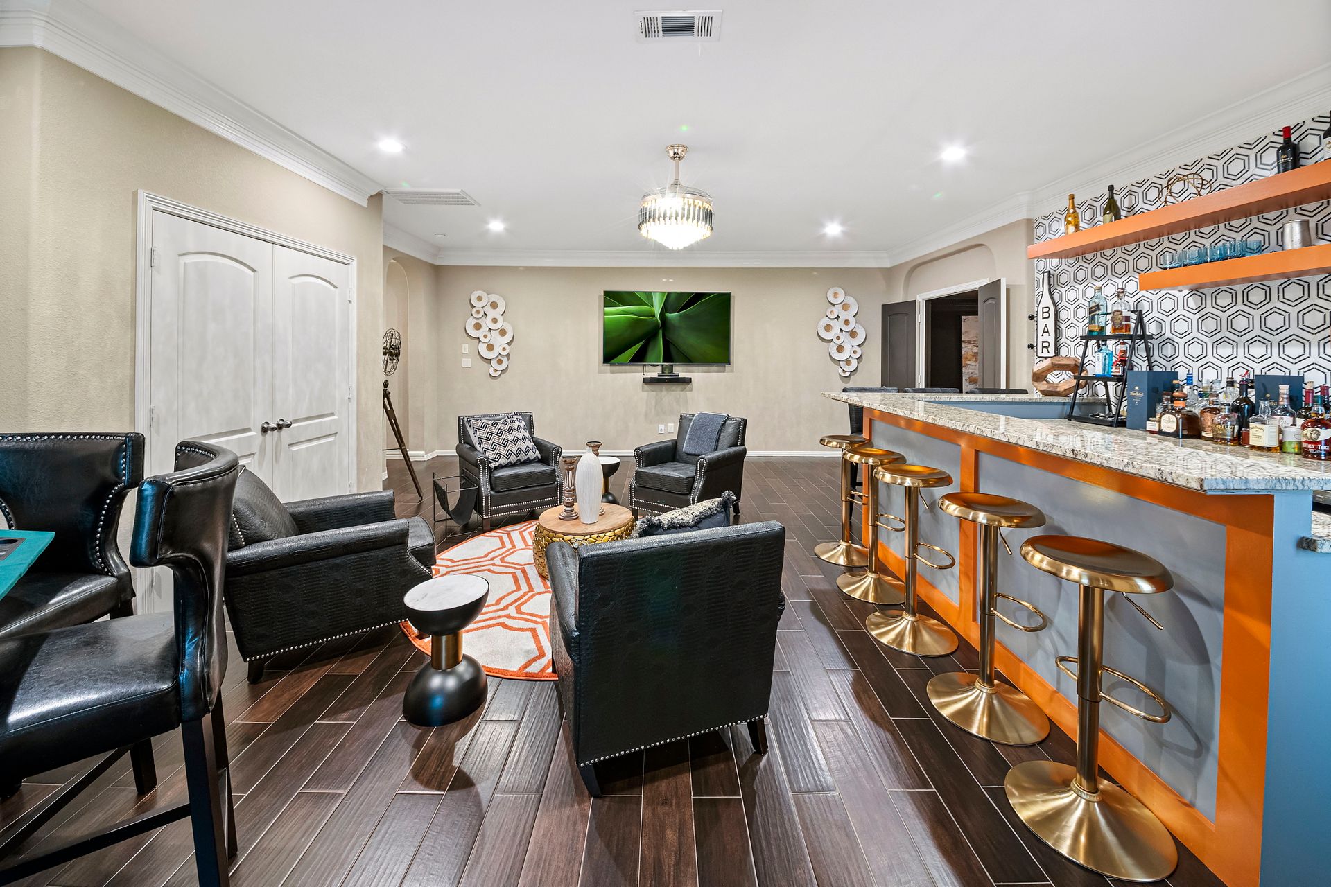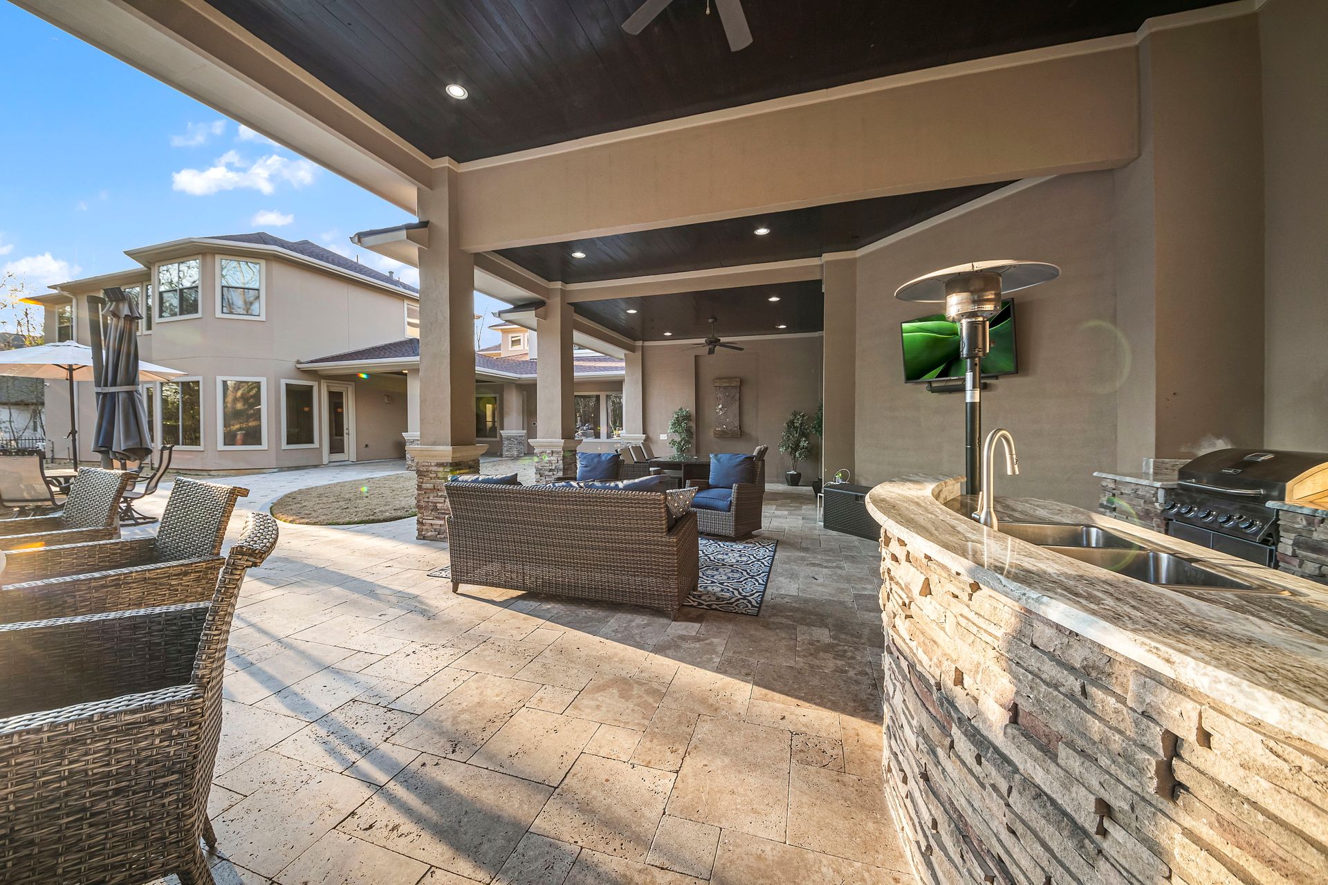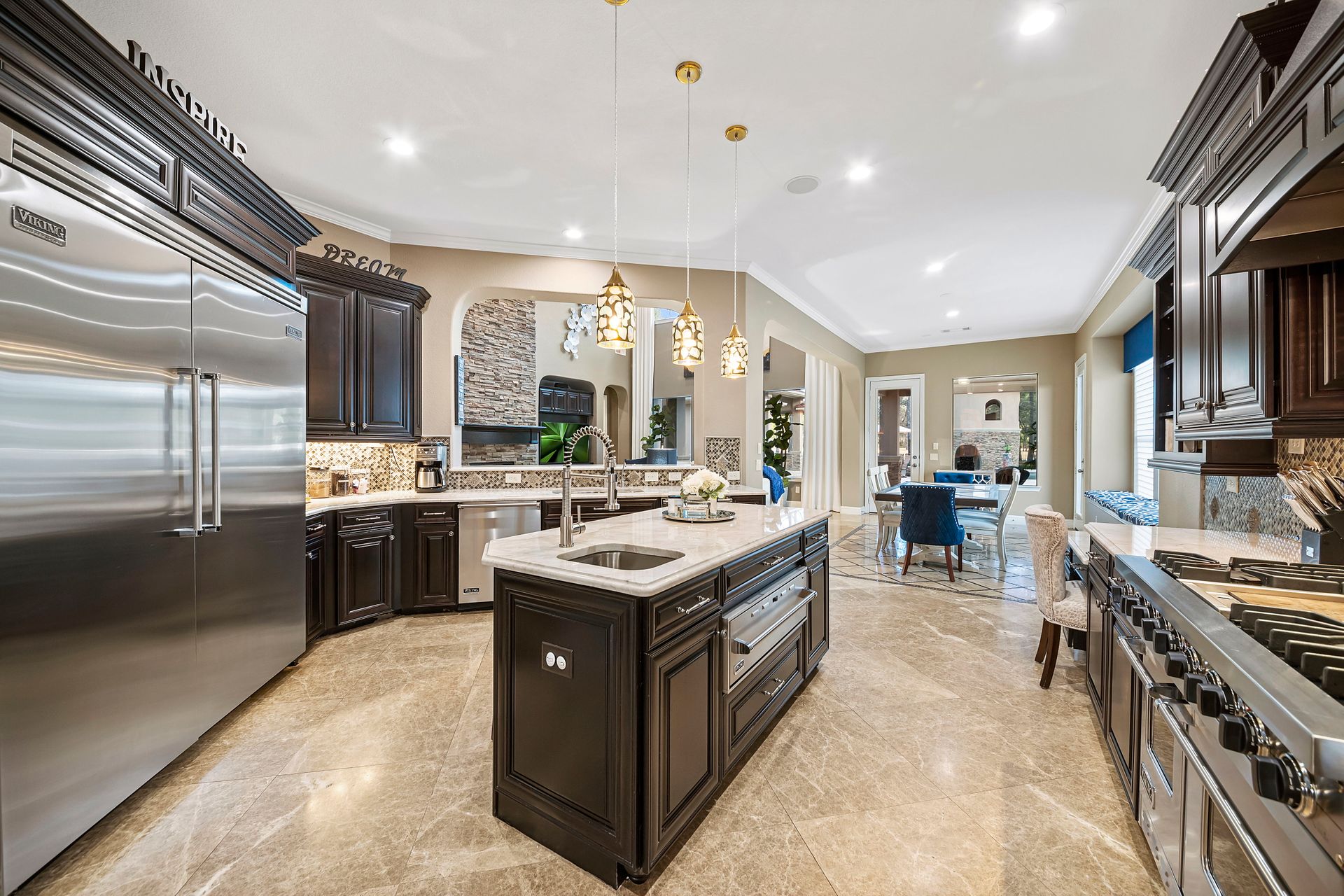 The Ultimate in luxurious Golf Course estates! Situated on 1.02 acres overlooking hole number three of private Woodforest golf course. Opulent amenities await, from designer finishes to ornate double French doors, stunning curved staircase & extensive trim details. Floor-to-ceiling windows in the great room bathe the home in natural light offering endless golf course views. A chef's kitchen with Viking appliances and custom cabinetry will never disappoint. The primary suite features detailed tray ceilings with an adjoining sitting area with a fireplace. Spa-like bathroom includes a multi-jetted shower, private laundry room, and THREE custom walk-in closets. Full home remote A/V Crestron system enables control of your at-home technology from anywhere! Enjoy popcorn and a movie in the media room with a cold beverage from your custom wet bar or skip the movie and play cards in the adjoining game room. Estate grounds include a private gated motor coach and Carriage house for your luxury automobiles. The resort style outdoor pool features a grotto, sunken/swim-up kitchen, infrared sauna & separate pool bath, covered BBQ patio & full home mosquito system. Attached 1,800 sqft Casita for guests includes 2 bedrooms, 2.5 baths, full kitchen & private laundry. Your gateway to resort-style living awaits!