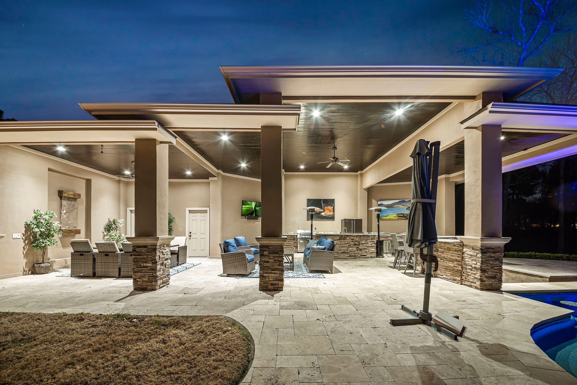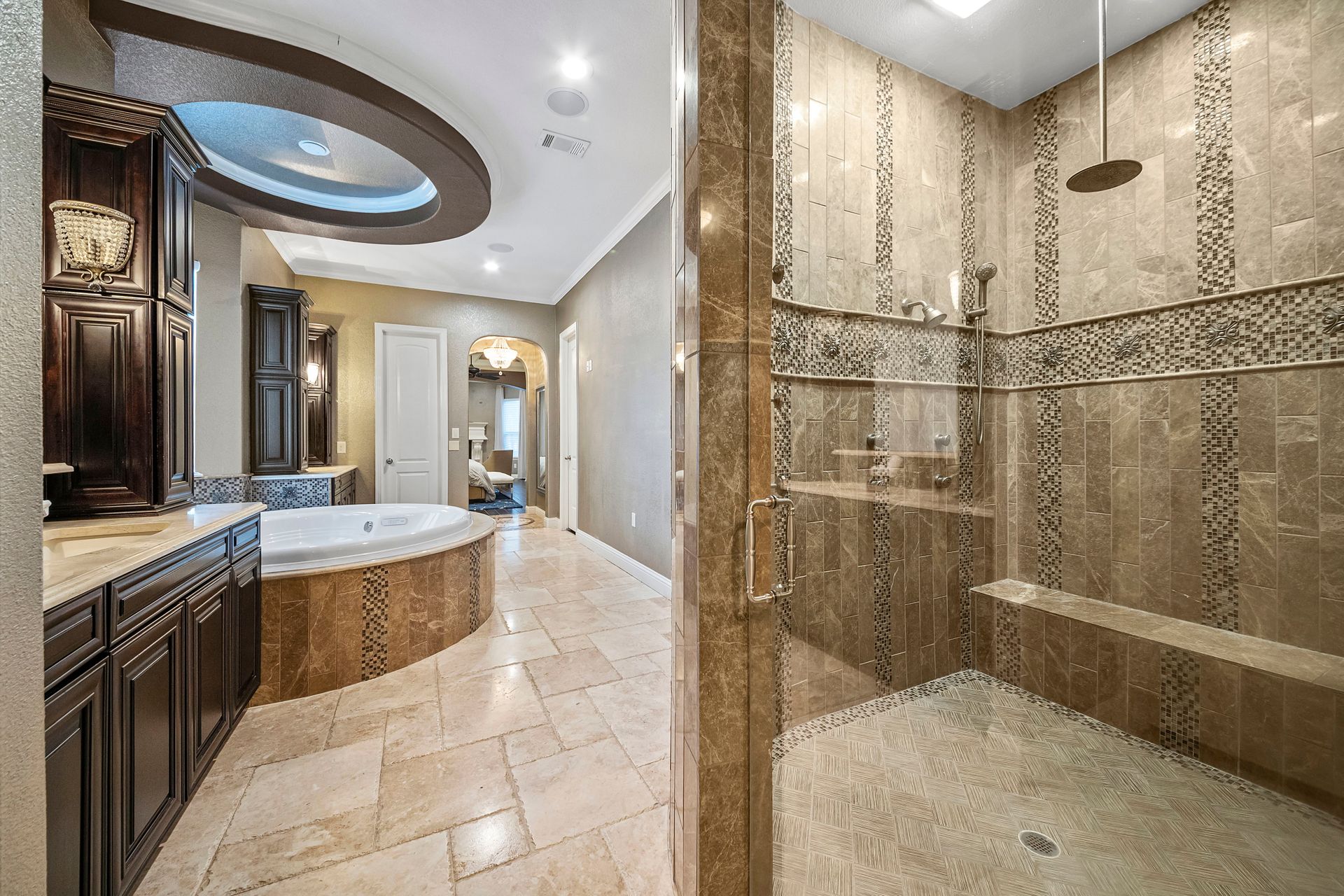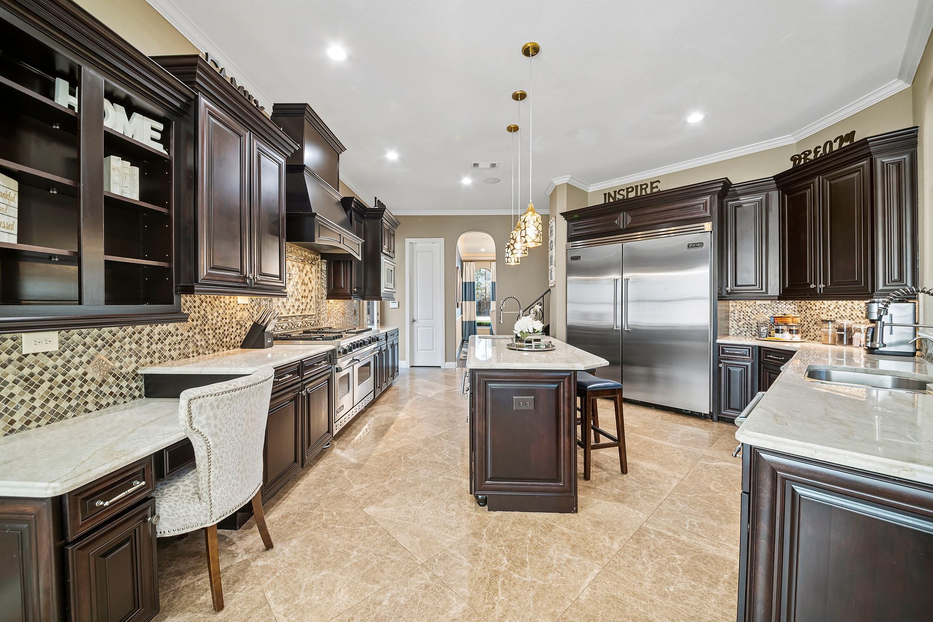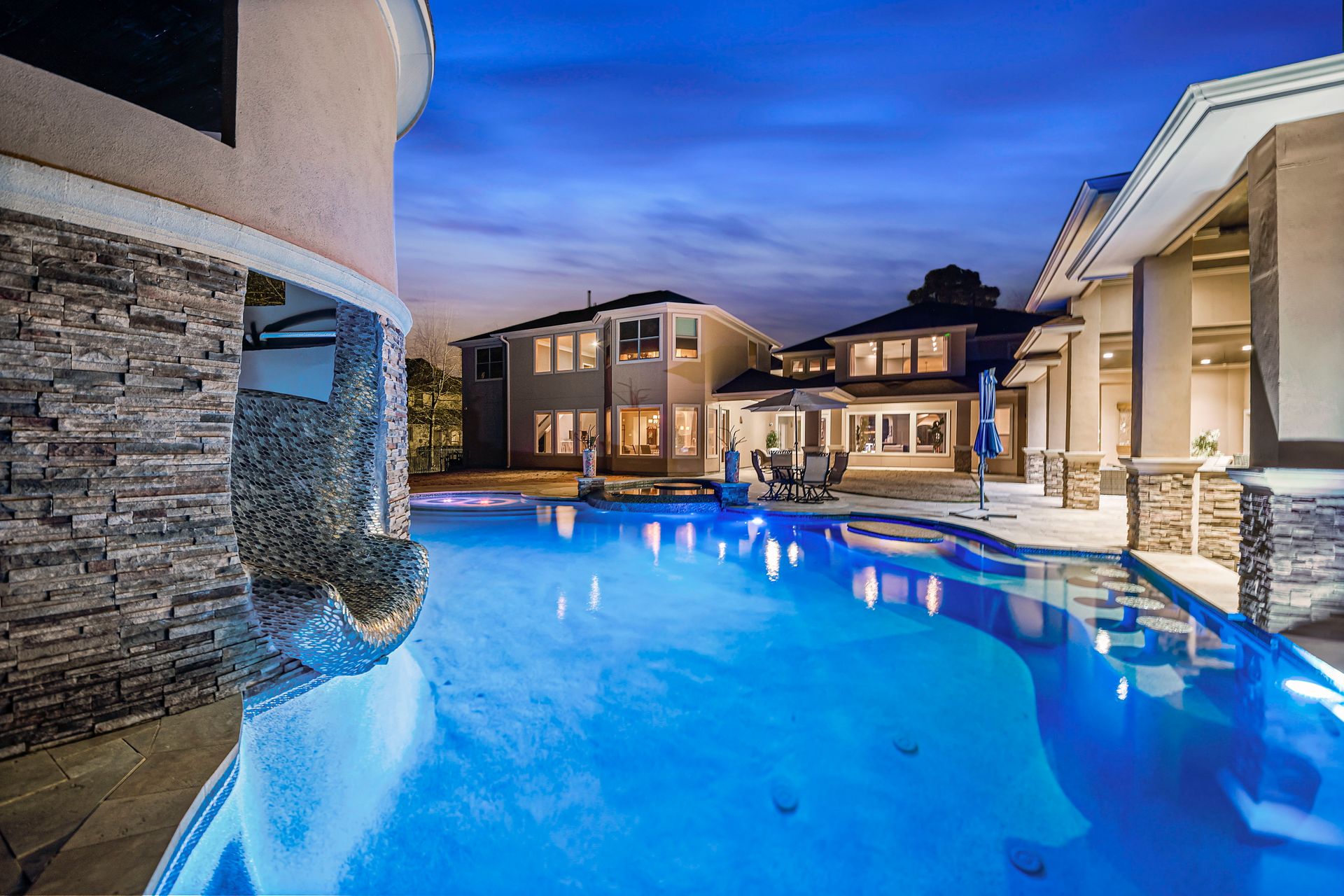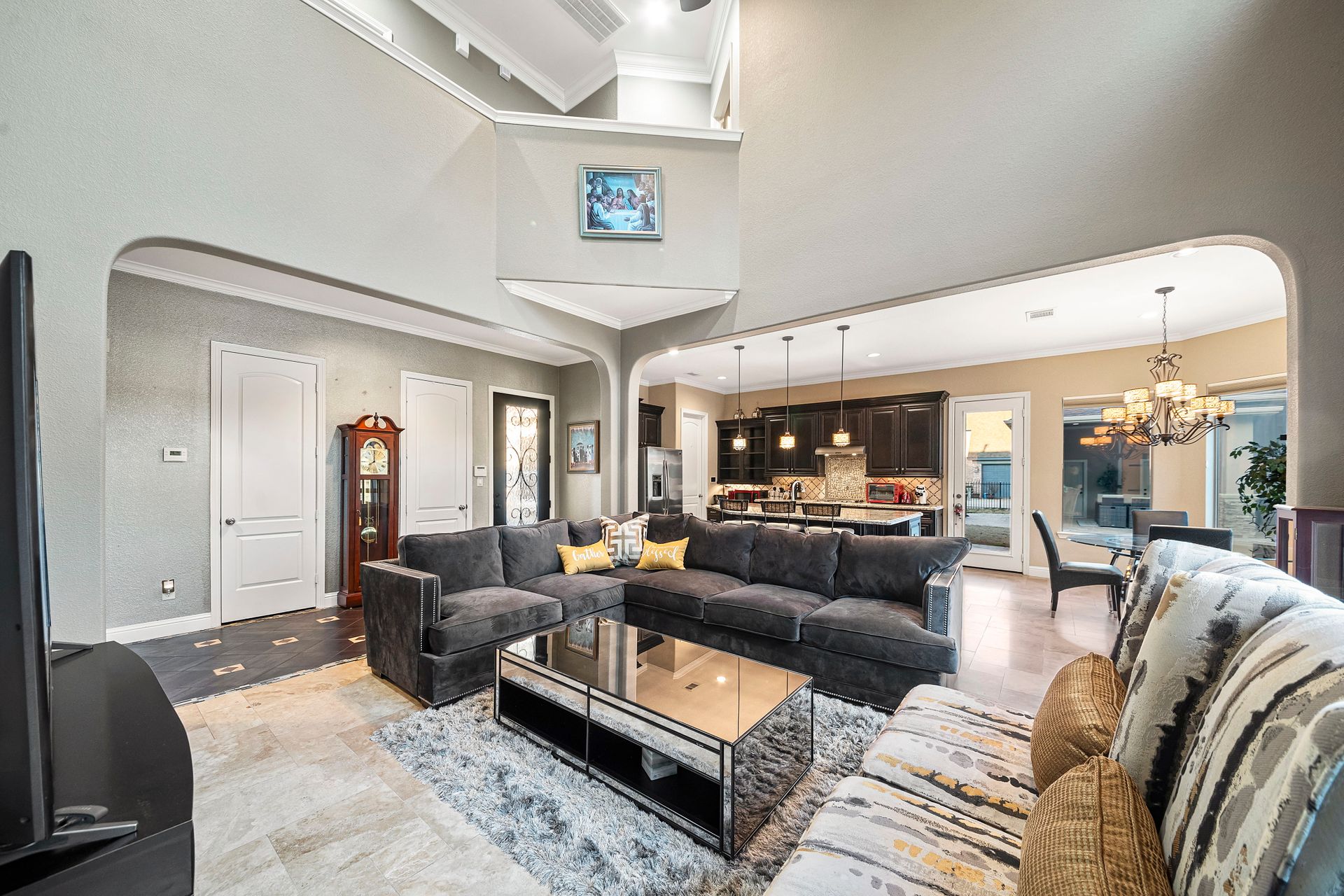 The Ultimate in luxurious Golf Course estates! Situated on 1.02 acres overlooking hole number three of private Woodforest golf course. Opulent amenities await, from designer finishes to ornate double French doors, stunning curved staircase & extensive trim details. Floor-to-ceiling windows in the great room bathe the home in natural light offering endless golf course views. A chef's kitchen with Viking appliances and custom cabinetry will never disappoint. The primary suite features detailed tray ceilings with an adjoining sitting area with a fireplace. Spa-like bathroom includes a multi-jetted shower, private laundry room, and THREE custom walk-in closets. Full home remote A/V Crestron system enables control of your at-home technology from anywhere! Enjoy popcorn and a movie in the media room with a cold beverage from your custom wet bar or skip the movie and play cards in the adjoining game room. Estate grounds include a private gated motor coach and Carriage house for your luxury automobiles. The resort style outdoor pool features a grotto, sunken/swim-up kitchen, infrared sauna & separate pool bath, covered BBQ patio & full home mosquito system. Attached 1,800 sqft Casita for guests includes 2 bedrooms, 2.5 baths, full kitchen & private laundry. Your gateway to resort-style living awaits!