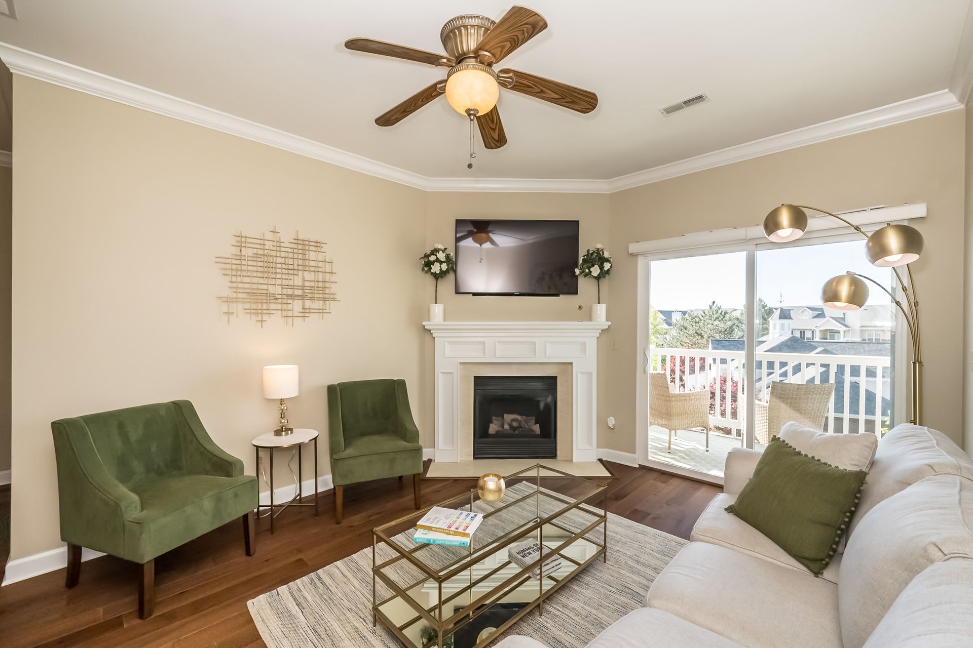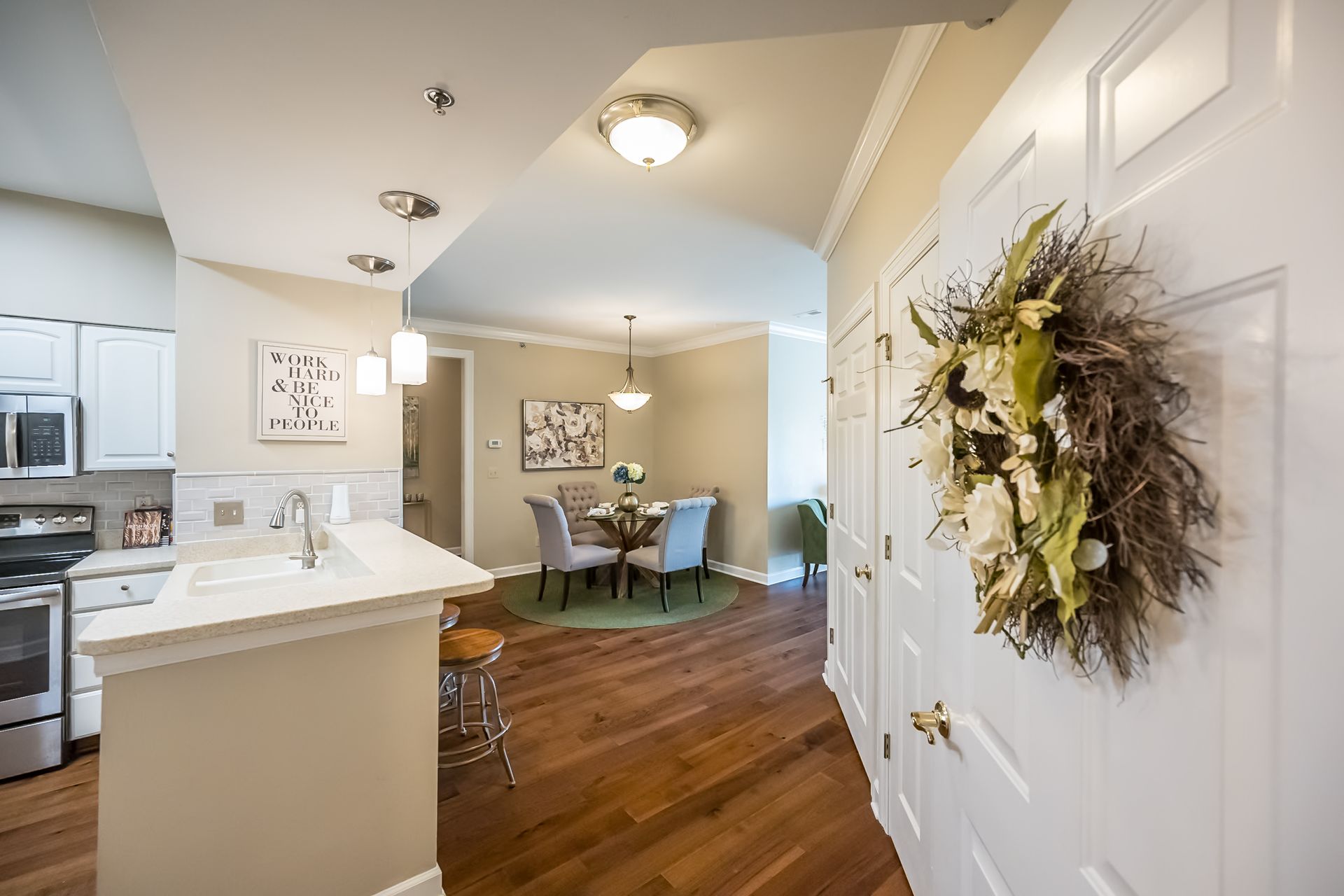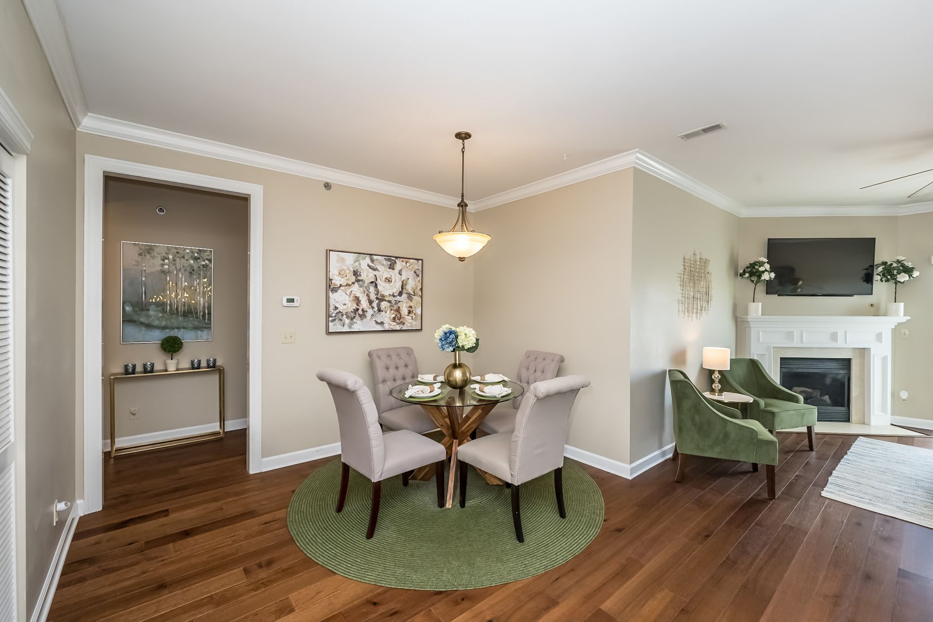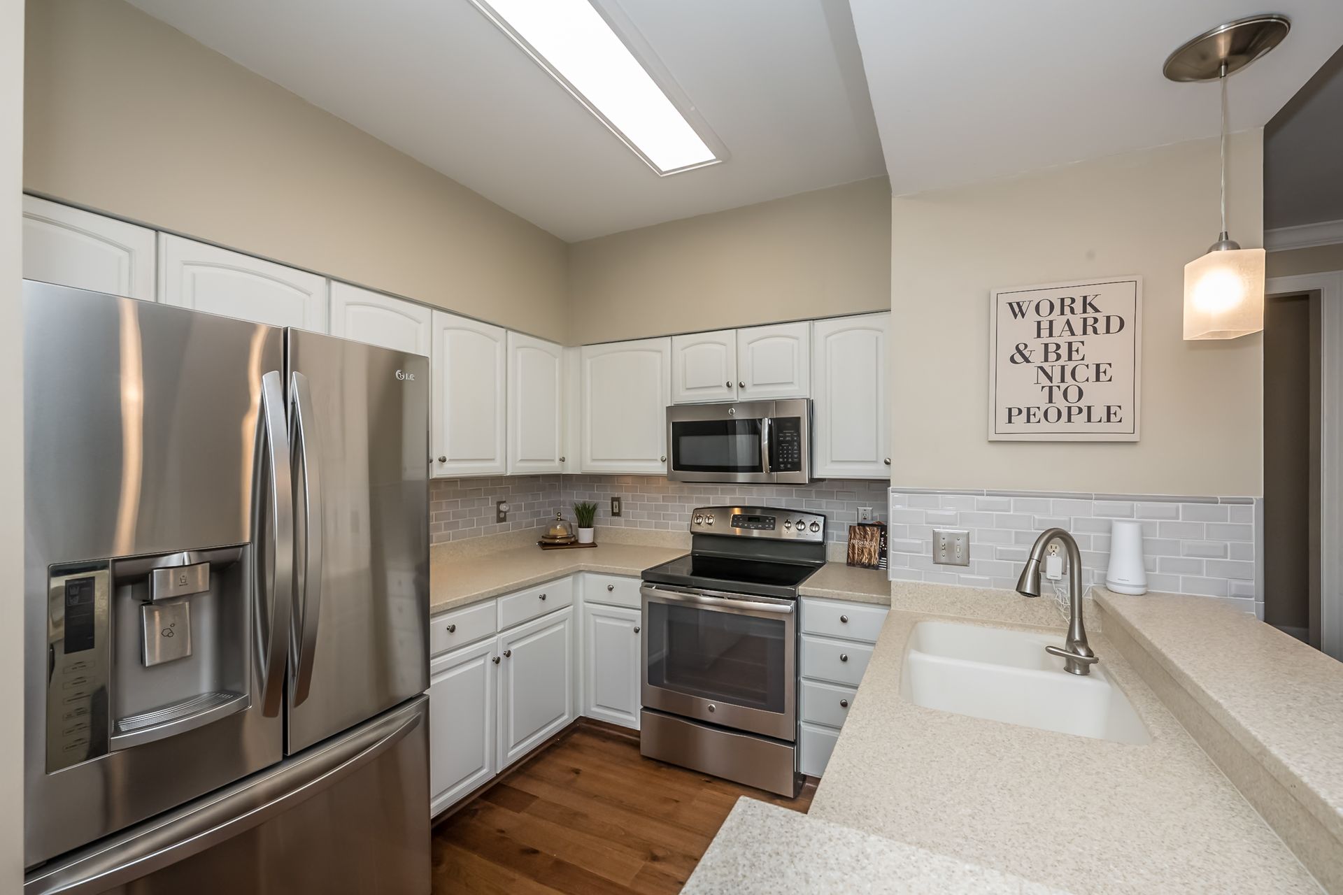 Great location, charming updates and meticulous maintained are just a few of the reasons that you don't want to miss this one! Located in the popular, gate Mill Crossing...hop on the elevator and head up to this bright and open top floor, two bedroom, two bath unit! Gorgeous, newer hardwood floors flow throughout. The updated kitchen boasts stainless steel appliances, solid surface counters, subway tile backsplash and opens to the living room with a cozy gas fireplace. The covered deck overlooks the pool and is the ideal retreat to start and end your day! Enjoy the private primary en suite with separate shower, tub and custom walk-in closet. There is an abundance of in-unit storage as well as the main floor in-unit laundry. Delight in the convenience of the SECURED UNDERGROUND GARAGE with a designated spot just off the elevator and an additional storage unit. The beautiful, spacious clubhouse, fitness room and community pool are the icing on the cake of this move-in beauty!