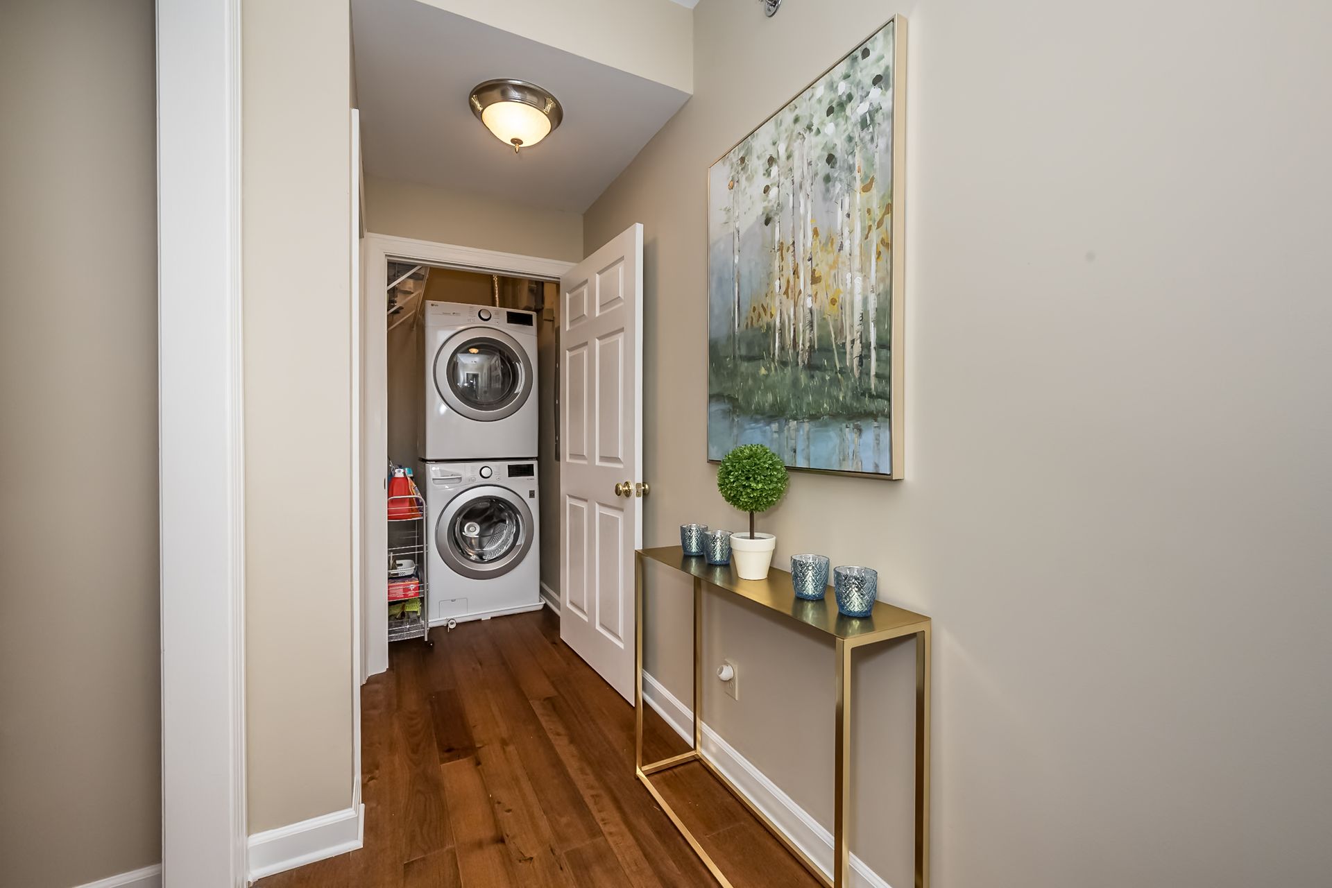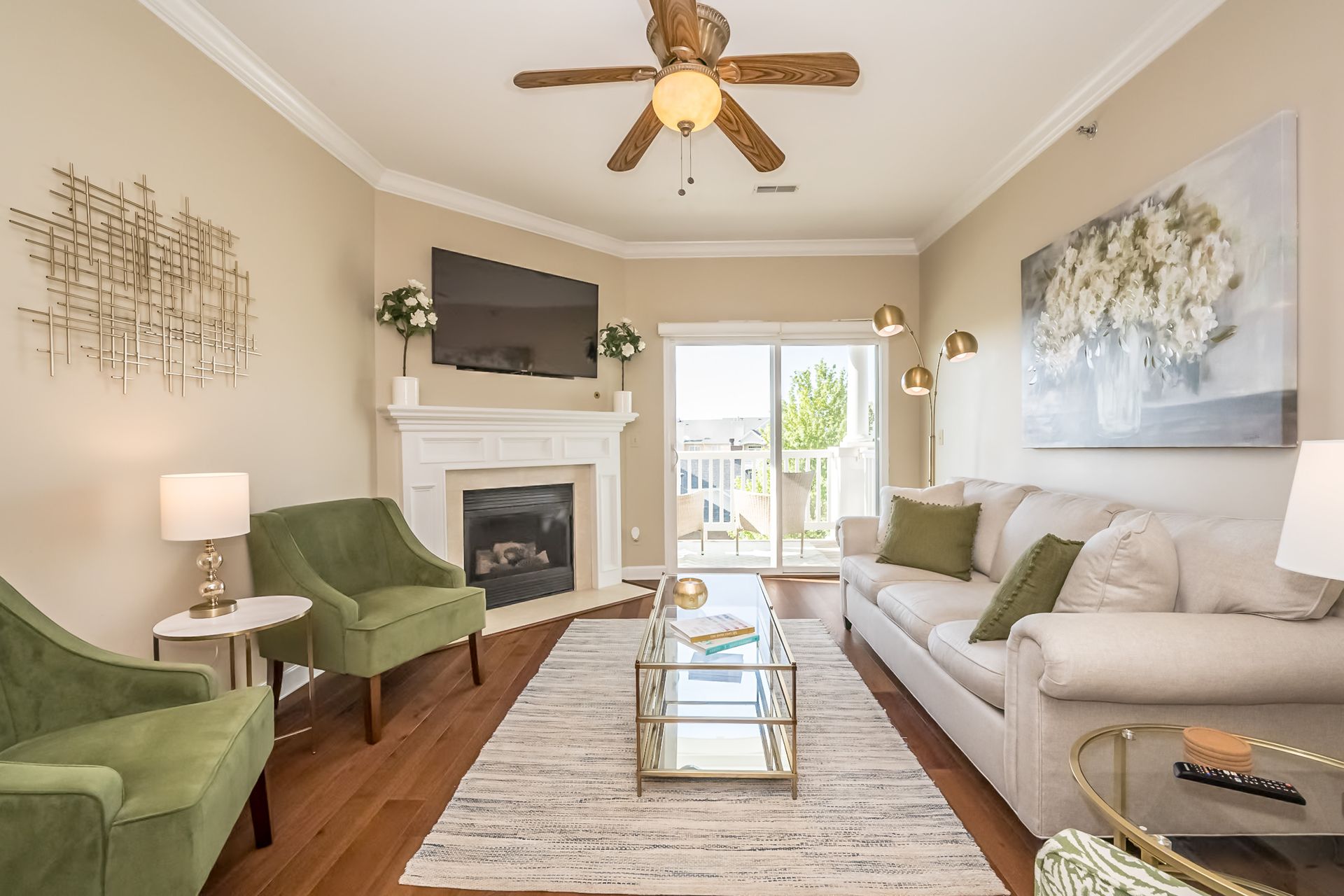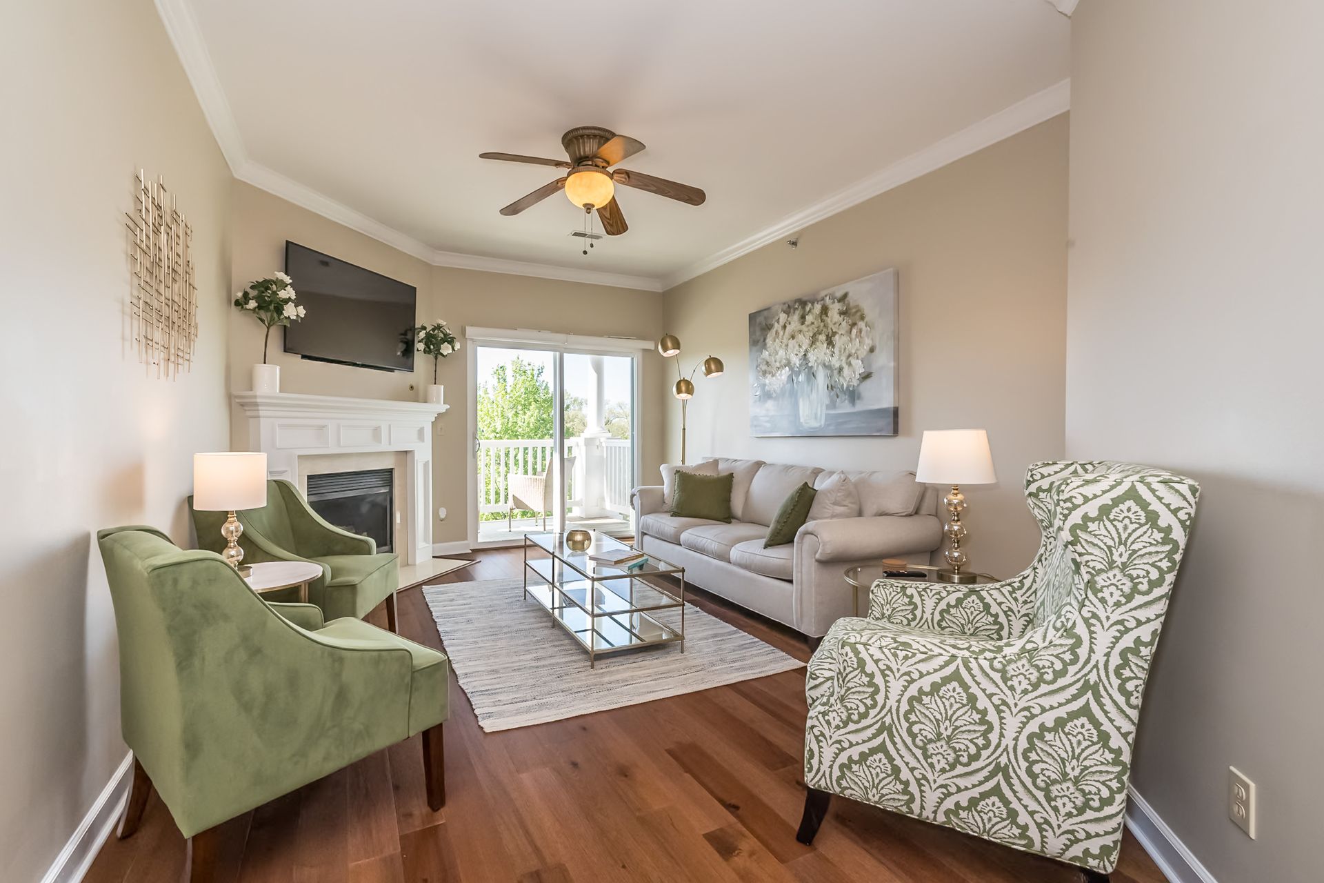 Great location, charming updates and meticulous maintained are just a few of the reasons that you don't want to miss this one! Located in the popular, gate Mill Crossing...hop on the elevator and head up to this bright and open top floor, two bedroom, two bath unit! Gorgeous, newer hardwood floors flow throughout. The updated kitchen boasts stainless steel appliances, solid surface counters, subway tile backsplash and opens to the living room with a cozy gas fireplace. The covered deck overlooks the pool and is the ideal retreat to start and end your day! Enjoy the private primary en suite with separate shower, tub and custom walk-in closet. There is an abundance of in-unit storage as well as the main floor in-unit laundry. Delight in the convenience of the SECURED UNDERGROUND GARAGE with a designated spot just off the elevator and an additional storage unit. The beautiful, spacious clubhouse, fitness room and community pool are the icing on the cake of this move-in beauty!